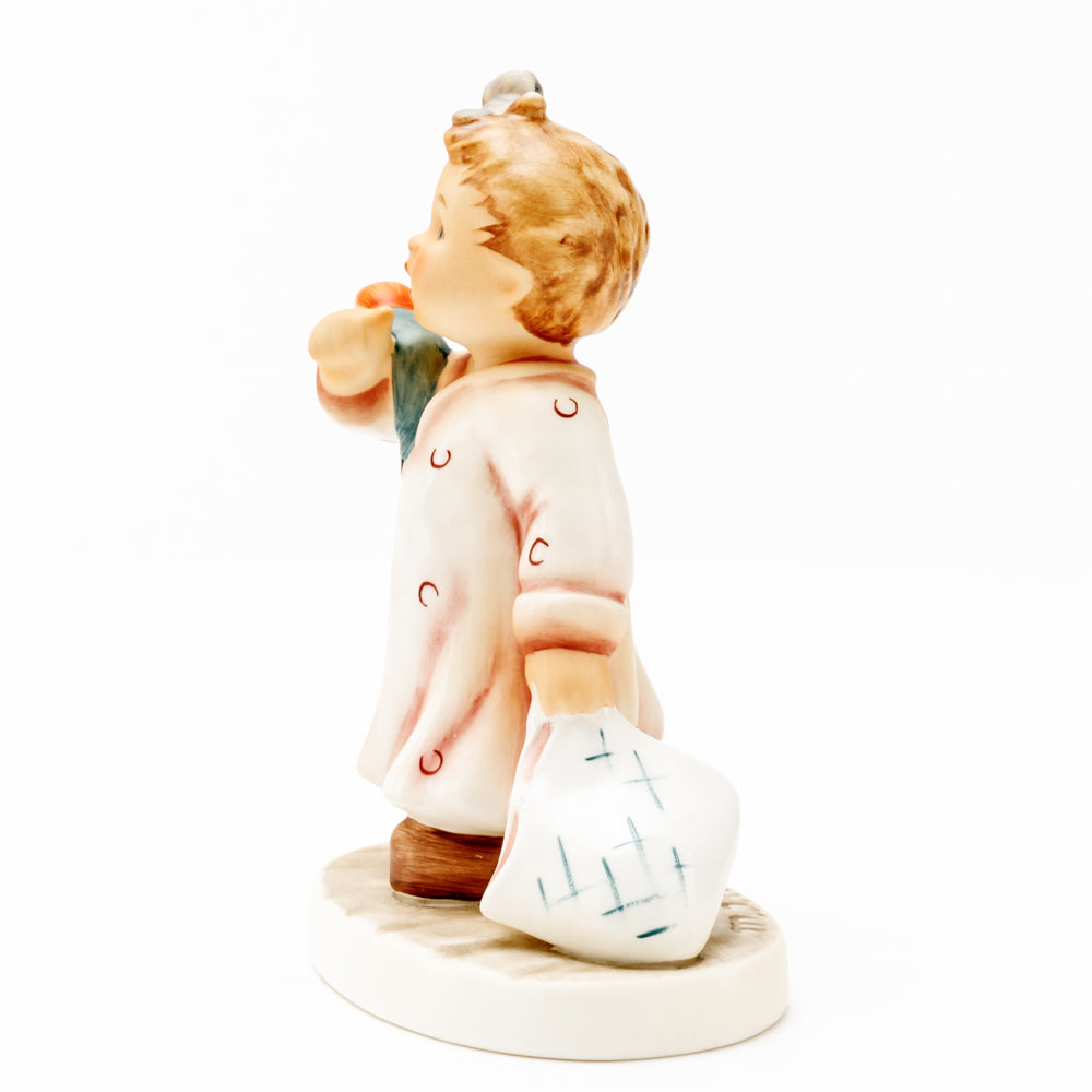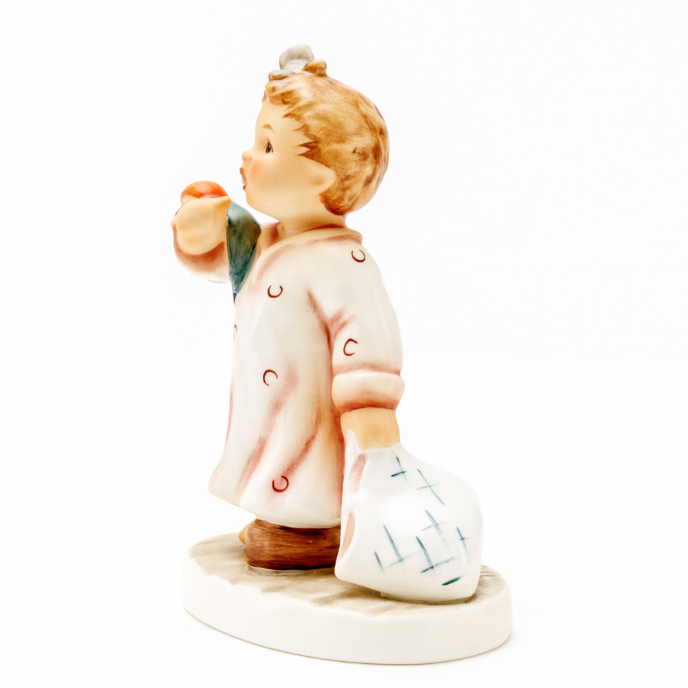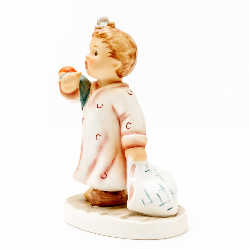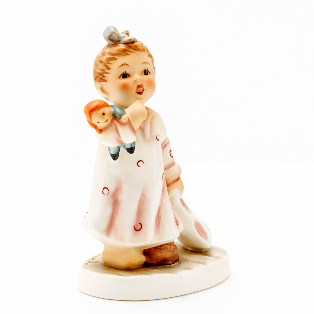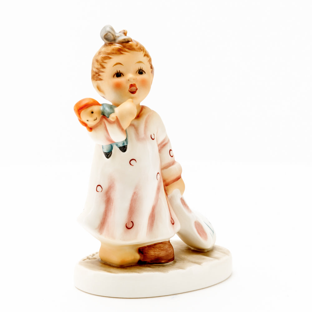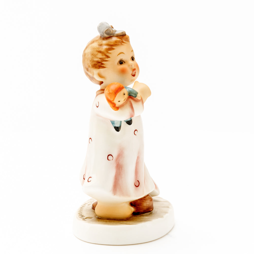 „Will ins Bett“ ist der Gegenentwurf zur männlichen „Bin noch gar net müde“ (HUM 2313) – diese Hummel-Figur zeigt einen kleinen Hummel-Jungen mit seinem Lieblingsteddy, der ebenfalls gerade auf dem Weg ins Bett ist.