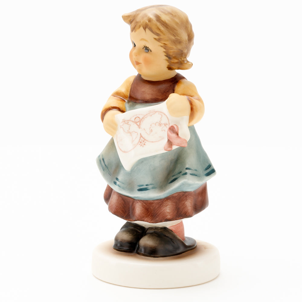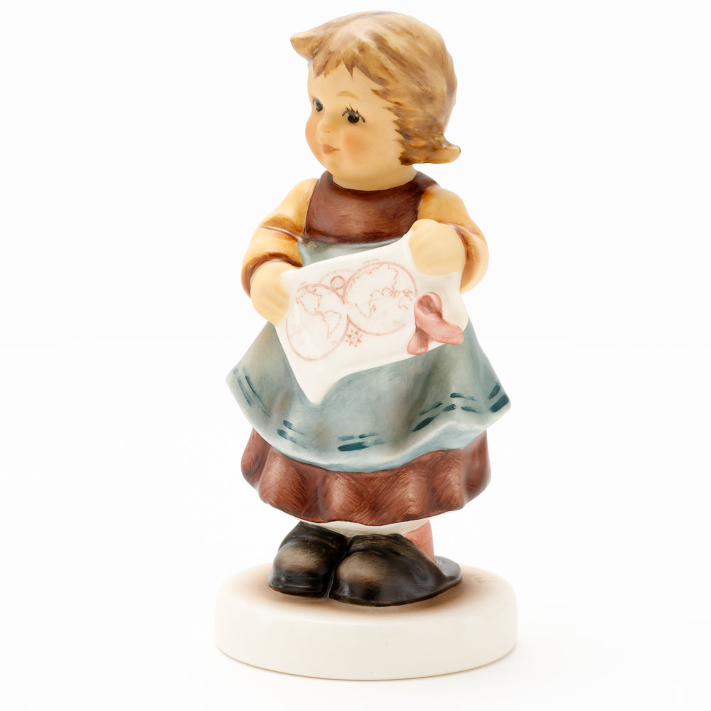 Mit der Figur "Welt der Hoffnung" zieht 2018 ein neues, handgefertigtes Meisterstück in die Hope-Figuren-Serie der Hummel Manufaktur ein. Diese Figur wurde, wie auch bereits die Figur aus dem Jahre 2017, von Anette Barth modelliert. Die Besonderheit an dieser original M.I. Hummel-Figur sind die rosa Strümpfe, welche als Erkennungsmerkmal der unter dem deutschen Namen bekannten Reihe "Hoffnung schenken" dienen. Die Figur aus Rödental, welche an die Zeichnungen der Schwester Maria Innocentia Hummel angelehnt ist, sorgt auch in schweren Zeiten für ein wenig Hoffnung.