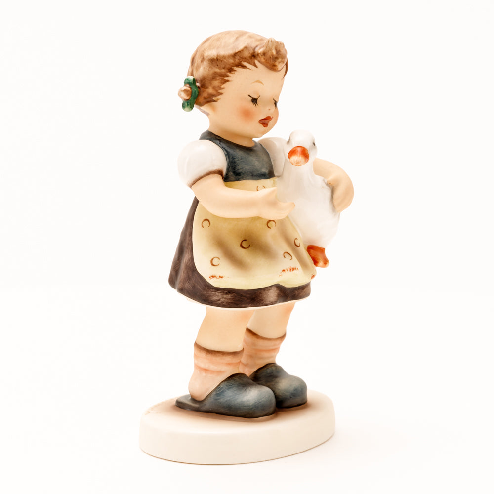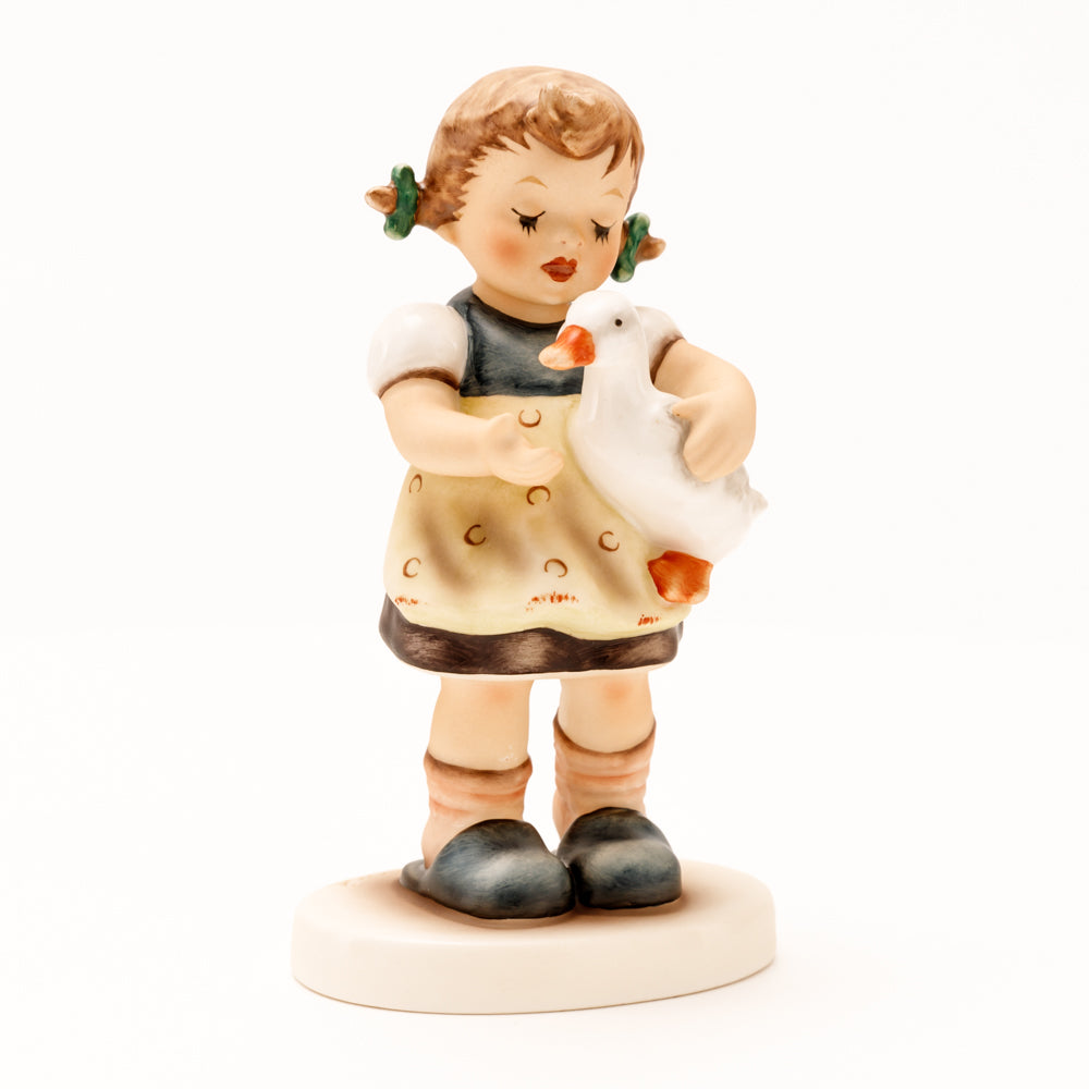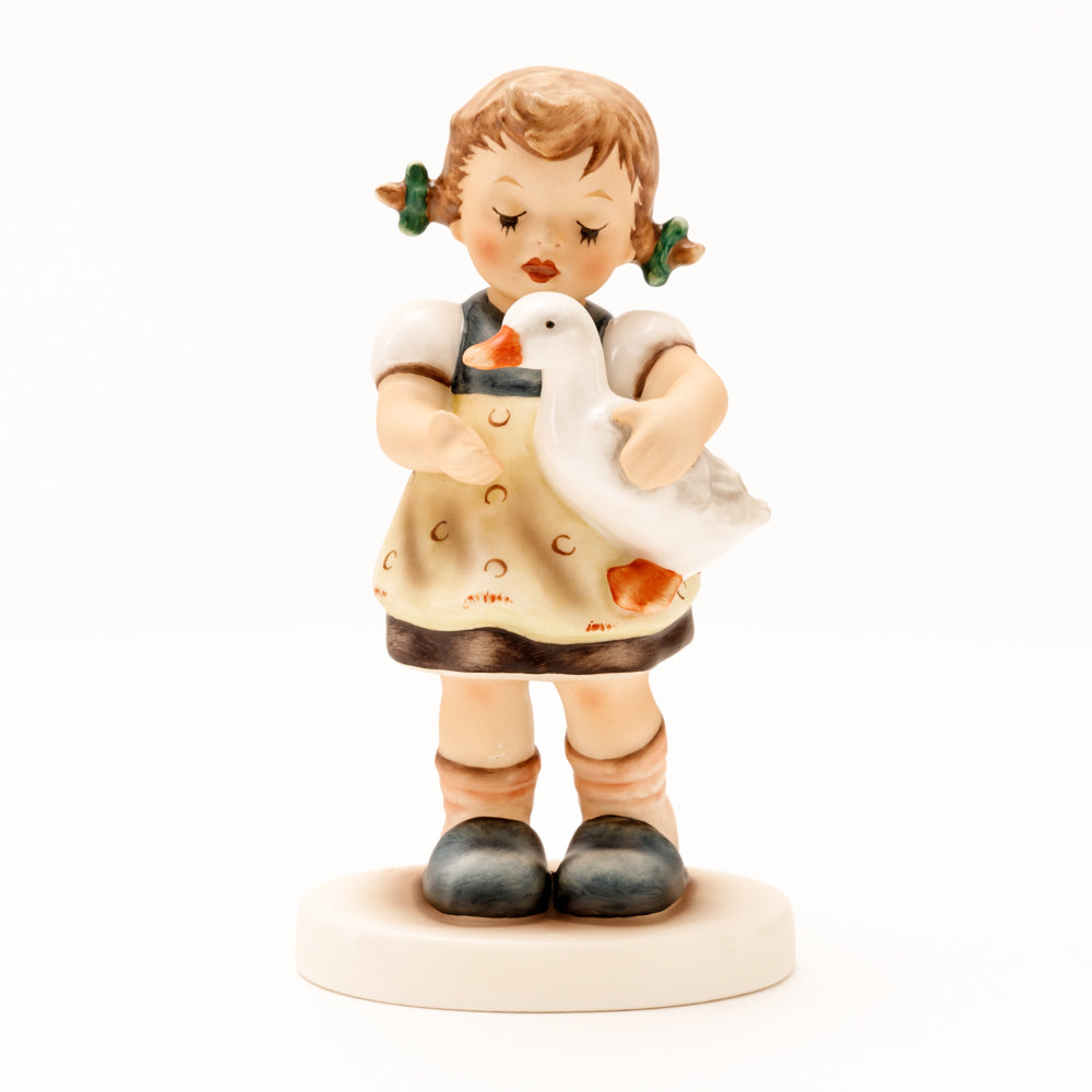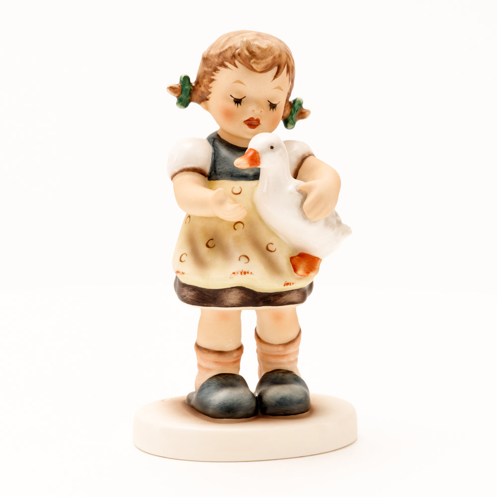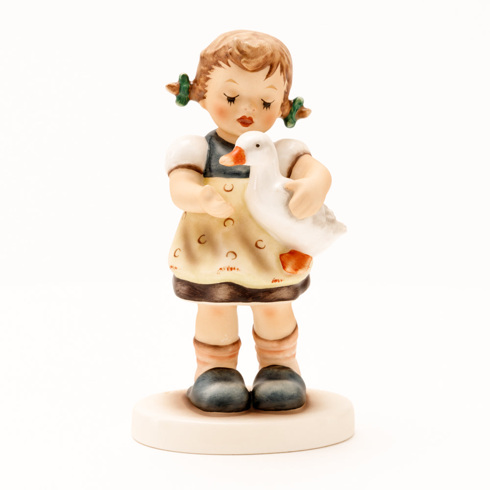 Das "Entenmadl" (HUM 2393) bildet nicht nur das schmucke Gegenstück zur der Hummel-Figur "Entenbub" (HUM 2394), sondern ist allein für sich ein echter Hingucker. Das 2017 entstandene Original aus der Hummel Manufaktur Rödental besticht neben der für Hummel-Figuren typischen matten Oberfläche durch das in einzigartigem Glanz gehaltene Entlein. Sorgfältige Handarbeit lässt die original Hummel-Figur zu einem zeitlosen und besonderen Sammlerstück werden.