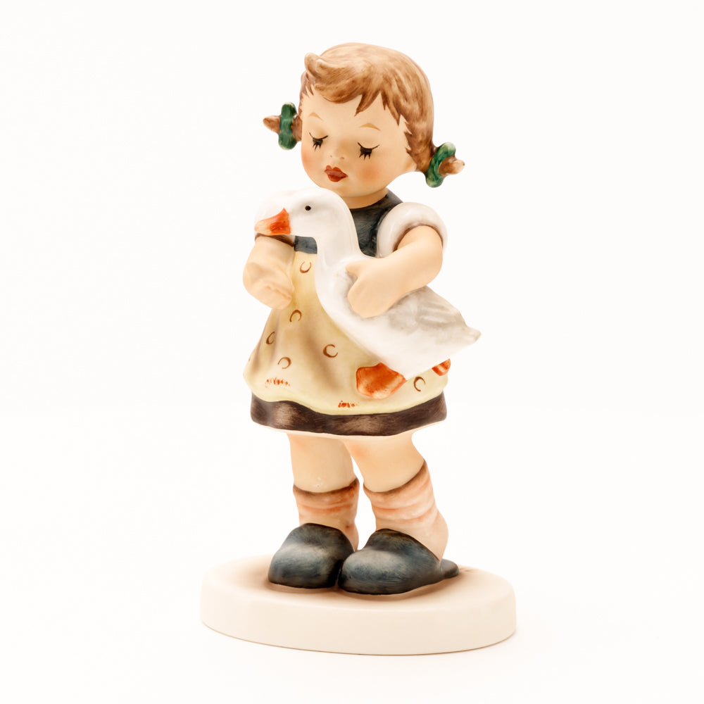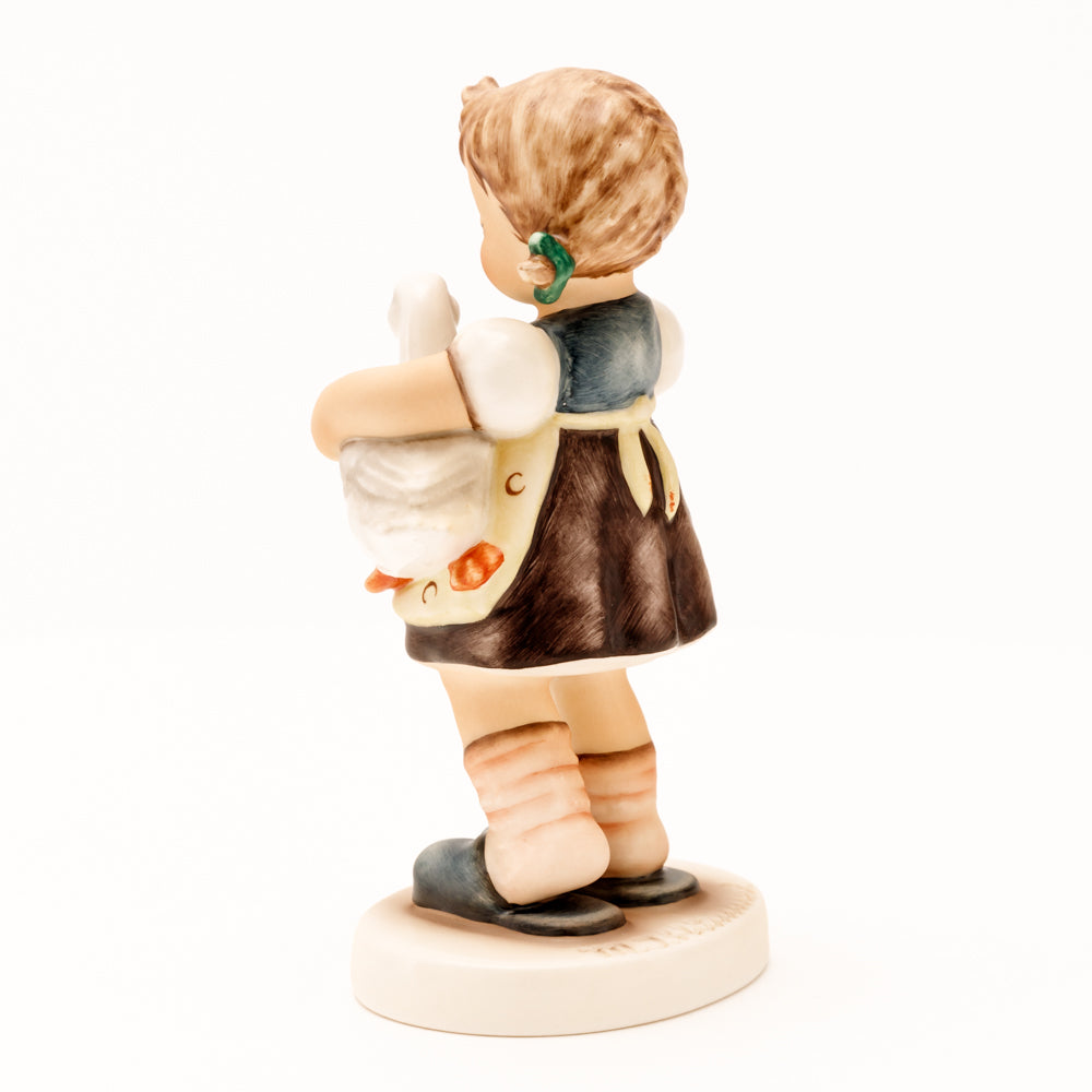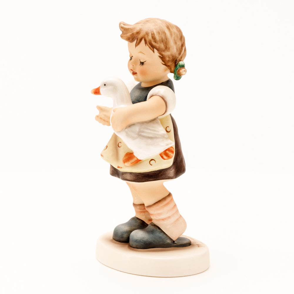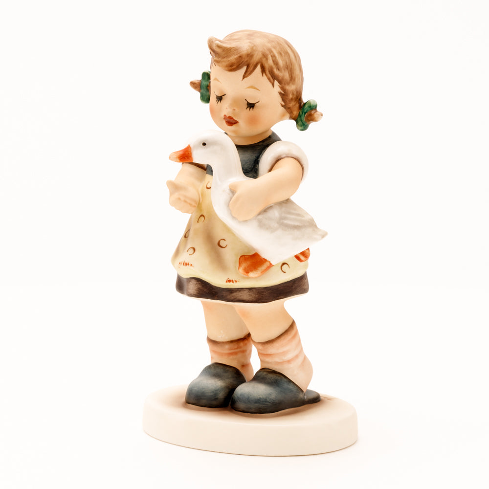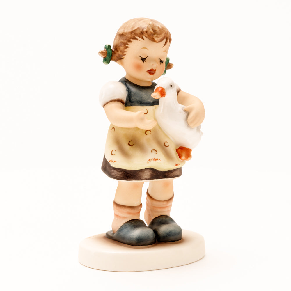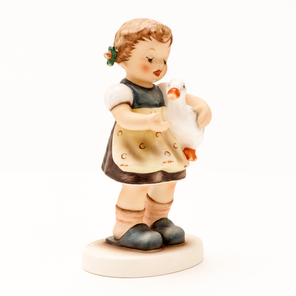 Das "Entenmadl" (HUM 2393) bildet nicht nur das schmucke Gegenstück zur der Hummel-Figur "Entenbub" (HUM 2394), sondern ist allein für sich ein echter Hingucker. Das 2017 entstandene Original aus der Hummel Manufaktur Rödental besticht neben der für Hummel-Figuren typischen matten Oberfläche durch das in einzigartigem Glanz gehaltene Entlein. Sorgfältige Handarbeit lässt die original Hummel-Figur zu einem zeitlosen und besonderen Sammlerstück werden.