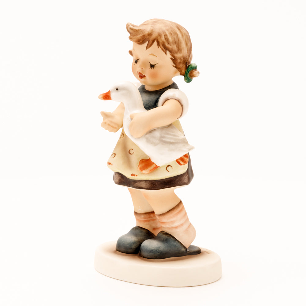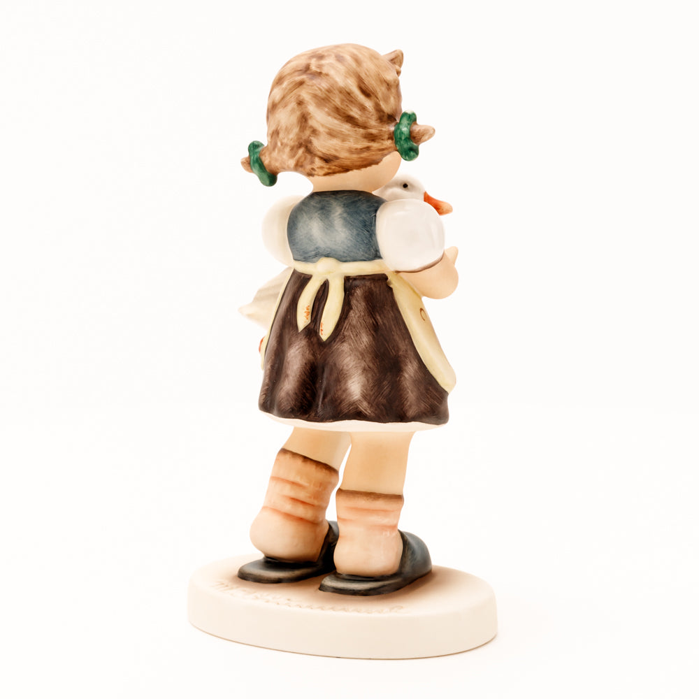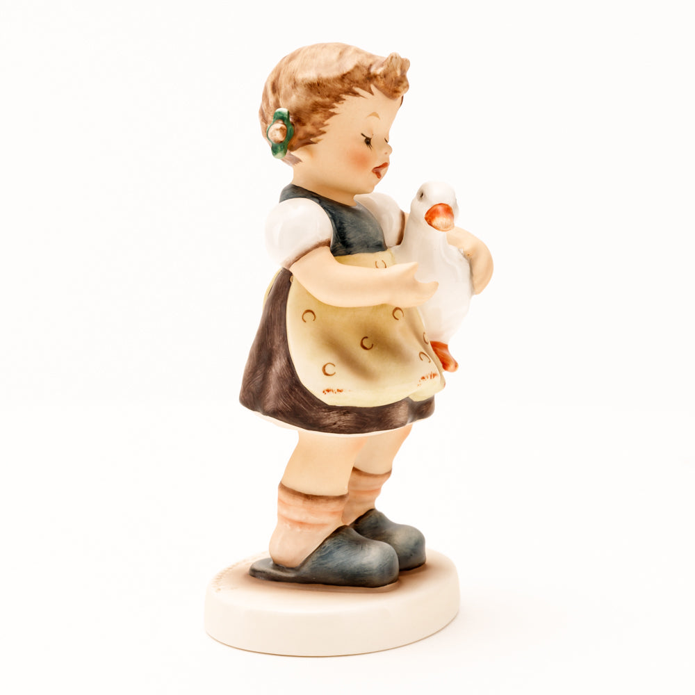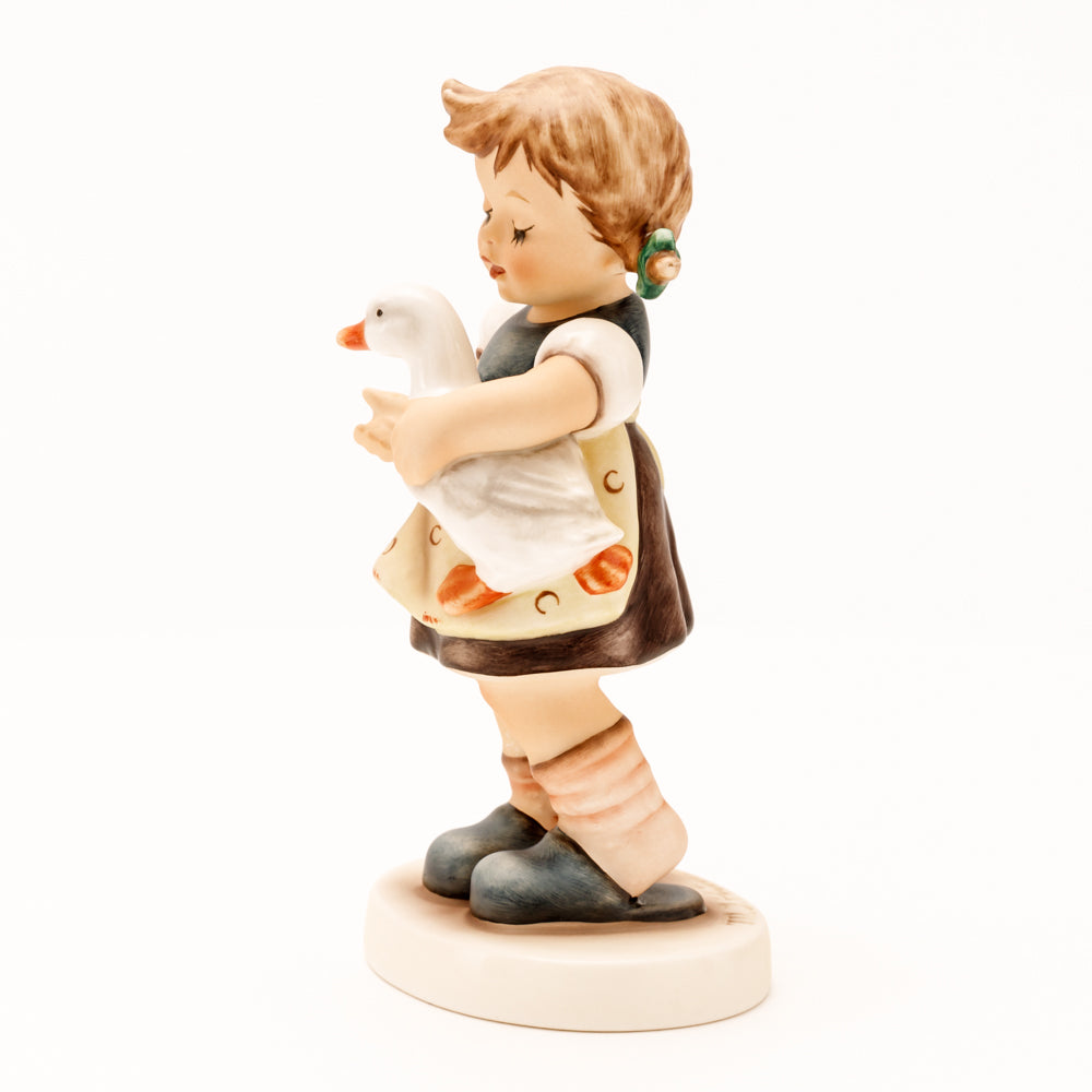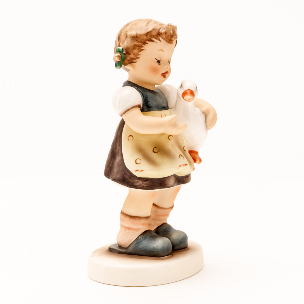 Das "Entenmadl" (HUM 2393) bildet nicht nur das schmucke Gegenstück zur der Hummel-Figur "Entenbub" (HUM 2394), sondern ist allein für sich ein echter Hingucker. Das 2017 entstandene Original aus der Hummel Manufaktur Rödental besticht neben der für Hummel-Figuren typischen matten Oberfläche durch das in einzigartigem Glanz gehaltene Entlein. Sorgfältige Handarbeit lässt die original Hummel-Figur zu einem zeitlosen und besonderen Sammlerstück werden.