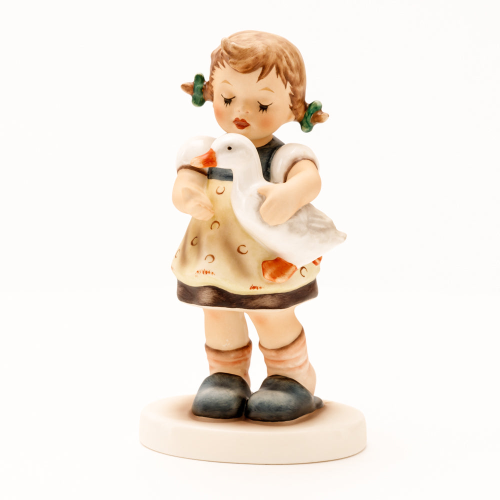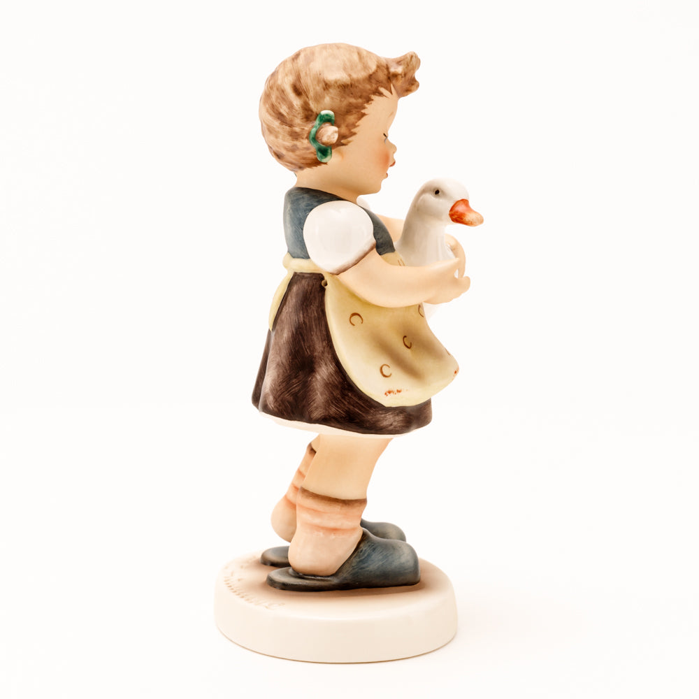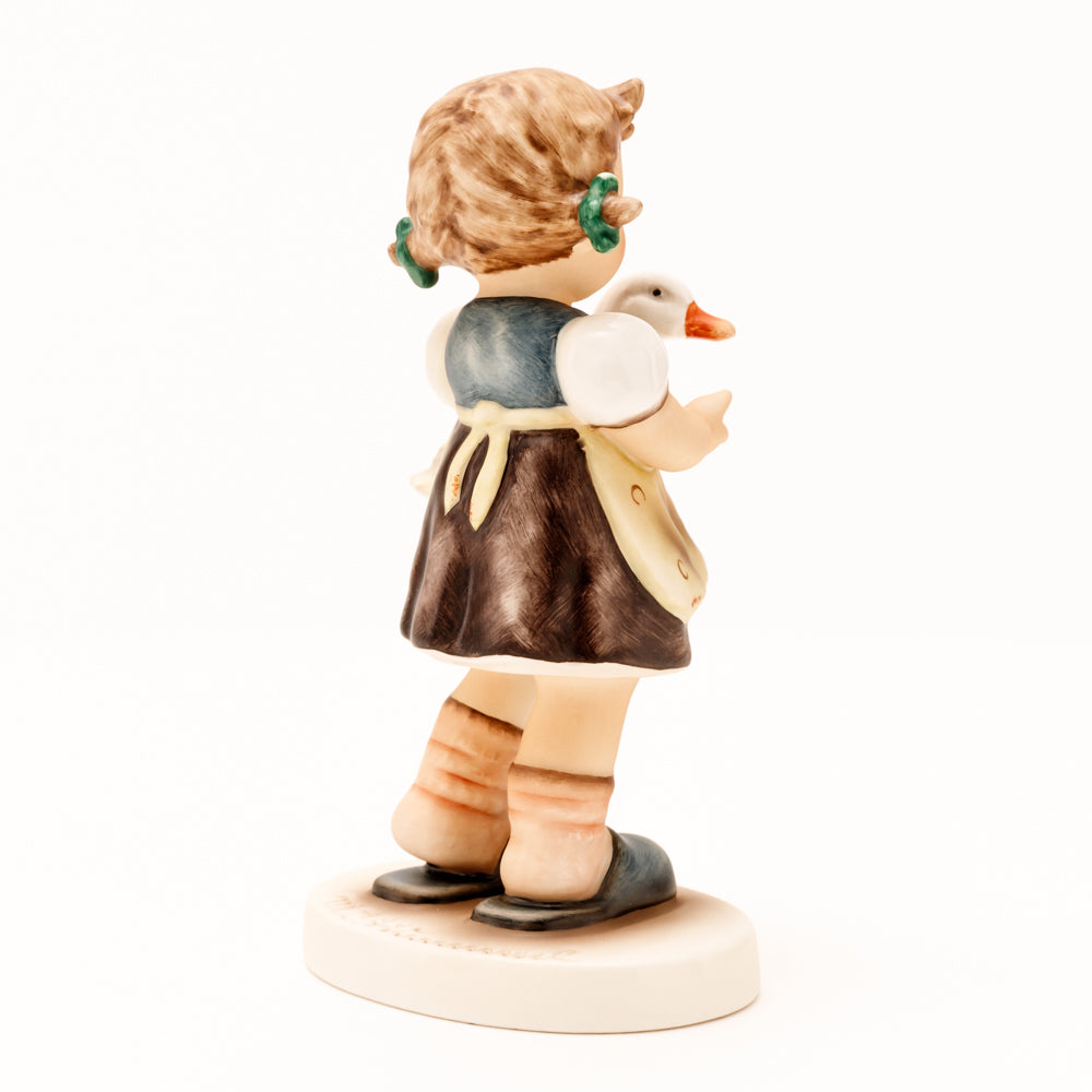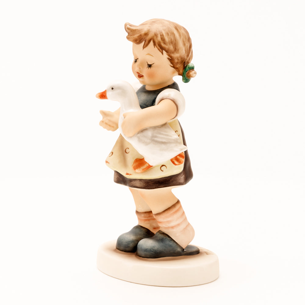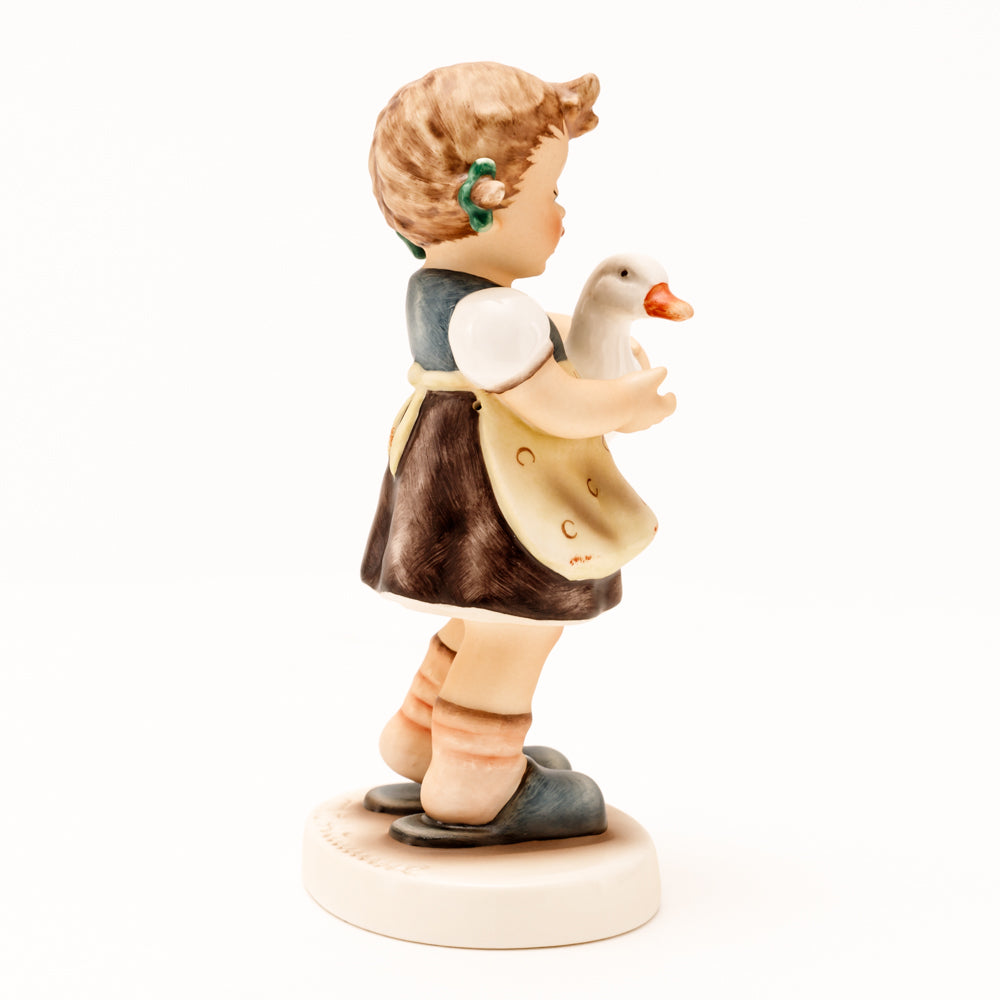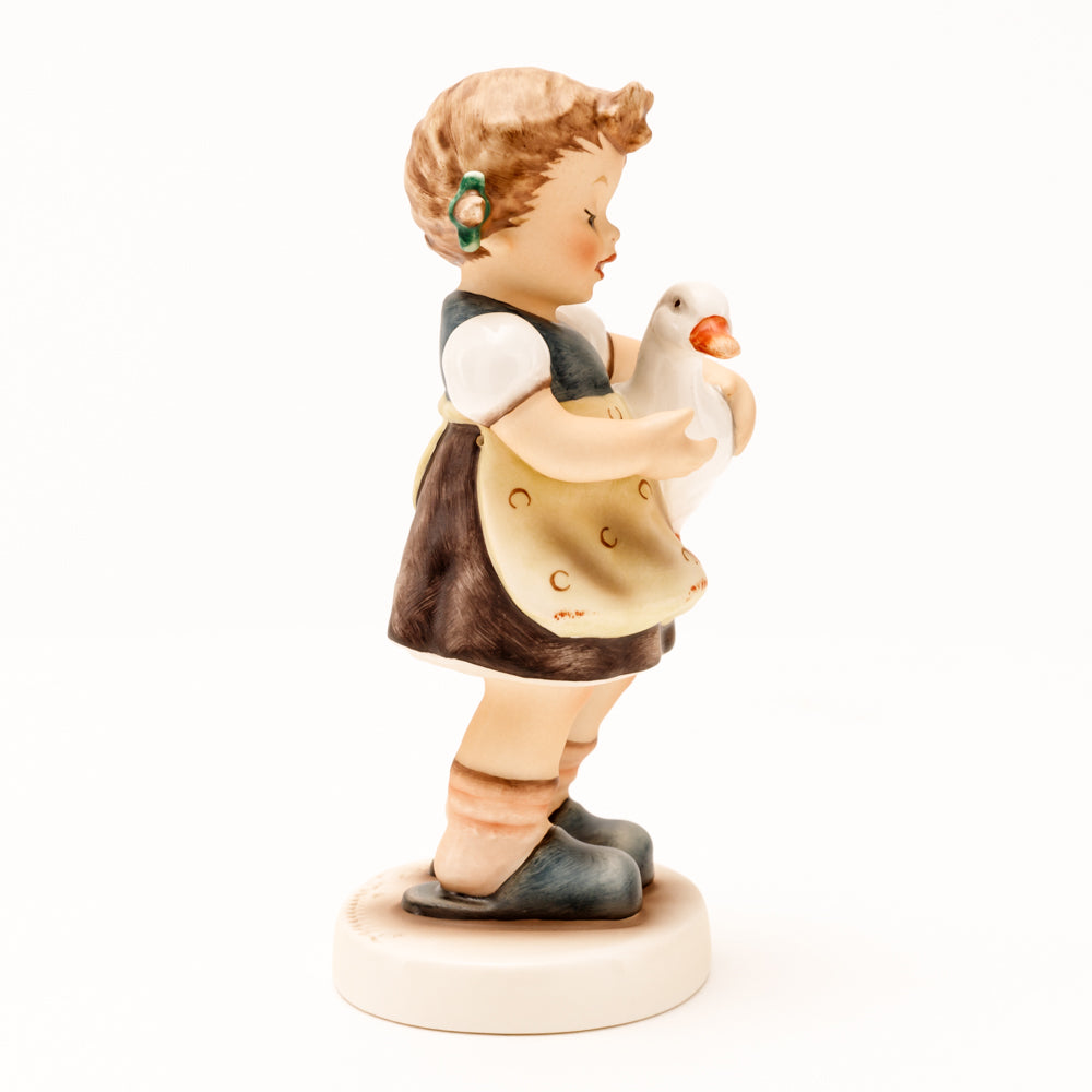 Das "Entenmadl" (HUM 2393) bildet nicht nur das schmucke Gegenstück zur der Hummel-Figur "Entenbub" (HUM 2394), sondern ist allein für sich ein echter Hingucker. Das 2017 entstandene Original aus der Hummel Manufaktur Rödental besticht neben der für Hummel-Figuren typischen matten Oberfläche durch das in einzigartigem Glanz gehaltene Entlein. Sorgfältige Handarbeit lässt die original Hummel-Figur zu einem zeitlosen und besonderen Sammlerstück werden.