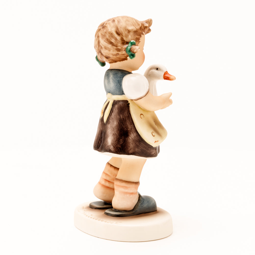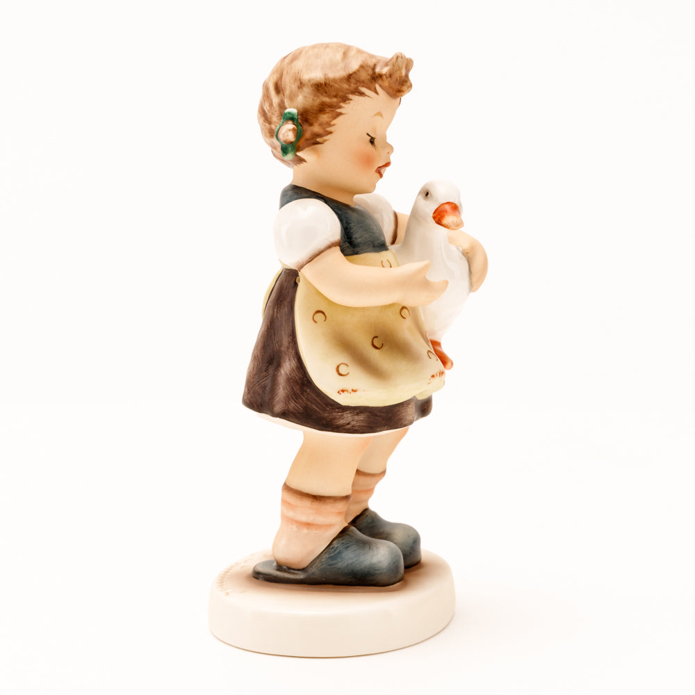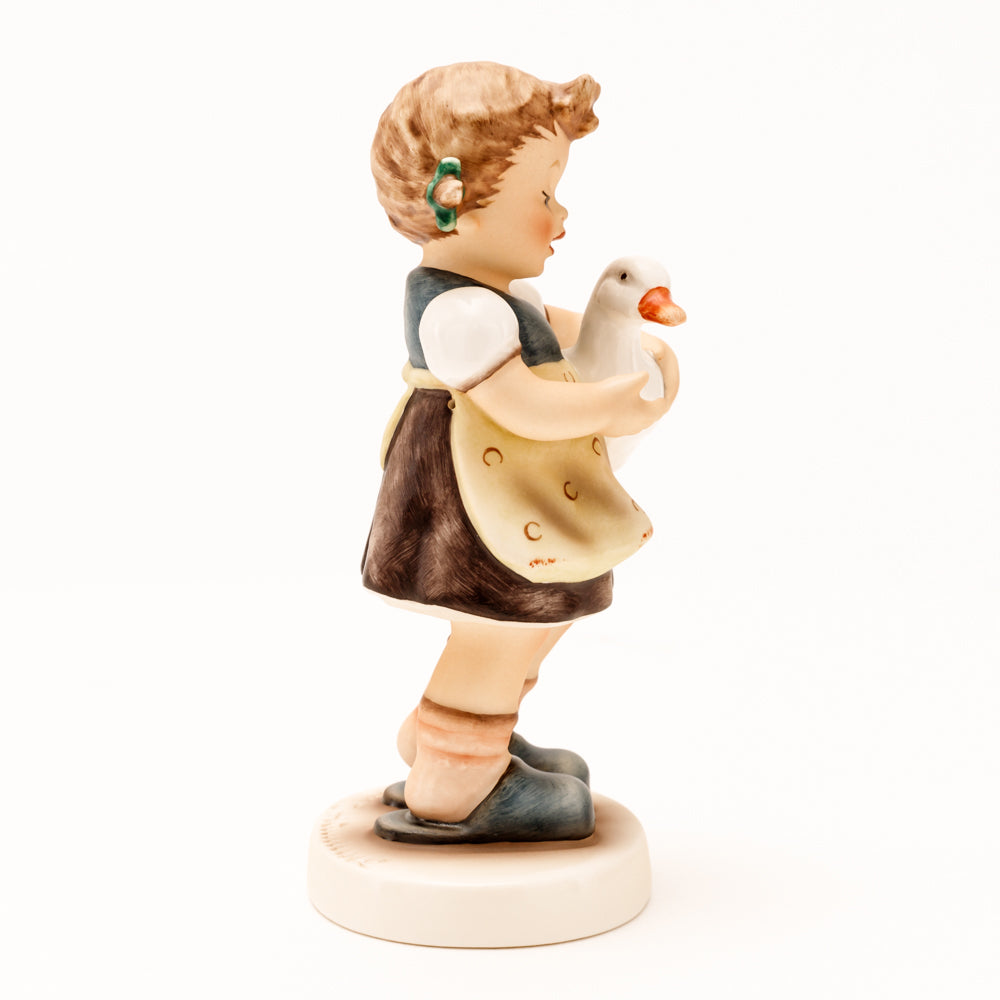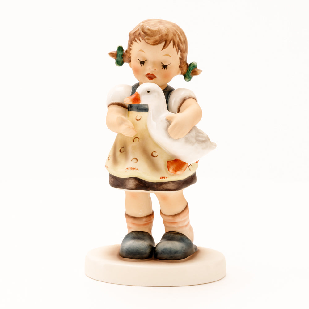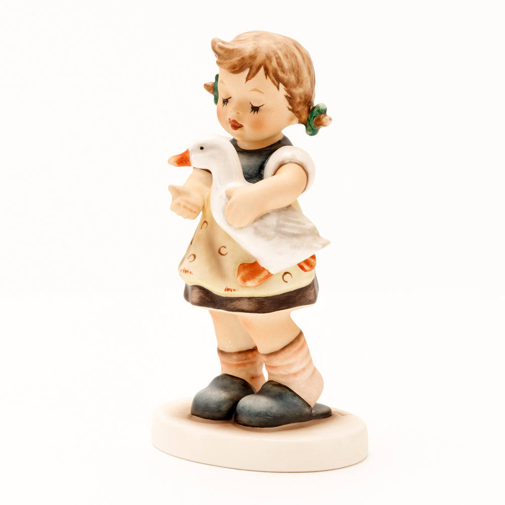 Das "Entenmadl" (HUM 2393) bildet nicht nur das schmucke Gegenstück zur der Hummel-Figur "Entenbub" (HUM 2394), sondern ist allein für sich ein echter Hingucker. Das 2017 entstandene Original aus der Hummel Manufaktur Rödental besticht neben der für Hummel-Figuren typischen matten Oberfläche durch das in einzigartigem Glanz gehaltene Entlein. Sorgfältige Handarbeit lässt die original Hummel-Figur zu einem zeitlosen und besonderen Sammlerstück werden.