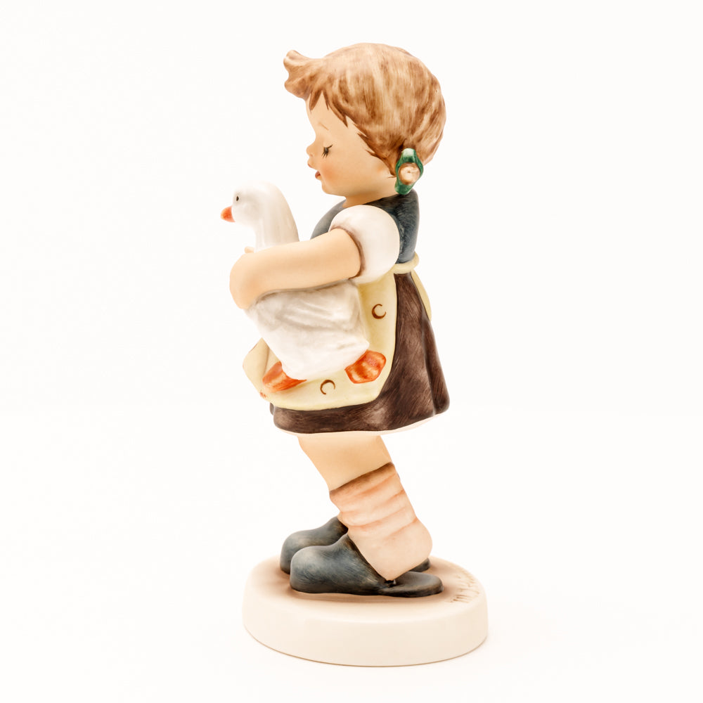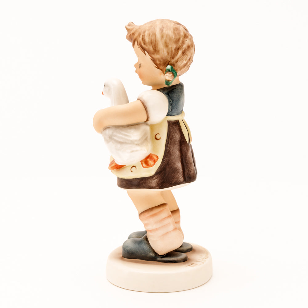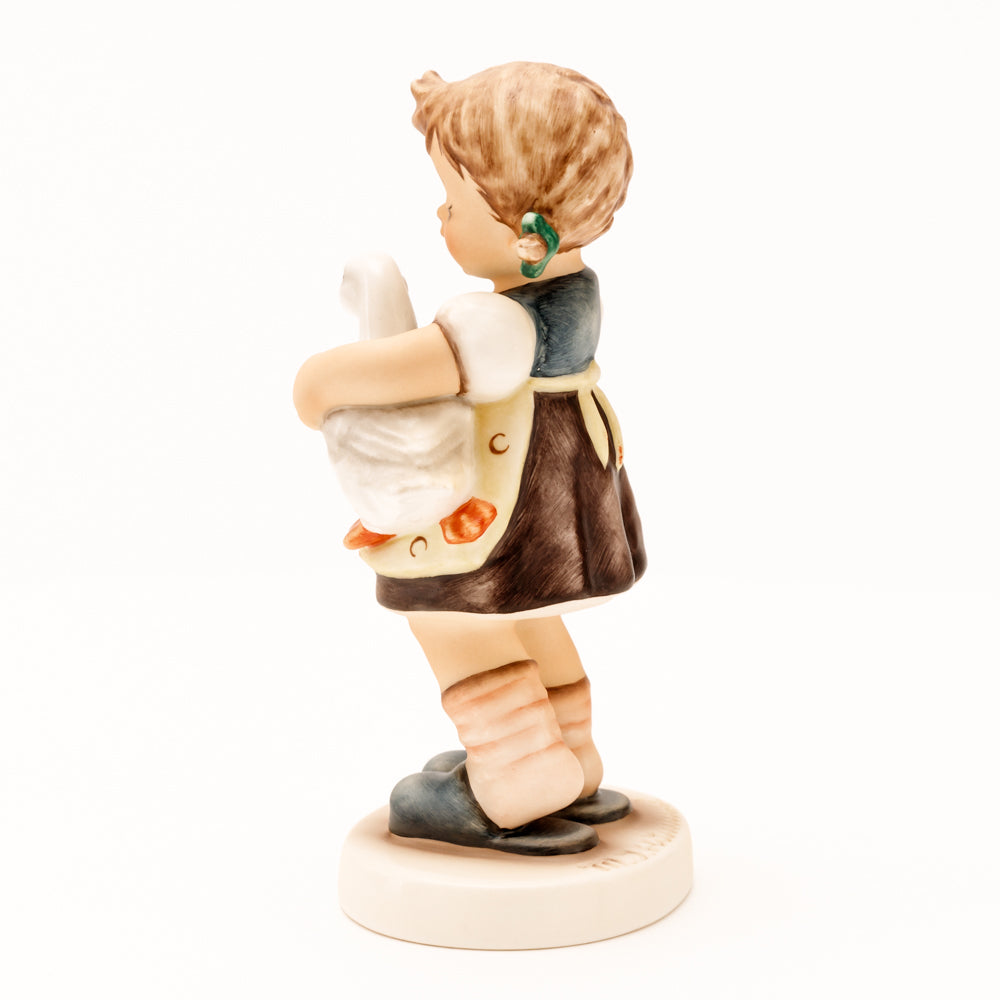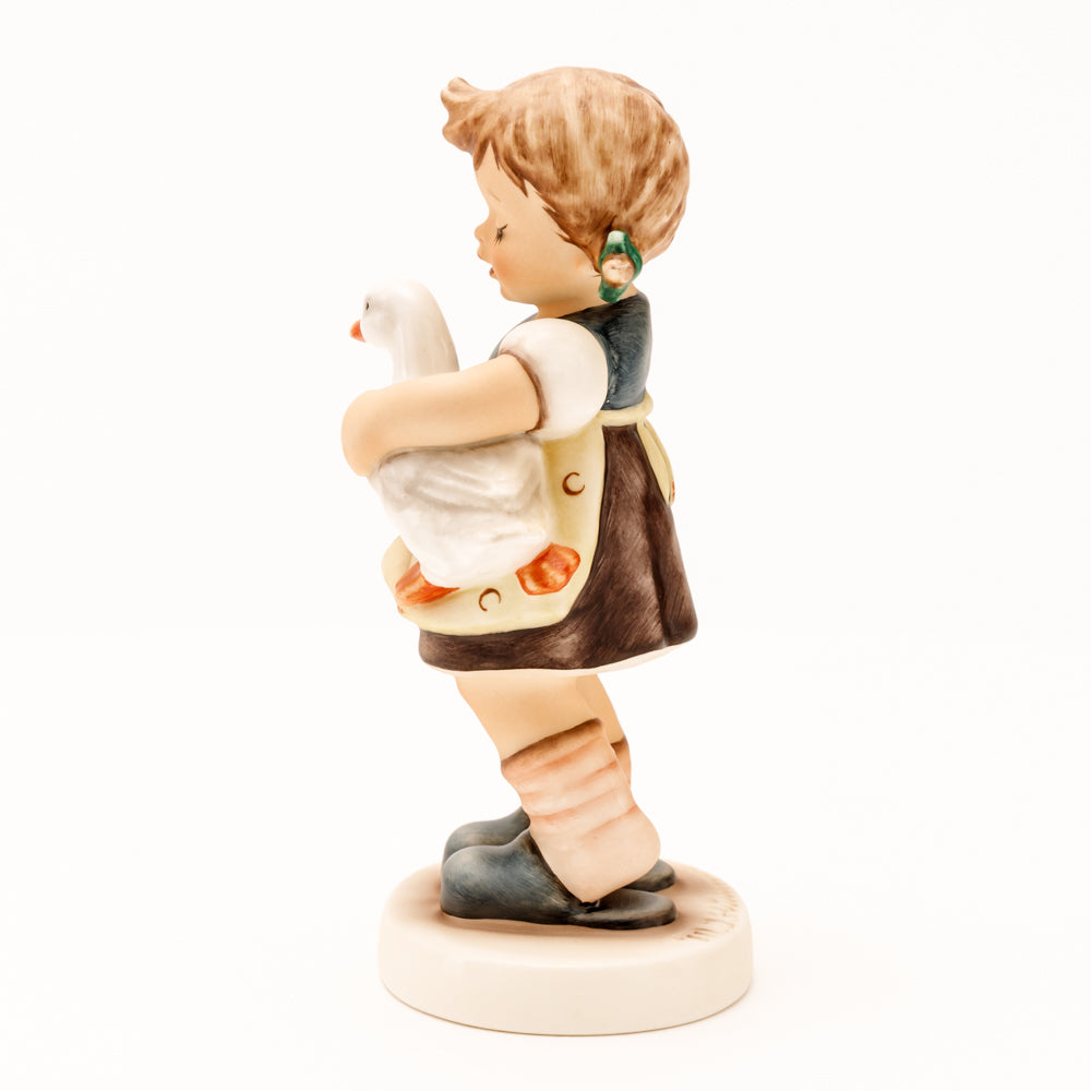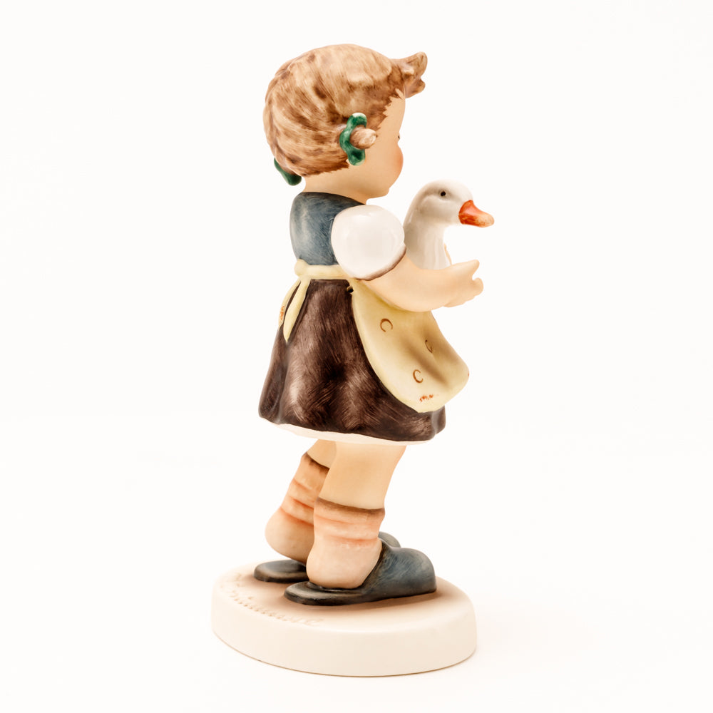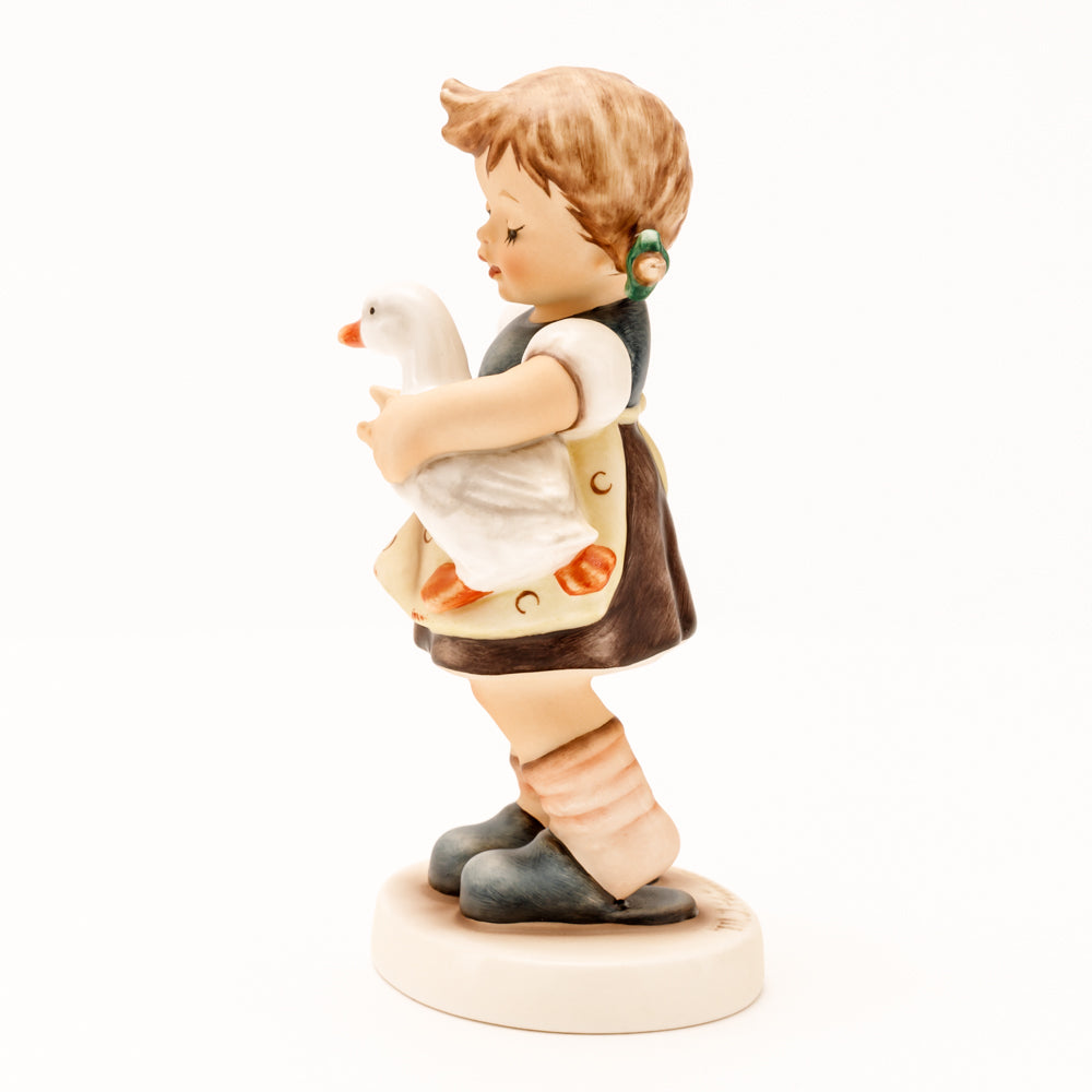 Das "Entenmadl" (HUM 2393) bildet nicht nur das schmucke Gegenstück zur der Hummel-Figur "Entenbub" (HUM 2394), sondern ist allein für sich ein echter Hingucker. Das 2017 entstandene Original aus der Hummel Manufaktur Rödental besticht neben der für Hummel-Figuren typischen matten Oberfläche durch das in einzigartigem Glanz gehaltene Entlein. Sorgfältige Handarbeit lässt die original Hummel-Figur zu einem zeitlosen und besonderen Sammlerstück werden.