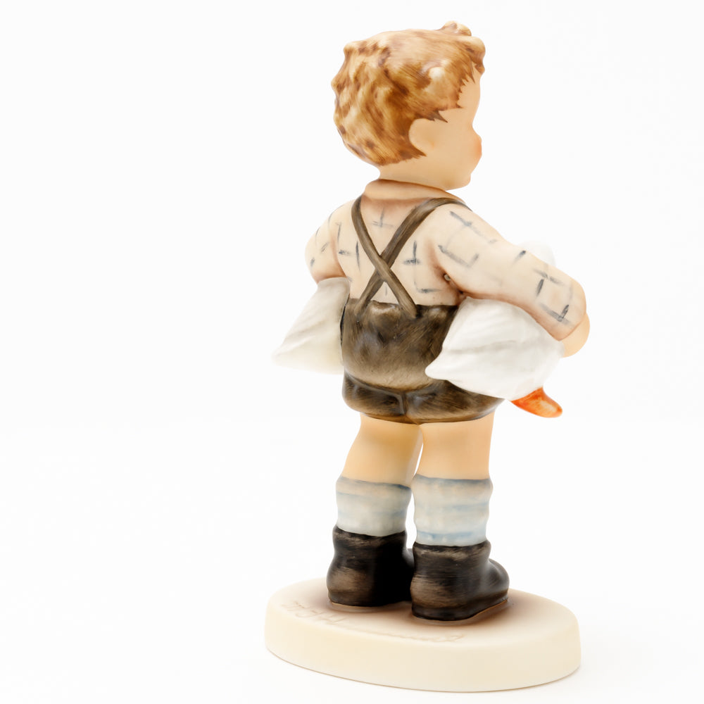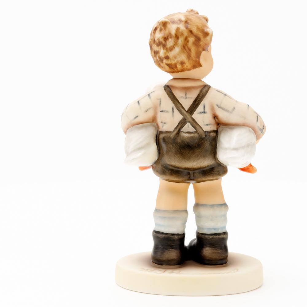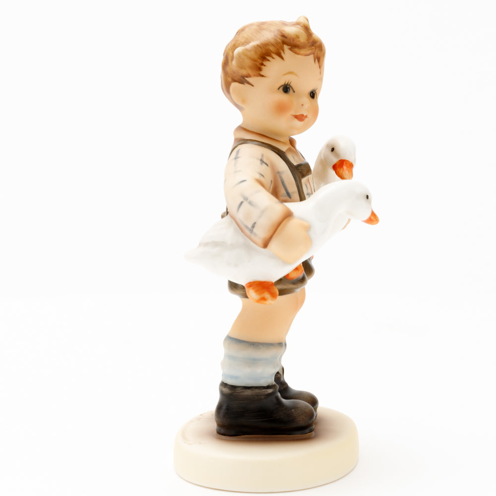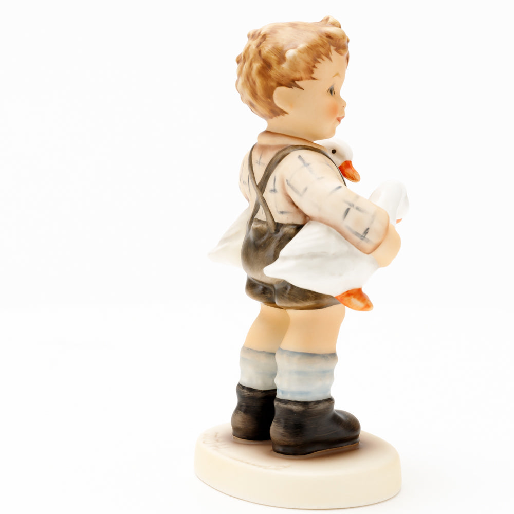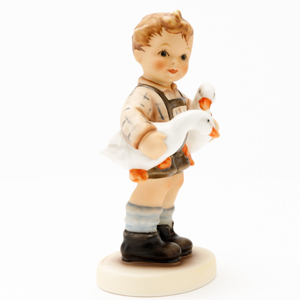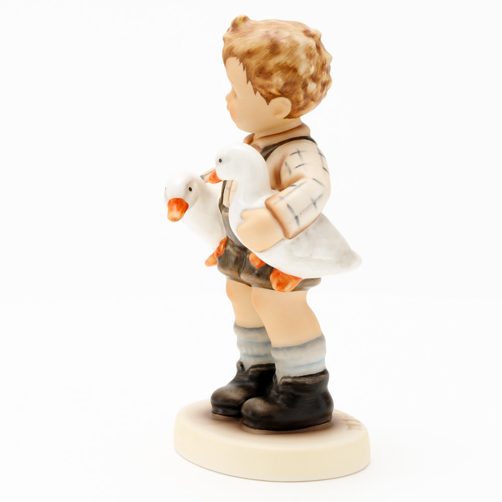 Diese original handgefertigte Hummel-Figur ist nicht nur zu den Osterfeiertagen eine Augenweide! Der "Entenbub" (HUM 2394) besticht auf den ersten Blick durch die in besonderem Glanz gefertigten Entlein. Eine weitere besondere, aber dennoch traditionelle Eigenschaft der von Marion Huschka modellierten Figur ist die Tatsache, dass die Hummel-Figur typisch bayerische Lederhosen trägt. Somit zeigt der Hummel-Junge die Verbundenheit zu seiner aus Bayern stammenden Schöpferin Maria Innocentia Hummel. Die bessere Hälfte der Hummel-Figur findet man in der Figur "Entenmadl" (HUM 2393). Auch diese ist in der typisch traditionellen Hummel-Optik gehalten. Denn der Hummel Manufaktur aus dem oberfränkischen Rödental ist es seit über 80 Jahren eine Herzensangelegenheit, durch einzigartige Handwerkskunst herauszuragen. Demnach werden diese wertvollen Keramikfiguren mit reinster Präzision erschaffen.