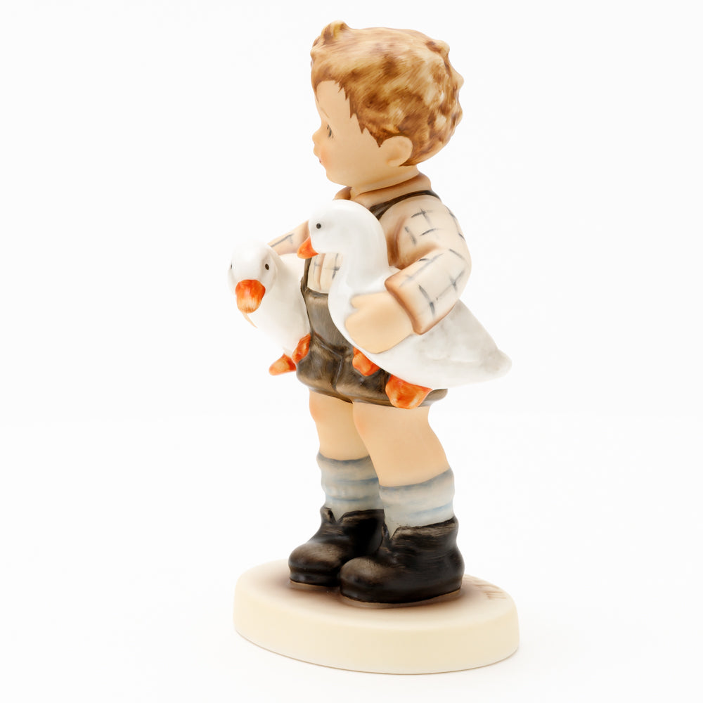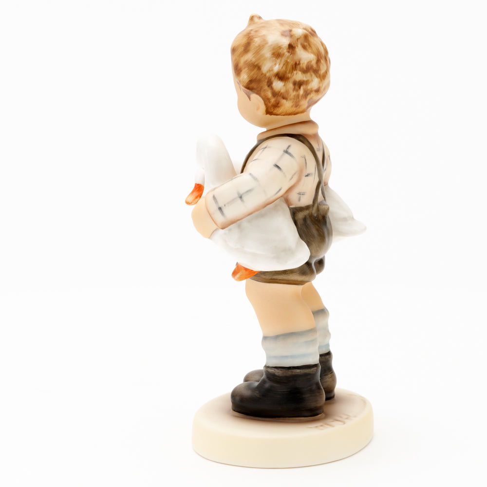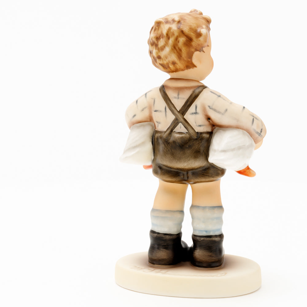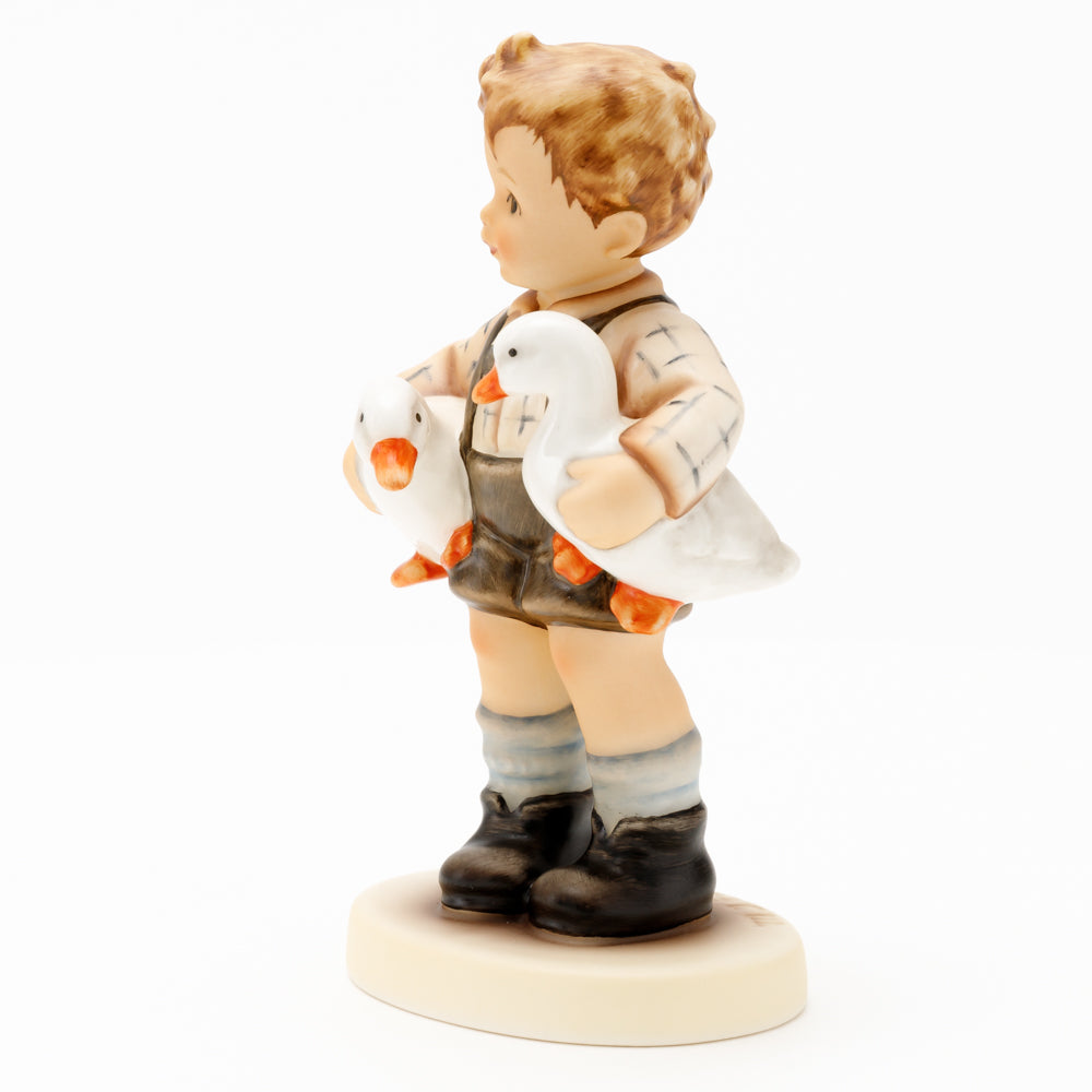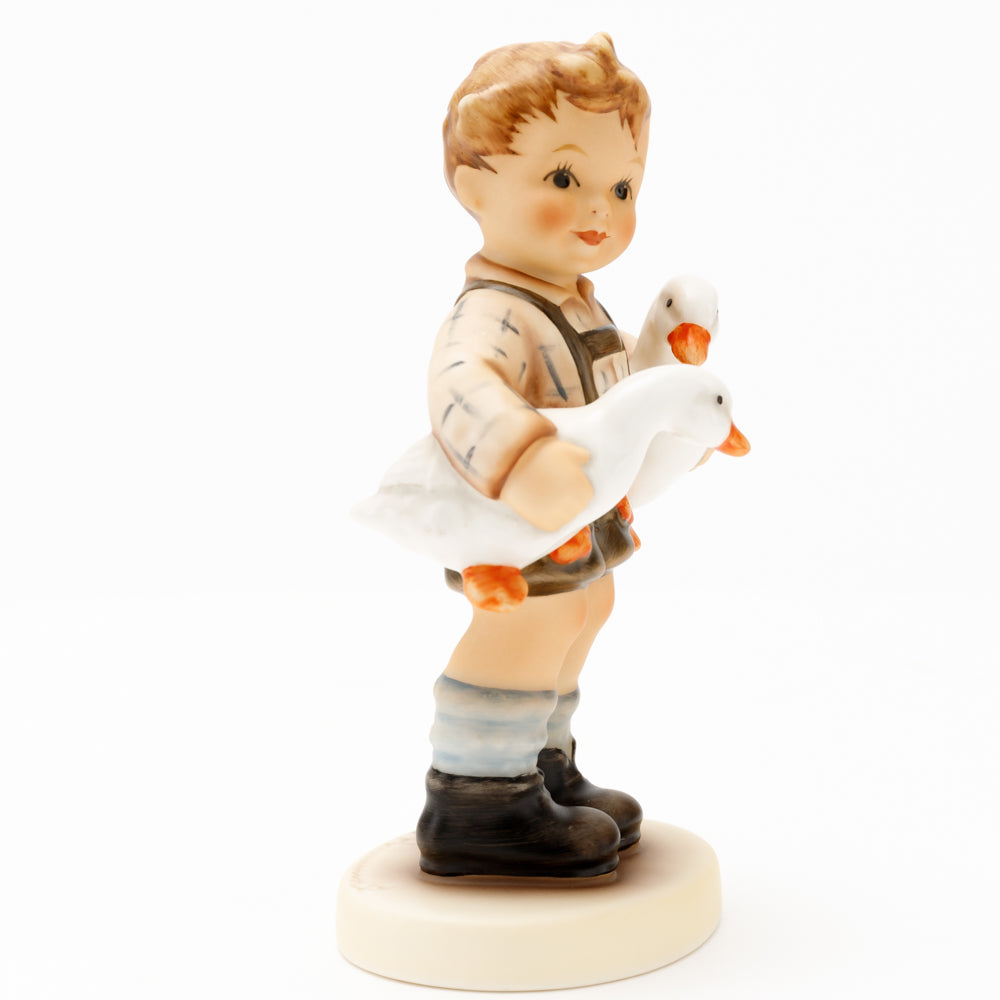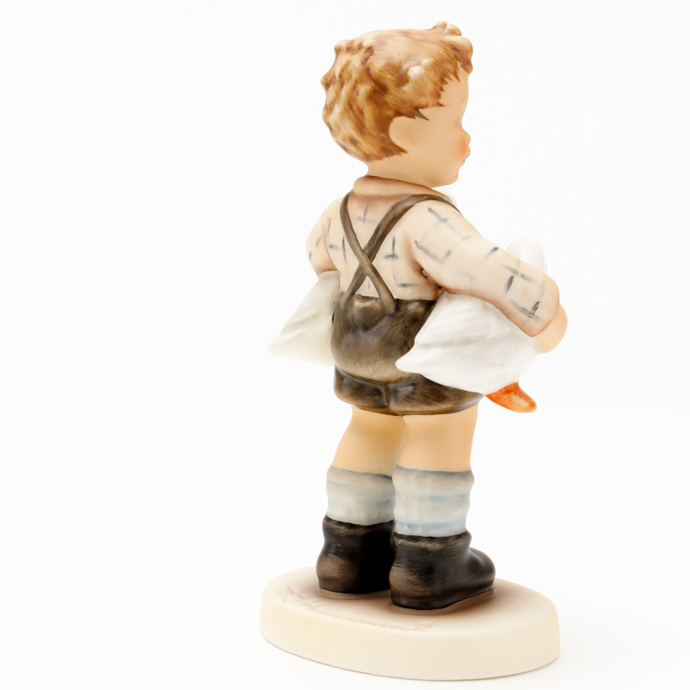 Diese original handgefertigte Hummel-Figur ist nicht nur zu den Osterfeiertagen eine Augenweide! Der "Entenbub" (HUM 2394) besticht auf den ersten Blick durch die in besonderem Glanz gefertigten Entlein. Eine weitere besondere, aber dennoch traditionelle Eigenschaft der von Marion Huschka modellierten Figur ist die Tatsache, dass die Hummel-Figur typisch bayerische Lederhosen trägt. Somit zeigt der Hummel-Junge die Verbundenheit zu seiner aus Bayern stammenden Schöpferin Maria Innocentia Hummel. Die bessere Hälfte der Hummel-Figur findet man in der Figur "Entenmadl" (HUM 2393). Auch diese ist in der typisch traditionellen Hummel-Optik gehalten. Denn der Hummel Manufaktur aus dem oberfränkischen Rödental ist es seit über 80 Jahren eine Herzensangelegenheit, durch einzigartige Handwerkskunst herauszuragen. Demnach werden diese wertvollen Keramikfiguren mit reinster Präzision erschaffen.