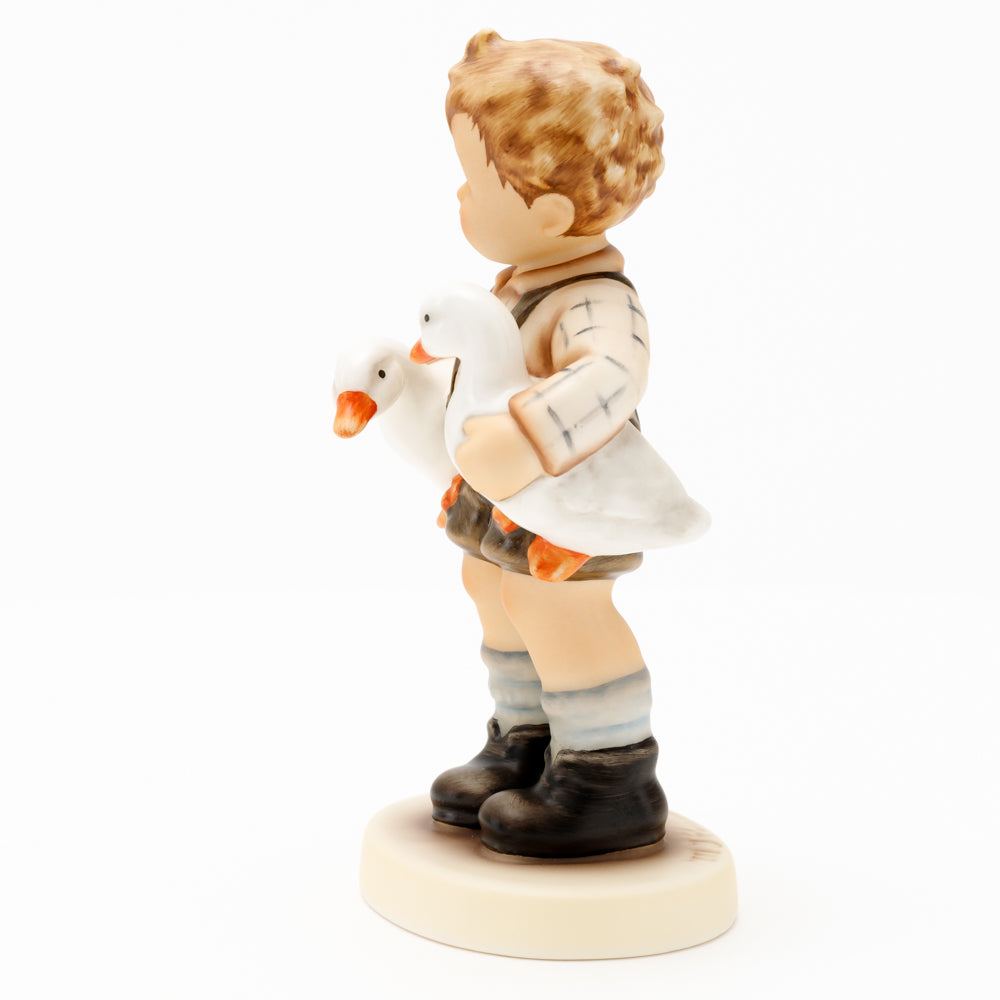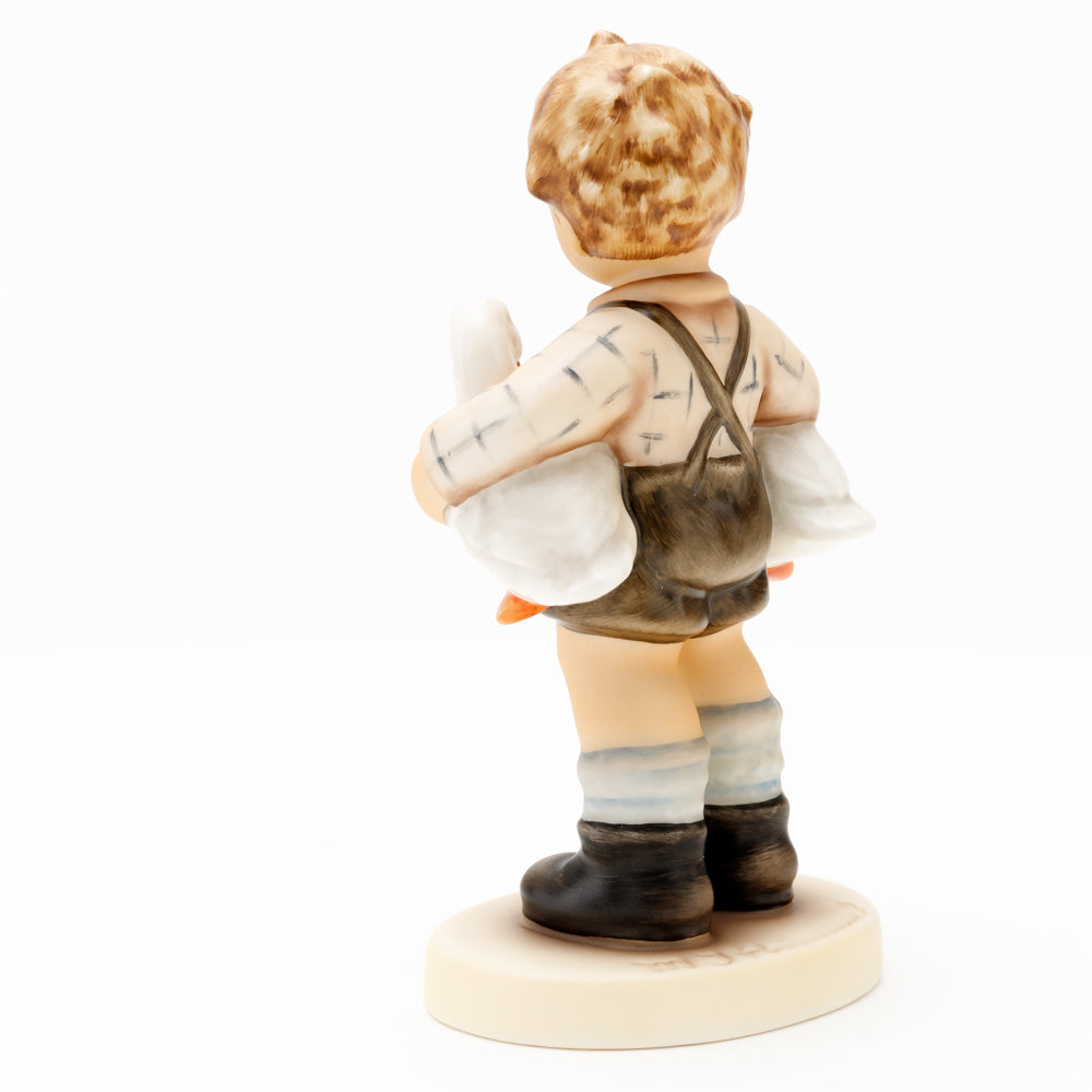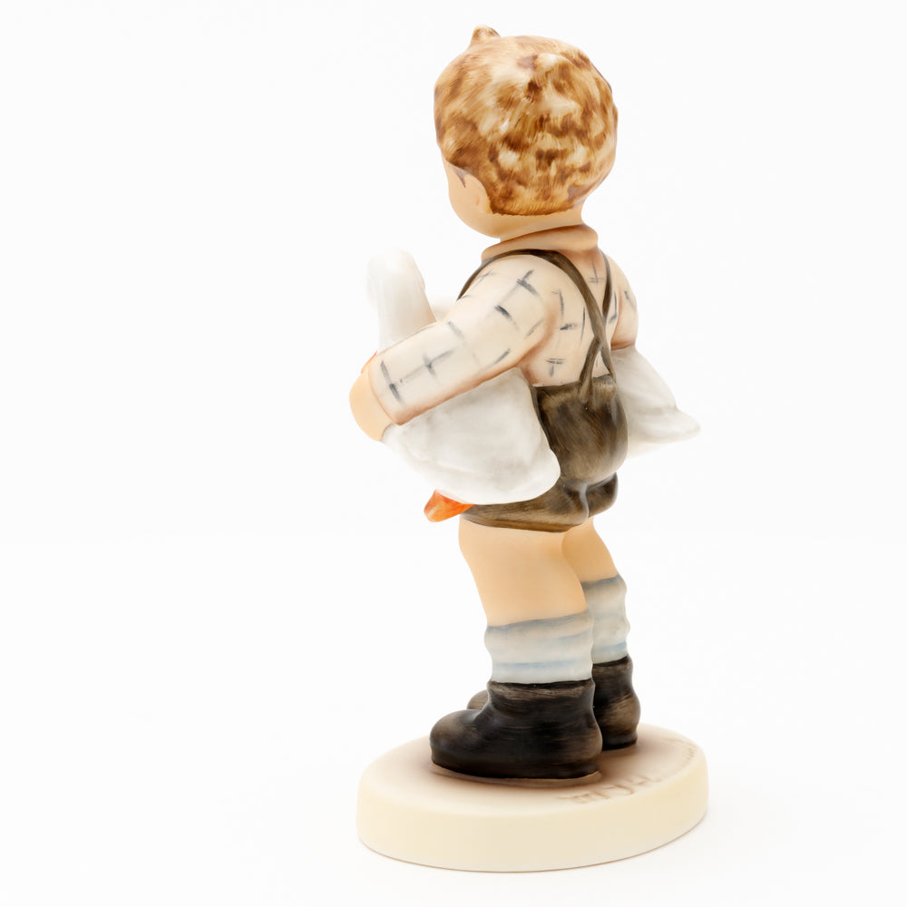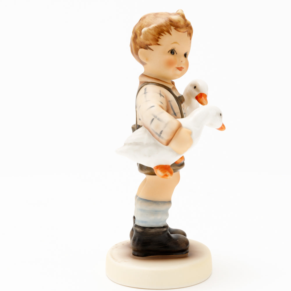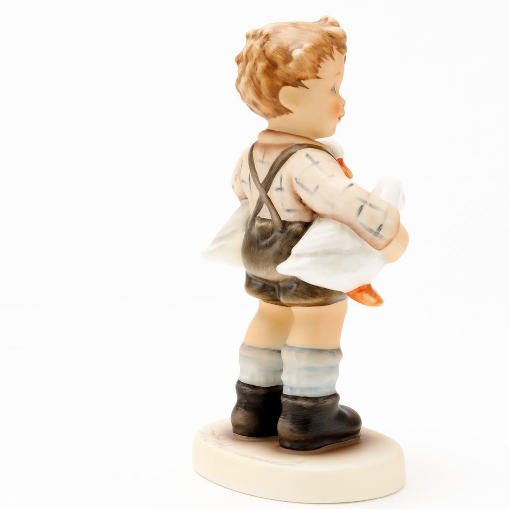 Diese original handgefertigte Hummel-Figur ist nicht nur zu den Osterfeiertagen eine Augenweide! Der "Entenbub" (HUM 2394) besticht auf den ersten Blick durch die in besonderem Glanz gefertigten Entlein. Eine weitere besondere, aber dennoch traditionelle Eigenschaft der von Marion Huschka modellierten Figur ist die Tatsache, dass die Hummel-Figur typisch bayerische Lederhosen trägt. Somit zeigt der Hummel-Junge die Verbundenheit zu seiner aus Bayern stammenden Schöpferin Maria Innocentia Hummel. Die bessere Hälfte der Hummel-Figur findet man in der Figur "Entenmadl" (HUM 2393). Auch diese ist in der typisch traditionellen Hummel-Optik gehalten. Denn der Hummel Manufaktur aus dem oberfränkischen Rödental ist es seit über 80 Jahren eine Herzensangelegenheit, durch einzigartige Handwerkskunst herauszuragen. Demnach werden diese wertvollen Keramikfiguren mit reinster Präzision erschaffen.