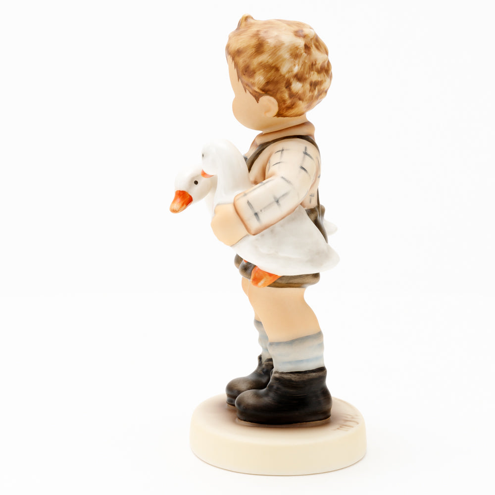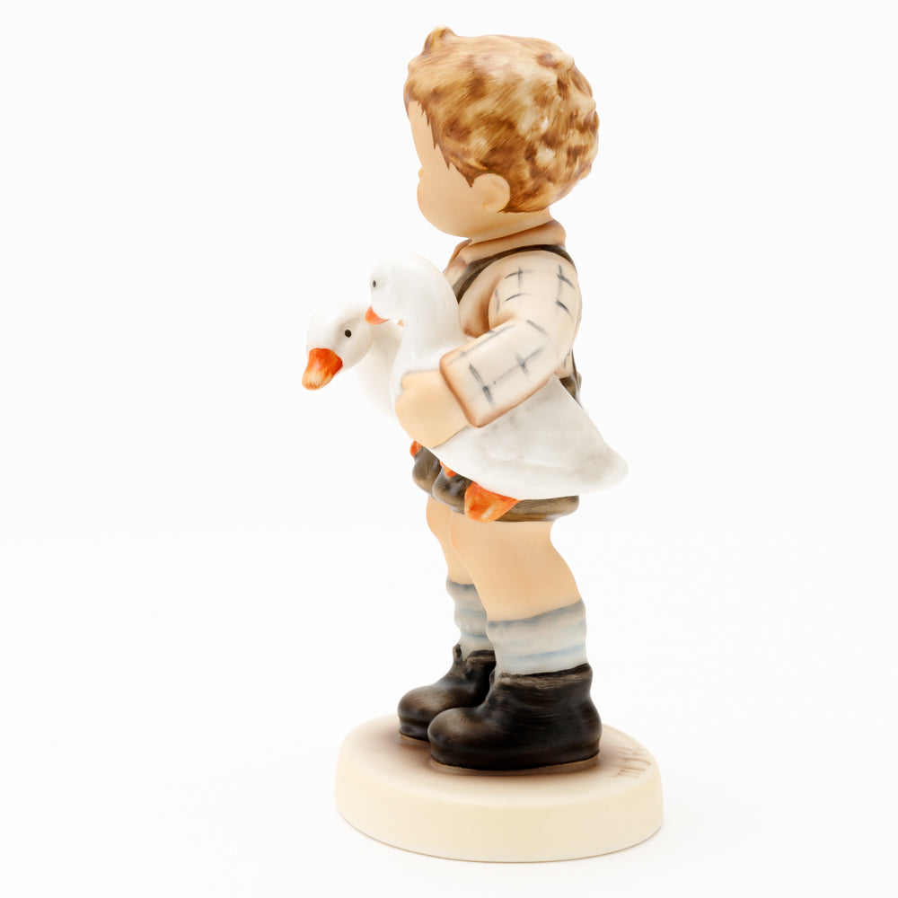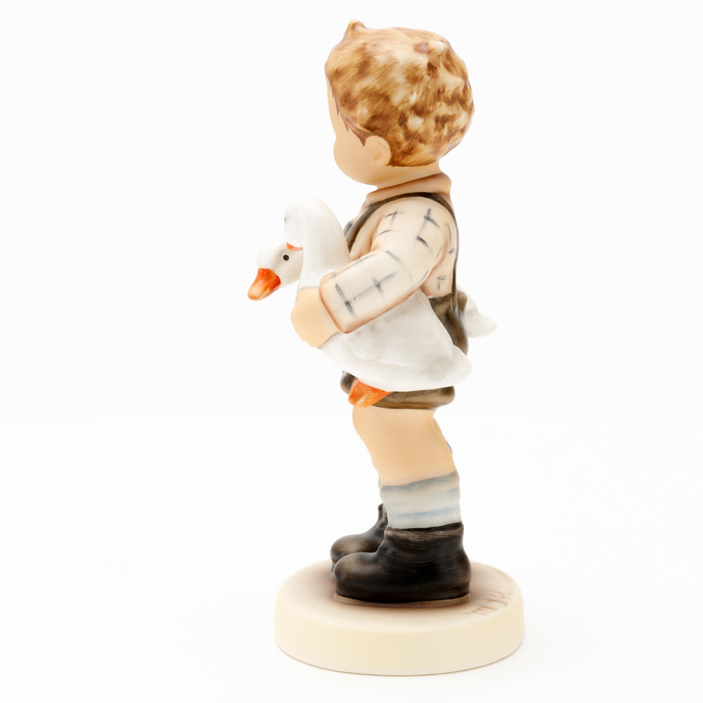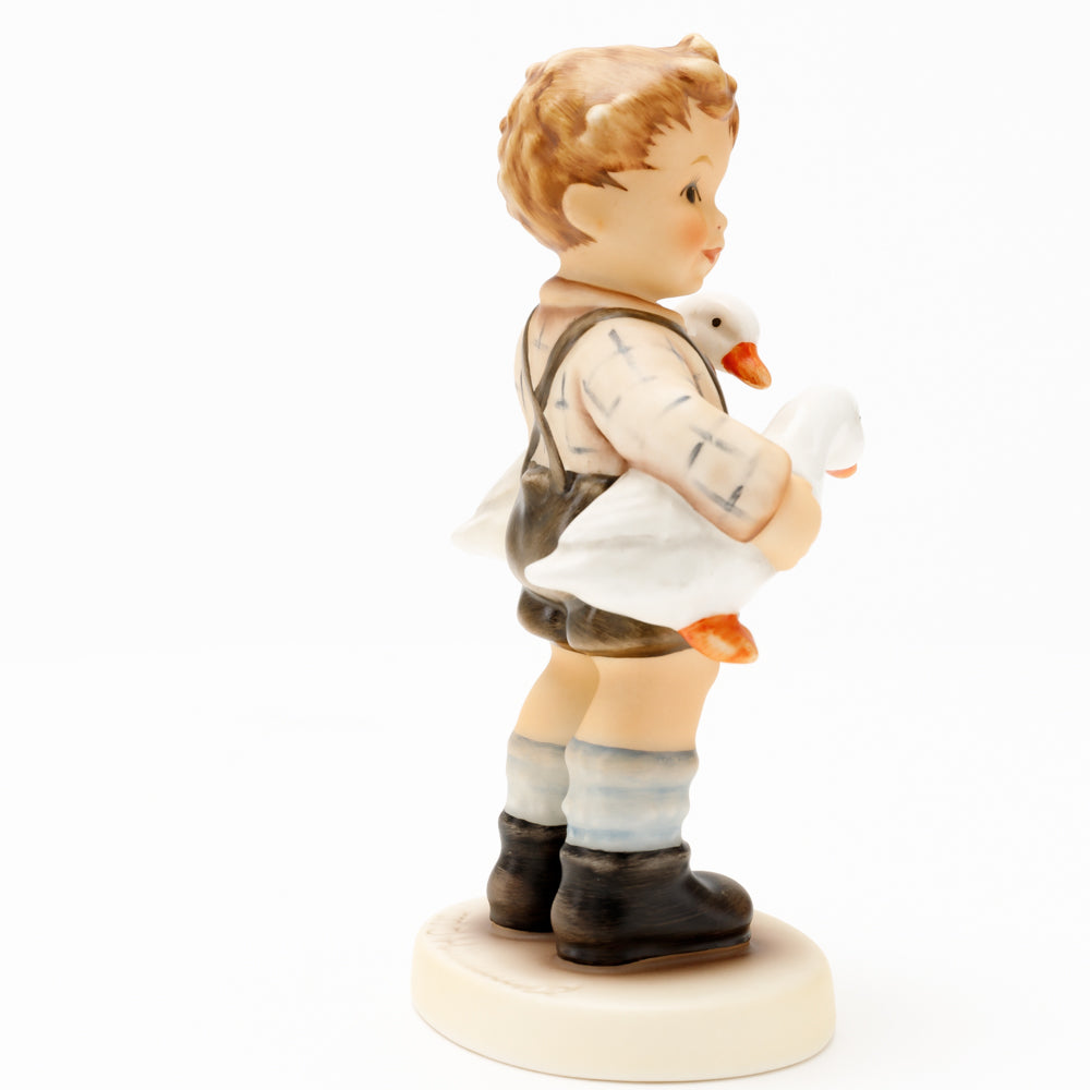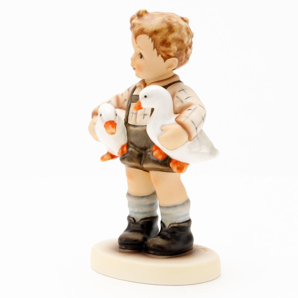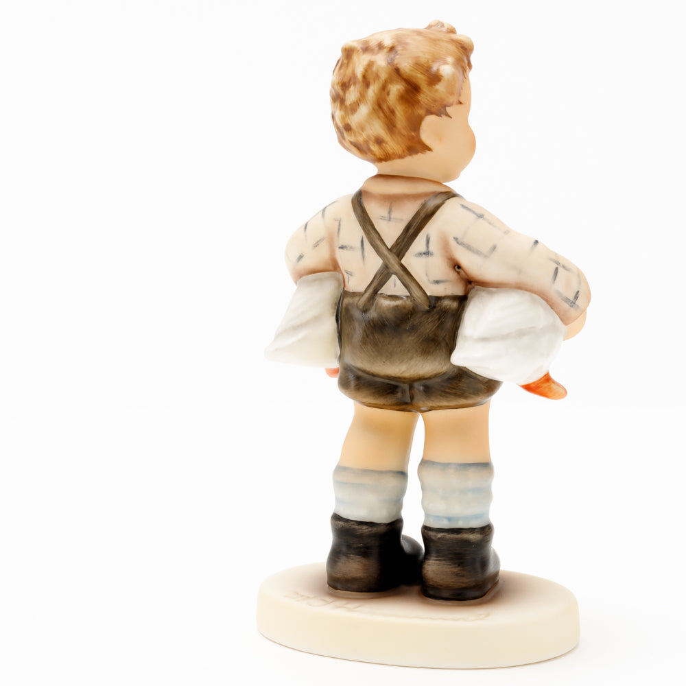 Diese original handgefertigte Hummel-Figur ist nicht nur zu den Osterfeiertagen eine Augenweide! Der "Entenbub" (HUM 2394) besticht auf den ersten Blick durch die in besonderem Glanz gefertigten Entlein. Eine weitere besondere, aber dennoch traditionelle Eigenschaft der von Marion Huschka modellierten Figur ist die Tatsache, dass die Hummel-Figur typisch bayerische Lederhosen trägt. Somit zeigt der Hummel-Junge die Verbundenheit zu seiner aus Bayern stammenden Schöpferin Maria Innocentia Hummel. Die bessere Hälfte der Hummel-Figur findet man in der Figur "Entenmadl" (HUM 2393). Auch diese ist in der typisch traditionellen Hummel-Optik gehalten. Denn der Hummel Manufaktur aus dem oberfränkischen Rödental ist es seit über 80 Jahren eine Herzensangelegenheit, durch einzigartige Handwerkskunst herauszuragen. Demnach werden diese wertvollen Keramikfiguren mit reinster Präzision erschaffen.