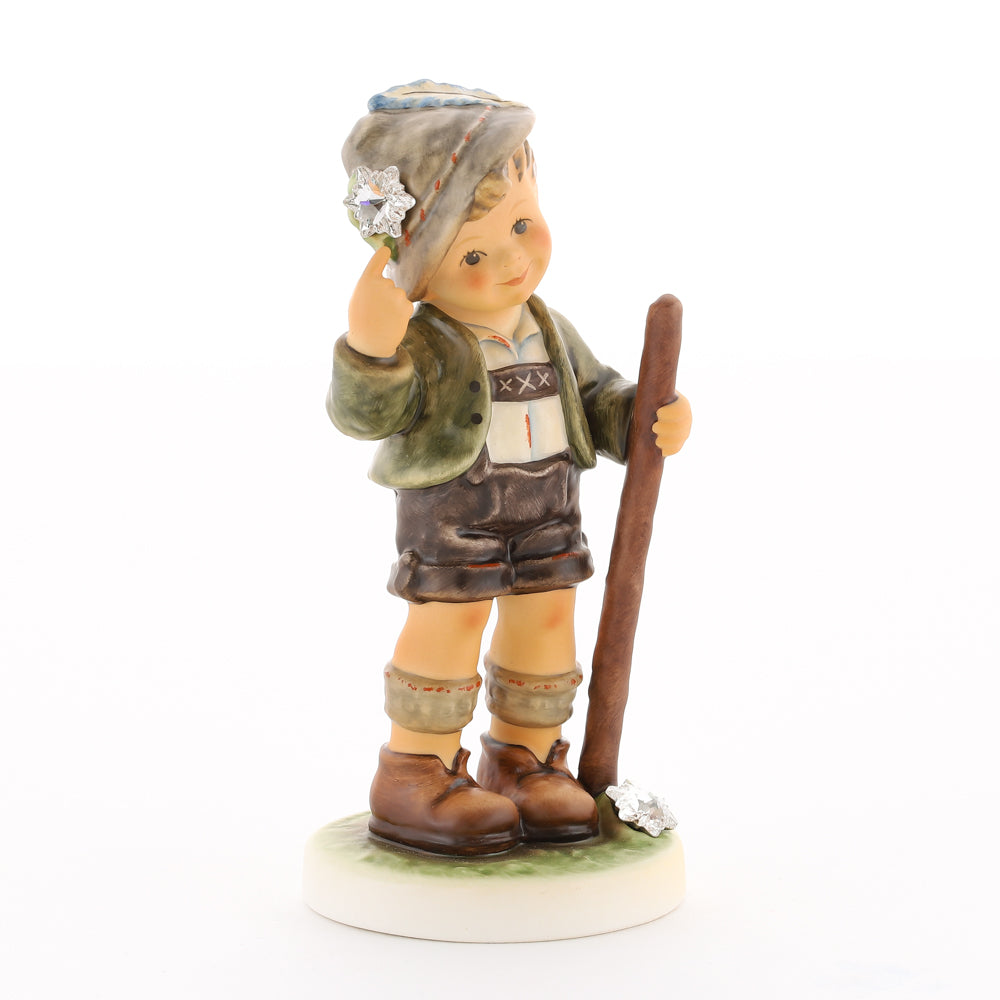 Die Original Hummel-Figur „Mein Edelweiß“ ist nicht nur aufgrund ihrer limitierten Auflage mit 1.999 Stück eine echte Besonderheit: Mit den am Hut und am Sockel angebrachten Swarovski-Steinen vereint die Hummel-Figur gekonnt traditionelles Handwerk und moderne Eleganz.