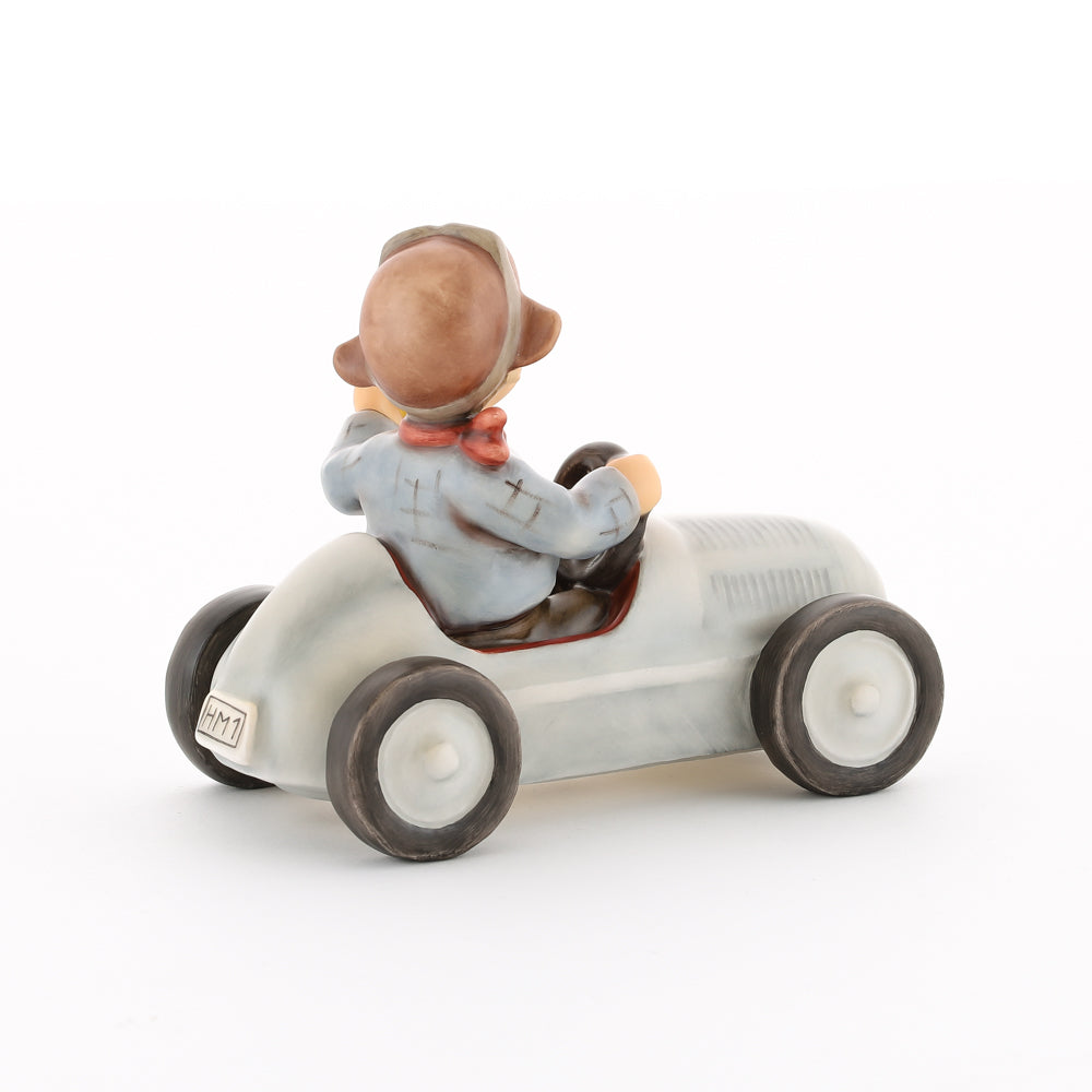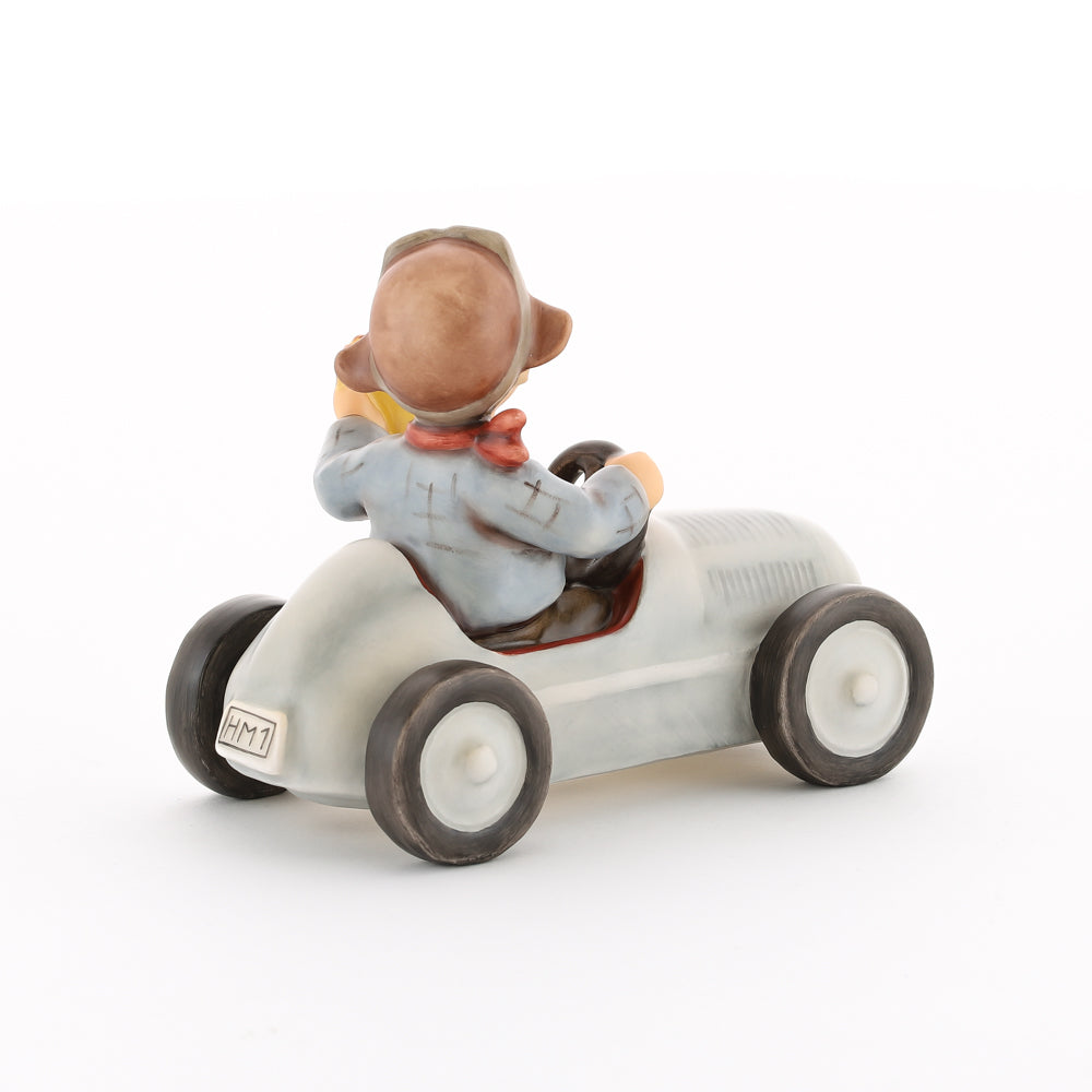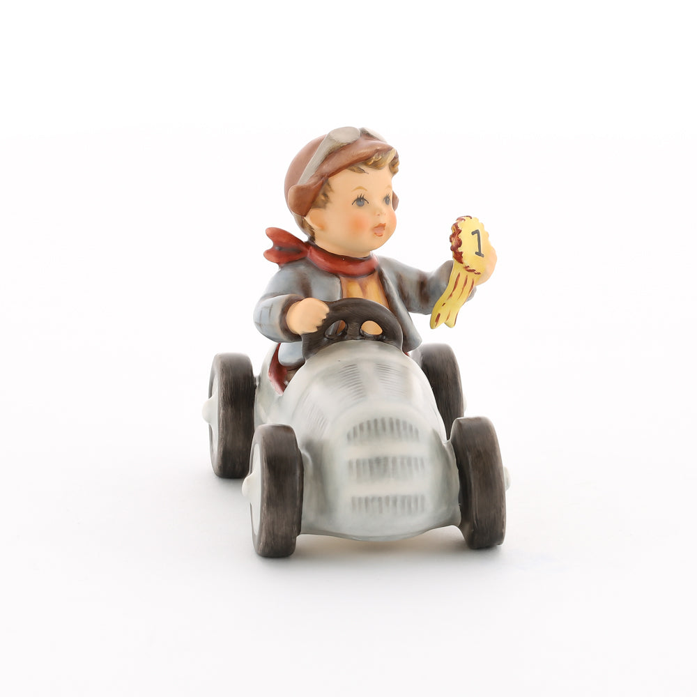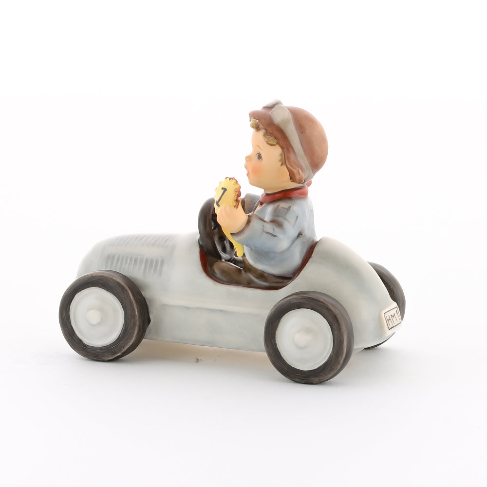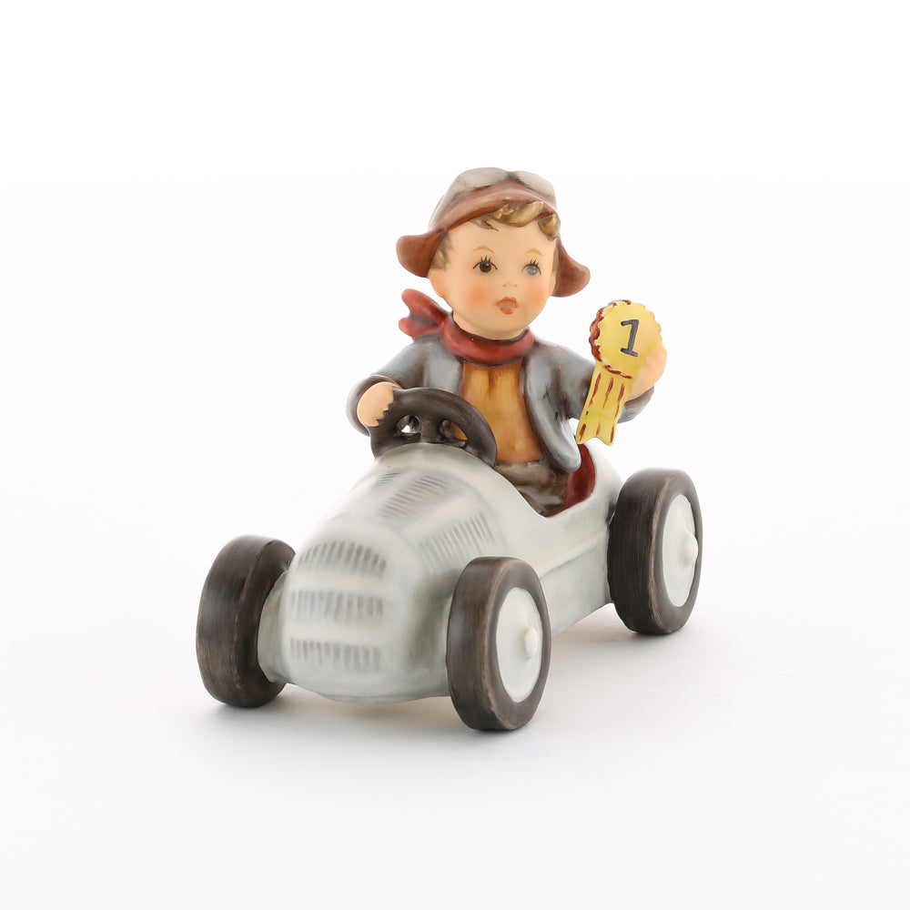 Die Kraft der Motoren, die Faszination der Geschwindigkeit, der Mut zum Risiko, die taktischen Winkelzüge auf der Strecke: Der Autorennsport fesselt die Menschen weltweit. Seit es Autos gibt, suchen Fahrer den Wettbewerb – und Kinder ahmen sie nach. Auch unser Hummel-Junge ist vom Autofahren fasziniert und fühlt sich in seiner Seifenkiste pudelwohl. Für ihn ist das silberne Gefährt aber sicherlich ein waschechter Rennwagen – umso glücklicher hält er seinen Preis für den ersten Platz in der Hand. „Ich habe gewonnen!", ruft er und strahlt über das ganze Gesicht – die Fliegermütze und -brille wackelt auf seinem Kopf.
