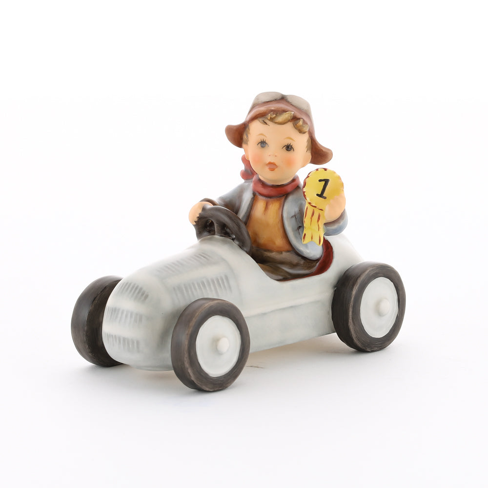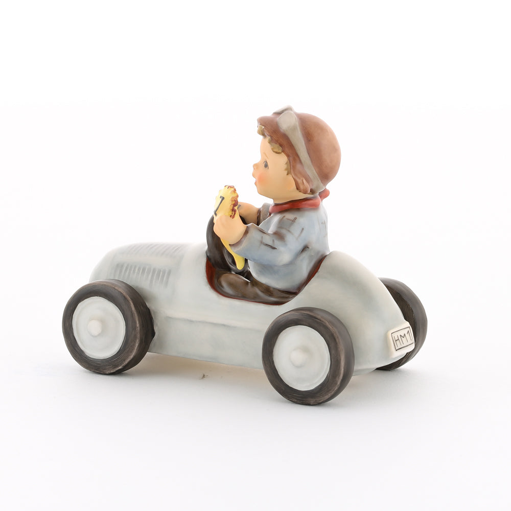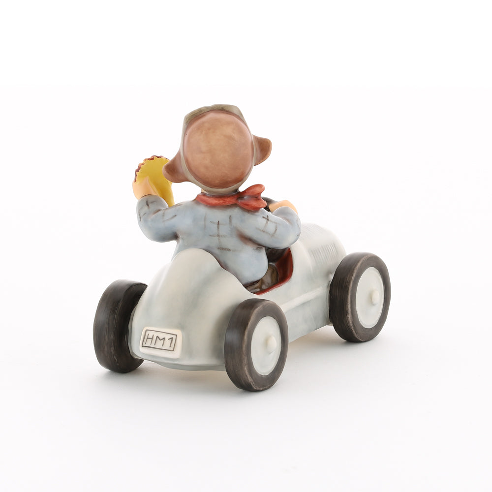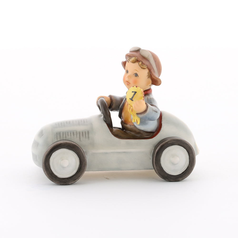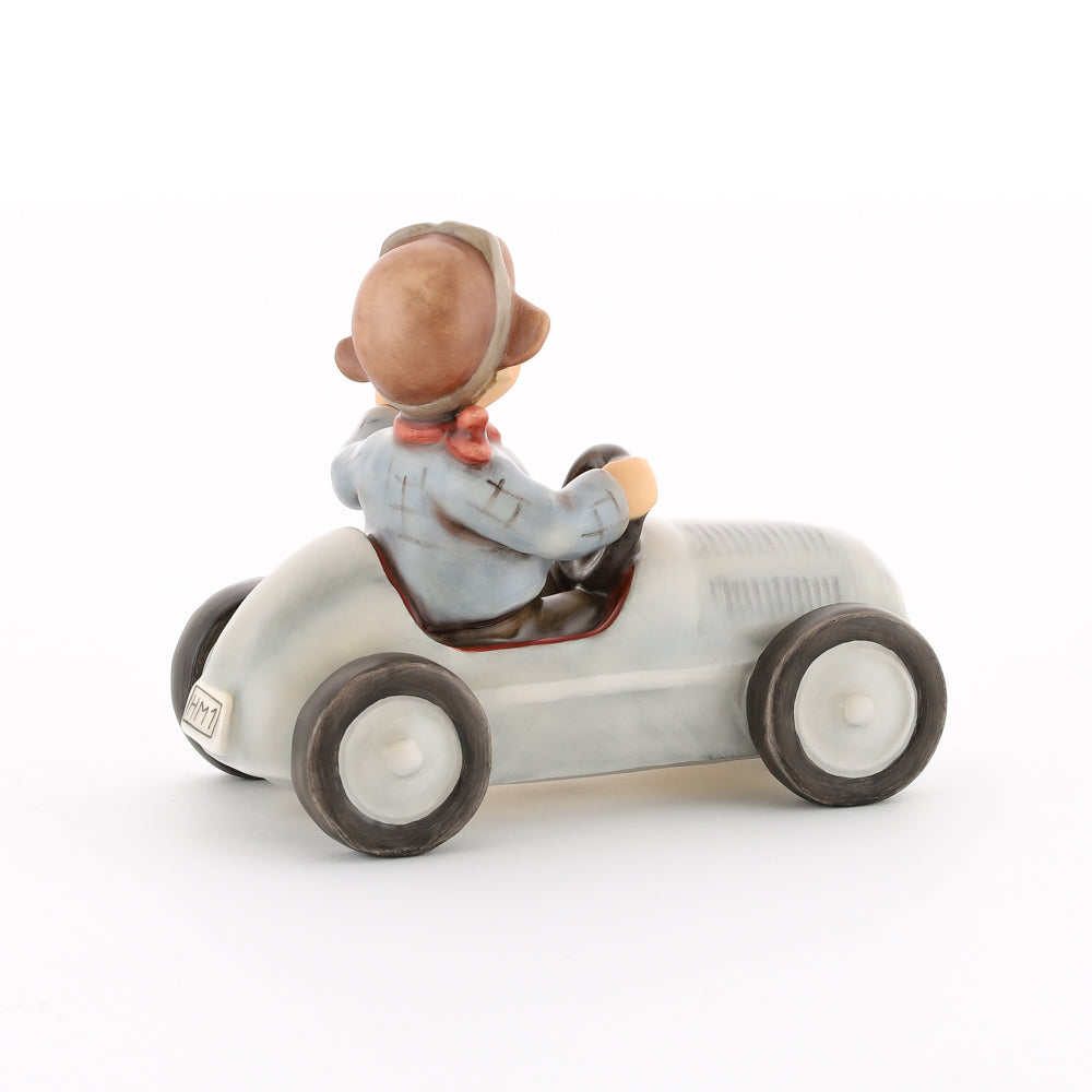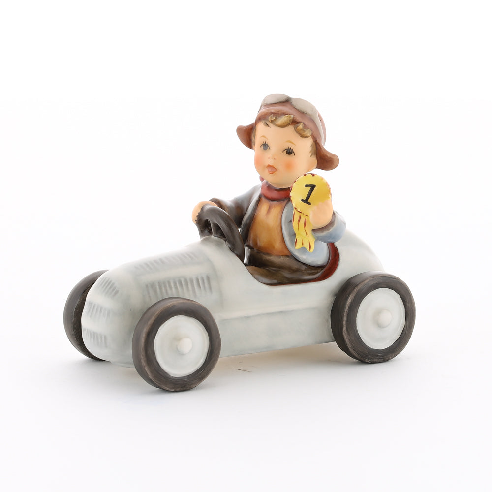 Die Kraft der Motoren, die Faszination der Geschwindigkeit, der Mut zum Risiko, die taktischen Winkelzüge auf der Strecke: Der Autorennsport fesselt die Menschen weltweit. Seit es Autos gibt, suchen Fahrer den Wettbewerb – und Kinder ahmen sie nach. Auch unser Hummel-Junge ist vom Autofahren fasziniert und fühlt sich in seiner Seifenkiste pudelwohl. Für ihn ist das silberne Gefährt aber sicherlich ein waschechter Rennwagen – umso glücklicher hält er seinen Preis für den ersten Platz in der Hand. „Ich habe gewonnen!", ruft er und strahlt über das ganze Gesicht – die Fliegermütze und -brille wackelt auf seinem Kopf.