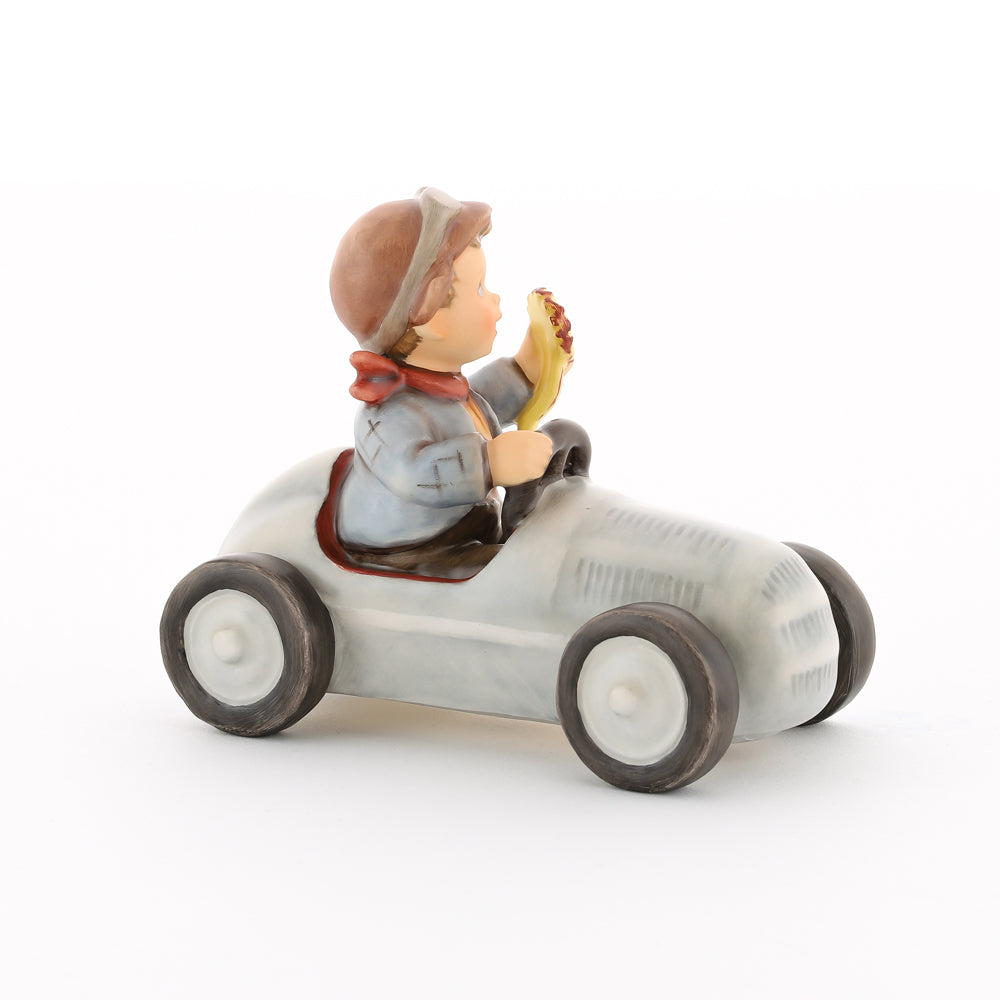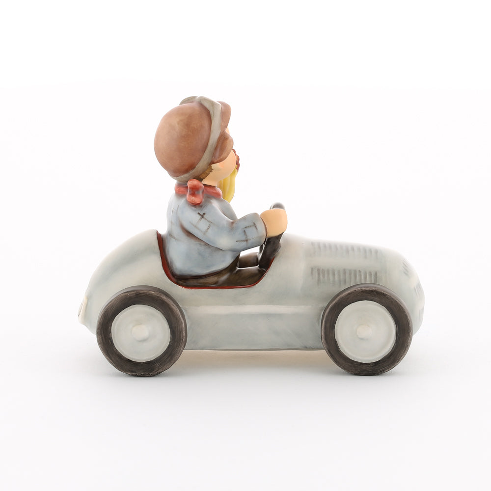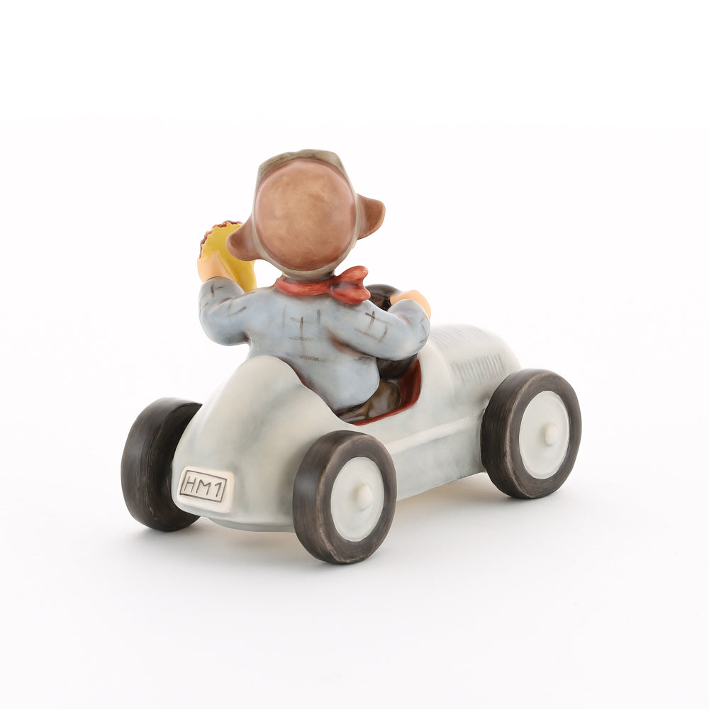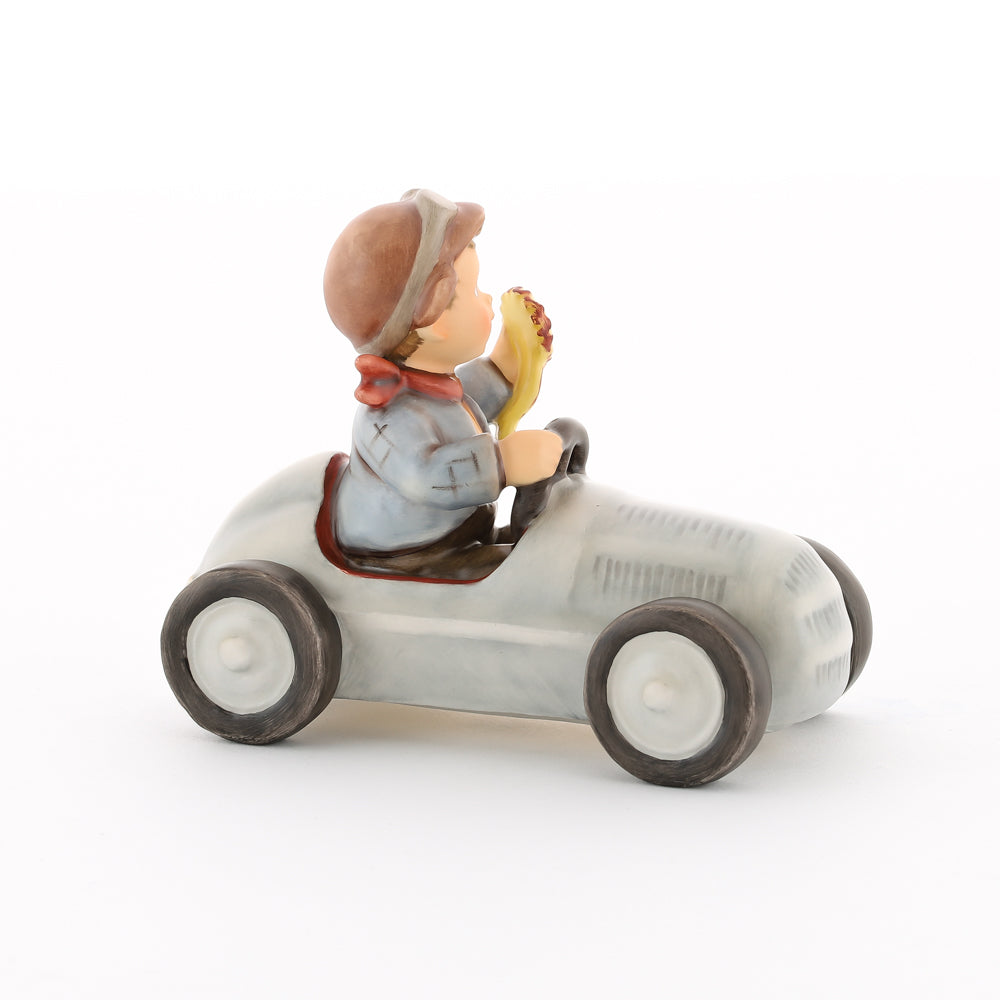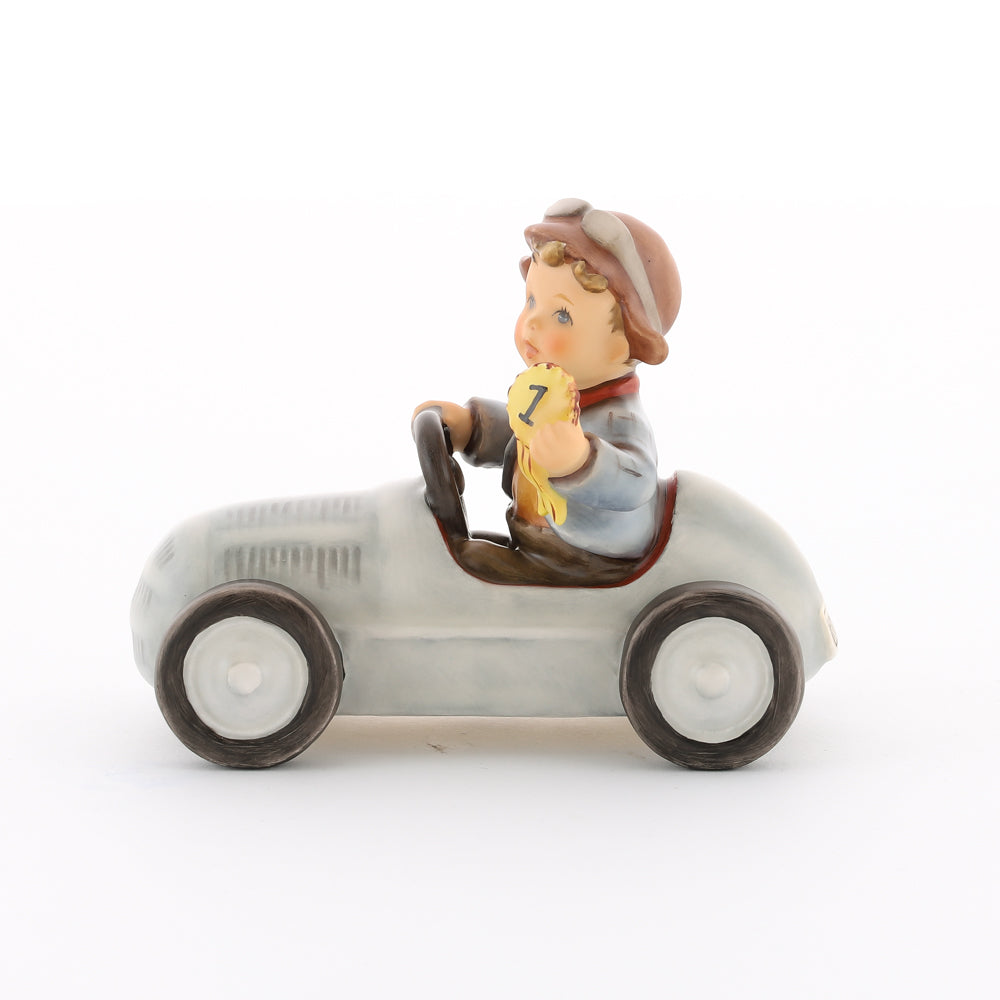 Die Kraft der Motoren, die Faszination der Geschwindigkeit, der Mut zum Risiko, die taktischen Winkelzüge auf der Strecke: Der Autorennsport fesselt die Menschen weltweit. Seit es Autos gibt, suchen Fahrer den Wettbewerb – und Kinder ahmen sie nach. Auch unser Hummel-Junge ist vom Autofahren fasziniert und fühlt sich in seiner Seifenkiste pudelwohl. Für ihn ist das silberne Gefährt aber sicherlich ein waschechter Rennwagen – umso glücklicher hält er seinen Preis für den ersten Platz in der Hand. „Ich habe gewonnen!", ruft er und strahlt über das ganze Gesicht – die Fliegermütze und -brille wackelt auf seinem Kopf.