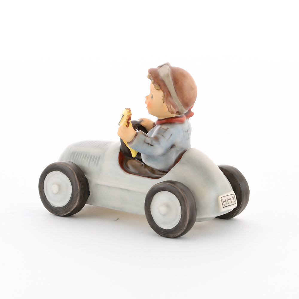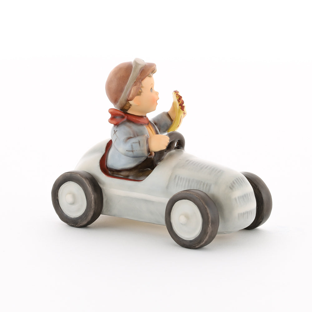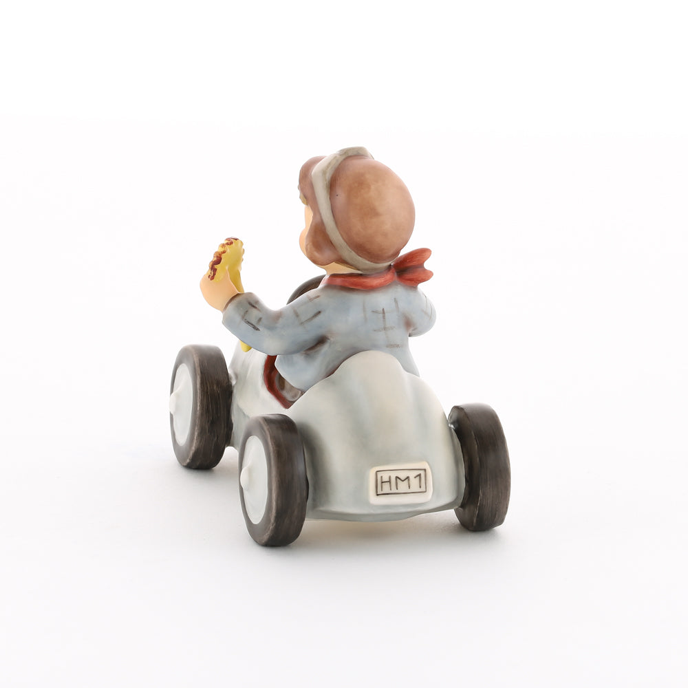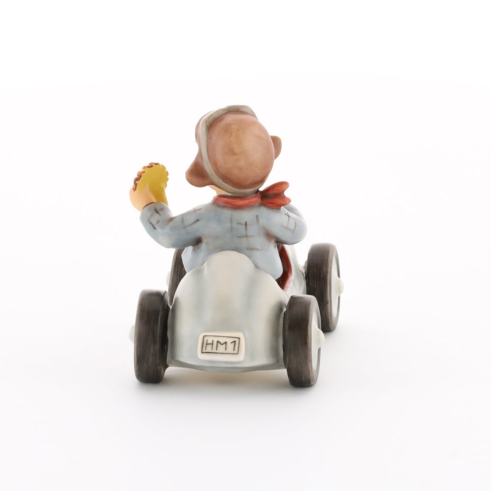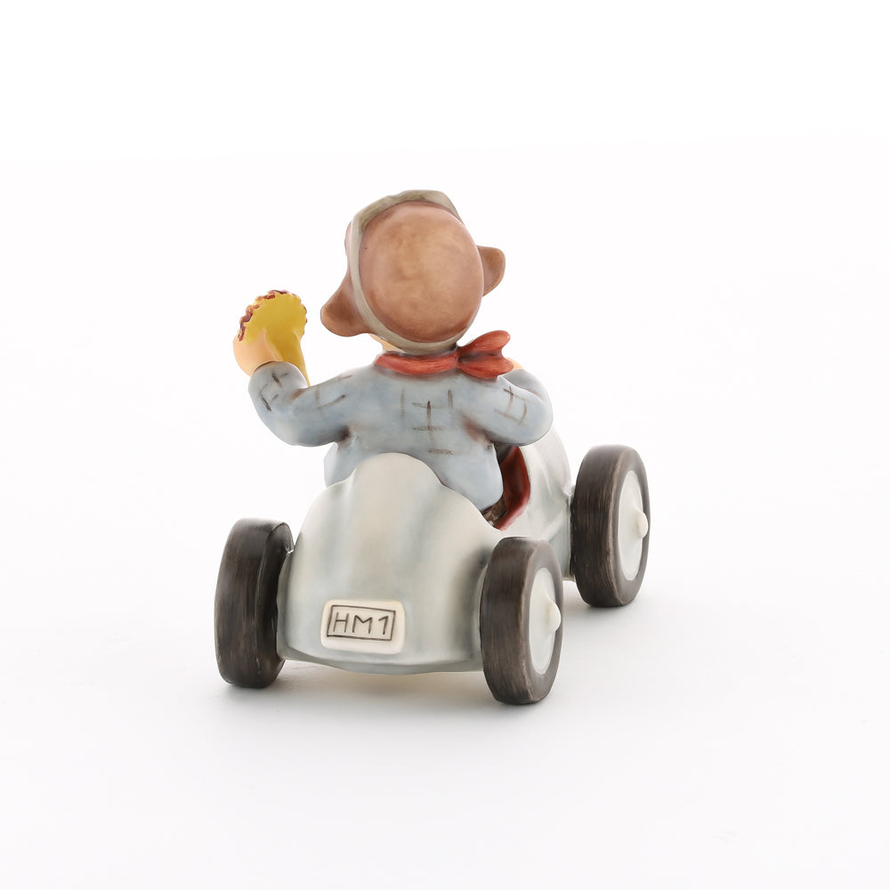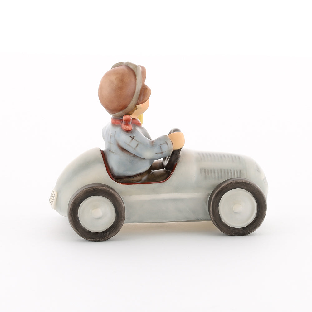 Die Kraft der Motoren, die Faszination der Geschwindigkeit, der Mut zum Risiko, die taktischen Winkelzüge auf der Strecke: Der Autorennsport fesselt die Menschen weltweit. Seit es Autos gibt, suchen Fahrer den Wettbewerb – und Kinder ahmen sie nach. Auch unser Hummel-Junge ist vom Autofahren fasziniert und fühlt sich in seiner Seifenkiste pudelwohl. Für ihn ist das silberne Gefährt aber sicherlich ein waschechter Rennwagen – umso glücklicher hält er seinen Preis für den ersten Platz in der Hand. „Ich habe gewonnen!", ruft er und strahlt über das ganze Gesicht – die Fliegermütze und -brille wackelt auf seinem Kopf.