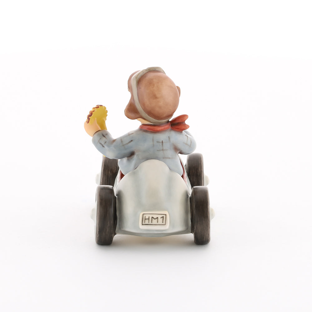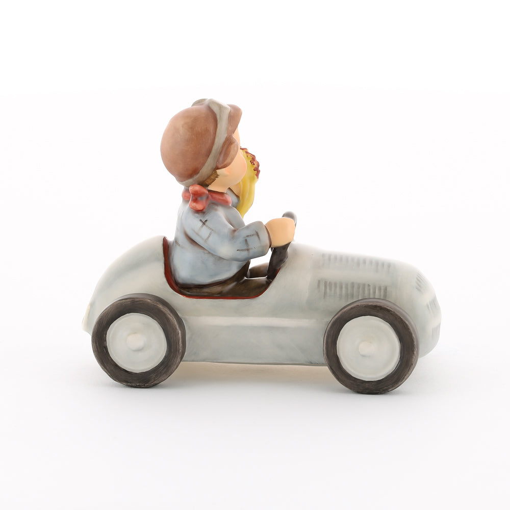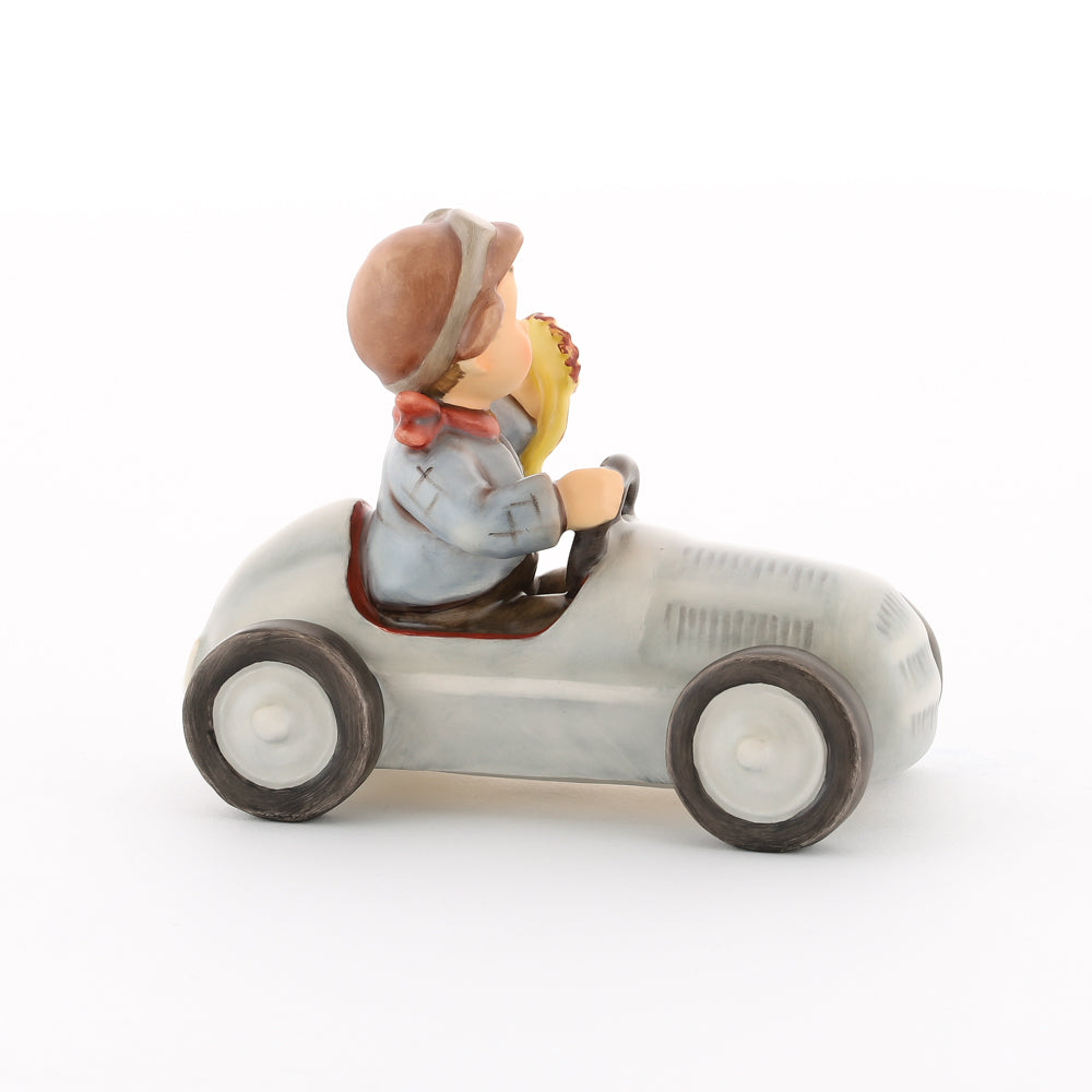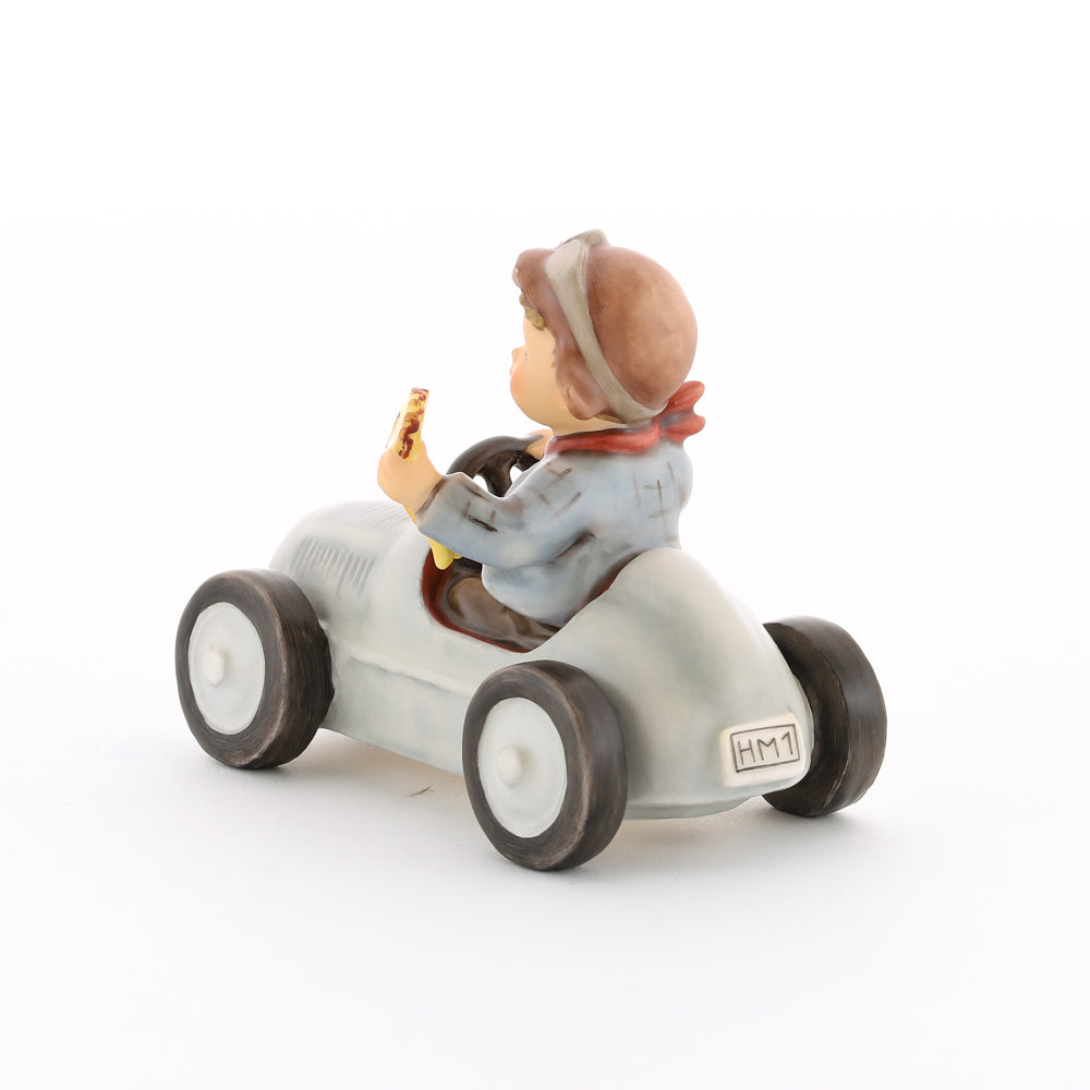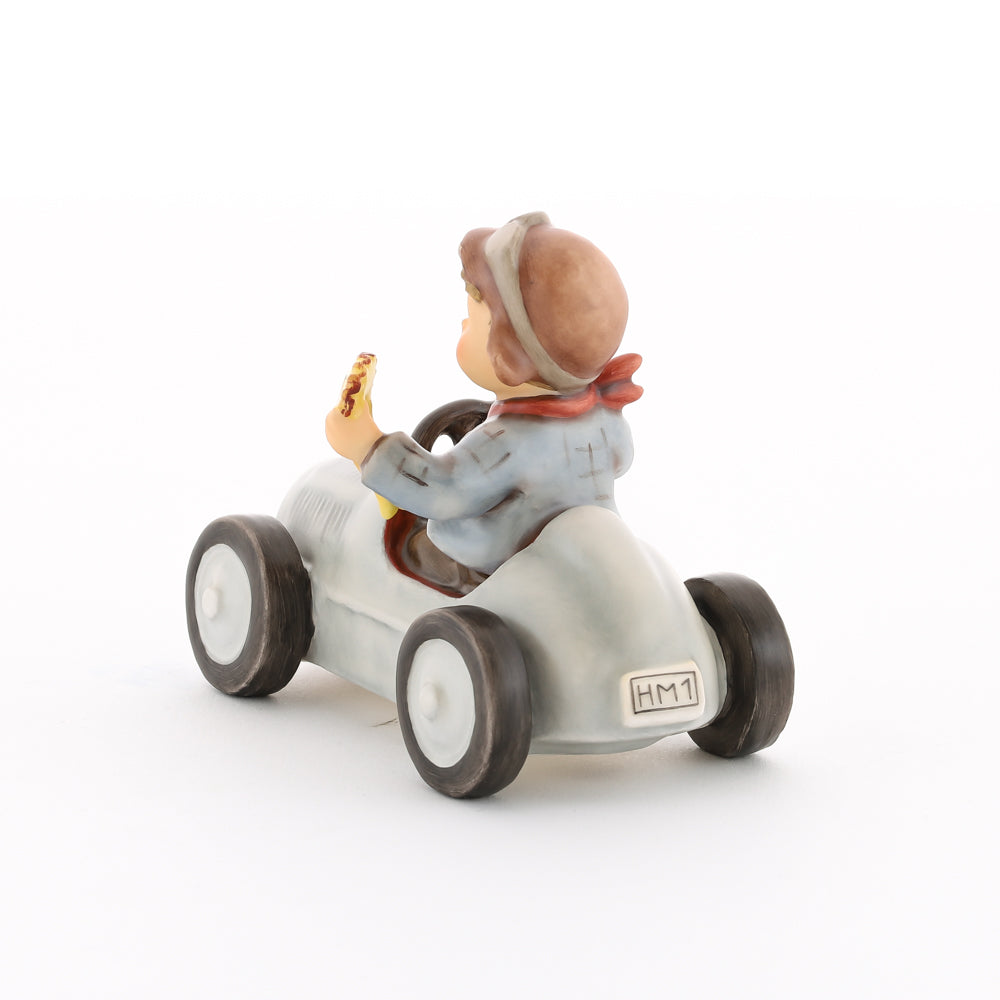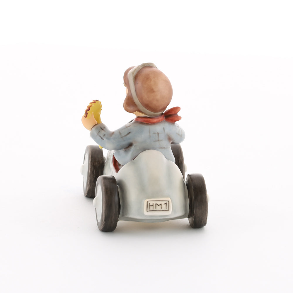 Die Kraft der Motoren, die Faszination der Geschwindigkeit, der Mut zum Risiko, die taktischen Winkelzüge auf der Strecke: Der Autorennsport fesselt die Menschen weltweit. Seit es Autos gibt, suchen Fahrer den Wettbewerb – und Kinder ahmen sie nach. Auch unser Hummel-Junge ist vom Autofahren fasziniert und fühlt sich in seiner Seifenkiste pudelwohl. Für ihn ist das silberne Gefährt aber sicherlich ein waschechter Rennwagen – umso glücklicher hält er seinen Preis für den ersten Platz in der Hand. „Ich habe gewonnen!", ruft er und strahlt über das ganze Gesicht – die Fliegermütze und -brille wackelt auf seinem Kopf.