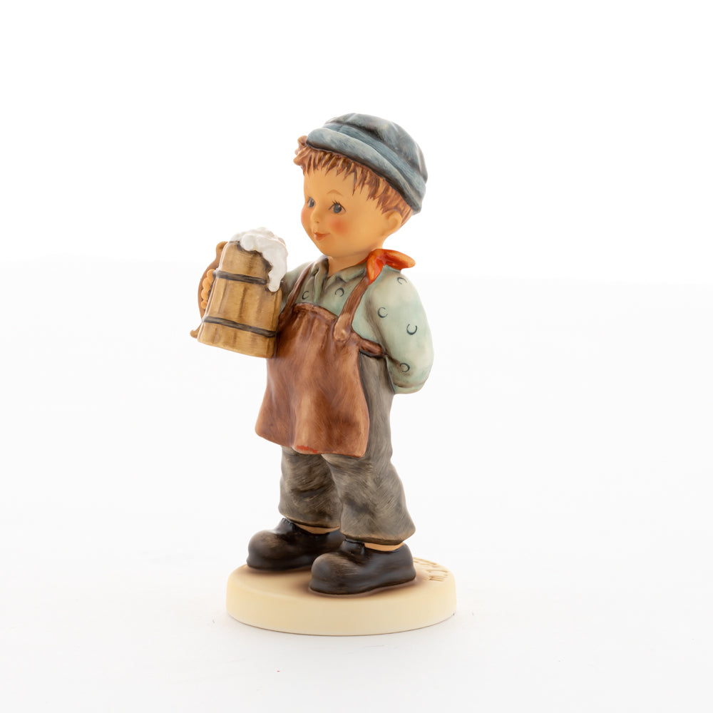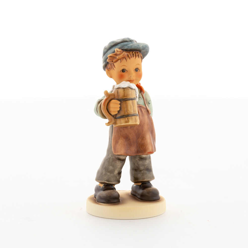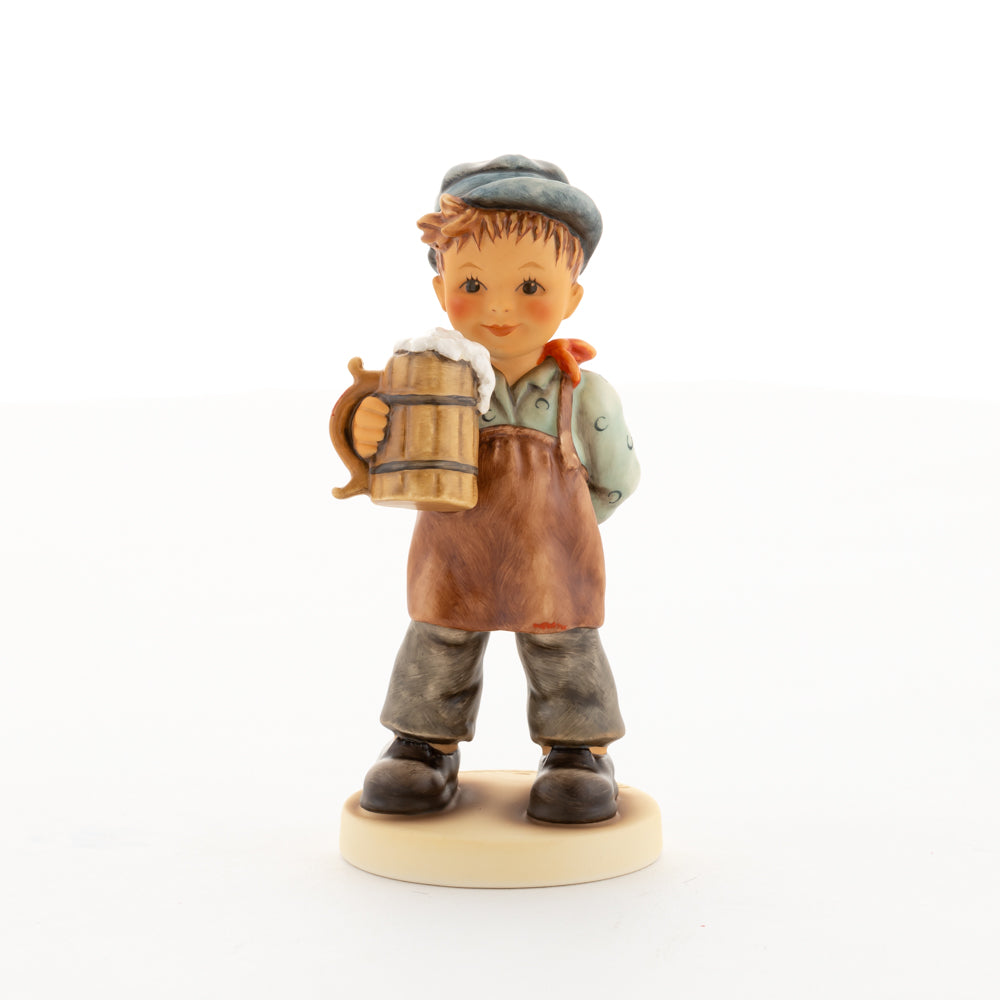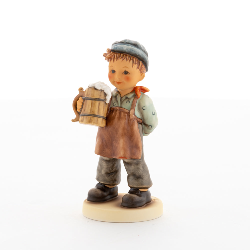 Er meint es gut mit seinem Opa: Einen stattlichen Krug voll mit frischem, schäumendem Bier hat der Hummel-Junge seinem Großvater geholt. Wie ein echter Profi hält er den Krug mit nur einer Hand fest und auch sonst sieht der kleine Bub aus, als würde er fest zur Wirtschaft gehören: Die blaue Mütze sitzt auf dem Kopf und die Schürze trägt er mit Stolz. Und wer weiß: Vielleicht braut unser Hummel-Junge ja irgendwann sein ganz eigenes Bier?