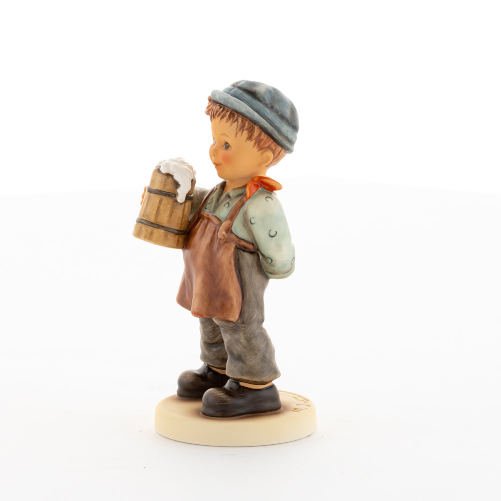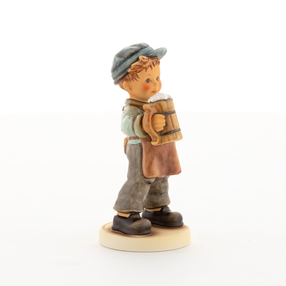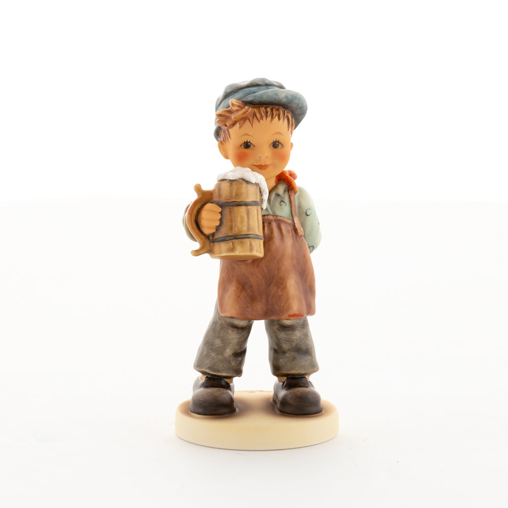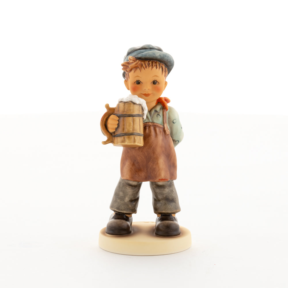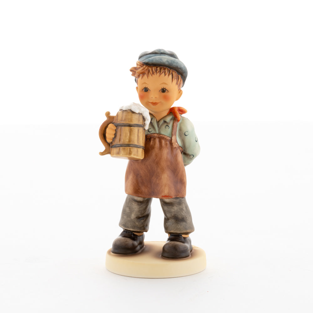Er meint es gut mit seinem Opa: Einen stattlichen Krug voll mit frischem, schäumendem Bier hat der Hummel-Junge seinem Großvater geholt. Wie ein echter Profi hält er den Krug mit nur einer Hand fest und auch sonst sieht der kleine Bub aus, als würde er fest zur Wirtschaft gehören: Die blaue Mütze sitzt auf dem Kopf und die Schürze trägt er mit Stolz. Und wer weiß: Vielleicht braut unser Hummel-Junge ja irgendwann sein ganz eigenes Bier?