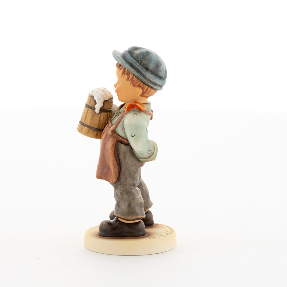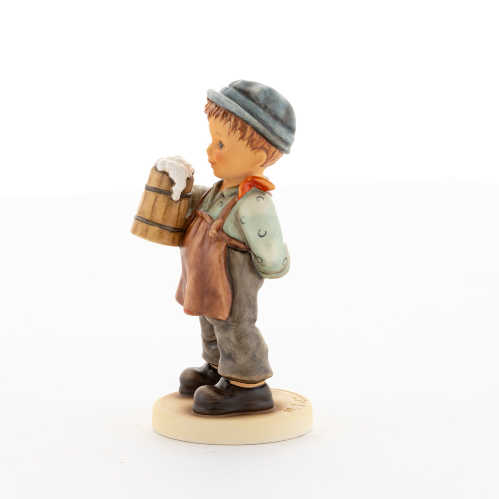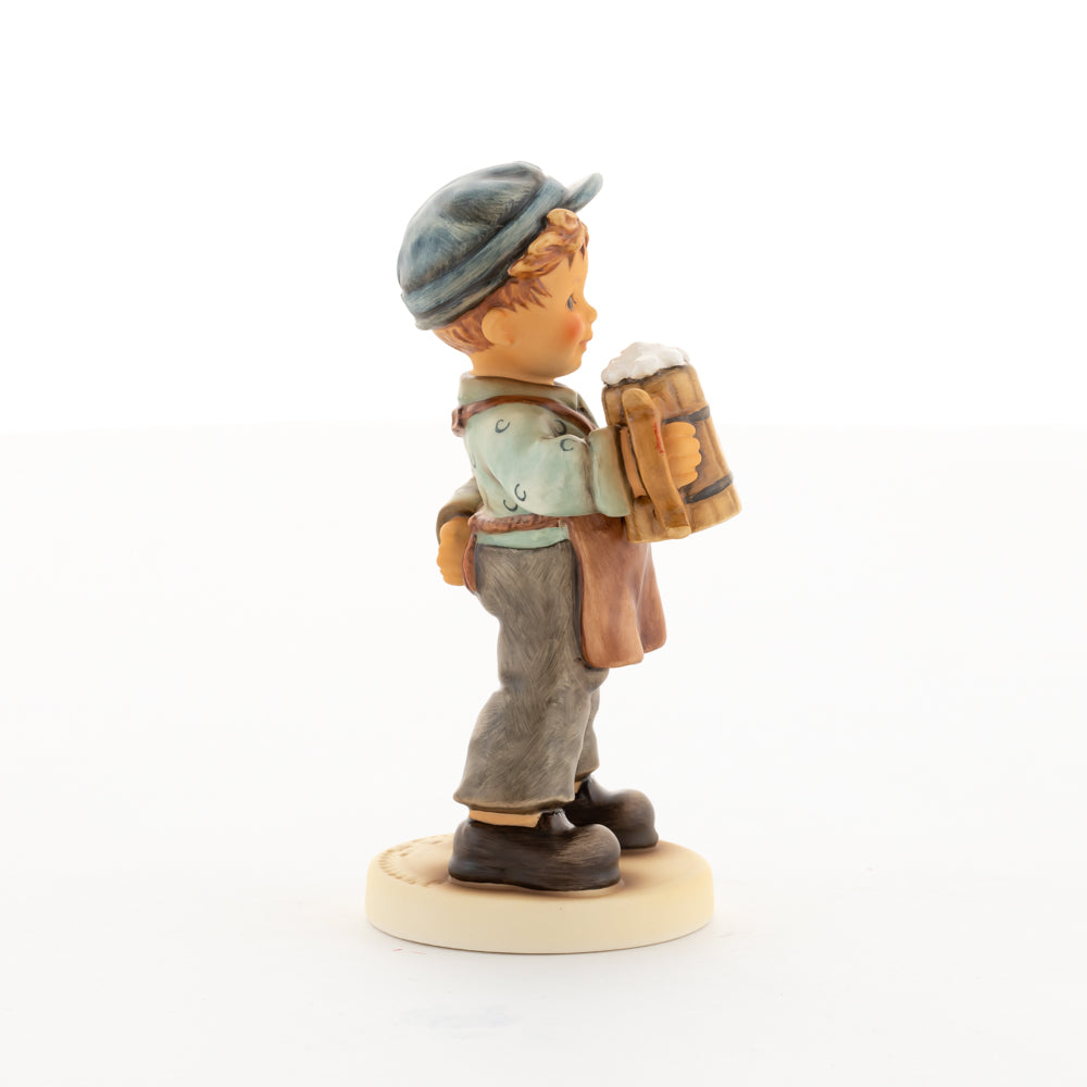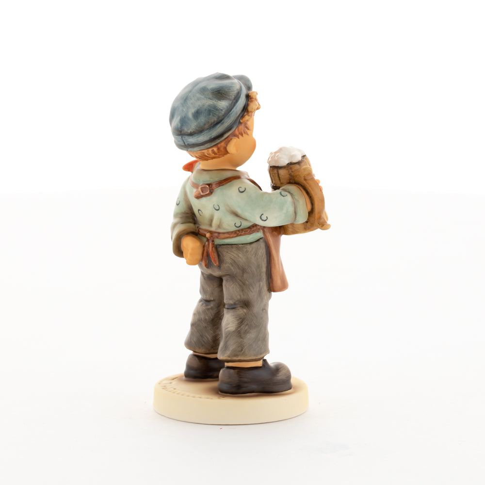 Er meint es gut mit seinem Opa: Einen stattlichen Krug voll mit frischem, schäumendem Bier hat der Hummel-Junge seinem Großvater geholt. Wie ein echter Profi hält er den Krug mit nur einer Hand fest und auch sonst sieht der kleine Bub aus, als würde er fest zur Wirtschaft gehören: Die blaue Mütze sitzt auf dem Kopf und die Schürze trägt er mit Stolz. Und wer weiß: Vielleicht braut unser Hummel-Junge ja irgendwann sein ganz eigenes Bier?