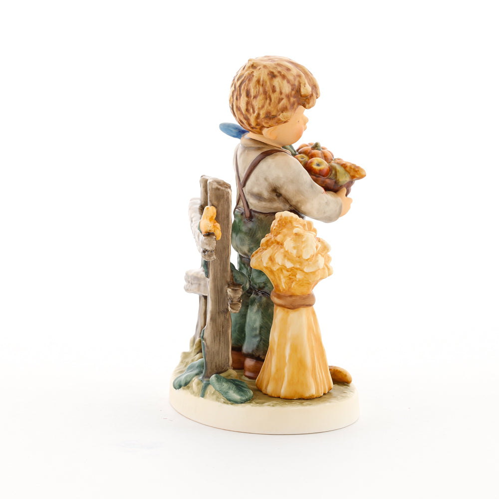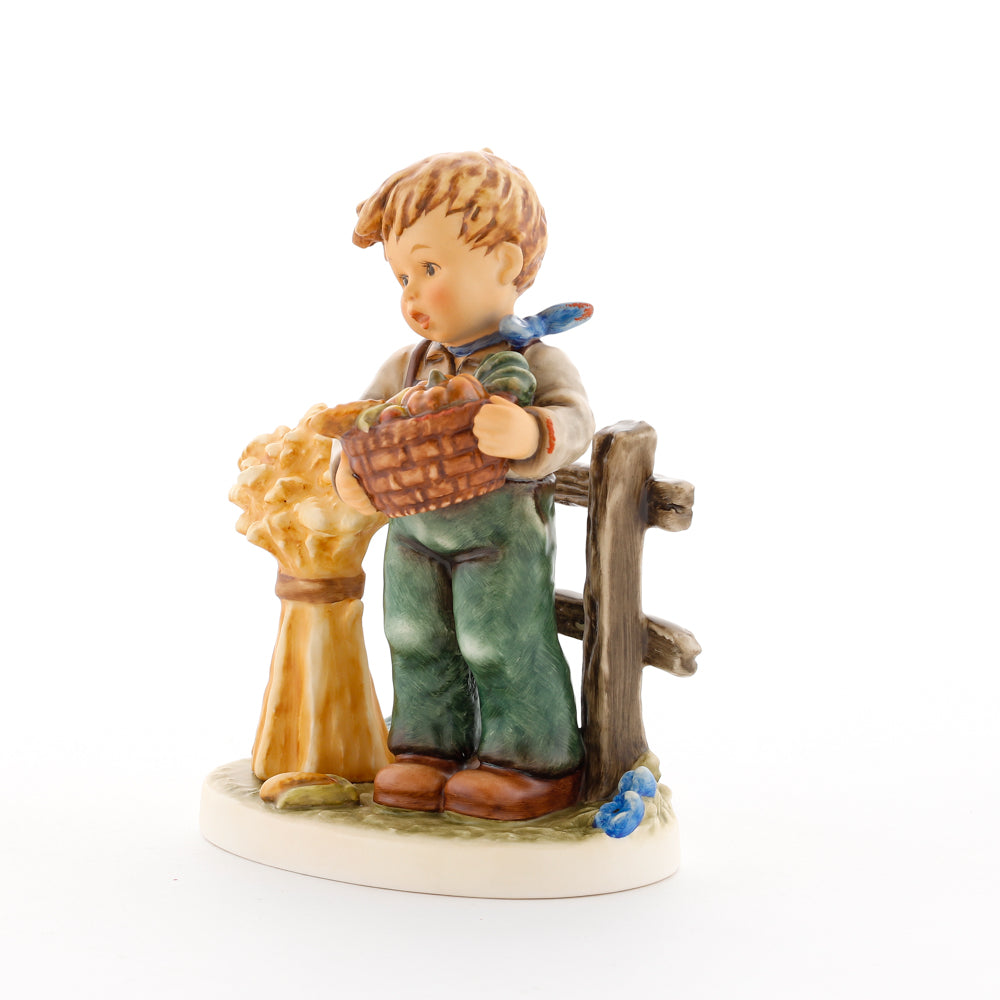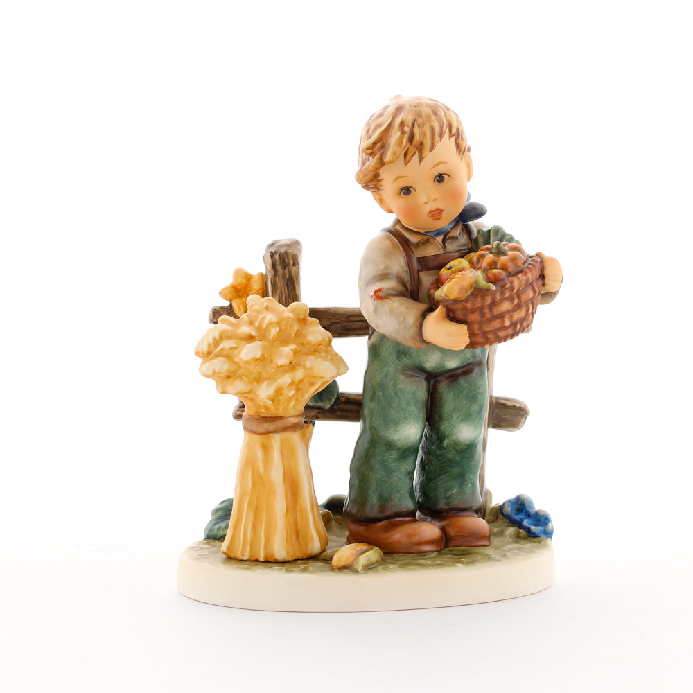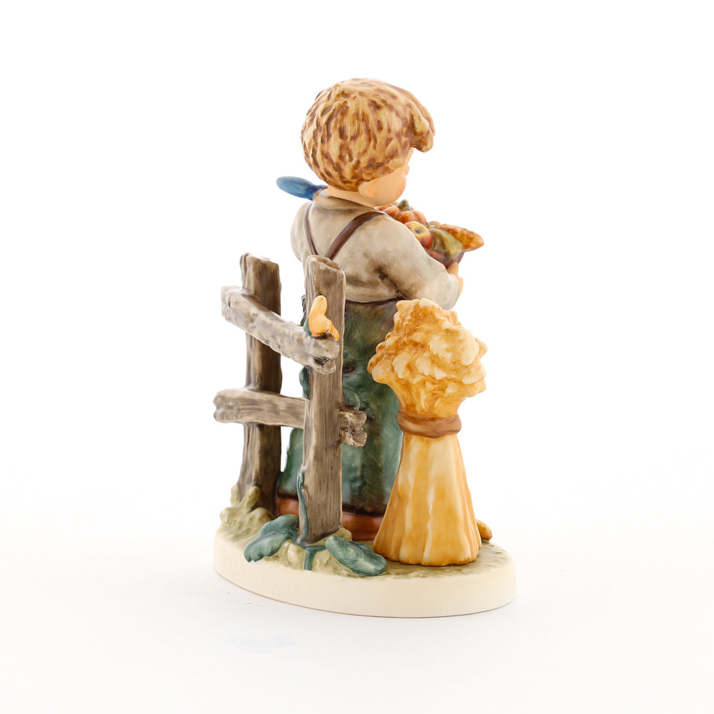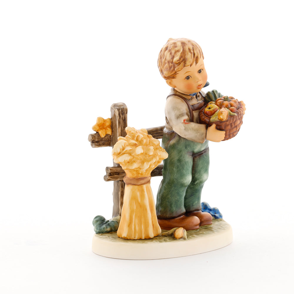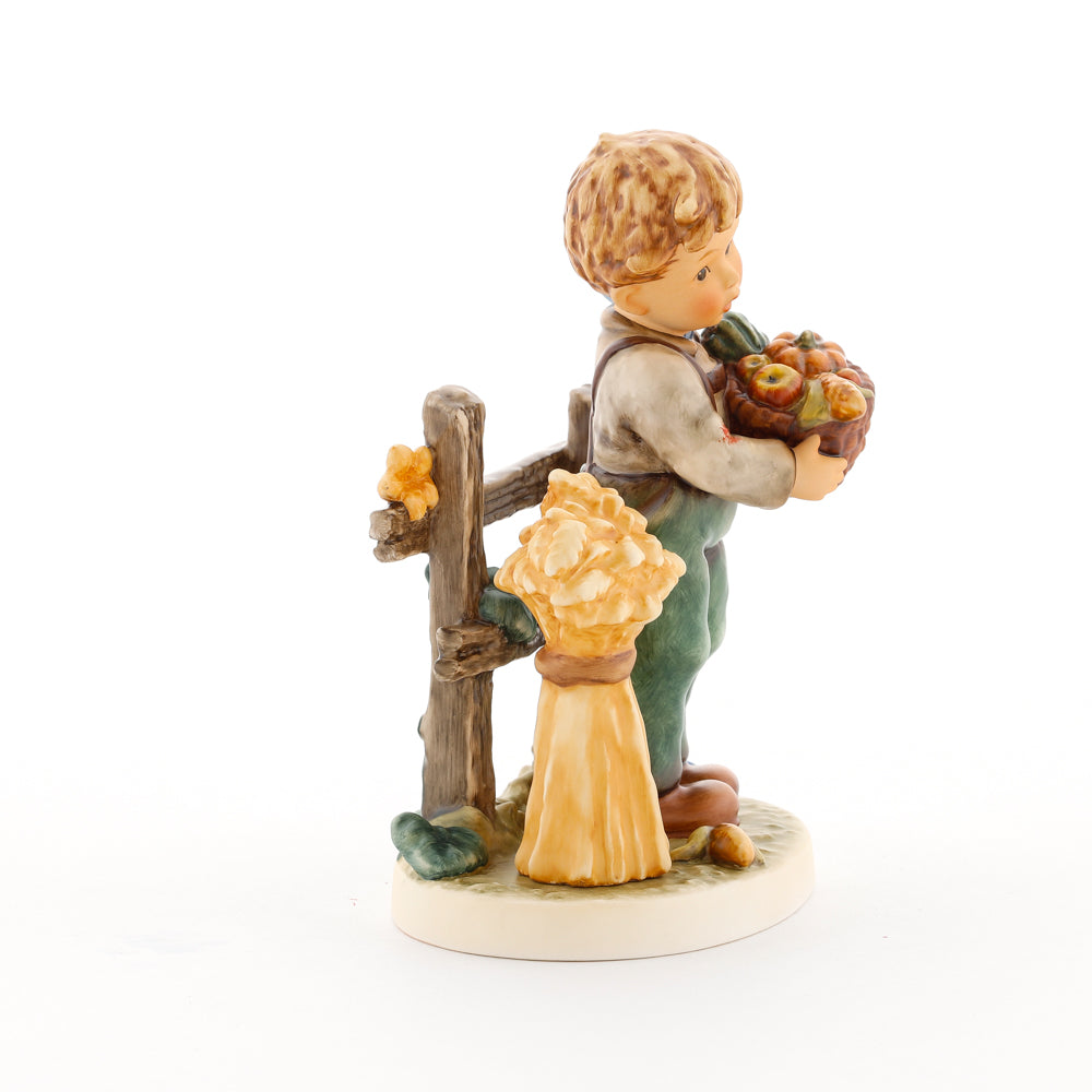 Die Hummel-Figur „Erntedank (Truthahn)“ (HUM 2439) ergänzt diese Figur wunderbar. Angespielt wird hier auf das amerikanische Traditionsfest Thanksgiving, bei dem Truthahn (auf Englisch „Turkey“) serviert wird. Des Weiteren harmoniert auch die Figur „Süße Ernte“ (HUM 2372), die ein zauberhaft süßes Herbst-Mädchen bei ihrer Gabendarbietung zeigt.