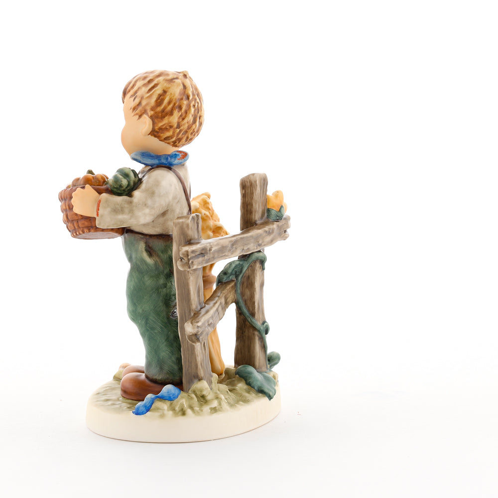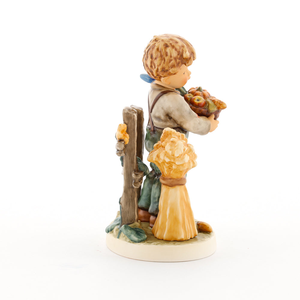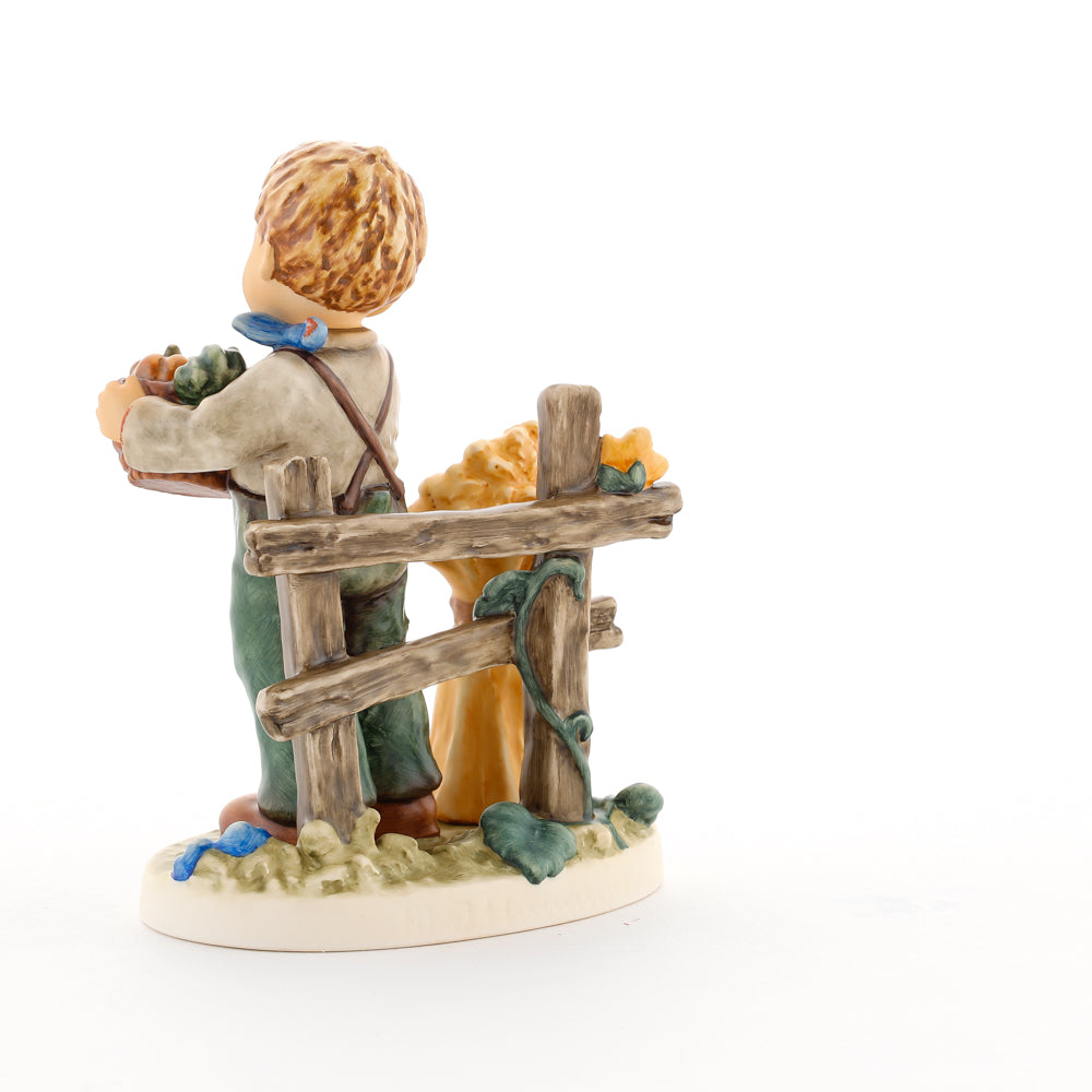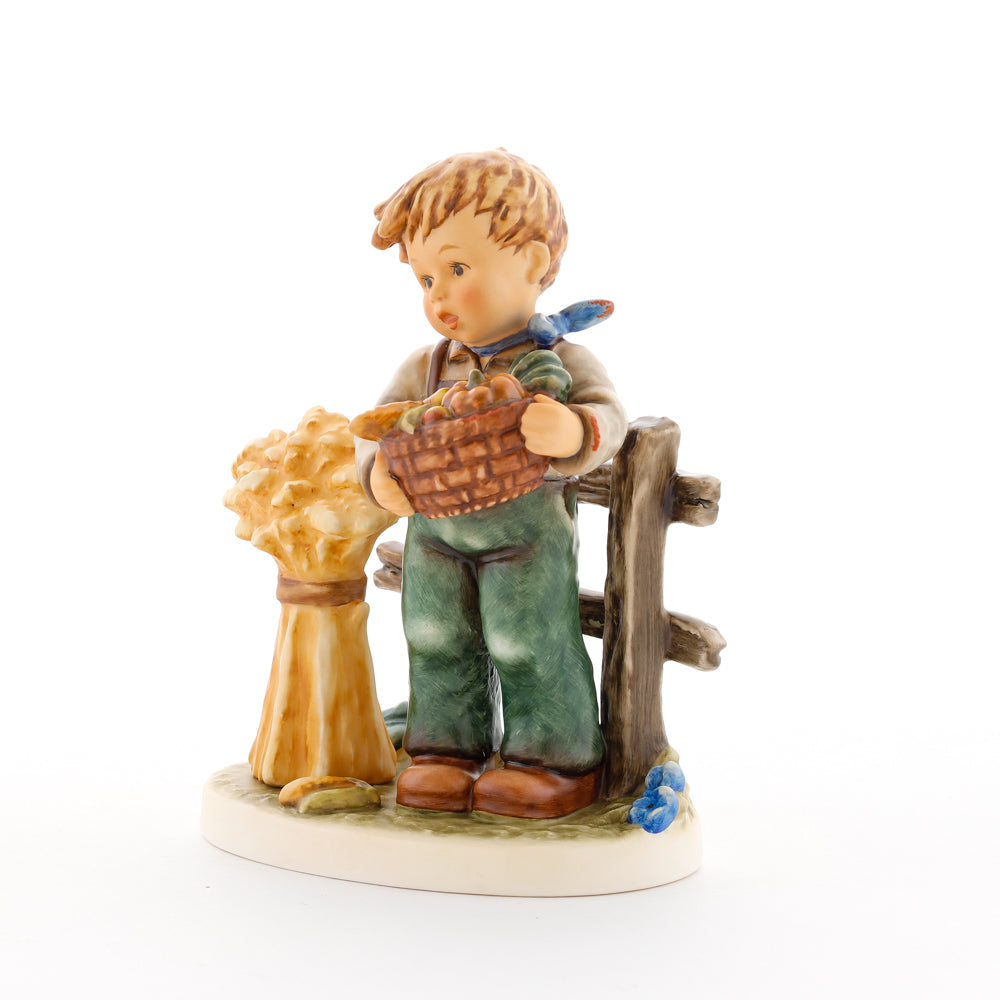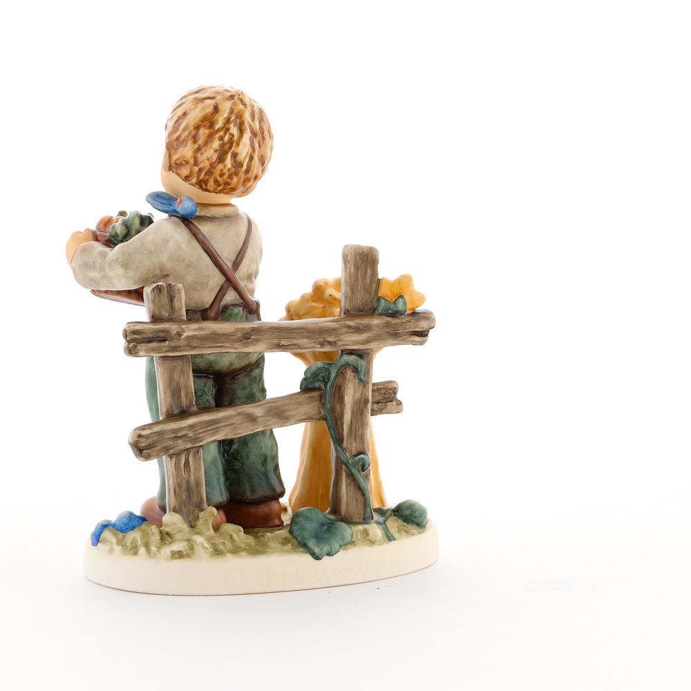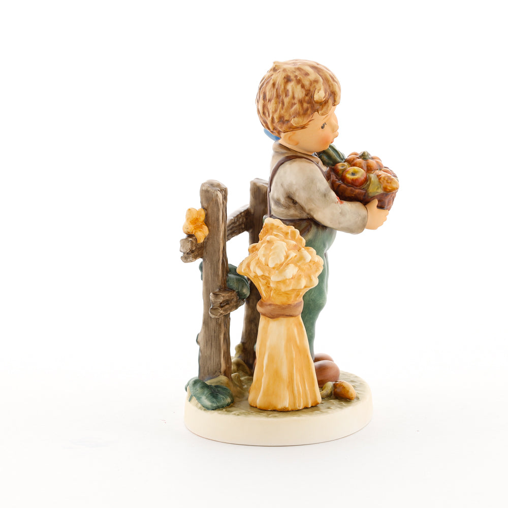 Die Hummel-Figur „Erntedank (Truthahn)“ (HUM 2439) ergänzt diese Figur wunderbar. Angespielt wird hier auf das amerikanische Traditionsfest Thanksgiving, bei dem Truthahn (auf Englisch „Turkey“) serviert wird. Des Weiteren harmoniert auch die Figur „Süße Ernte“ (HUM 2372), die ein zauberhaft süßes Herbst-Mädchen bei ihrer Gabendarbietung zeigt.