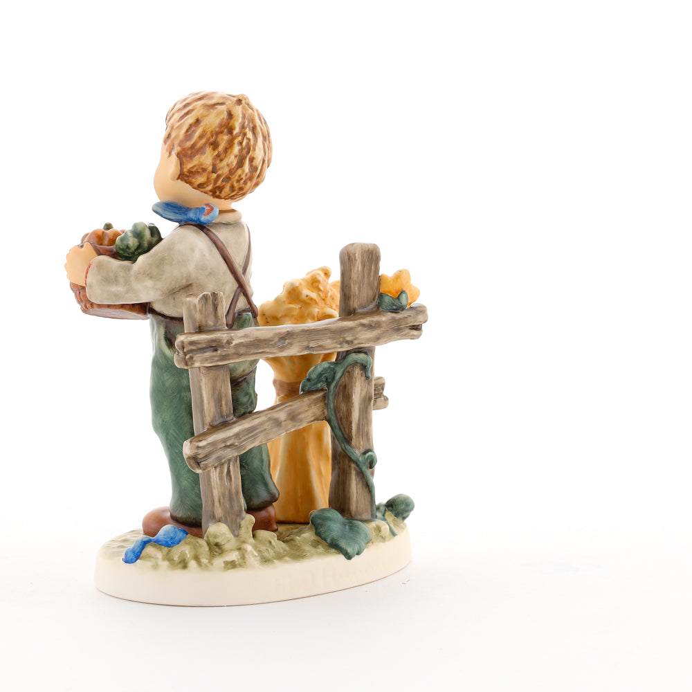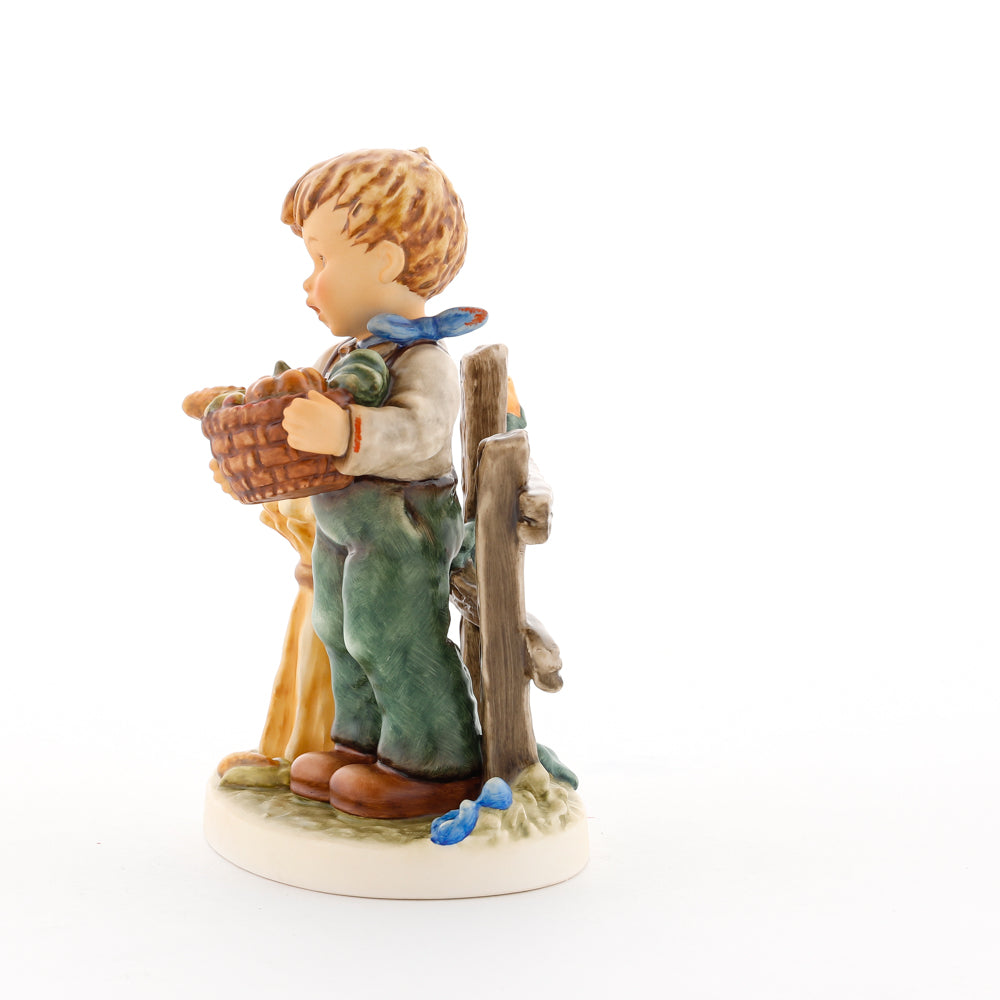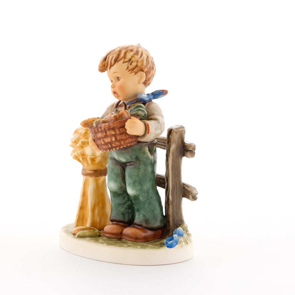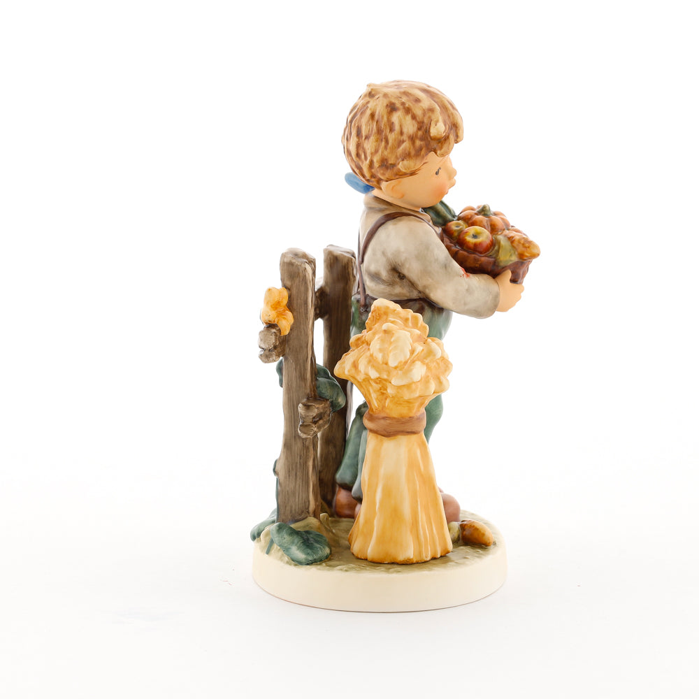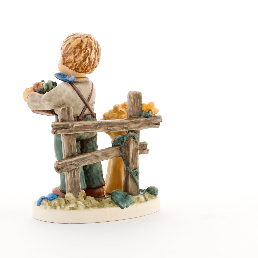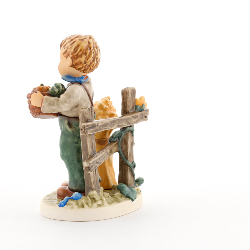 Die Hummel-Figur „Erntedank (Truthahn)“ (HUM 2439) ergänzt diese Figur wunderbar. Angespielt wird hier auf das amerikanische Traditionsfest Thanksgiving, bei dem Truthahn (auf Englisch „Turkey“) serviert wird. Des Weiteren harmoniert auch die Figur „Süße Ernte“ (HUM 2372), die ein zauberhaft süßes Herbst-Mädchen bei ihrer Gabendarbietung zeigt.