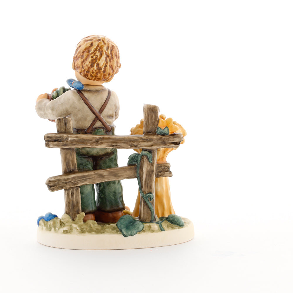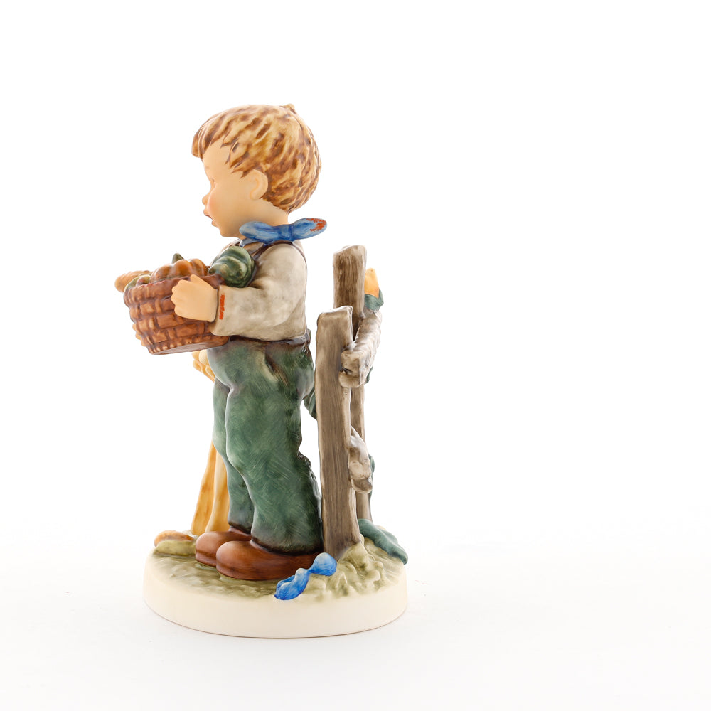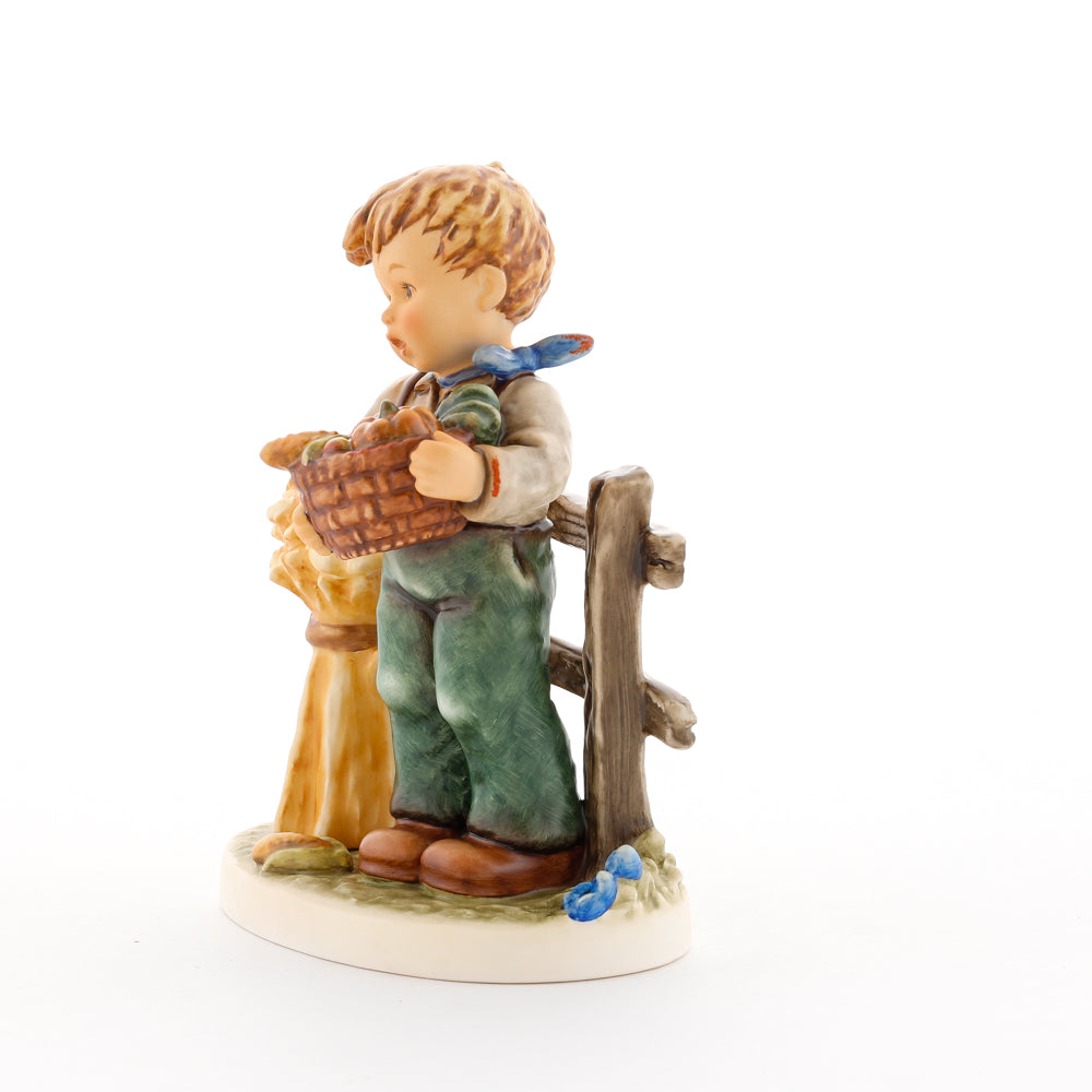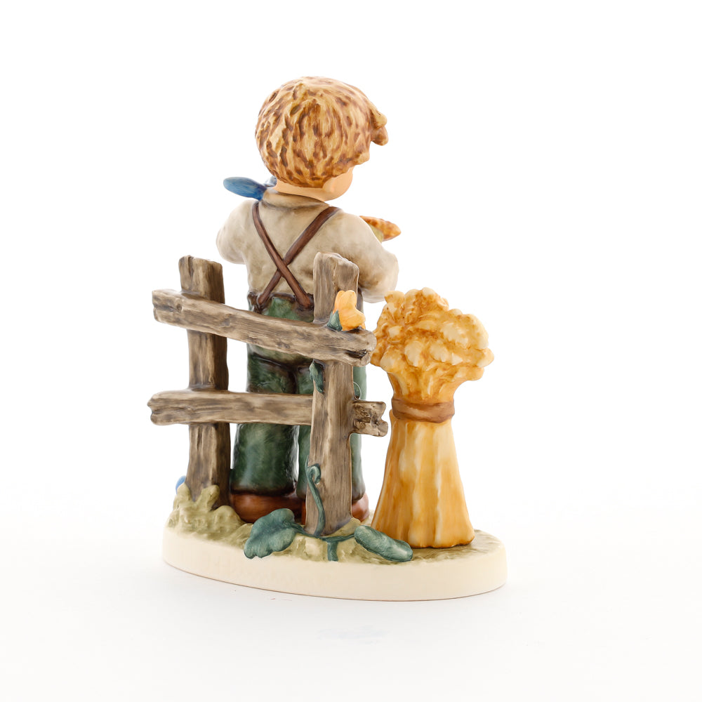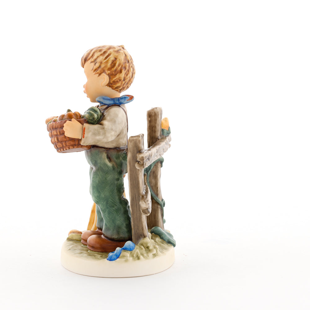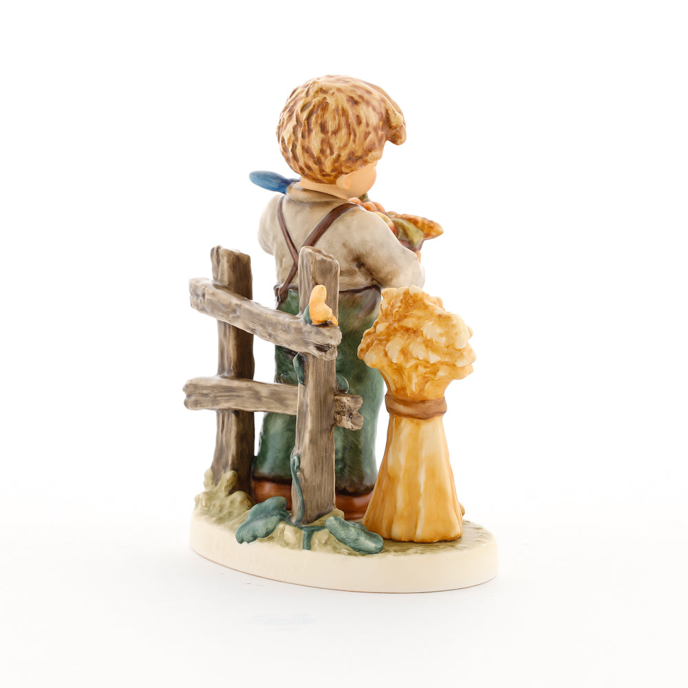 Die Hummel-Figur „Erntedank (Truthahn)“ (HUM 2439) ergänzt diese Figur wunderbar. Angespielt wird hier auf das amerikanische Traditionsfest Thanksgiving, bei dem Truthahn (auf Englisch „Turkey“) serviert wird. Des Weiteren harmoniert auch die Figur „Süße Ernte“ (HUM 2372), die ein zauberhaft süßes Herbst-Mädchen bei ihrer Gabendarbietung zeigt.