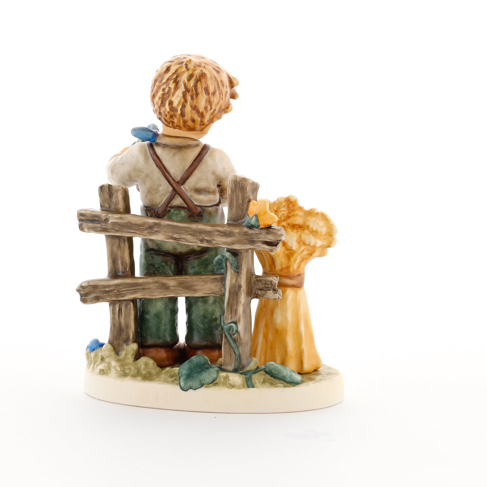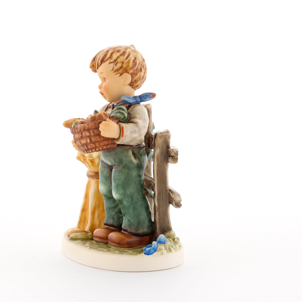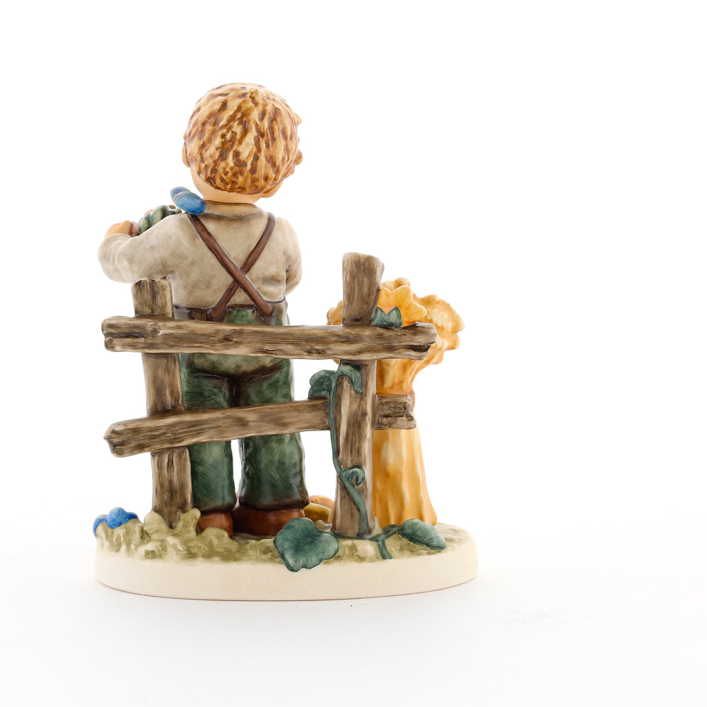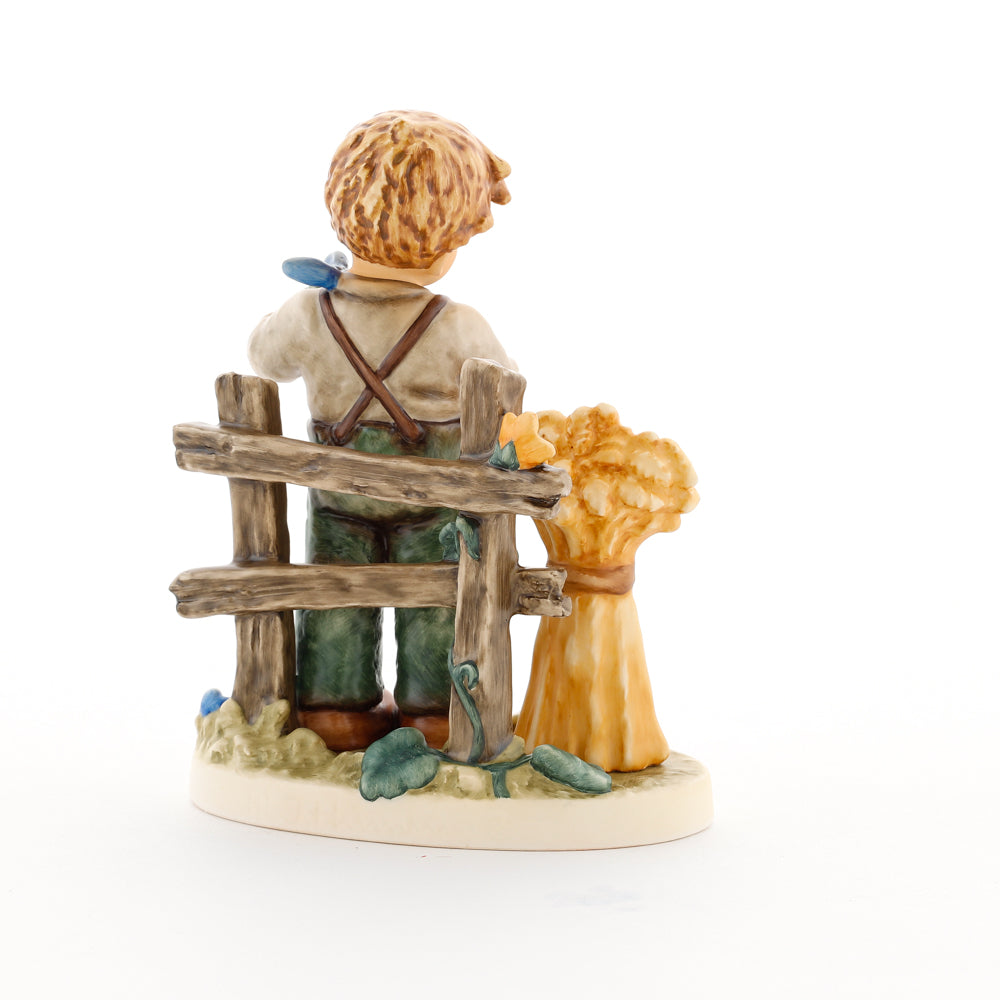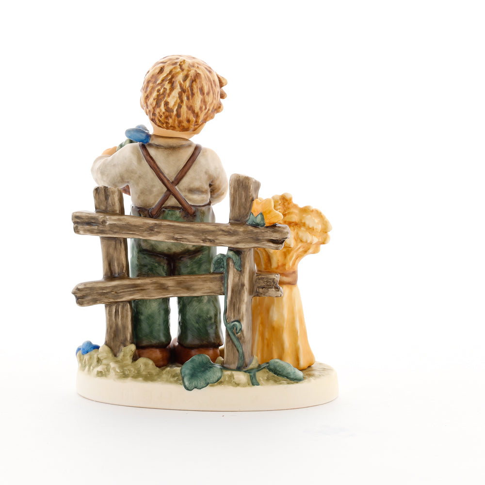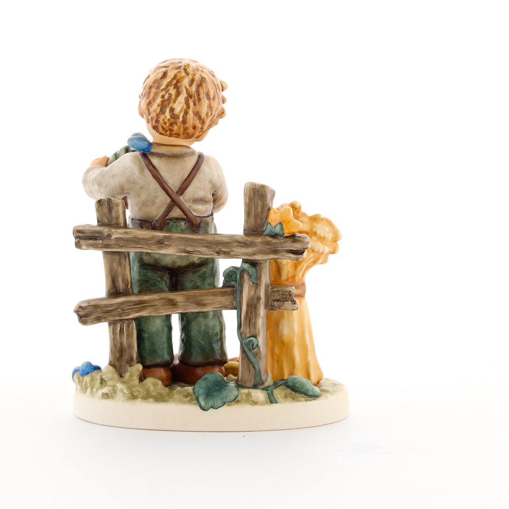 Die Hummel-Figur „Erntedank (Truthahn)“ (HUM 2439) ergänzt diese Figur wunderbar. Angespielt wird hier auf das amerikanische Traditionsfest Thanksgiving, bei dem Truthahn (auf Englisch „Turkey“) serviert wird. Des Weiteren harmoniert auch die Figur „Süße Ernte“ (HUM 2372), die ein zauberhaft süßes Herbst-Mädchen bei ihrer Gabendarbietung zeigt.