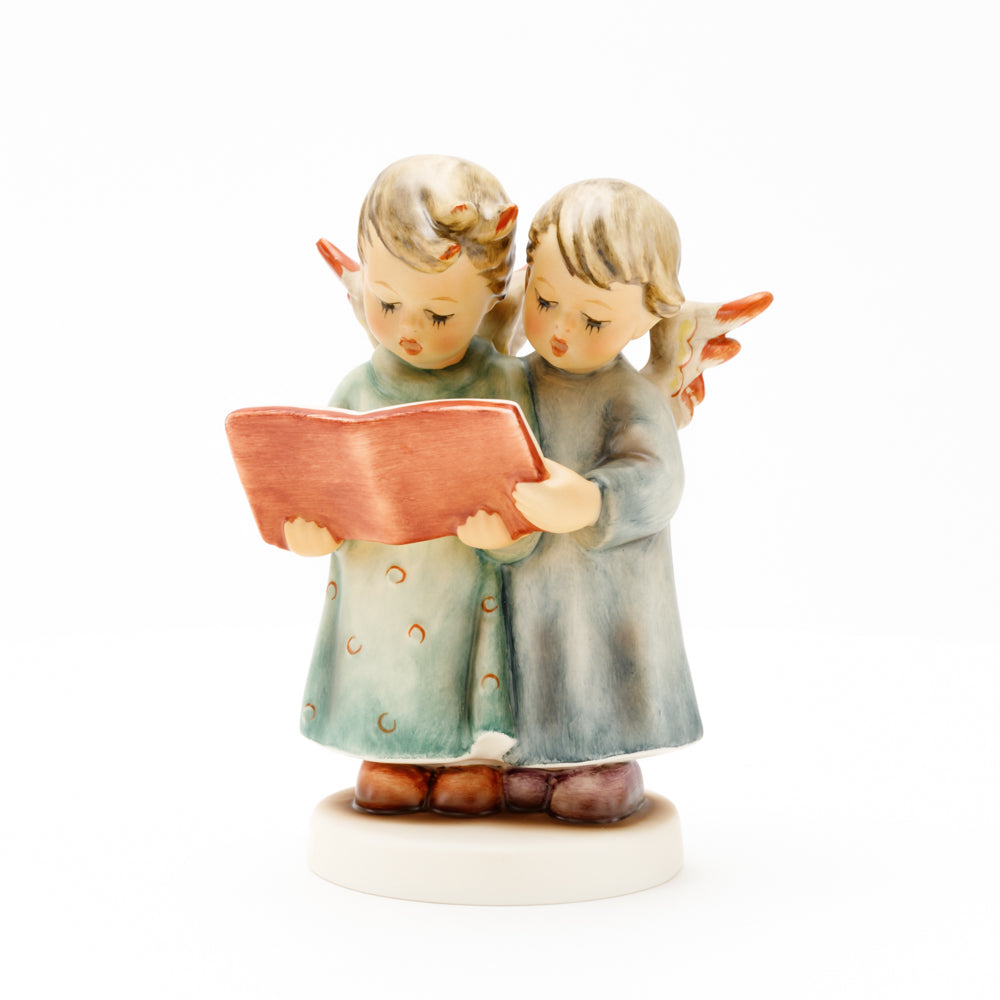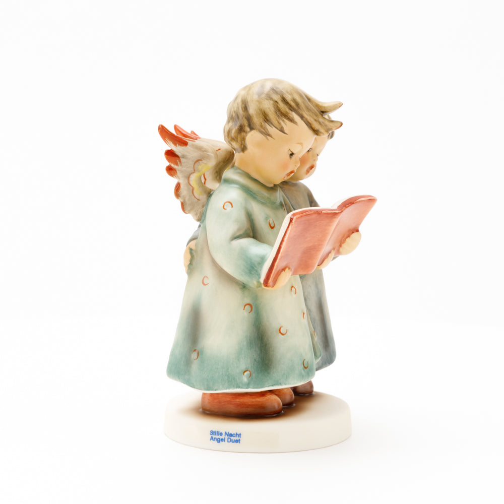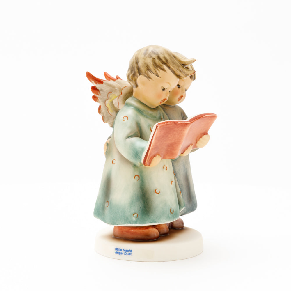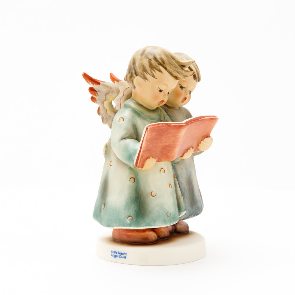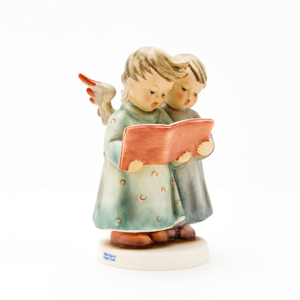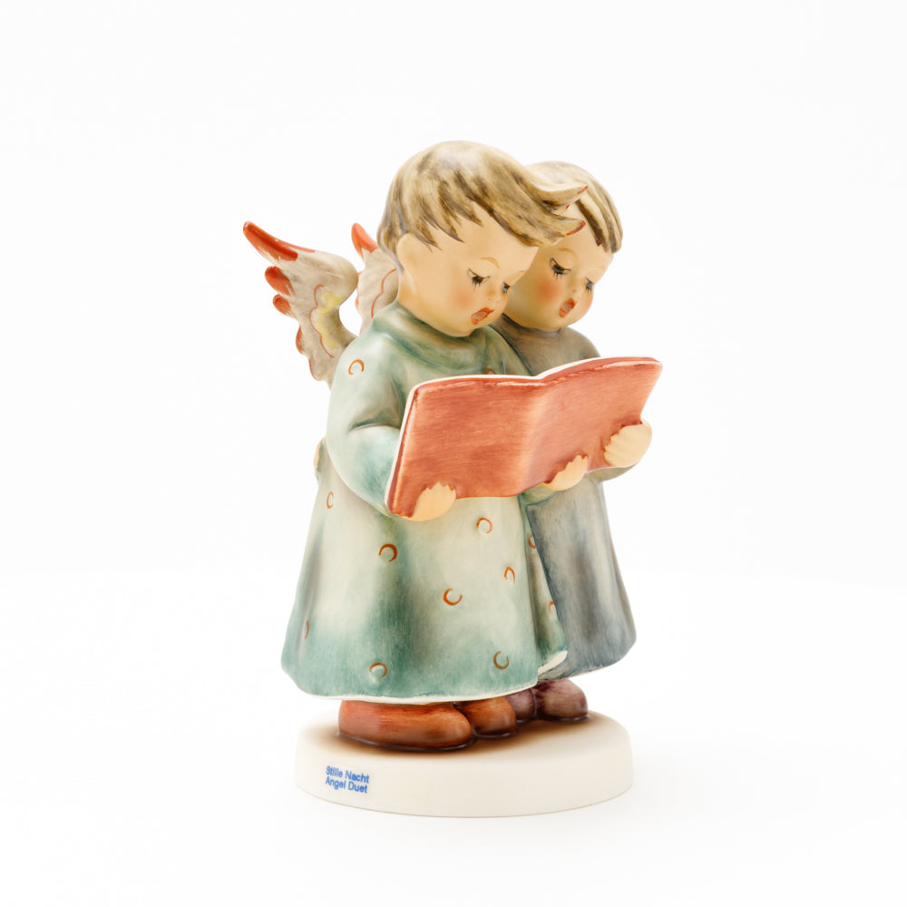 Für besinnliche Stimmung sorgen die beiden Engel, die die Köpfe zusammenstecken und sich gemeinsam über ihr Notenblatt beugen. Bitte nicht stören! Ganz vertieft sind sie in den Gesang. Die original M.I. Hummel-Figur wurde 1968 von Meistermodelleur Gerhard Skrobek entworfen und trägt den Namen „Stille Nacht“. Ob als liebevolle Dekoration für die Weihnachtszeit oder als Geschenk für die Großeltern: Unsere beiden Hummel-Engelchen erfreuen alle Generationen.