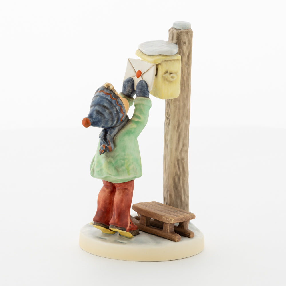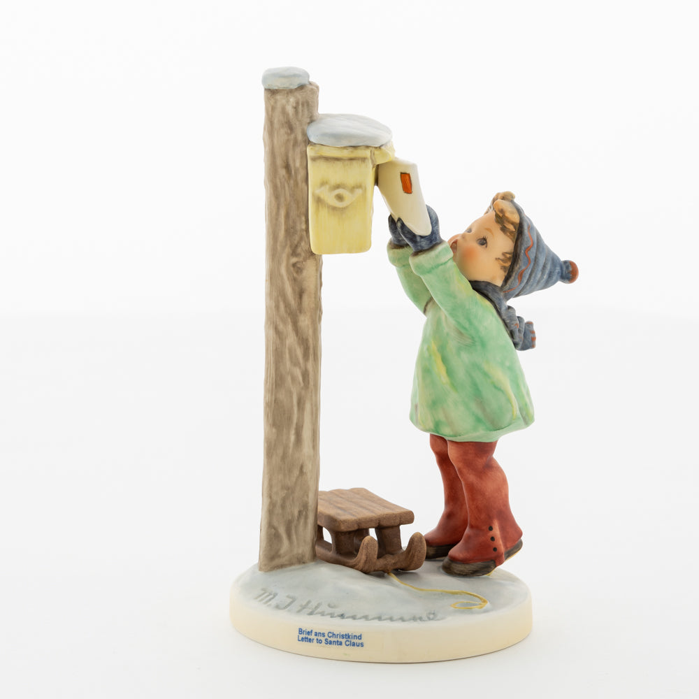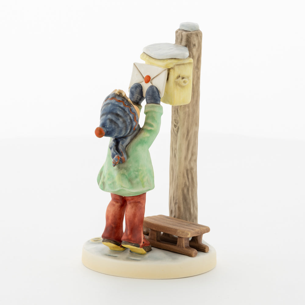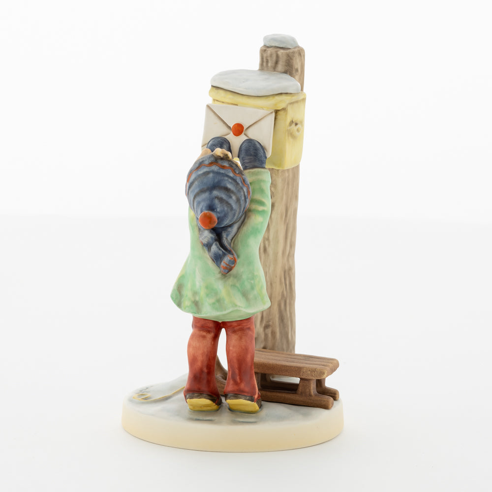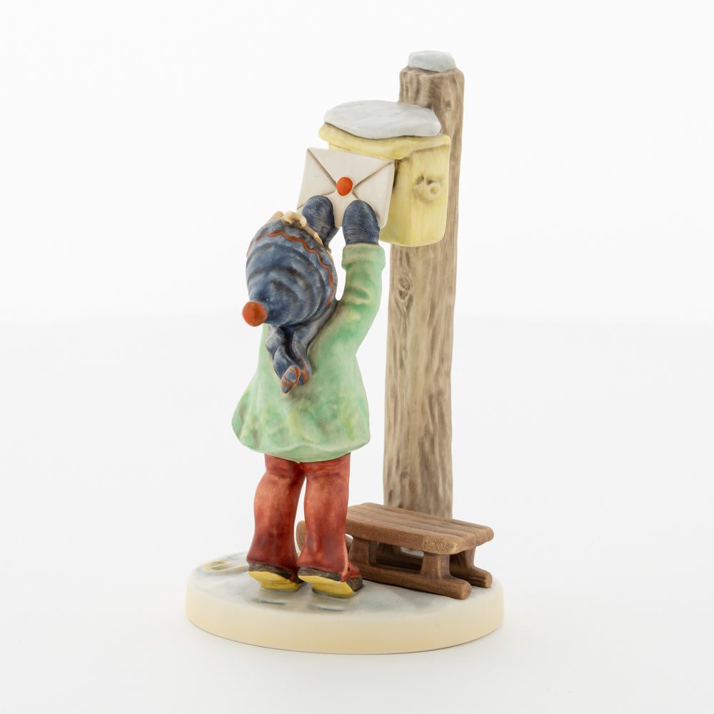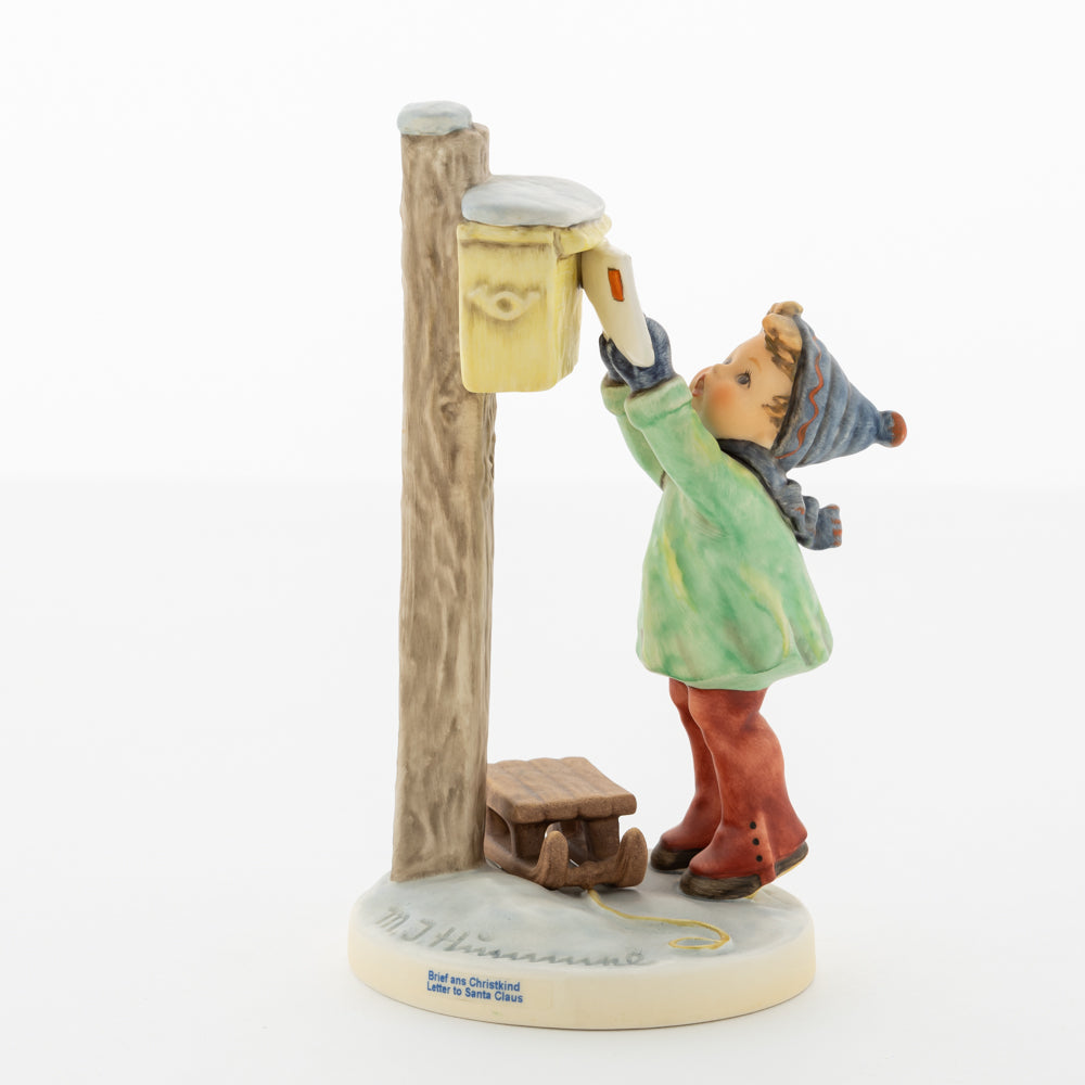Die original Hummel-Figur „Brief ans Christkind" mit einer Größe von 18 Zentimeter wurde von Meistermodelleur Gerhard Skrobek entworfen. Sie weckt nicht nur Kindheitserinnerungen, sondern verzaubert den Betrachter durch ihren typischen Hummel-Charme. Gemeinsam mit Figuren wie „Ein Lichtlein brennt“ (HUM 2390) oder „Wir haben’s doch eilig“ (HUM 2362) bringt „Brief ans Christkind“ den Zauber der Weihnachtszeit zu Ihnen nach Hause. Weil sie zeitlos sind, eignen sich diese Figuren auch ideal als Nikolaus- oder Weihnachtsgeschenk.