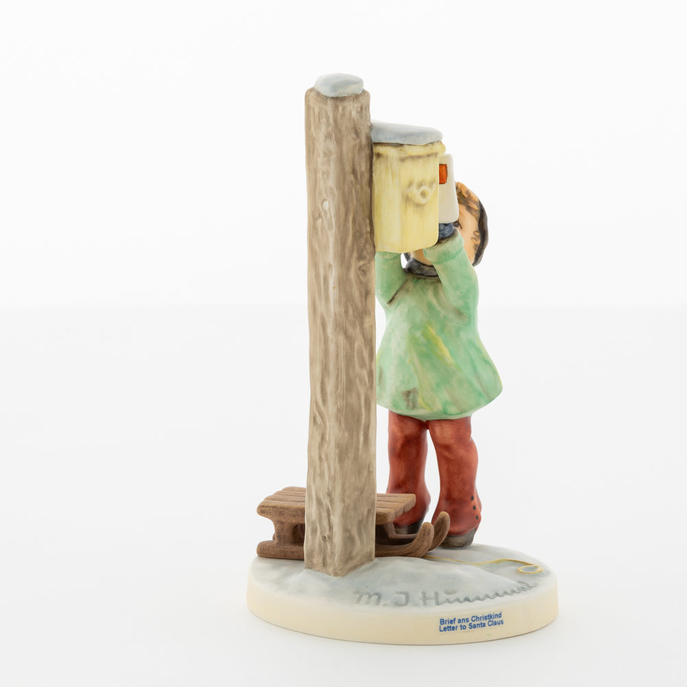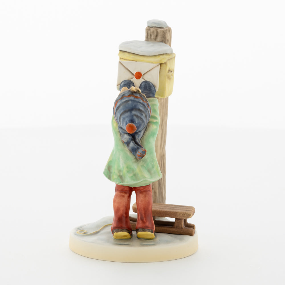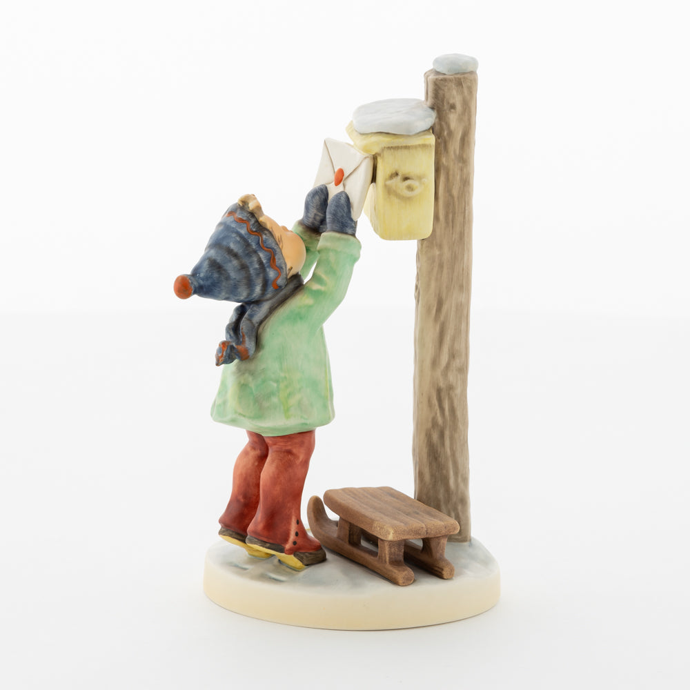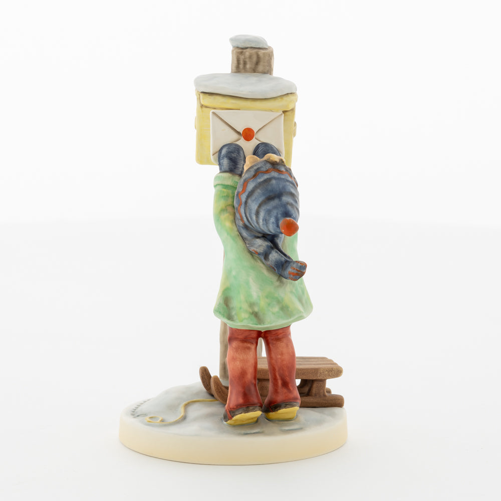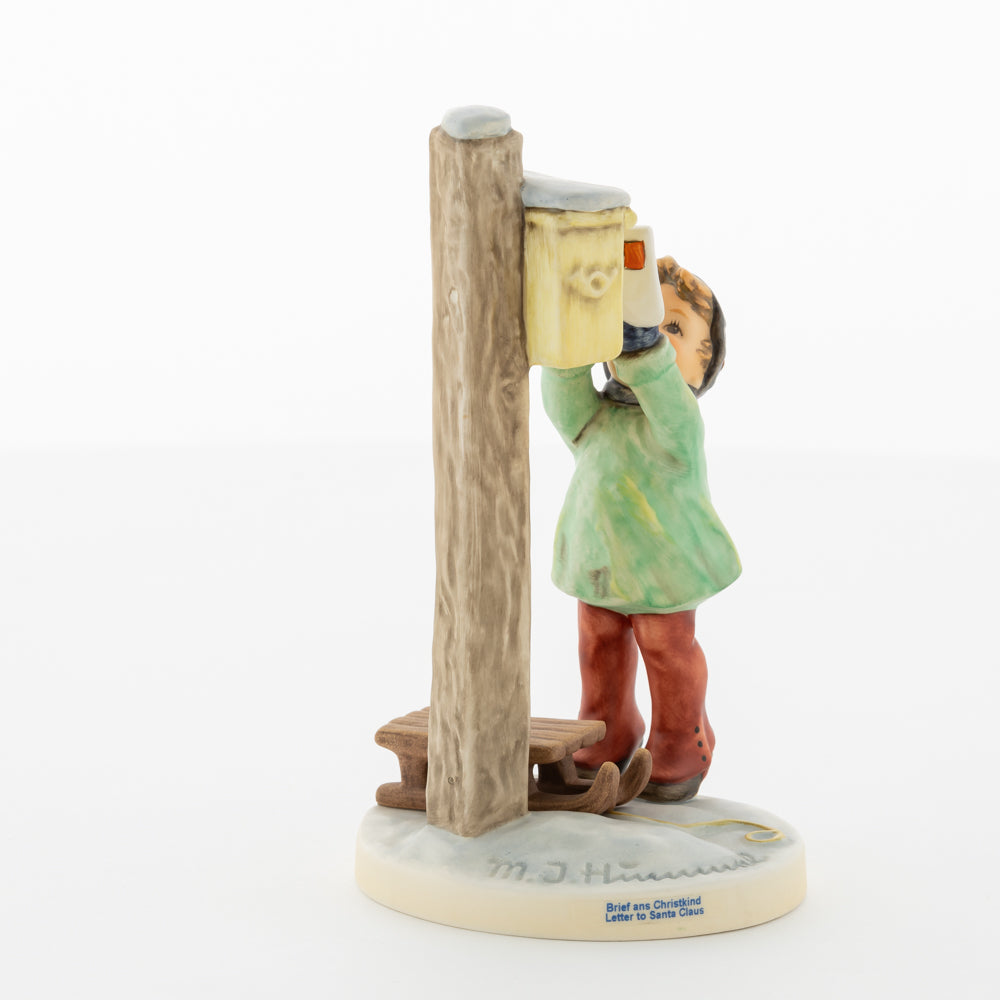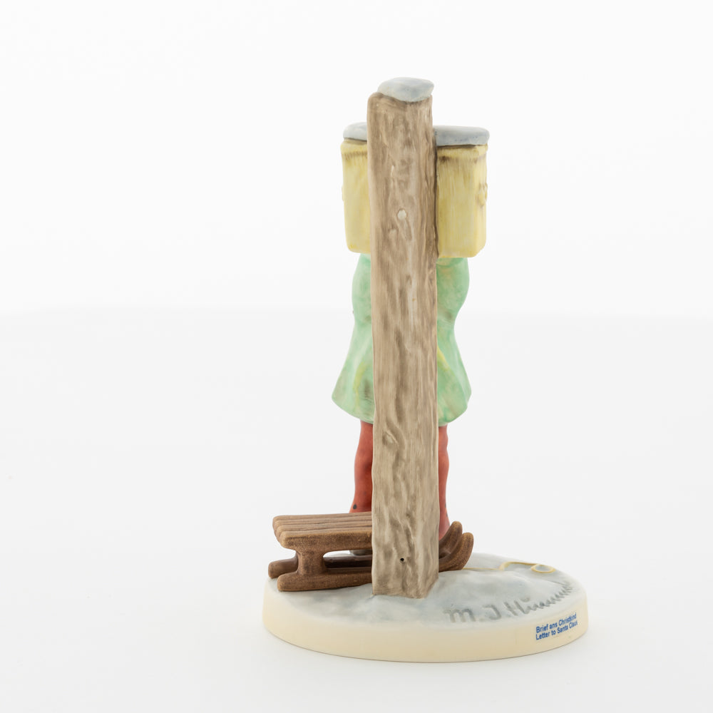 Die original Hummel-Figur „Brief ans Christkind" mit einer Größe von 18 Zentimeter wurde von Meistermodelleur Gerhard Skrobek entworfen. Sie weckt nicht nur Kindheitserinnerungen, sondern verzaubert den Betrachter durch ihren typischen Hummel-Charme. Gemeinsam mit Figuren wie „Ein Lichtlein brennt“ (HUM 2390) oder „Wir haben’s doch eilig“ (HUM 2362) bringt „Brief ans Christkind“ den Zauber der Weihnachtszeit zu Ihnen nach Hause. Weil sie zeitlos sind, eignen sich diese Figuren auch ideal als Nikolaus- oder Weihnachtsgeschenk.