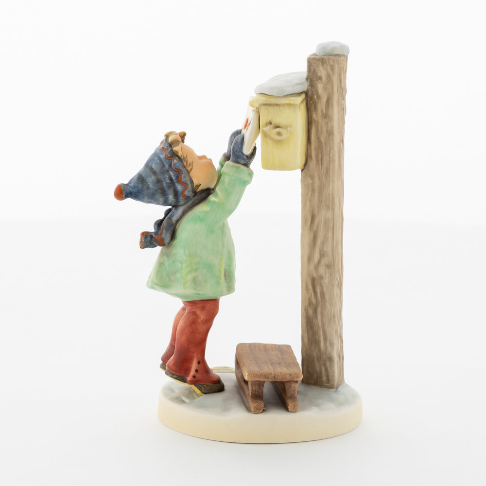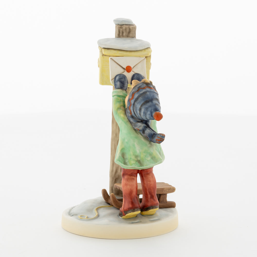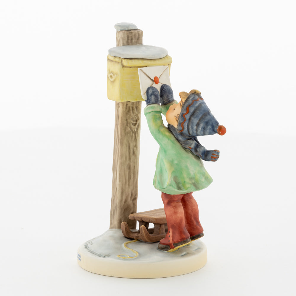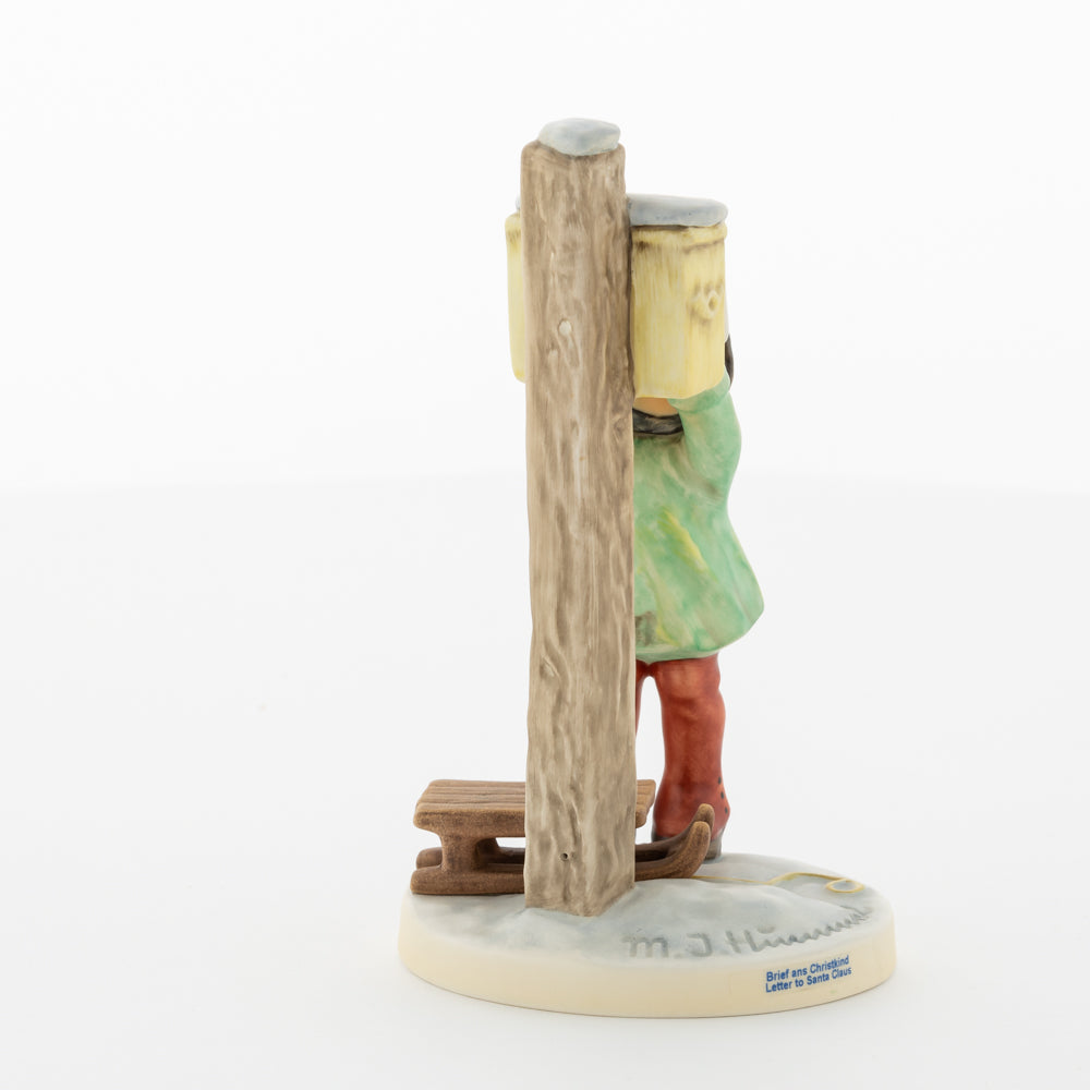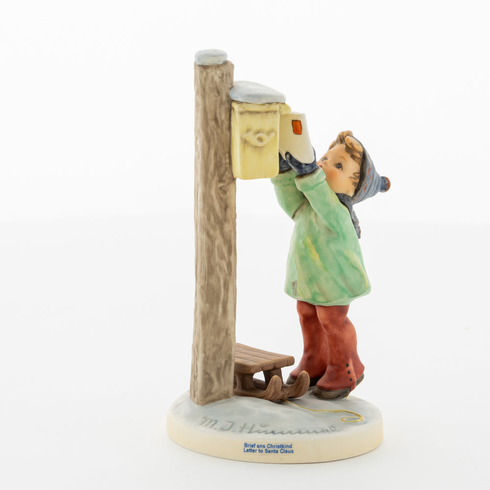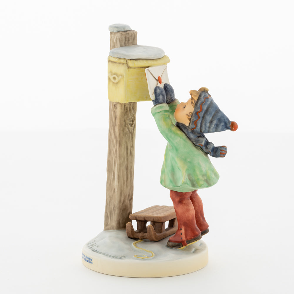 Die original Hummel-Figur „Brief ans Christkind" mit einer Größe von 18 Zentimeter wurde von Meistermodelleur Gerhard Skrobek entworfen. Sie weckt nicht nur Kindheitserinnerungen, sondern verzaubert den Betrachter durch ihren typischen Hummel-Charme. Gemeinsam mit Figuren wie „Ein Lichtlein brennt“ (HUM 2390) oder „Wir haben’s doch eilig“ (HUM 2362) bringt „Brief ans Christkind“ den Zauber der Weihnachtszeit zu Ihnen nach Hause. Weil sie zeitlos sind, eignen sich diese Figuren auch ideal als Nikolaus- oder Weihnachtsgeschenk.