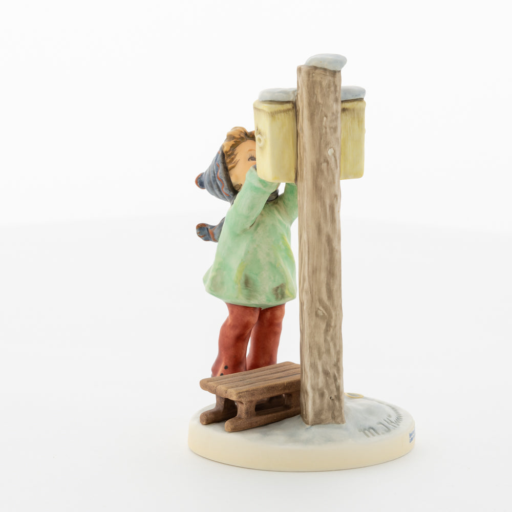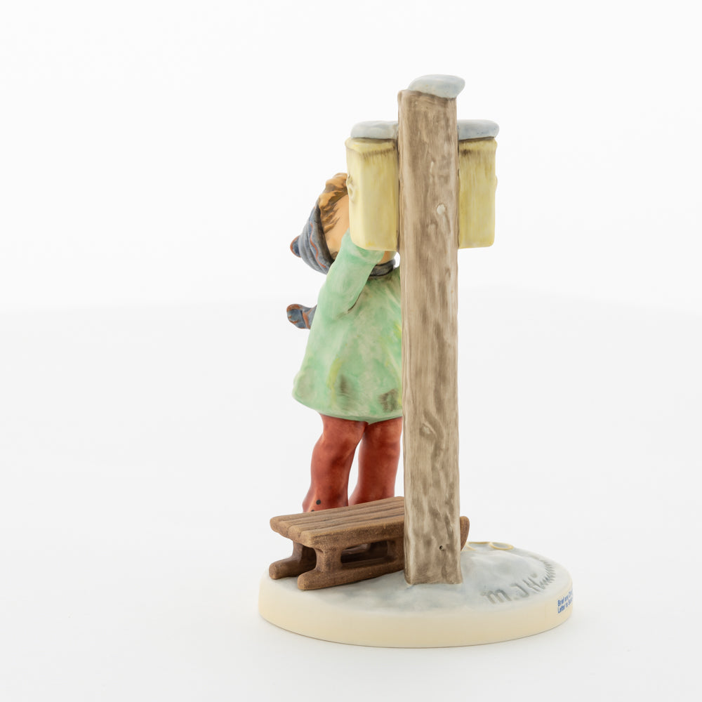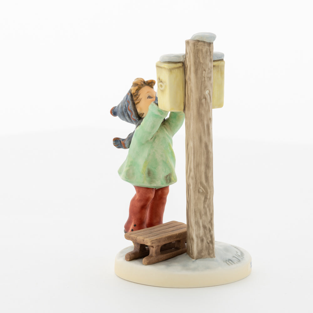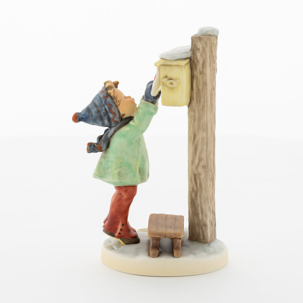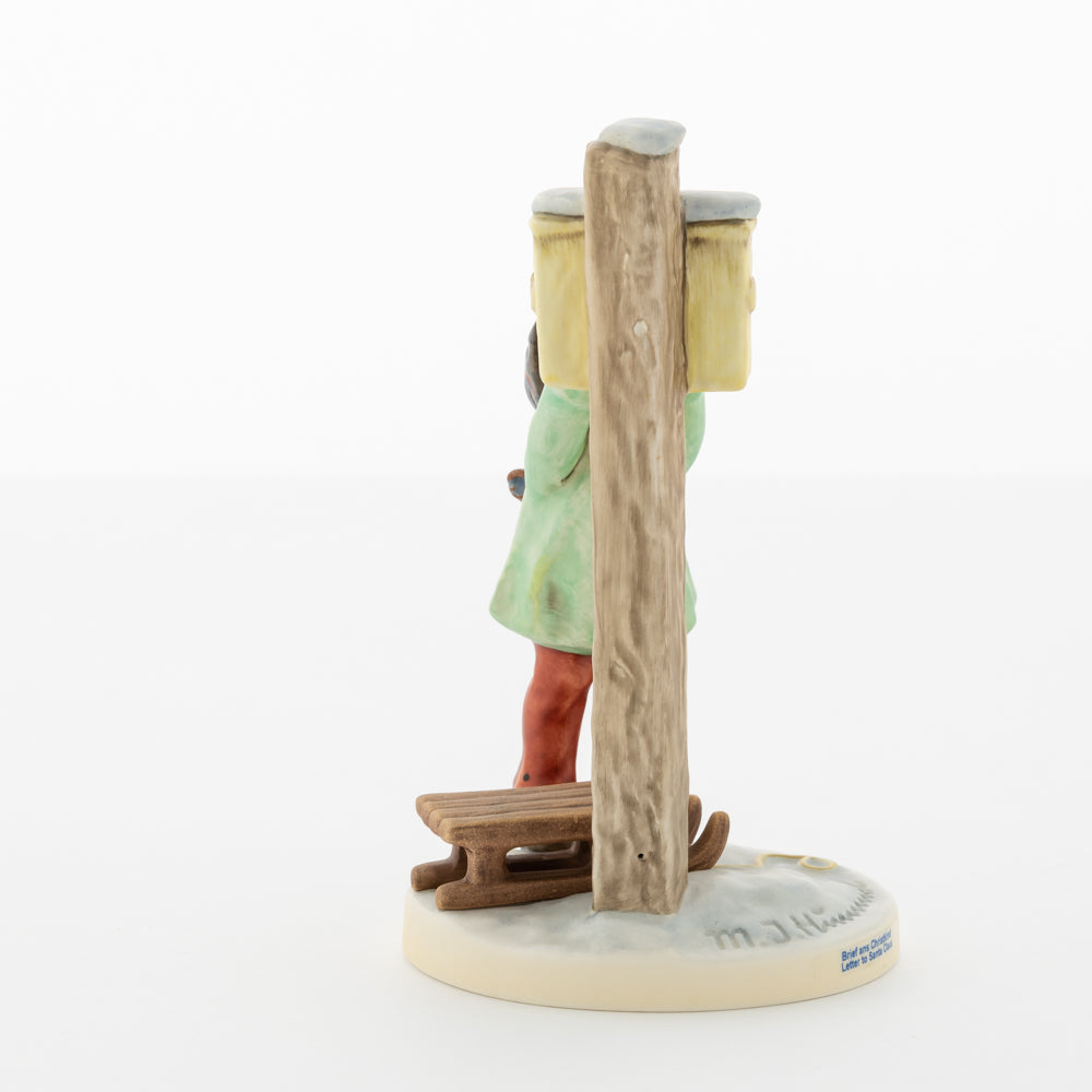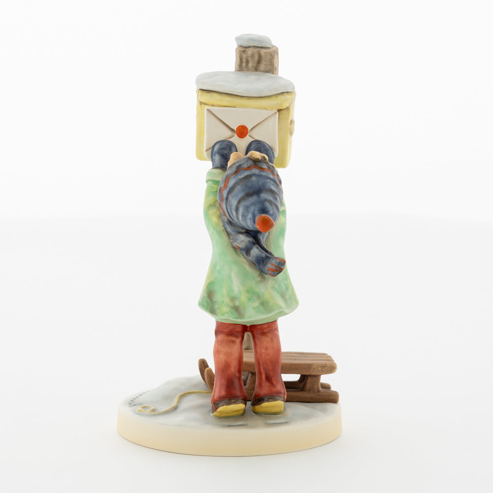 Die original Hummel-Figur „Brief ans Christkind" mit einer Größe von 18 Zentimeter wurde von Meistermodelleur Gerhard Skrobek entworfen. Sie weckt nicht nur Kindheitserinnerungen, sondern verzaubert den Betrachter durch ihren typischen Hummel-Charme. Gemeinsam mit Figuren wie „Ein Lichtlein brennt“ (HUM 2390) oder „Wir haben’s doch eilig“ (HUM 2362) bringt „Brief ans Christkind“ den Zauber der Weihnachtszeit zu Ihnen nach Hause. Weil sie zeitlos sind, eignen sich diese Figuren auch ideal als Nikolaus- oder Weihnachtsgeschenk.