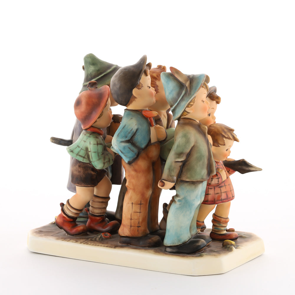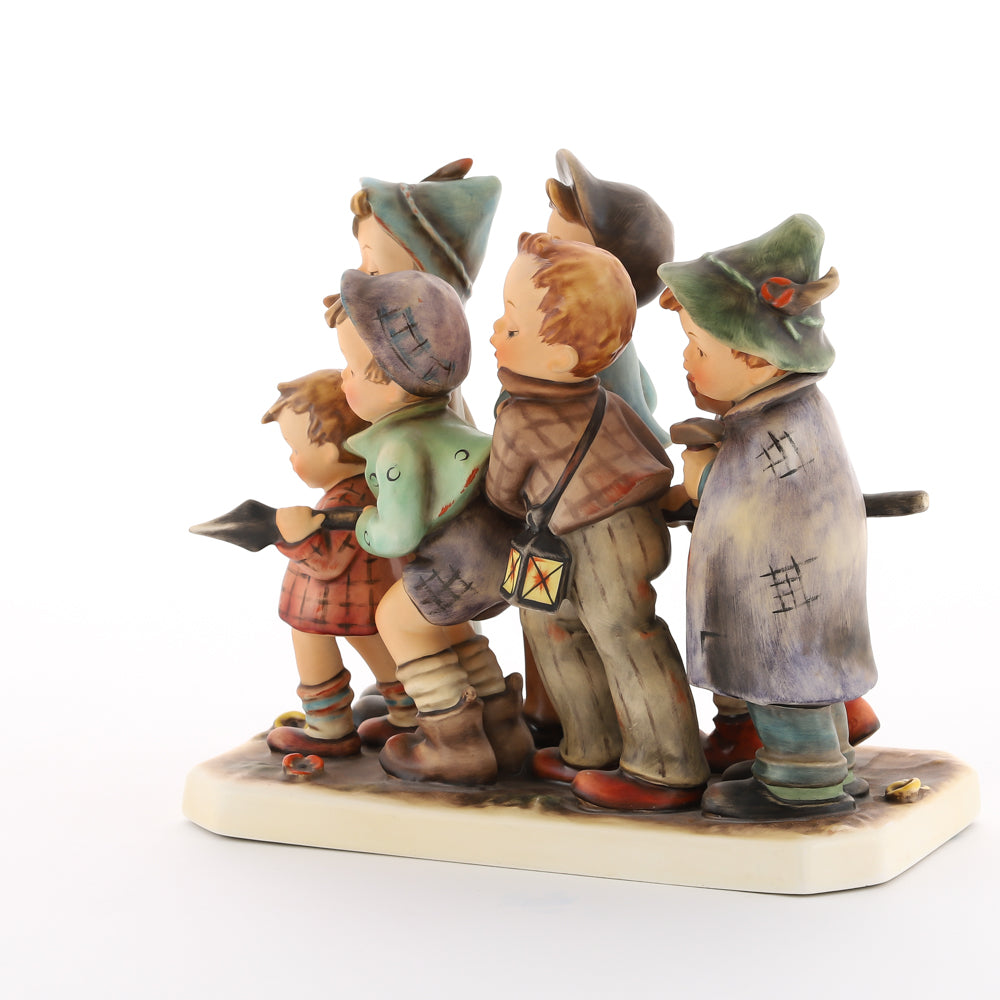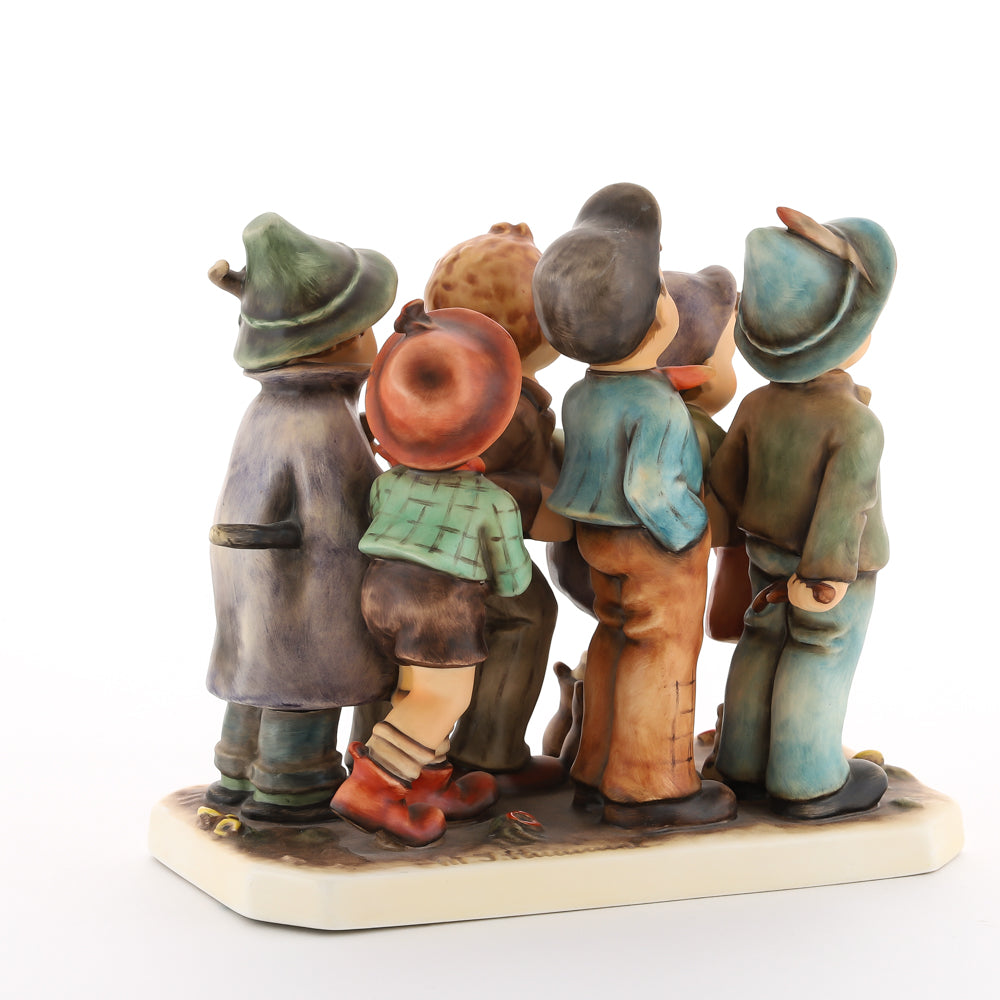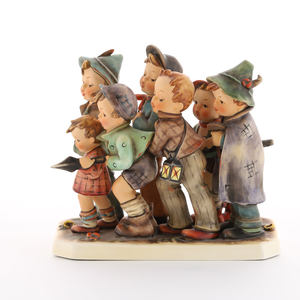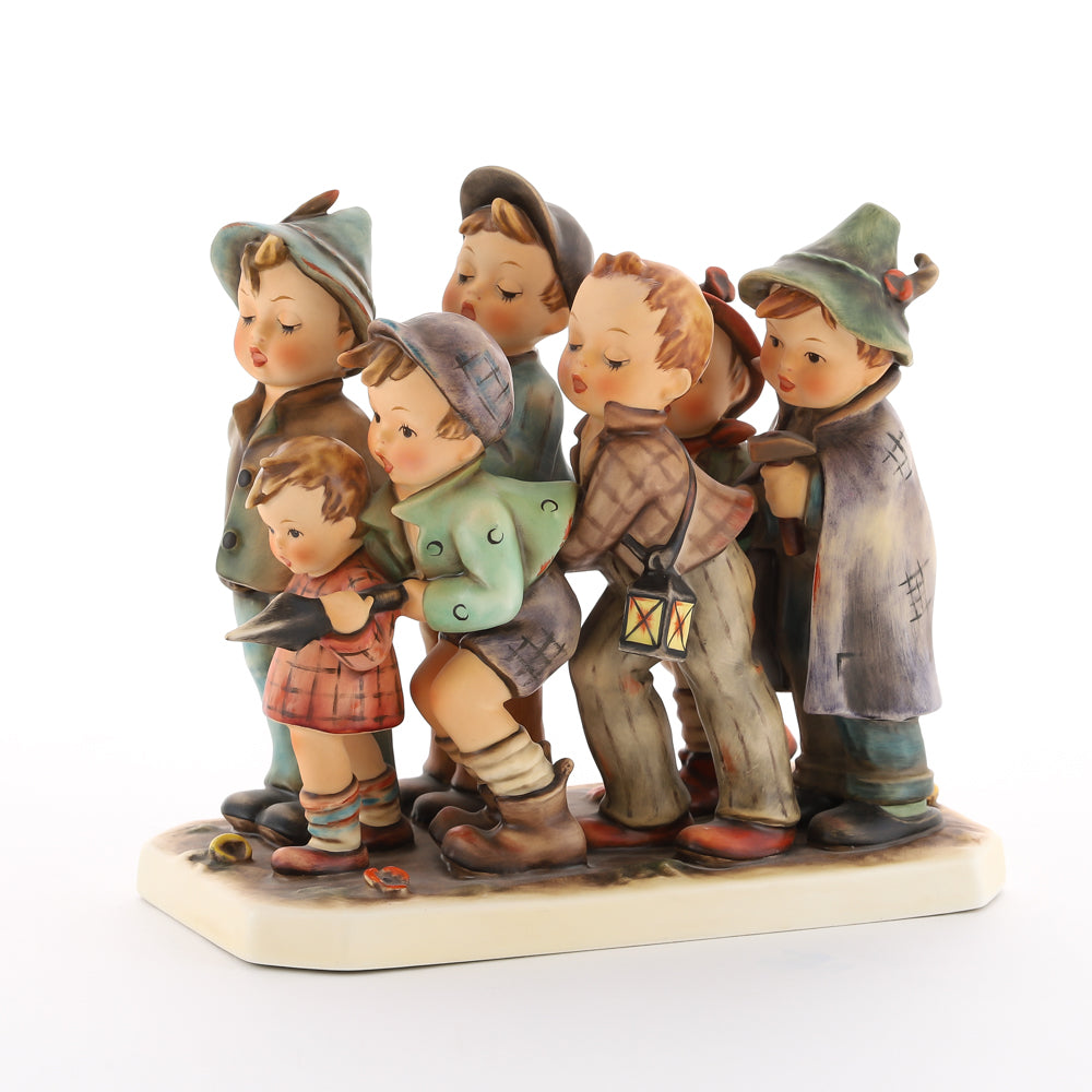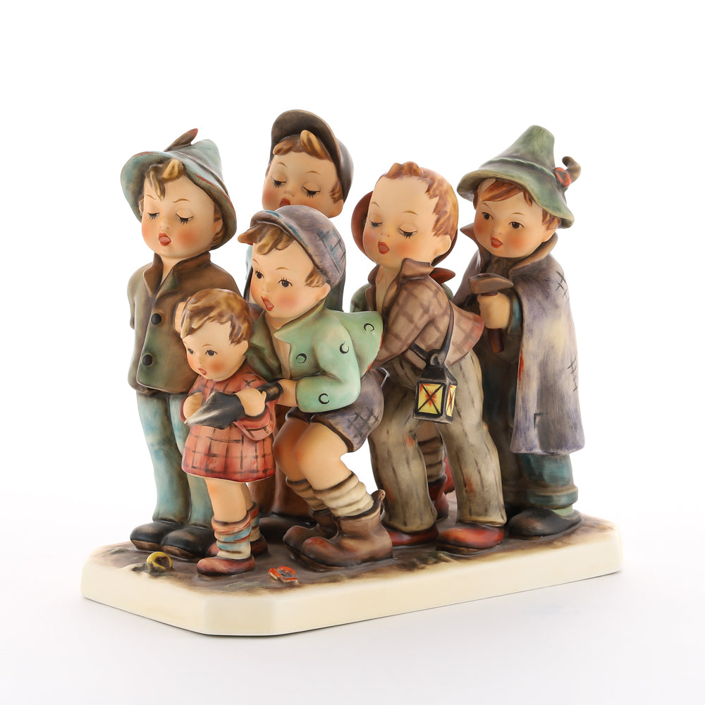 Diese original M.I. Hummel-Figur trägt den gleichnamigen Namen wie das Märchen "Die sieben Schwaben" der Brüder Grimm. Aber anders als die Grimmschen Schwaben sind die "Rödentaler Schwaben" nicht tollpatschig, sondern zeichnen sich durch hohe Präzision und Rafinesse aus. Diese Hummel-Figur wurde 1957 von Theo R. Menzenbach, welcher später als selbstständiger Künstler arbeitete, modelliert. Aufgrund der vielen einzelnen Arbeitsschritte, die notwendig sind, um jede der sieben Persönlichkeiten plastisch auferstehen zu lassen, ist die M.I. Hummel-Figur eine wahres Meisterwerk der Handwerkskunst und somit eine der Figuren, die die Hummel Manufaktur Rödental als ihren ganzen Stolz betrachtet.