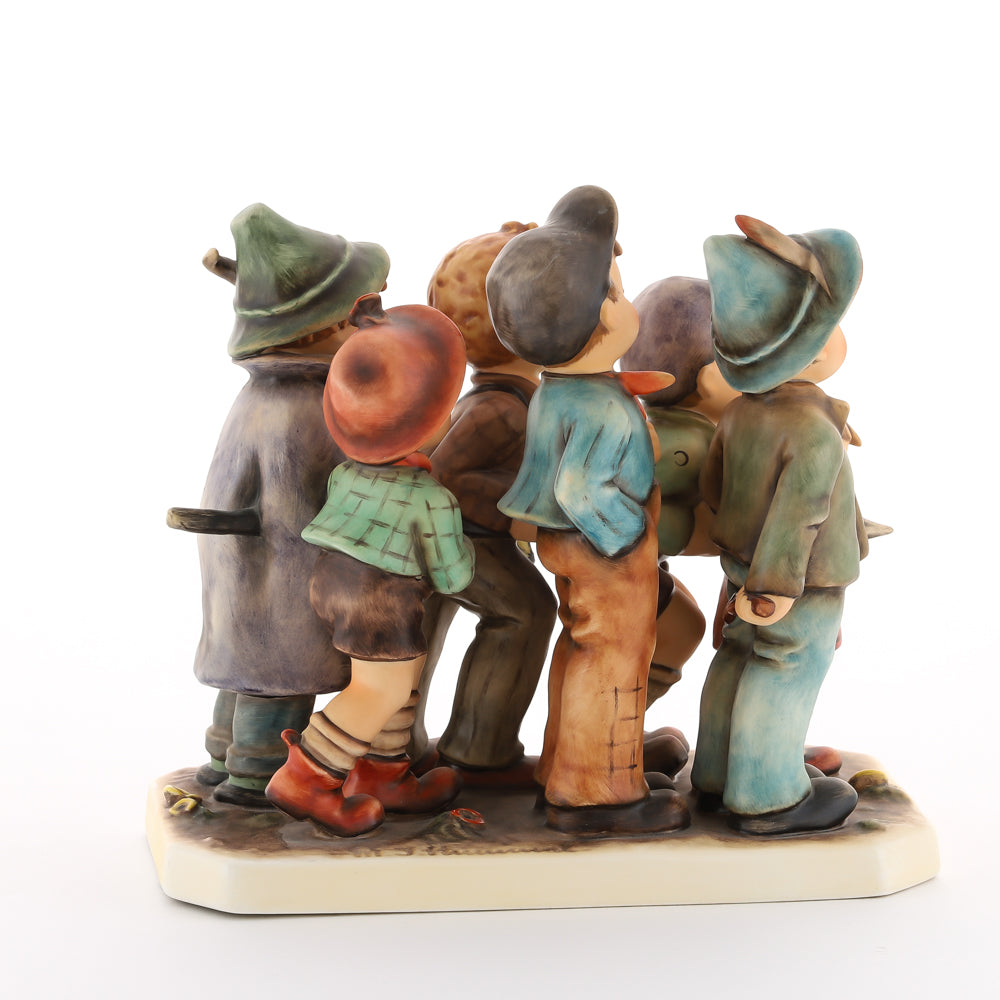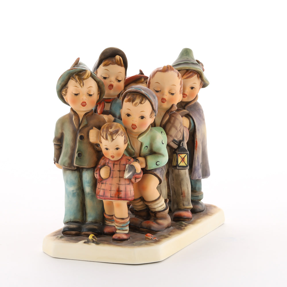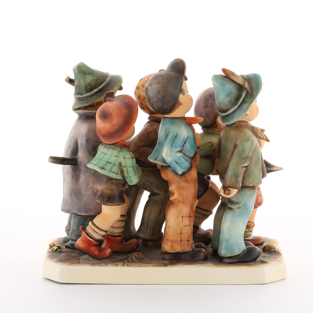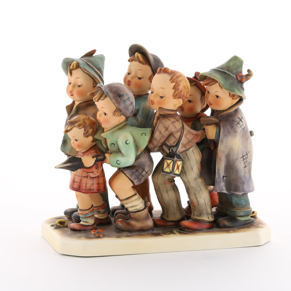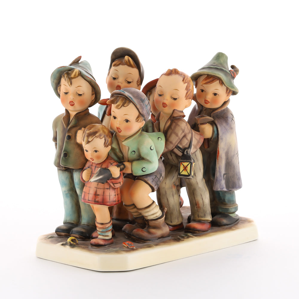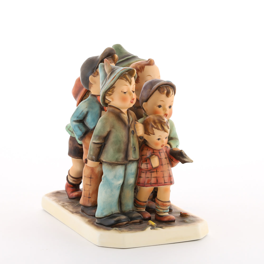 Diese original M.I. Hummel-Figur trägt den gleichnamigen Namen wie das Märchen "Die sieben Schwaben" der Brüder Grimm. Aber anders als die Grimmschen Schwaben sind die "Rödentaler Schwaben" nicht tollpatschig, sondern zeichnen sich durch hohe Präzision und Rafinesse aus. Diese Hummel-Figur wurde 1957 von Theo R. Menzenbach, welcher später als selbstständiger Künstler arbeitete, modelliert. Aufgrund der vielen einzelnen Arbeitsschritte, die notwendig sind, um jede der sieben Persönlichkeiten plastisch auferstehen zu lassen, ist die M.I. Hummel-Figur eine wahres Meisterwerk der Handwerkskunst und somit eine der Figuren, die die Hummel Manufaktur Rödental als ihren ganzen Stolz betrachtet.