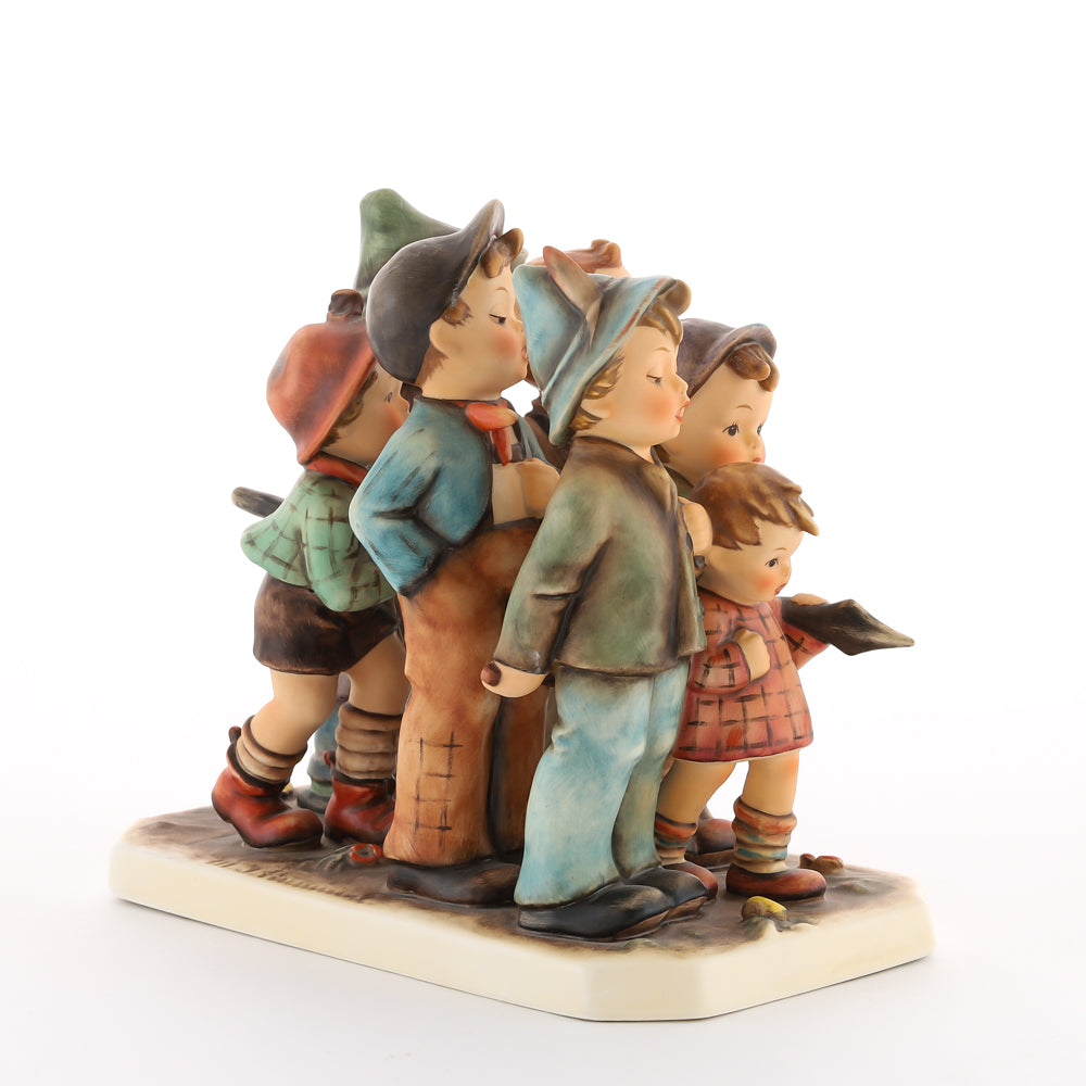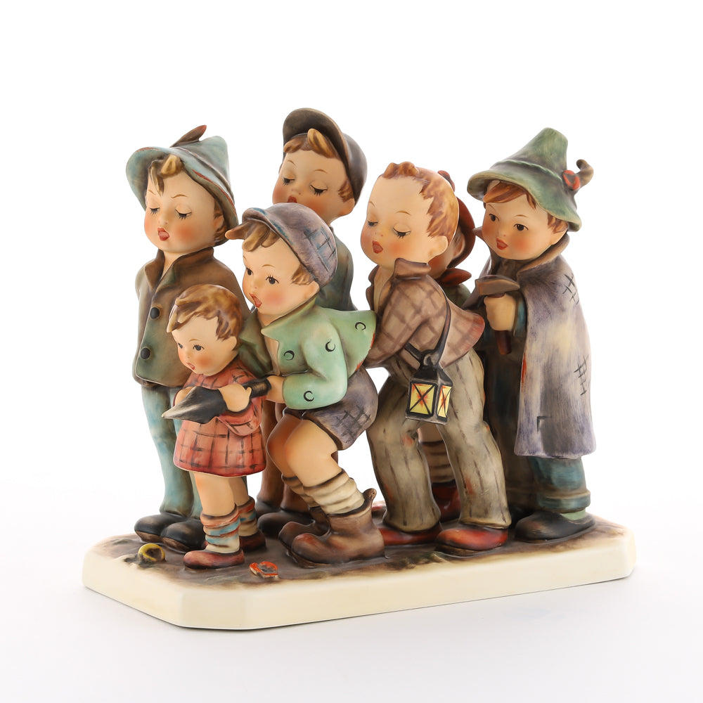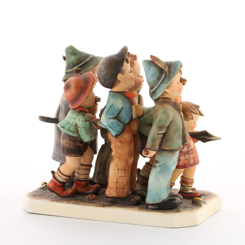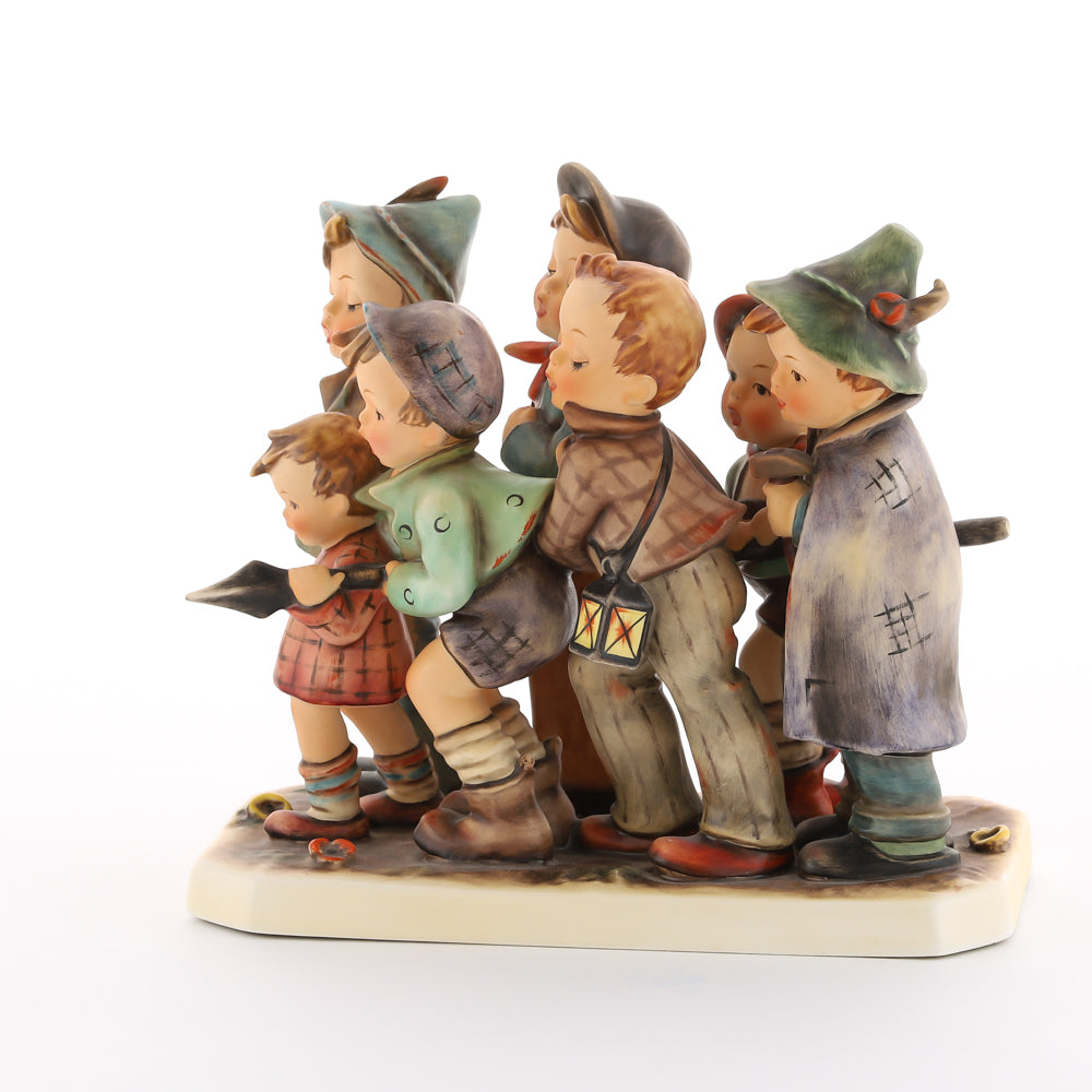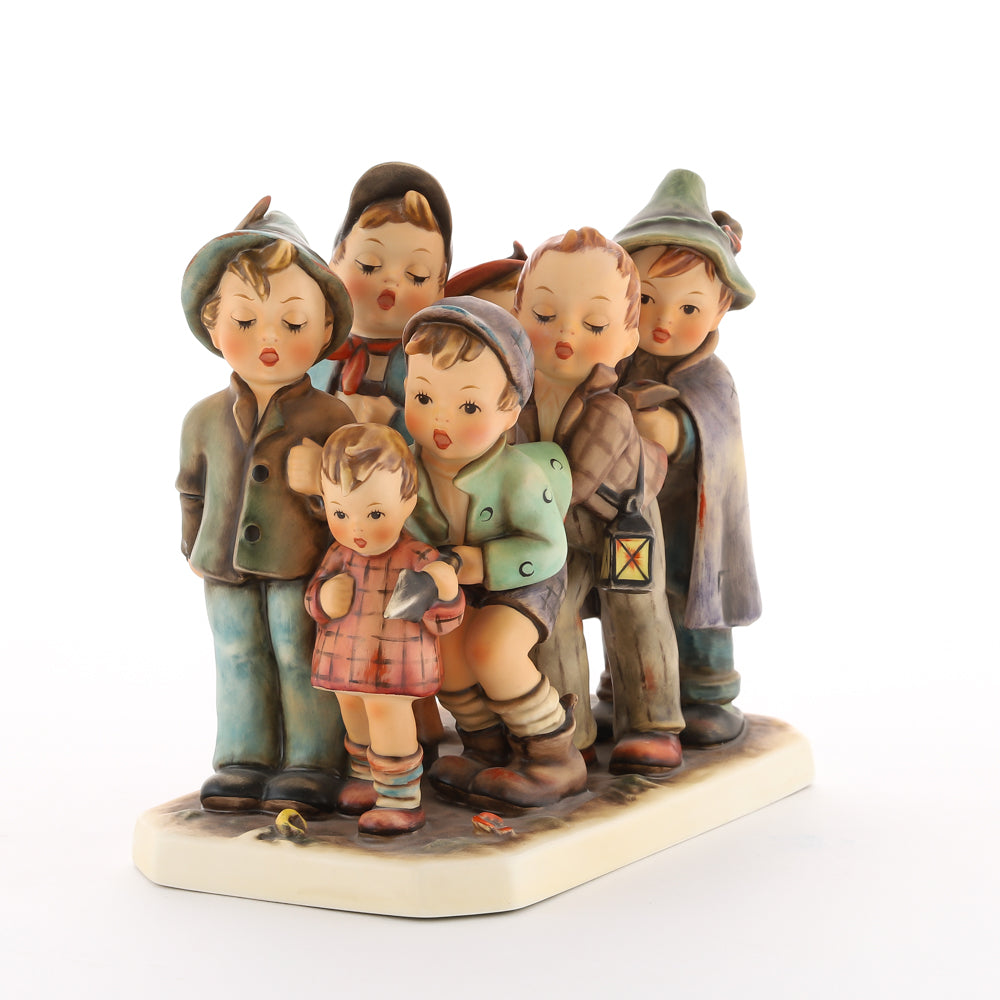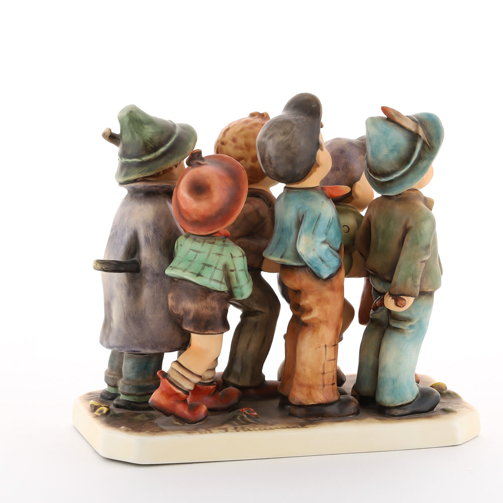 Diese original M.I. Hummel-Figur trägt den gleichnamigen Namen wie das Märchen "Die sieben Schwaben" der Brüder Grimm. Aber anders als die Grimmschen Schwaben sind die "Rödentaler Schwaben" nicht tollpatschig, sondern zeichnen sich durch hohe Präzision und Rafinesse aus. Diese Hummel-Figur wurde 1957 von Theo R. Menzenbach, welcher später als selbstständiger Künstler arbeitete, modelliert. Aufgrund der vielen einzelnen Arbeitsschritte, die notwendig sind, um jede der sieben Persönlichkeiten plastisch auferstehen zu lassen, ist die M.I. Hummel-Figur eine wahres Meisterwerk der Handwerkskunst und somit eine der Figuren, die die Hummel Manufaktur Rödental als ihren ganzen Stolz betrachtet.