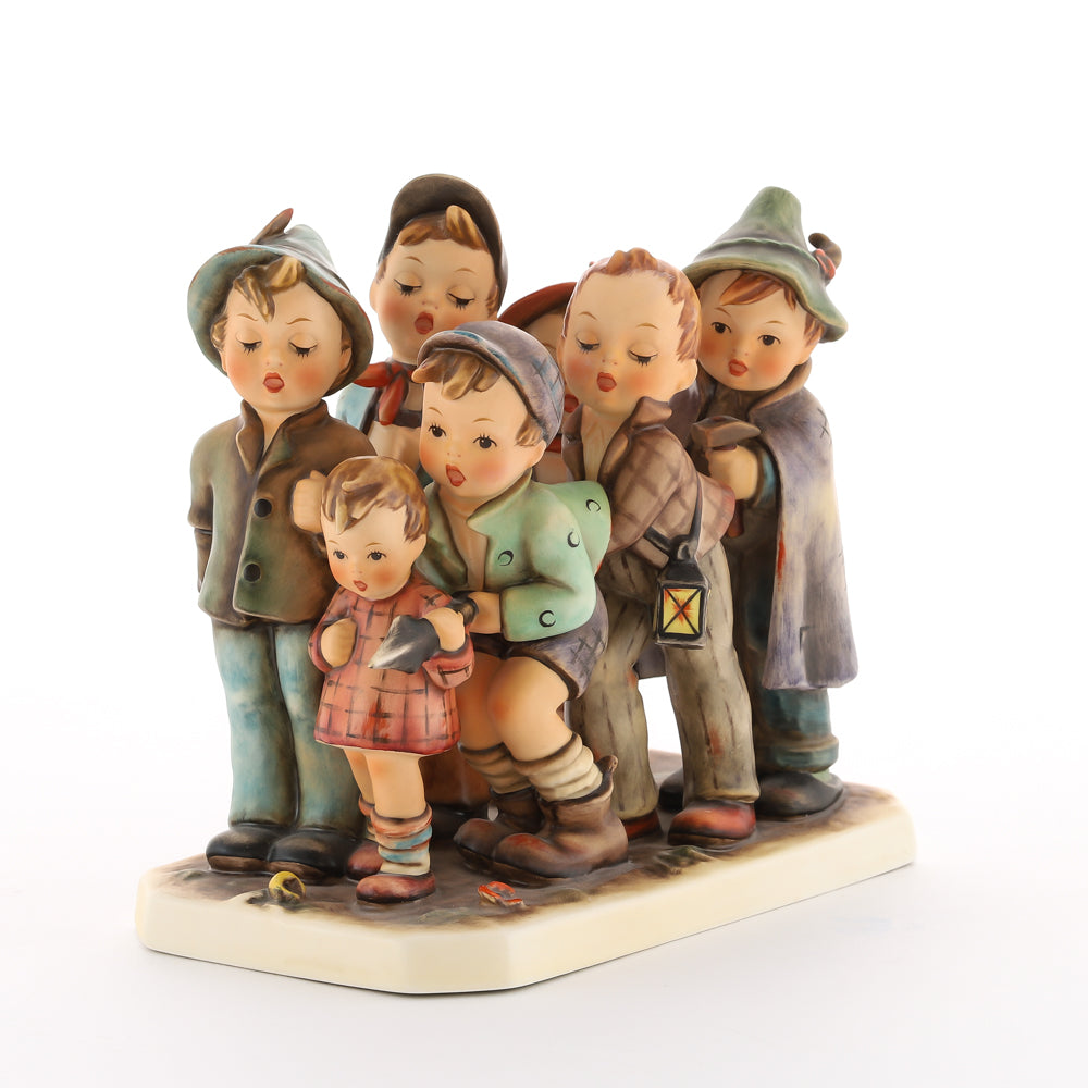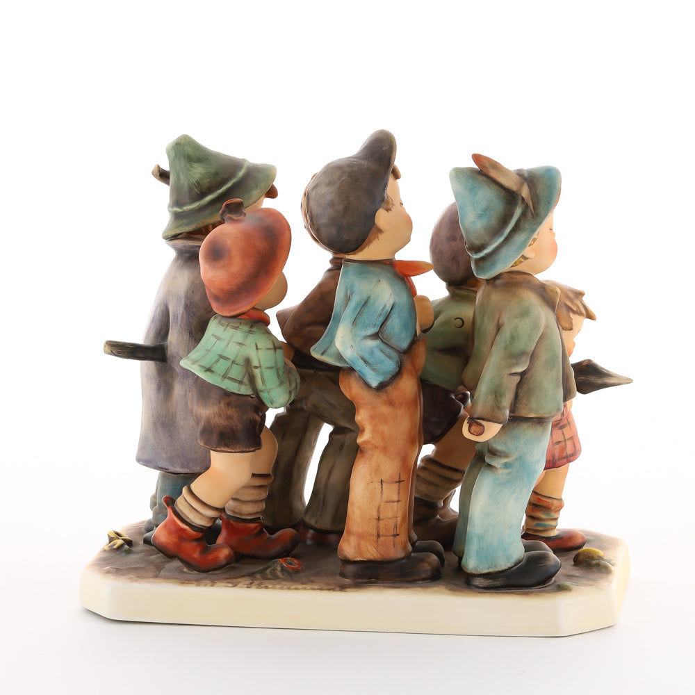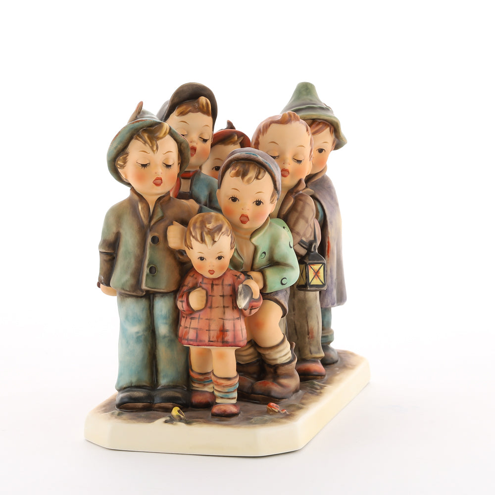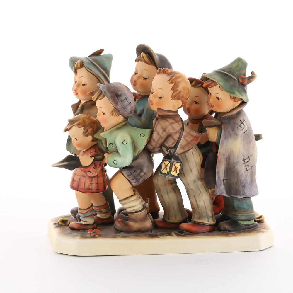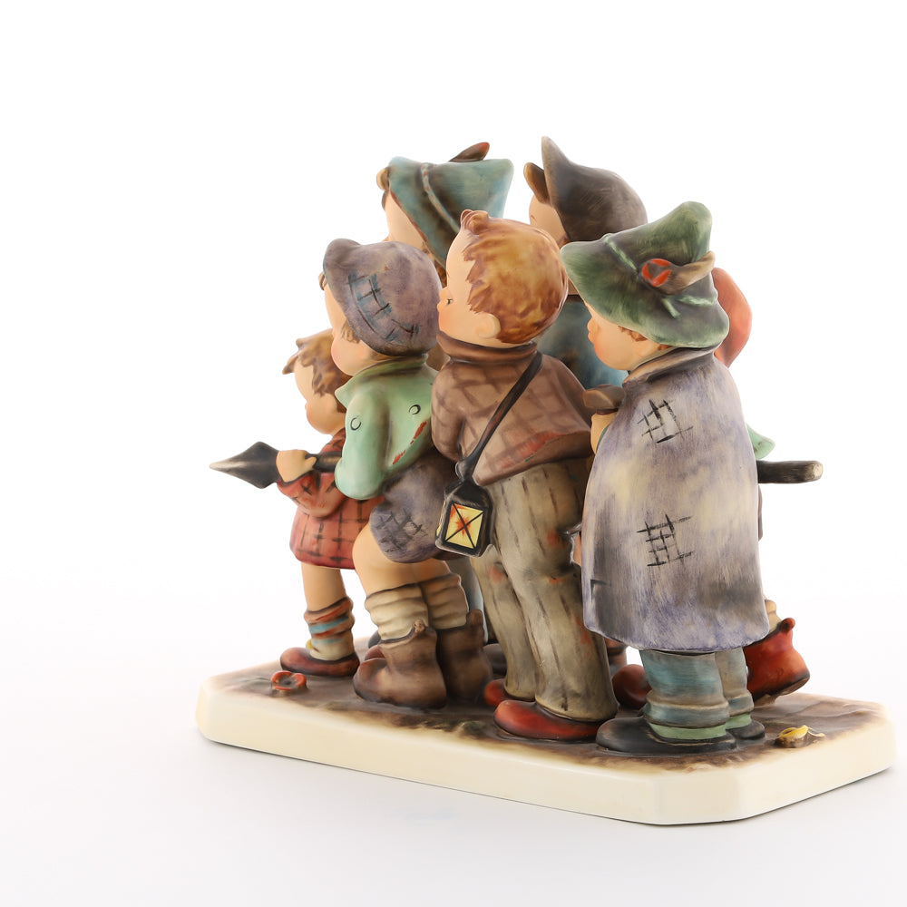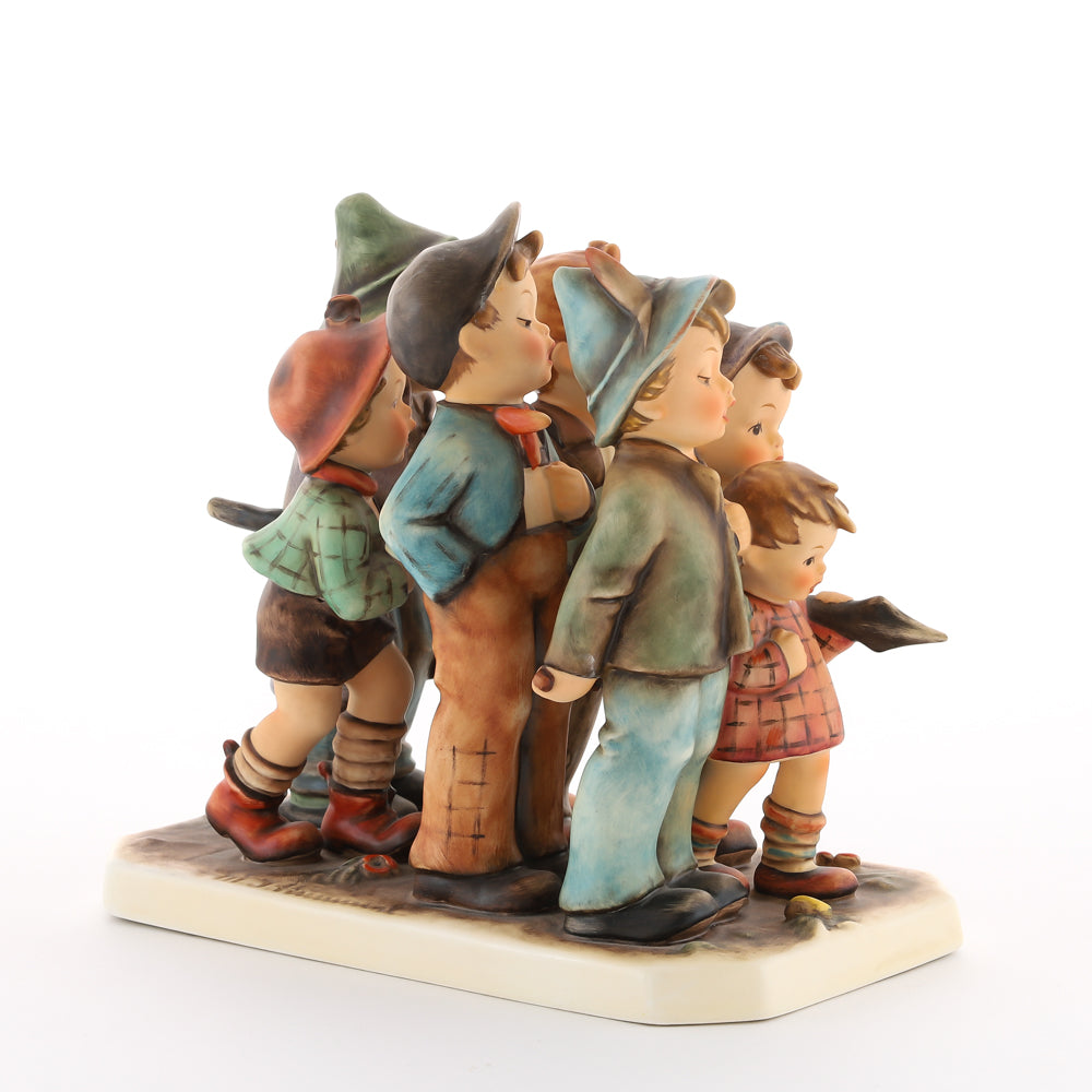 Diese original M.I. Hummel-Figur trägt den gleichnamigen Namen wie das Märchen "Die sieben Schwaben" der Brüder Grimm. Aber anders als die Grimmschen Schwaben sind die "Rödentaler Schwaben" nicht tollpatschig, sondern zeichnen sich durch hohe Präzision und Rafinesse aus. Diese Hummel-Figur wurde 1957 von Theo R. Menzenbach, welcher später als selbstständiger Künstler arbeitete, modelliert. Aufgrund der vielen einzelnen Arbeitsschritte, die notwendig sind, um jede der sieben Persönlichkeiten plastisch auferstehen zu lassen, ist die M.I. Hummel-Figur eine wahres Meisterwerk der Handwerkskunst und somit eine der Figuren, die die Hummel Manufaktur Rödental als ihren ganzen Stolz betrachtet.