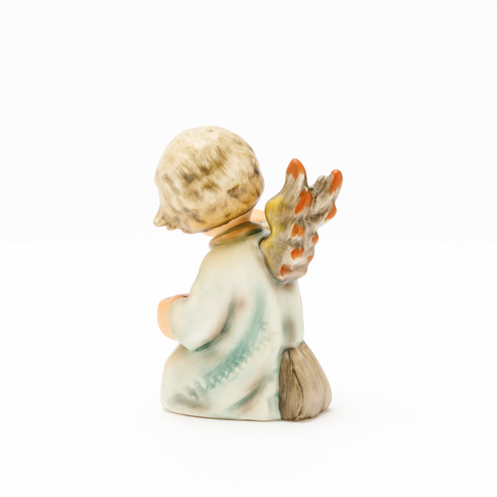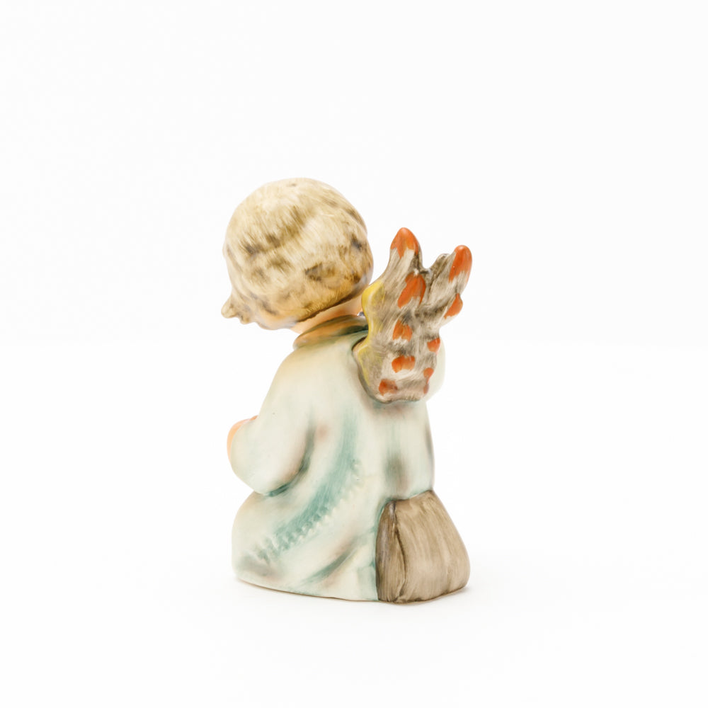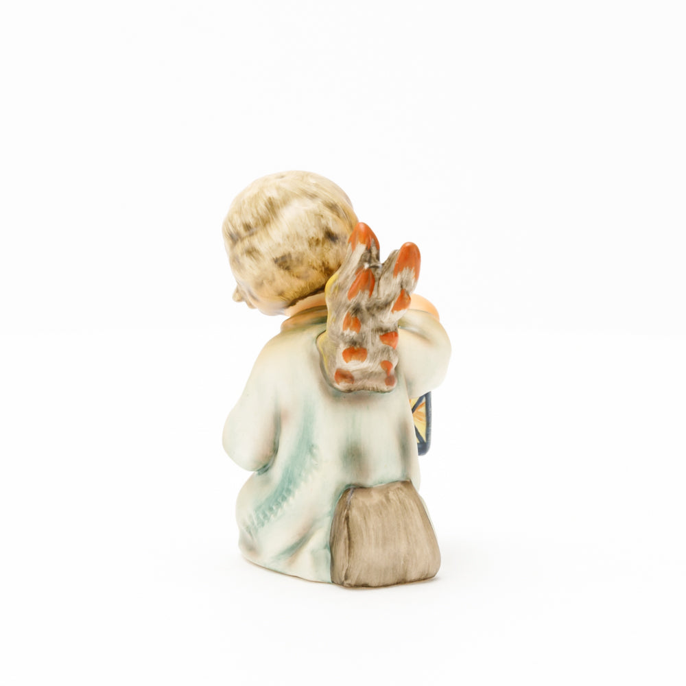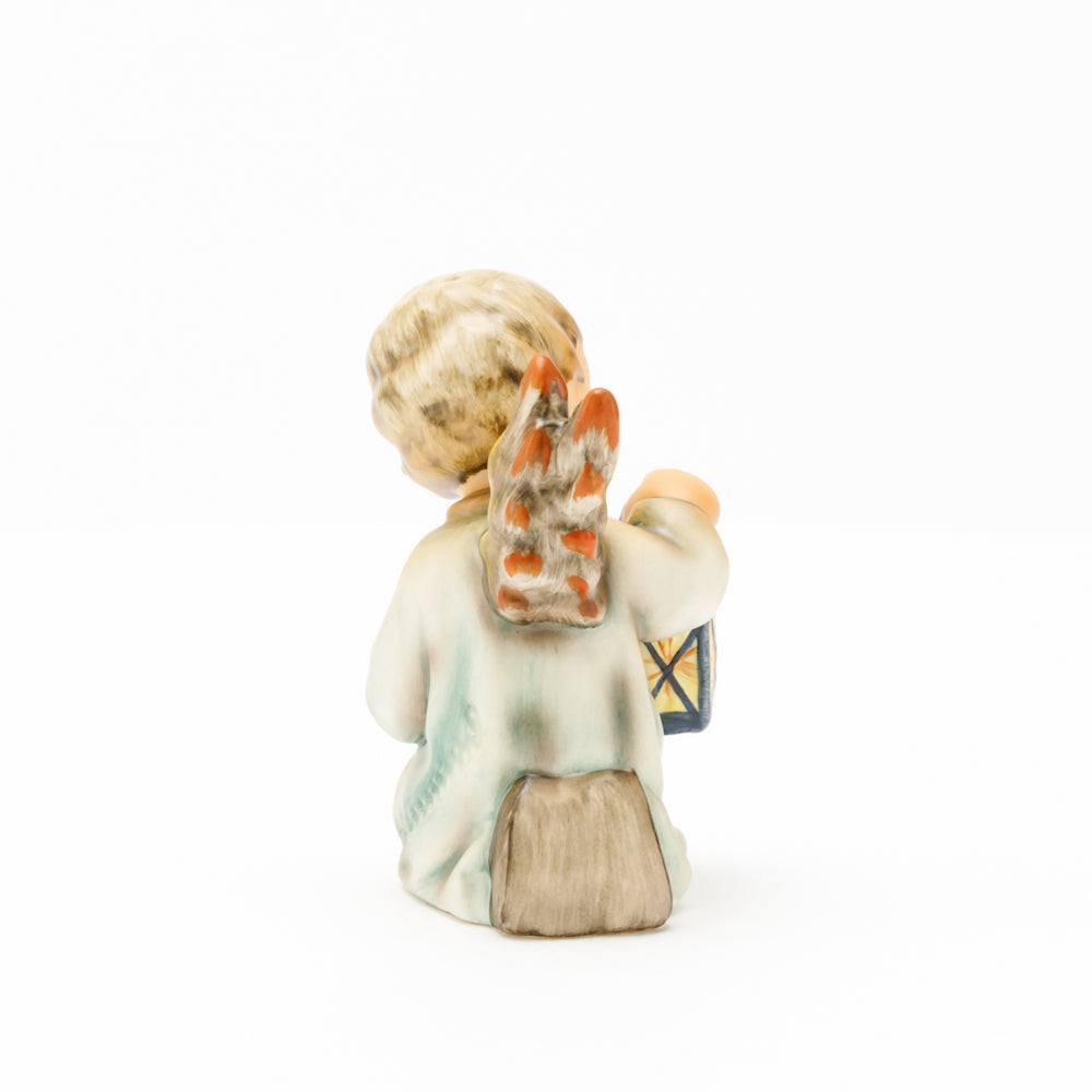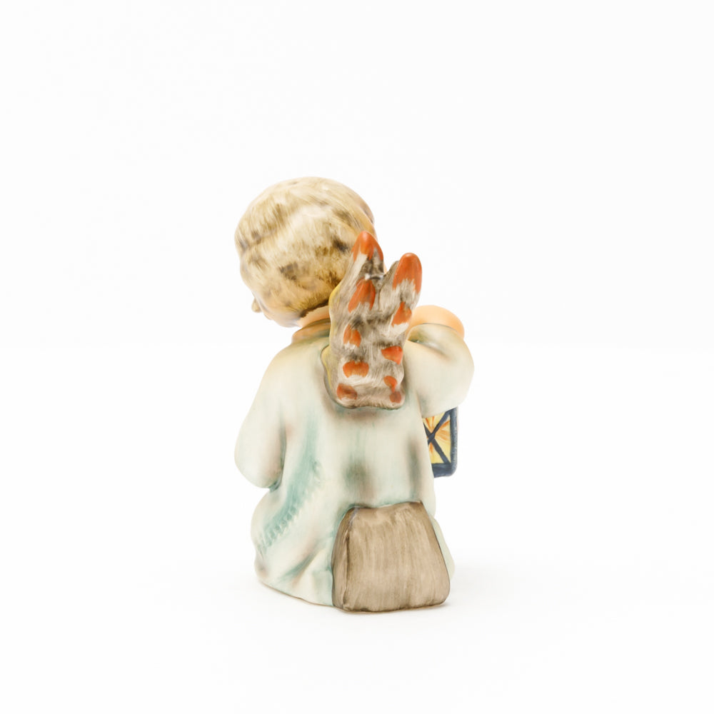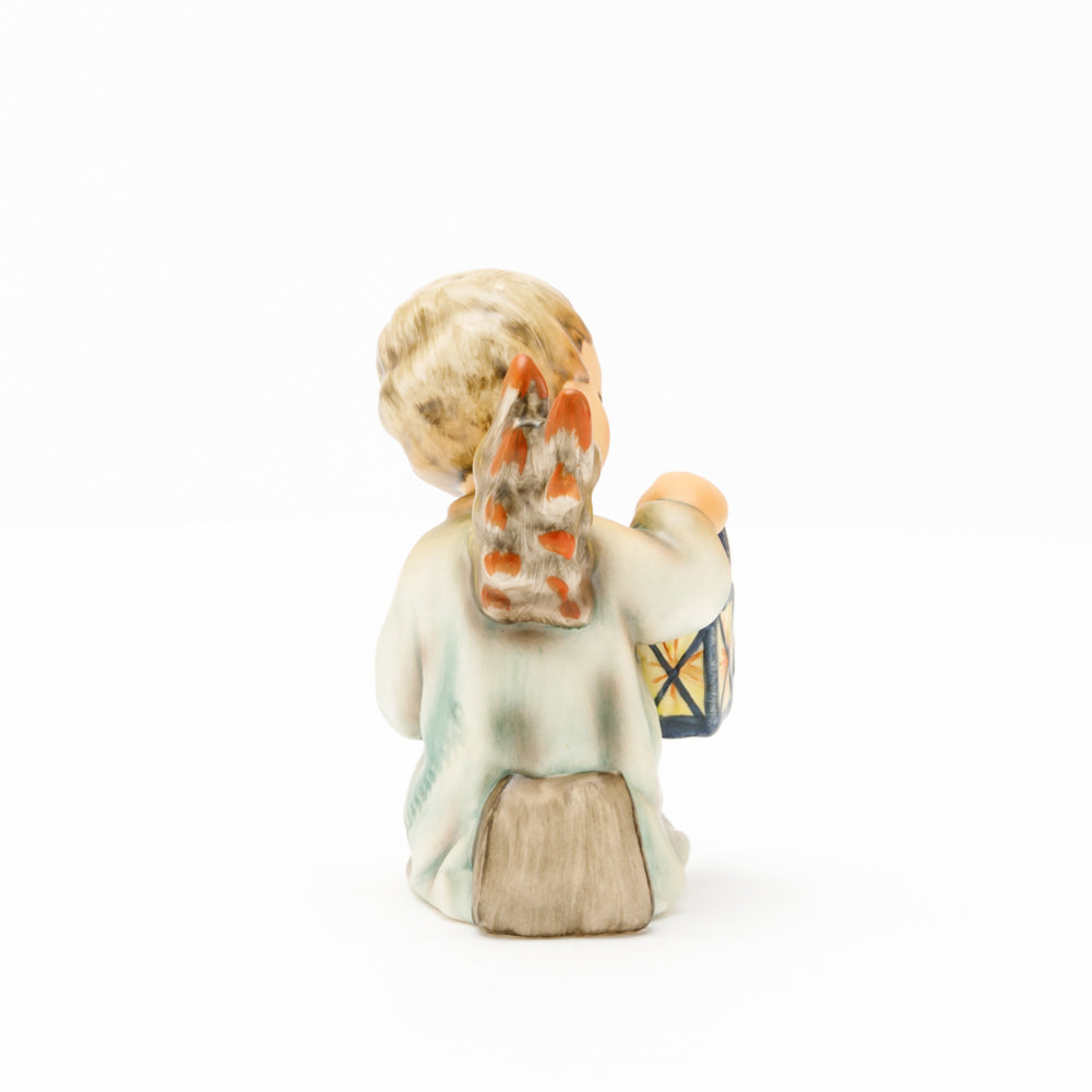 Mit der Laterne in der Hand sorgt der kleine Engel aus der Hummel Manufaktur Rödental für eine behagliche Stimmung. Der kniende Engel kümmert sich sorgsam um sein kleines Licht, damit es nicht erlischt. Diese Figur wurde im Jahr 1958 von Reinhold Unger modelliert und war ab 1972 auf dem amerikanischen Markt erhältlich. Zusammen mit der Hummel 358, "Kniender Engel mit Kerze" (HUM 358), und "Sitzender Engel mit Horn" (HUM 359) bilden die drei Engel ein hübsches Trio.