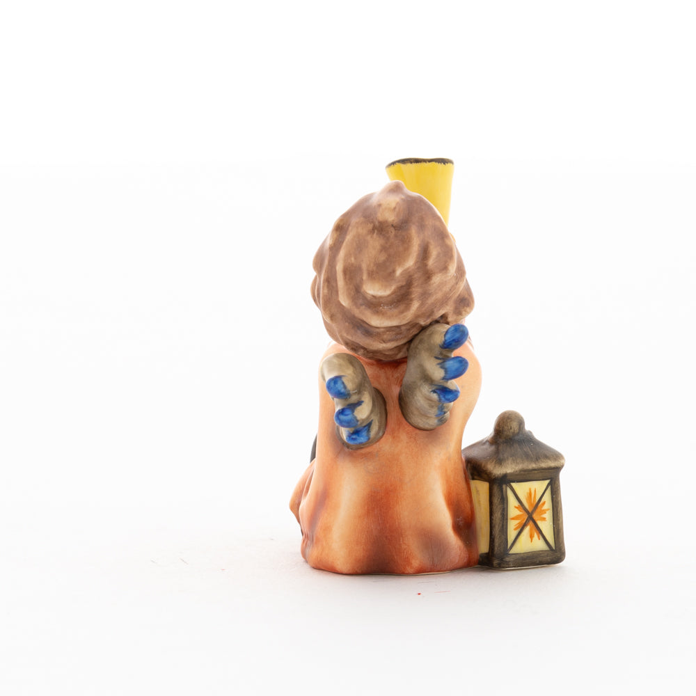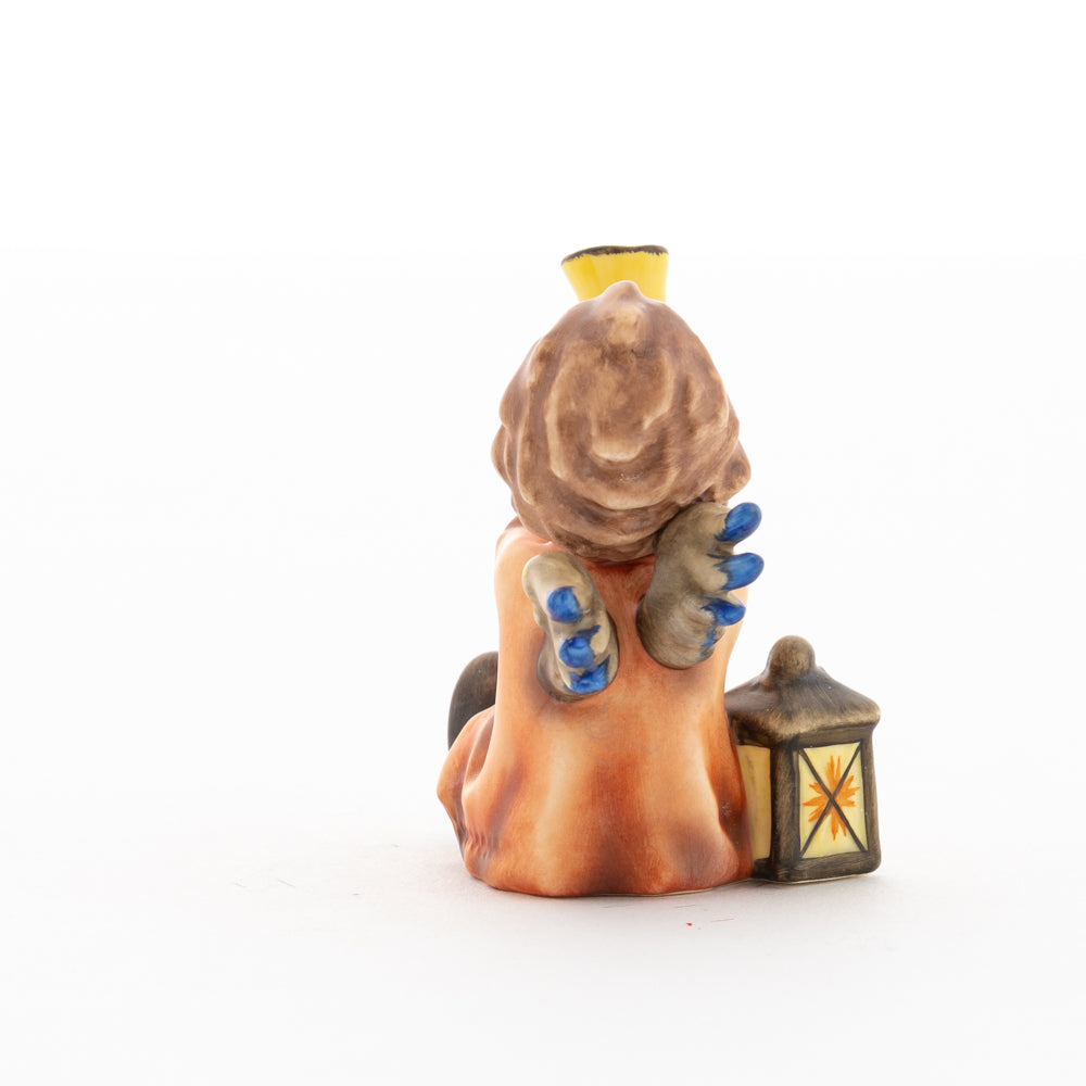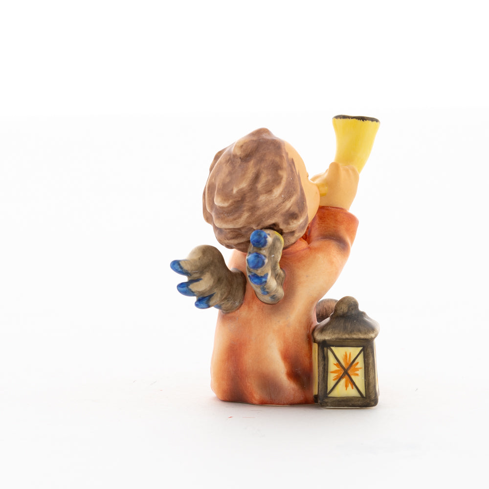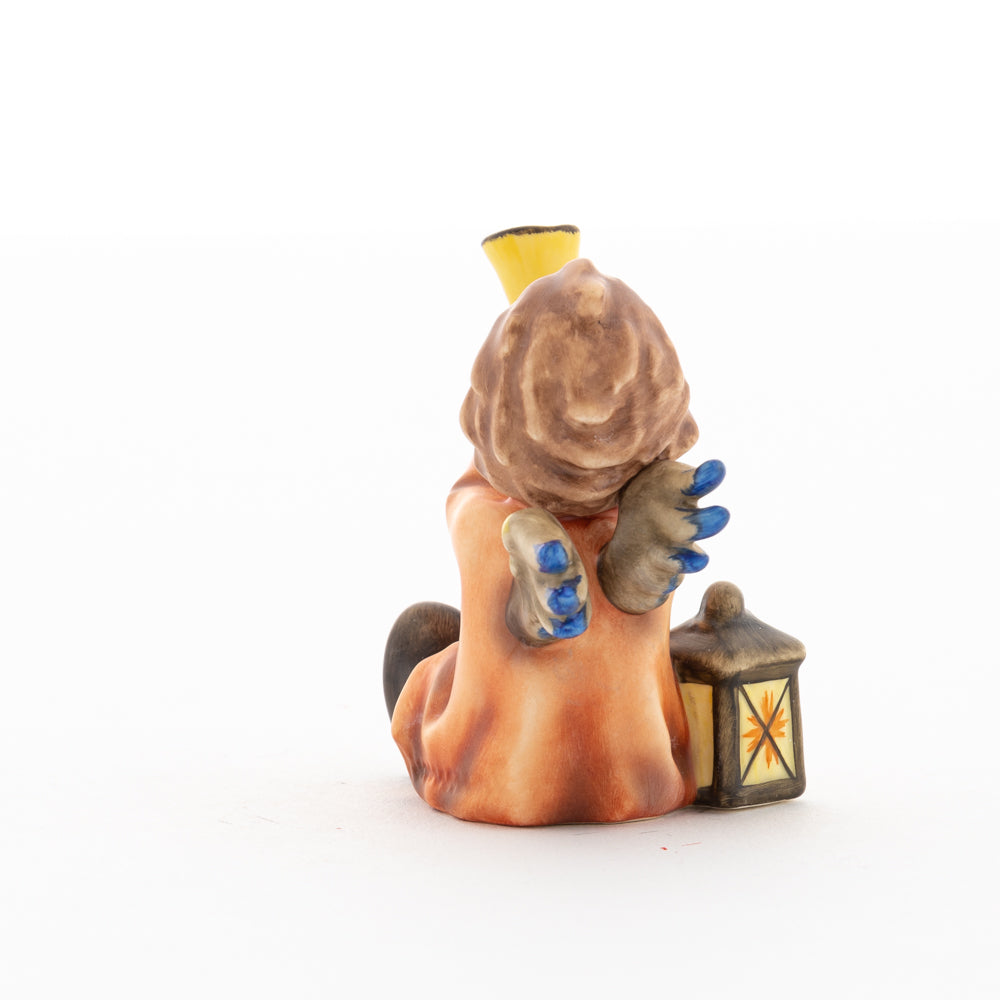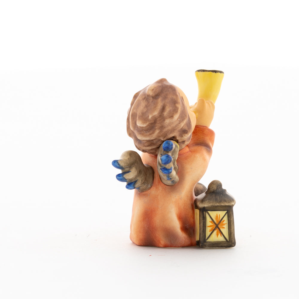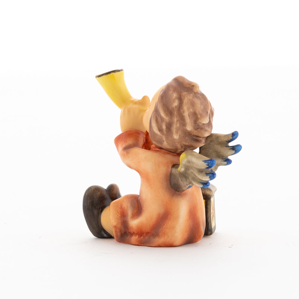 Der kleine Engel bläst ins Horn! Jesus Christus ist geboren! Ein jeder soll es wissen, ein jeder soll es hören. Voller Konzentration bläst unser Engelchen zum Wunder der Heiligen Nacht und vergisst alles um sich herum. Modelliert wurde der musikalische Verkünder im Jahr 1972 von Reinhold Unger. Zusammen mit der Hummel 358, Kniender Engel mit Kerze, und der Hummel 357, Kniender Engel mit Laterne, bilden die drei Engel ein hübsches Trio.