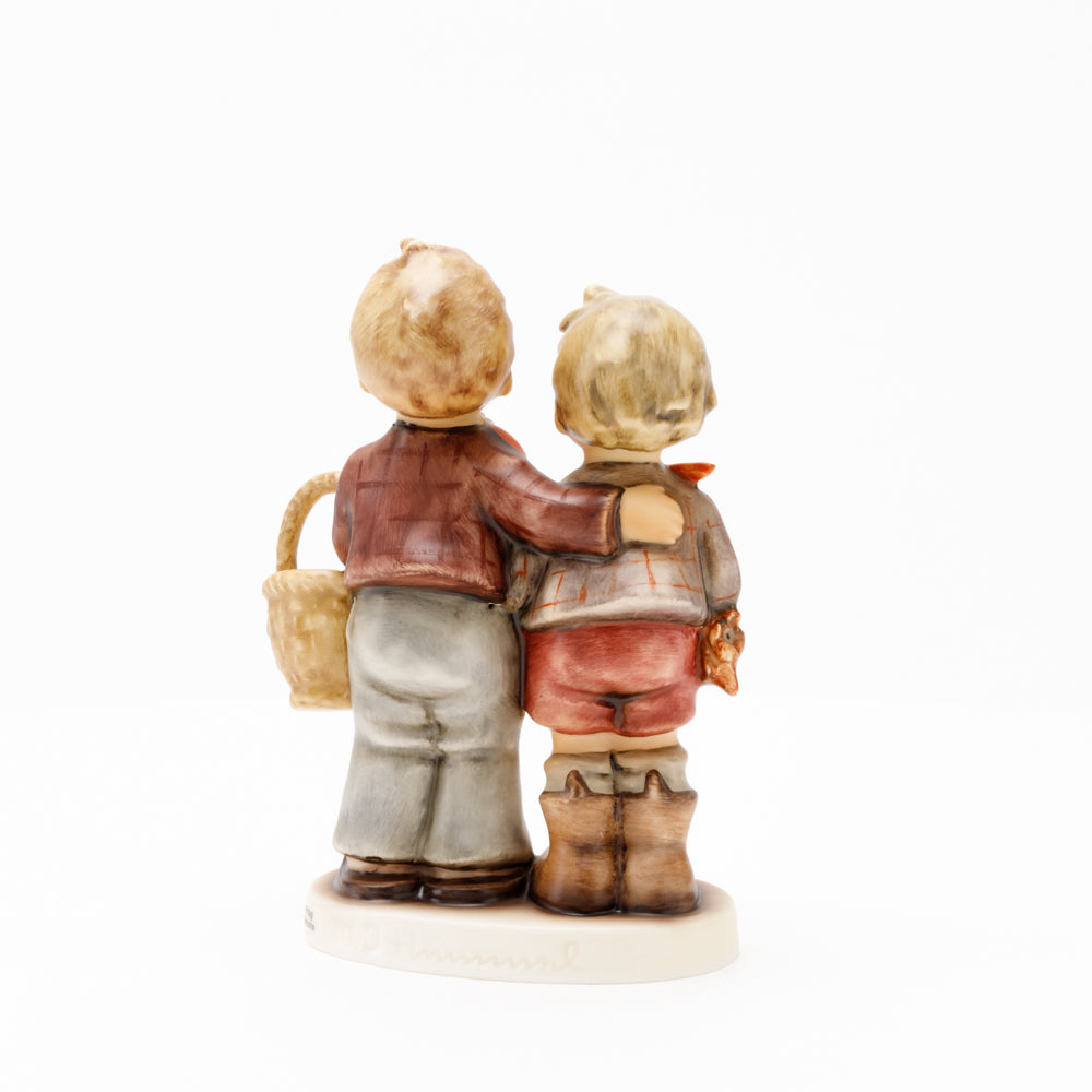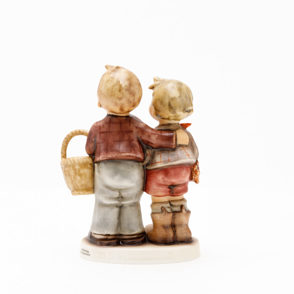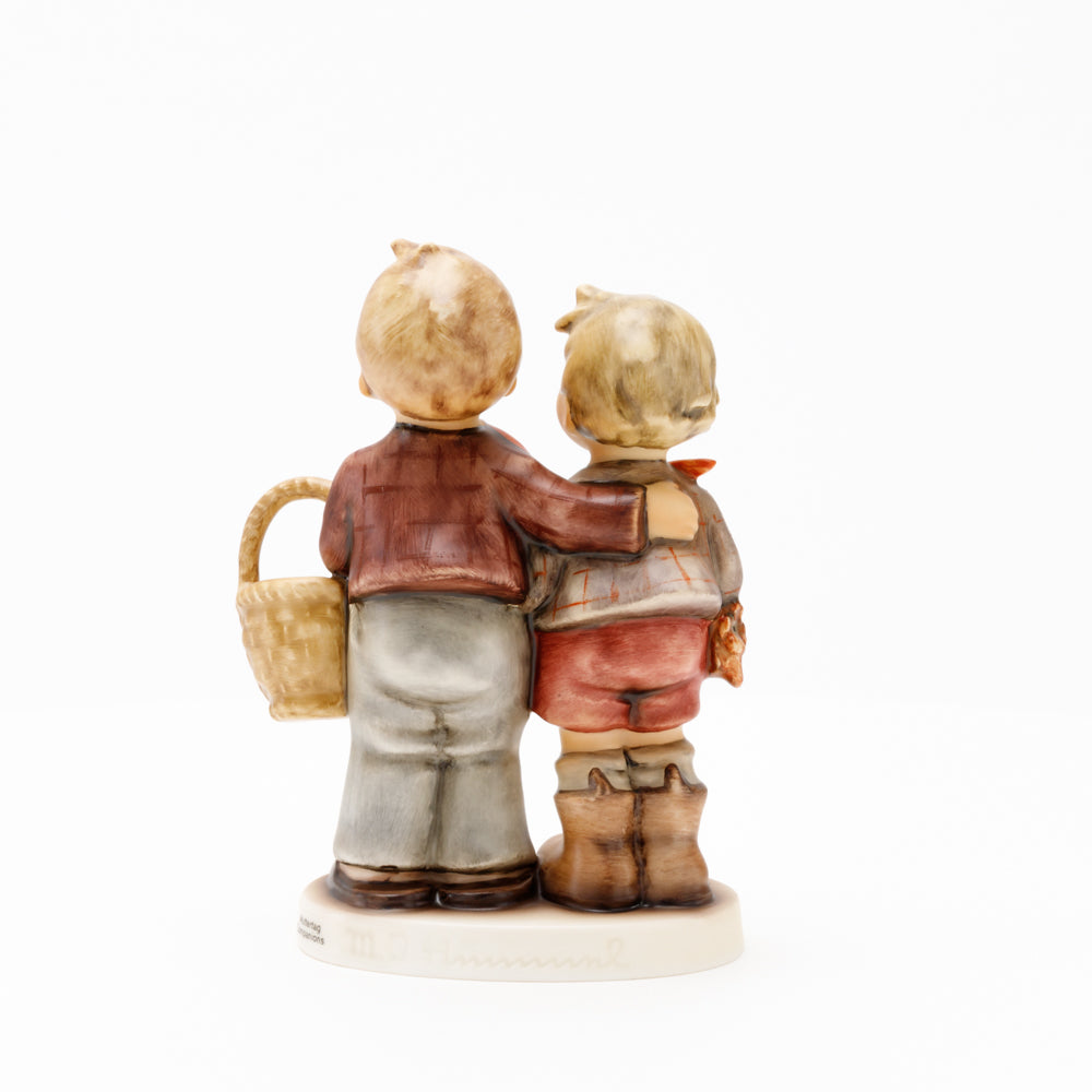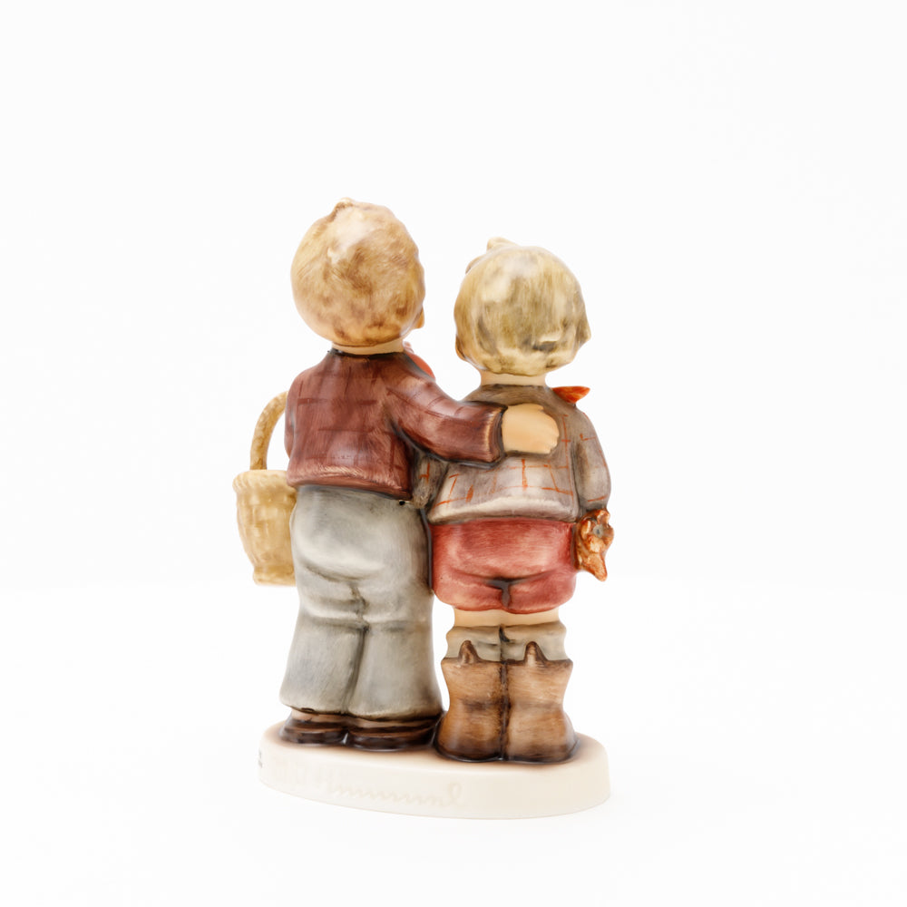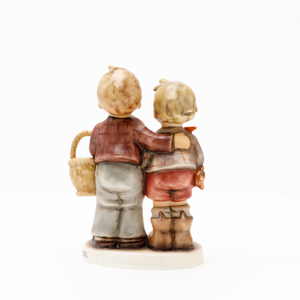 Ursprünglich auf den Namen "Bruderliebe" getauft wartete diese von Gerhard Skrobek im Mai 1964 gestaltete Hummel-Figur über ein halbes Jahrhundert auf ihren großen Auftritt. Die zwei bayerischen Lausbuben, ausgestattet mit einem kleinen Körbchen, lassen offen, was genau sie noch vorhaben. Aufgrund des aktuellen Namens "Muttertag" liegt es nahe, dass die zwei Buben auf der Suche nach einem Muttertagsgeschenk sind. Aber die original Hummel-Figur selbst ist ein ideales Muttertagsgeschenk. Die Figur ist, wie alle anderen original Hummel-Figuren, nach den Zeichnungen von Schwester Maria Innocentia Hummel gestaltet. Die Hummel-Figur erscheint neben weiteren Figuren, die als Muttertagspräsente gedacht sind. So zum Beispiel auch die Hummel-Figur "Für Mami" (HUM 2258).
