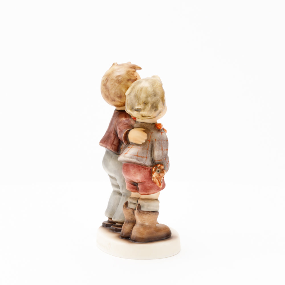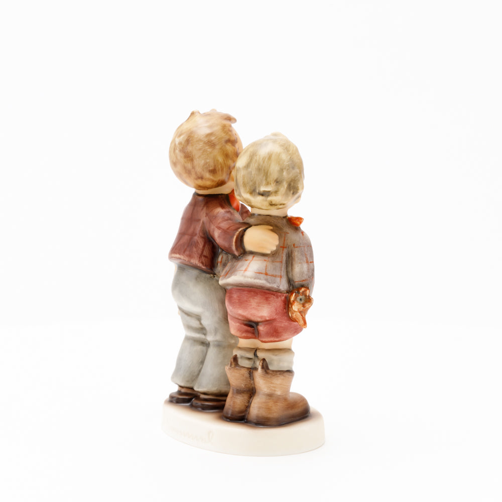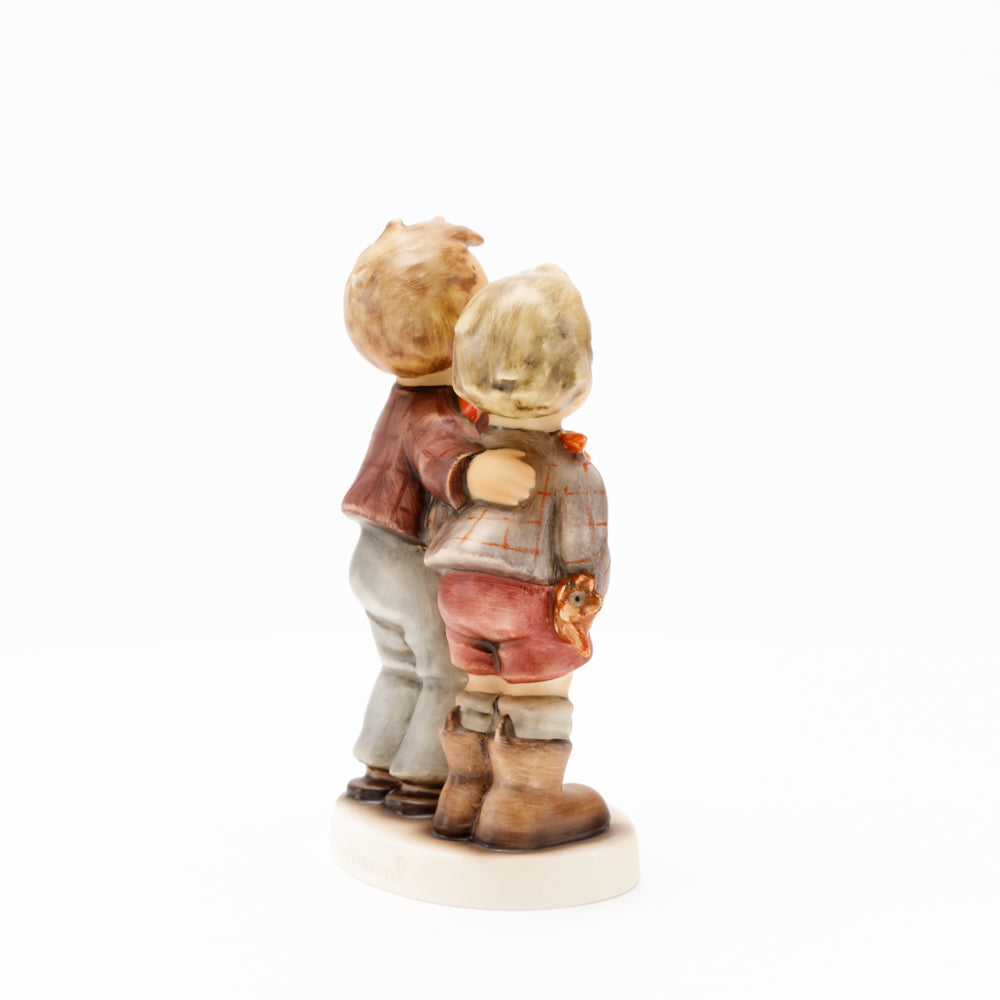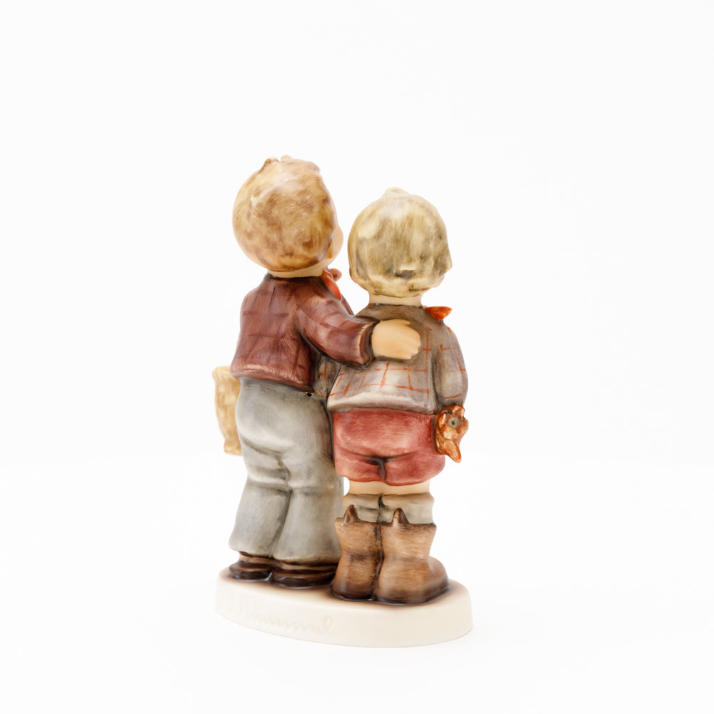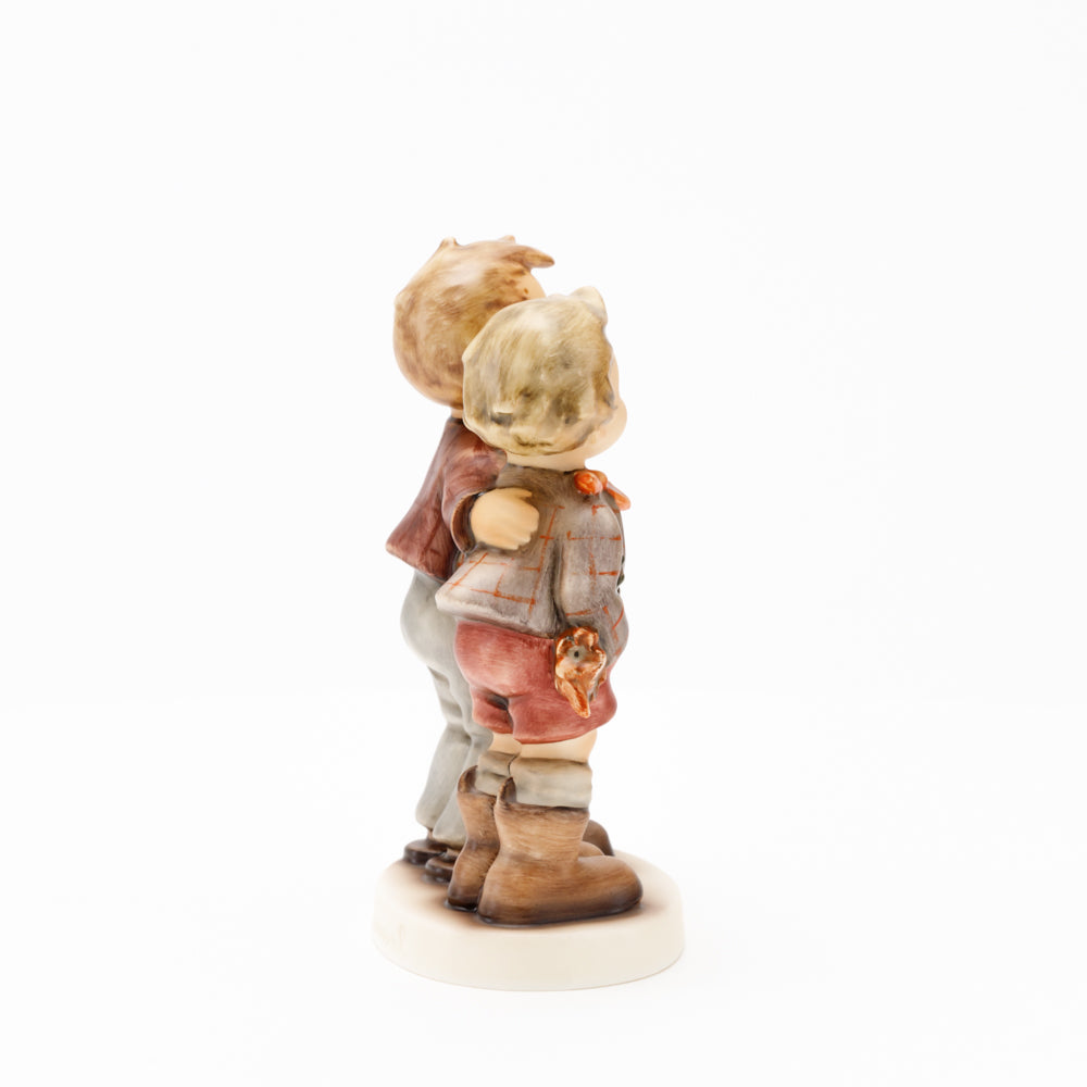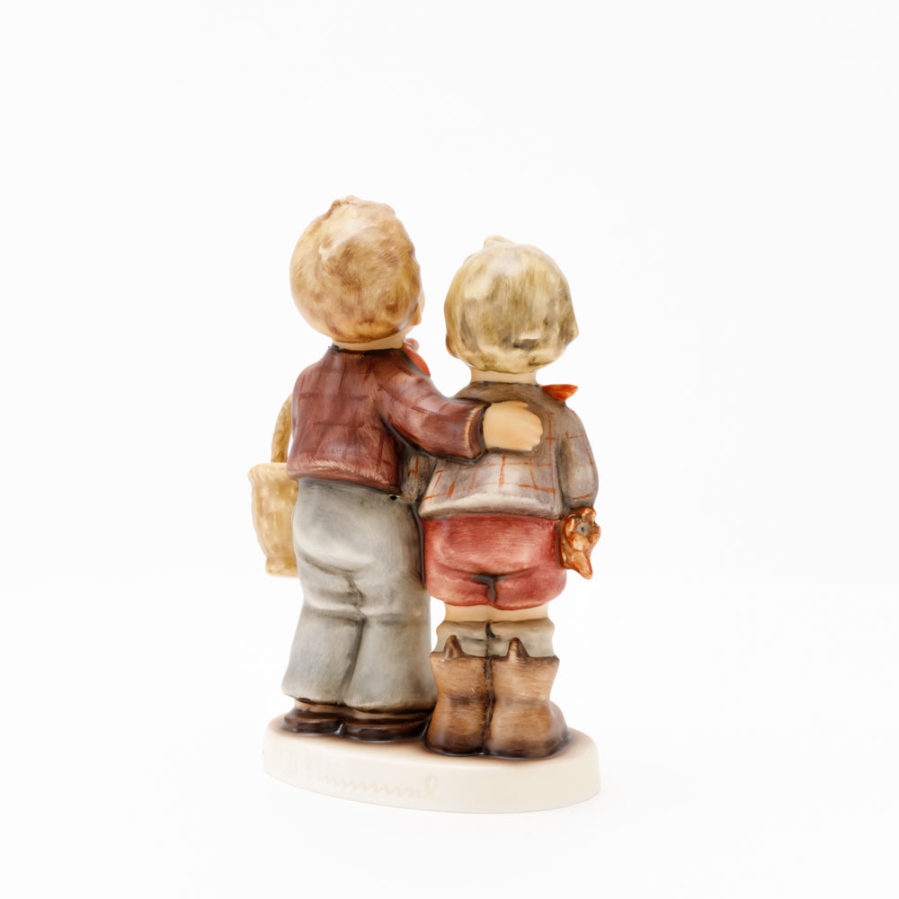 Ursprünglich auf den Namen "Bruderliebe" getauft wartete diese von Gerhard Skrobek im Mai 1964 gestaltete Hummel-Figur über ein halbes Jahrhundert auf ihren großen Auftritt. Die zwei bayerischen Lausbuben, ausgestattet mit einem kleinen Körbchen, lassen offen, was genau sie noch vorhaben. Aufgrund des aktuellen Namens "Muttertag" liegt es nahe, dass die zwei Buben auf der Suche nach einem Muttertagsgeschenk sind. Aber die original Hummel-Figur selbst ist ein ideales Muttertagsgeschenk. Die Figur ist, wie alle anderen original Hummel-Figuren, nach den Zeichnungen von Schwester Maria Innocentia Hummel gestaltet. Die Hummel-Figur erscheint neben weiteren Figuren, die als Muttertagspräsente gedacht sind. So zum Beispiel auch die Hummel-Figur "Für Mami" (HUM 2258).