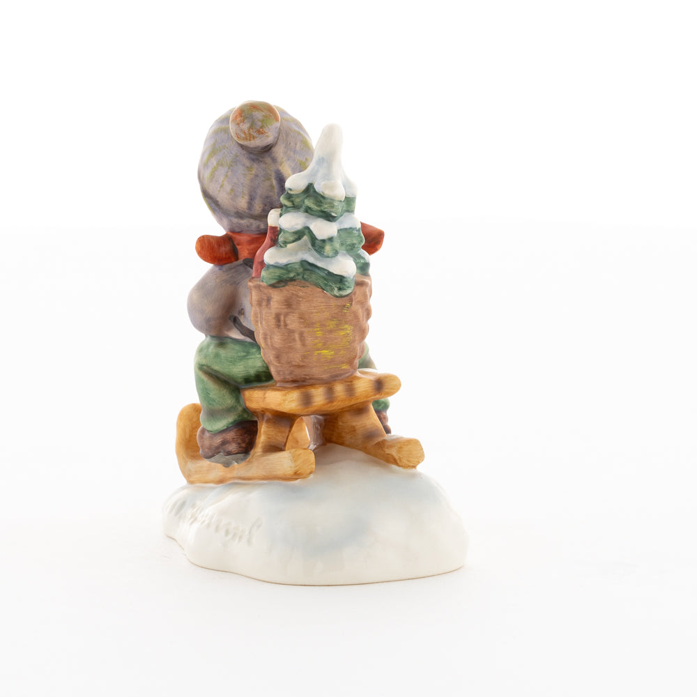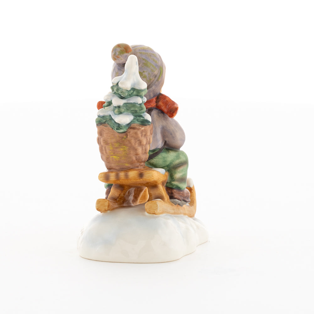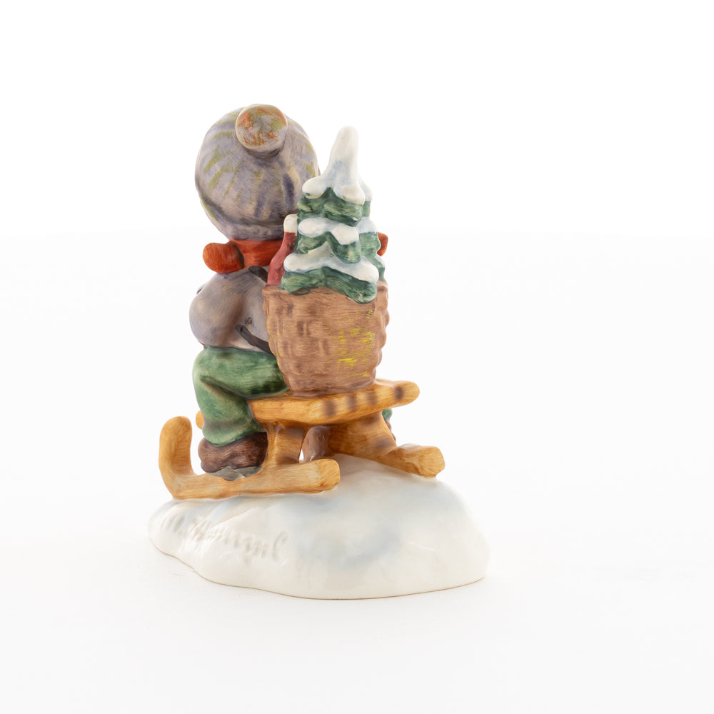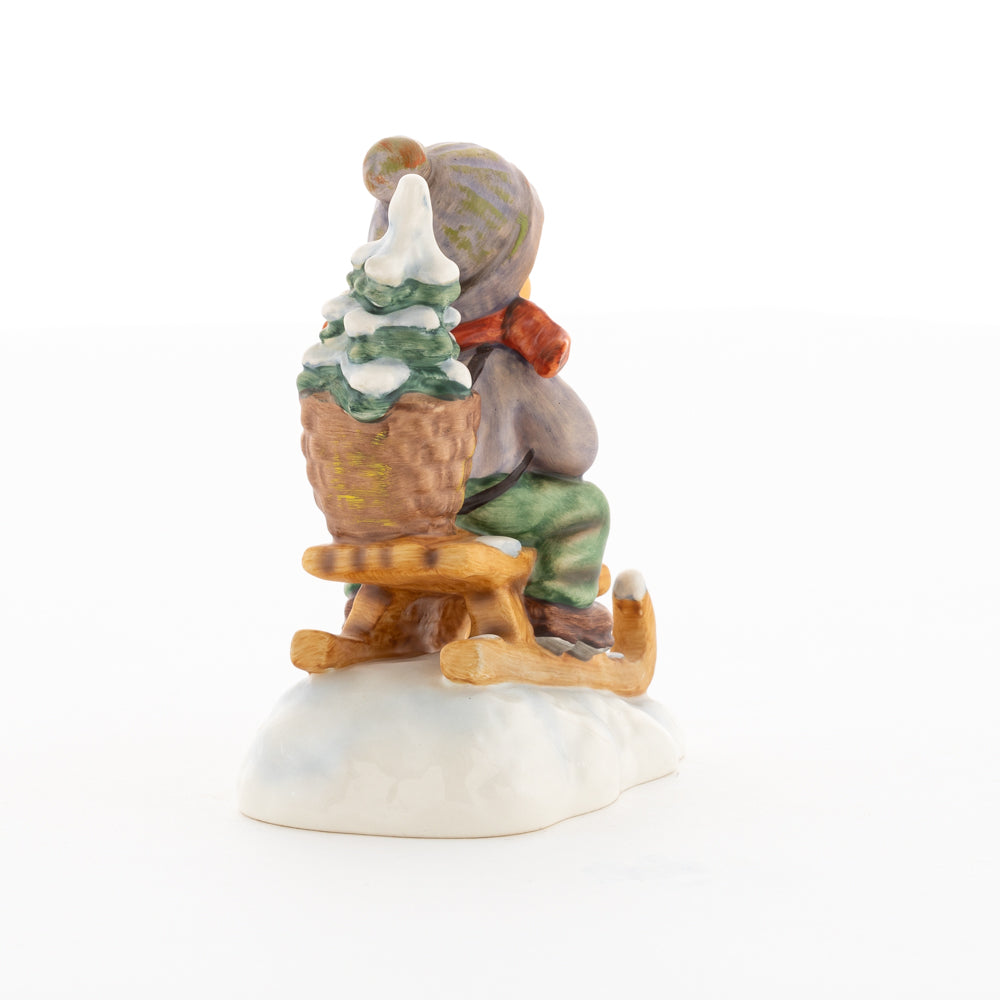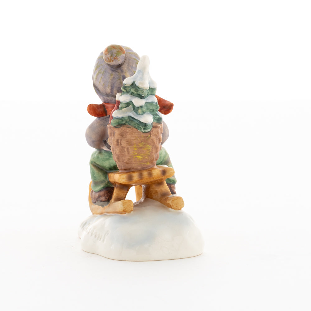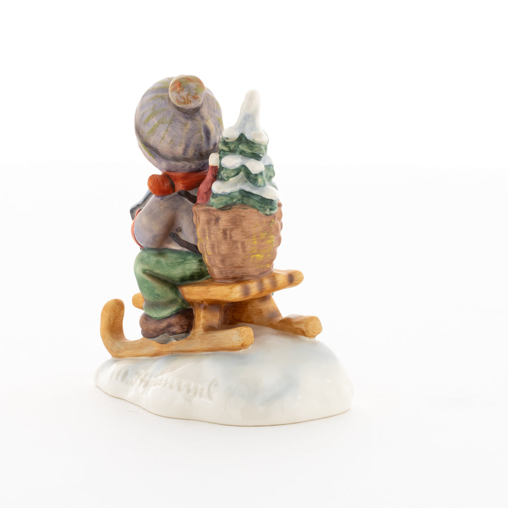 Hui! Schneller als gedacht saust der kleine Hummel-Bub auf seinem Schlitten den verschneiten Hügel hinab. Ganz fest hält er seine Laterne, die ihm den Weg leuchtet. Keinesfalls darf das Licht ausgehen, das ihm den Weg leuchtet! Hoffentlich denkt der junge Mann aus der Hummel Manufaktur auch an den Tannenbaum am Ende seines Schlittens? Nicht, dass er das liebevoll ausgesuchte Bäumchen noch verliert. Dabei soll das Tannengrün doch die gute Stube schmücken!