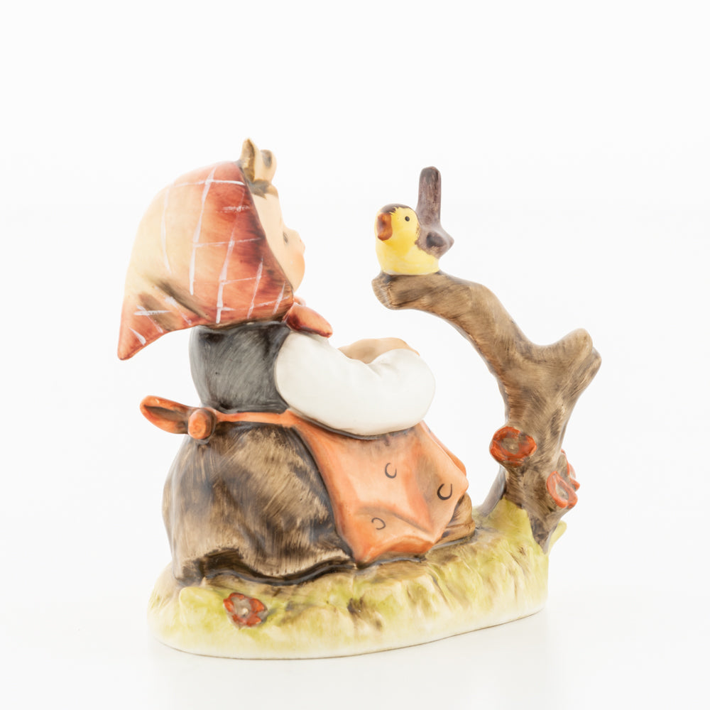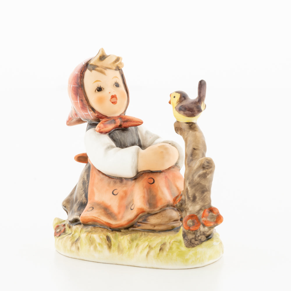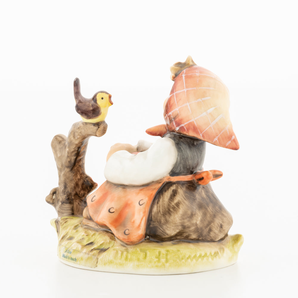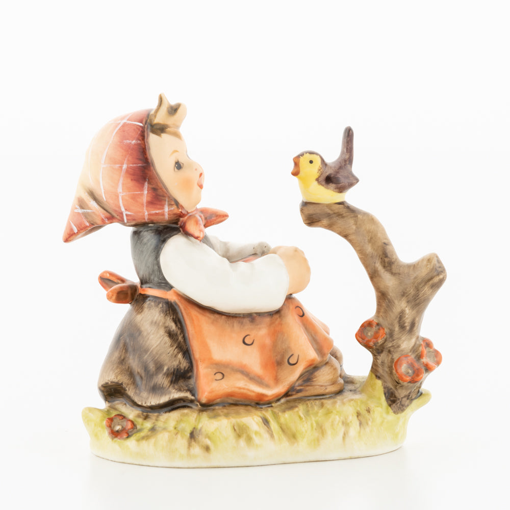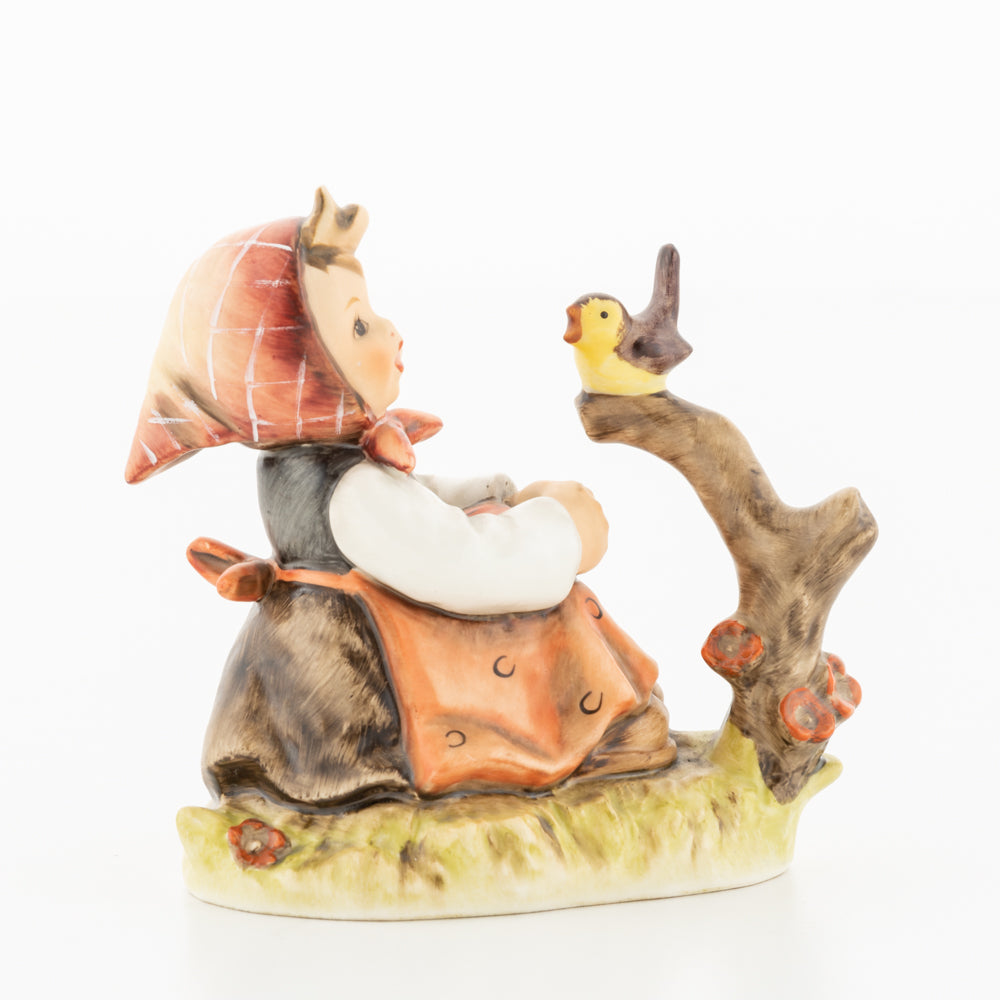 Wer wohl zuerst sein Liedchen angestimmt hat? Das reizende Duett "Mach´s nach" aus Hummel-Mädchen und dem kleinen Vögelchen wurde im Jahr 1981 erstmalig für den amerikanischen Markt produziert. Meistermodelleur Gerhard Skrobek hauchte der original M.I. Hummel-Figur Leben ein. Die beiden fröhlichen Gesellen aus der Hummel Manufaktur Rödental sind auch auf der Hummel-Glocke HUM 703 und dem Springtime Teller HUM 297 als Motiv zu finden.