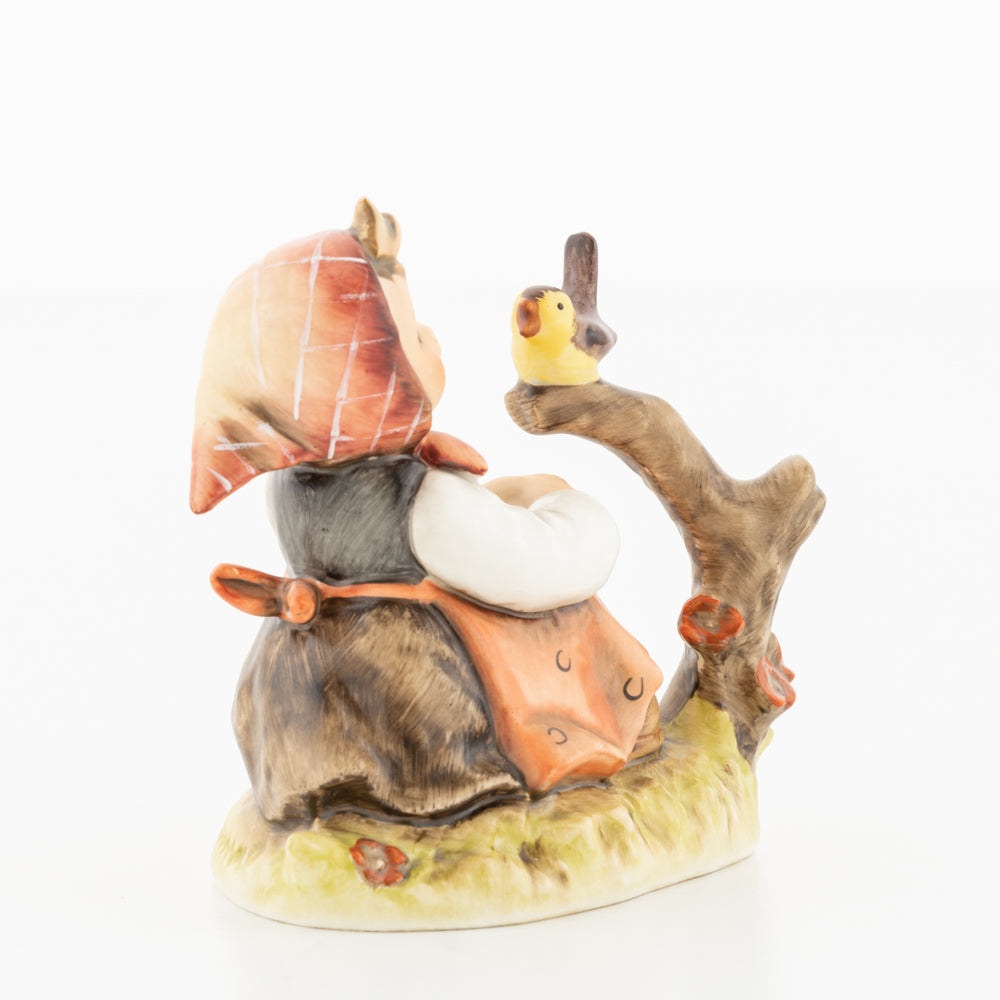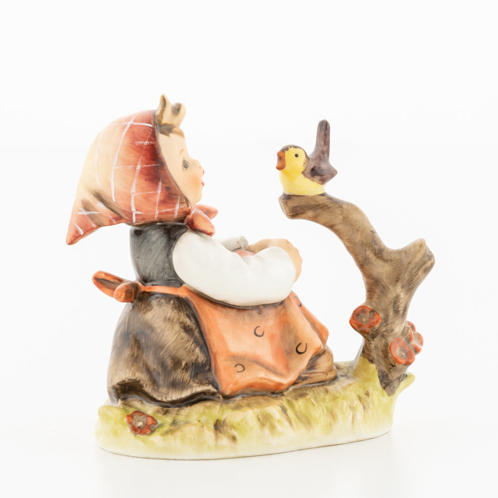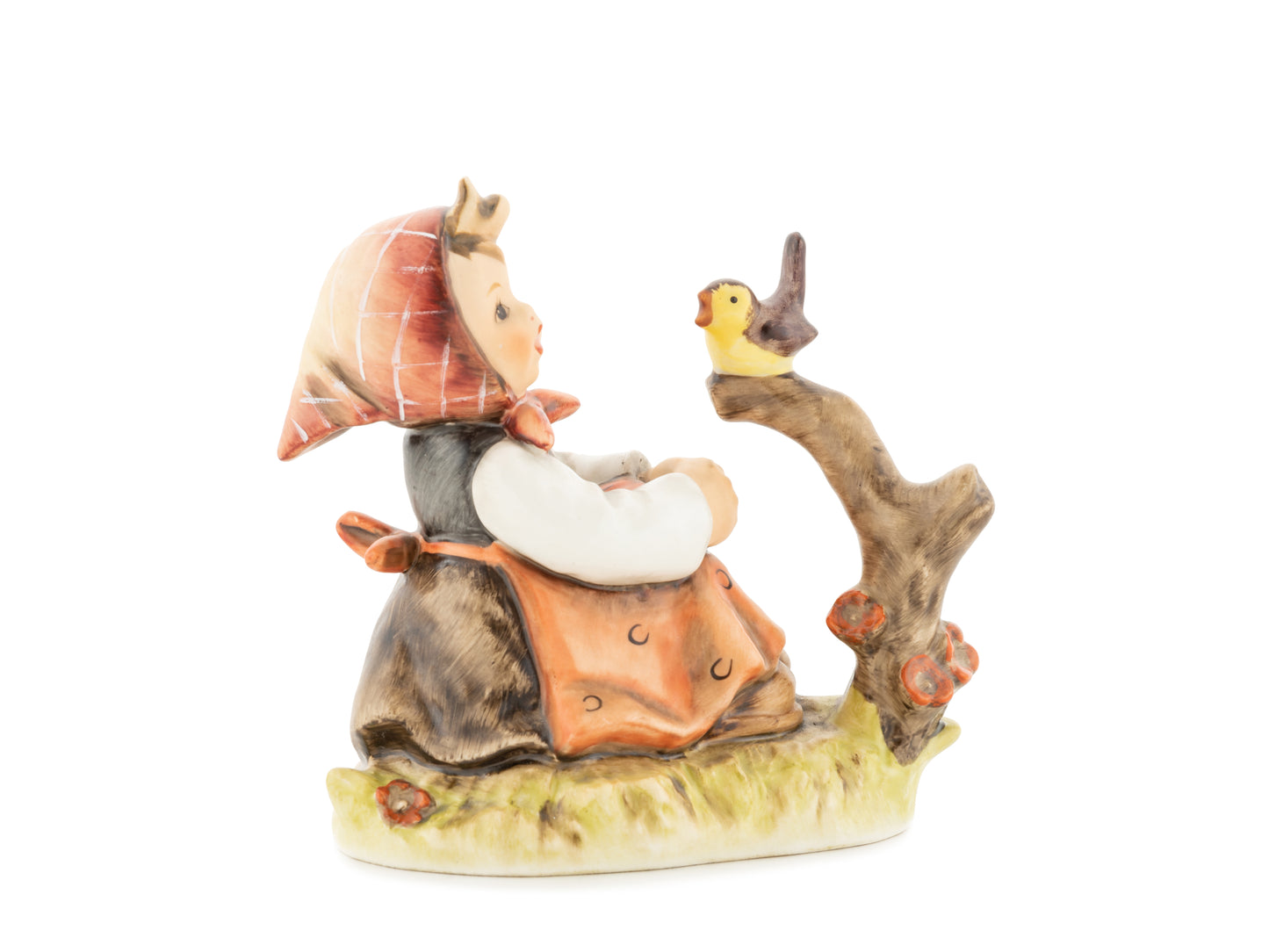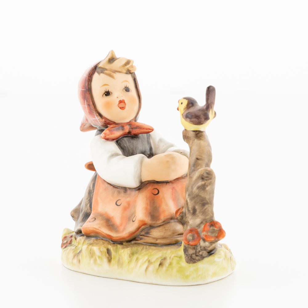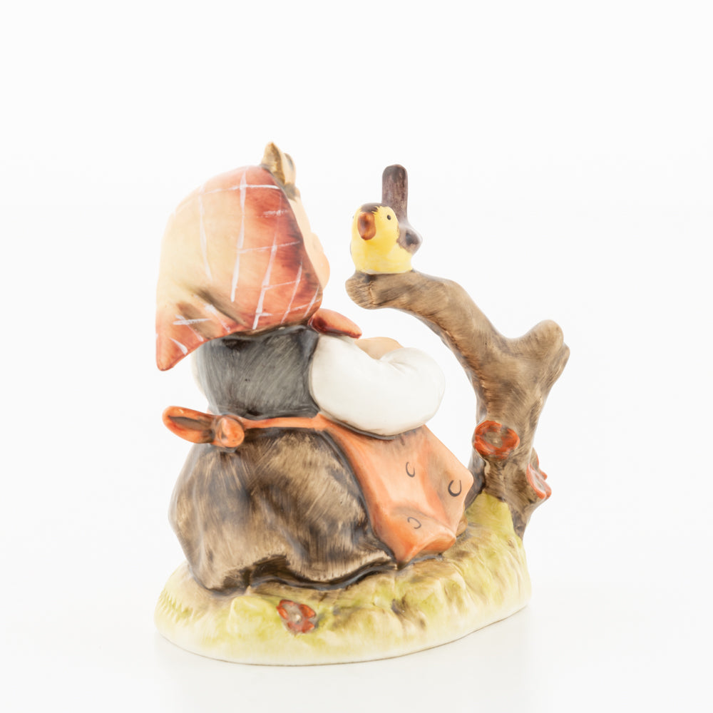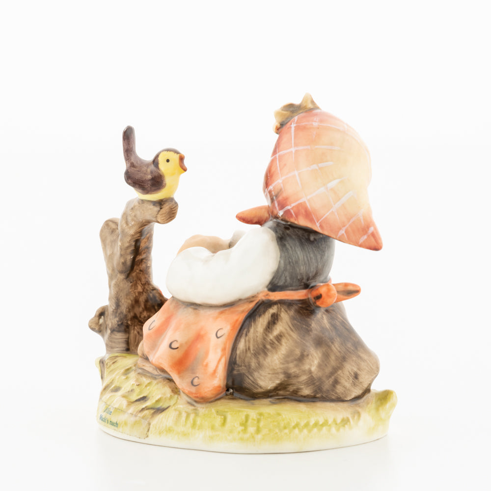 Wer wohl zuerst sein Liedchen angestimmt hat? Das reizende Duett "Mach´s nach" aus Hummel-Mädchen und dem kleinen Vögelchen wurde im Jahr 1981 erstmalig für den amerikanischen Markt produziert. Meistermodelleur Gerhard Skrobek hauchte der original M.I. Hummel-Figur Leben ein. Die beiden fröhlichen Gesellen aus der Hummel Manufaktur Rödental sind auch auf der Hummel-Glocke HUM 703 und dem Springtime Teller HUM 297 als Motiv zu finden.