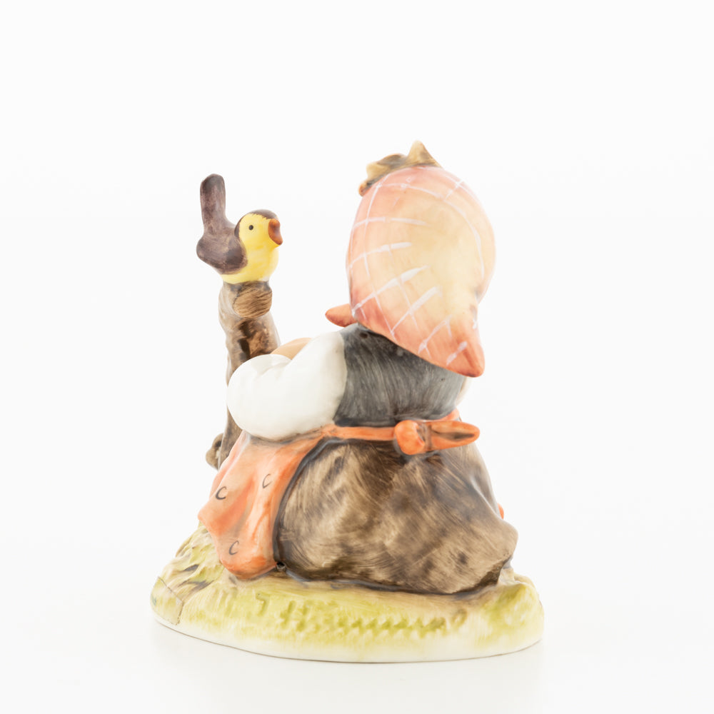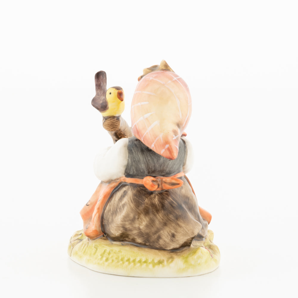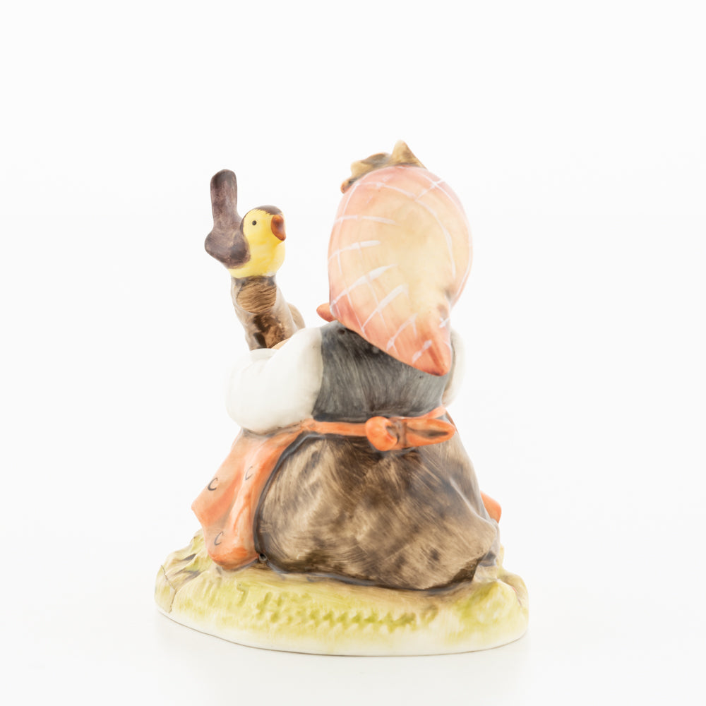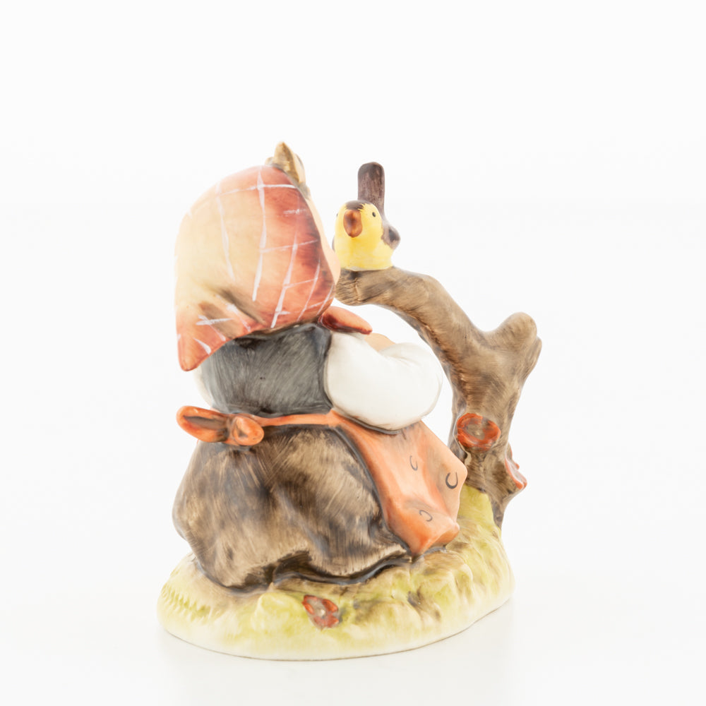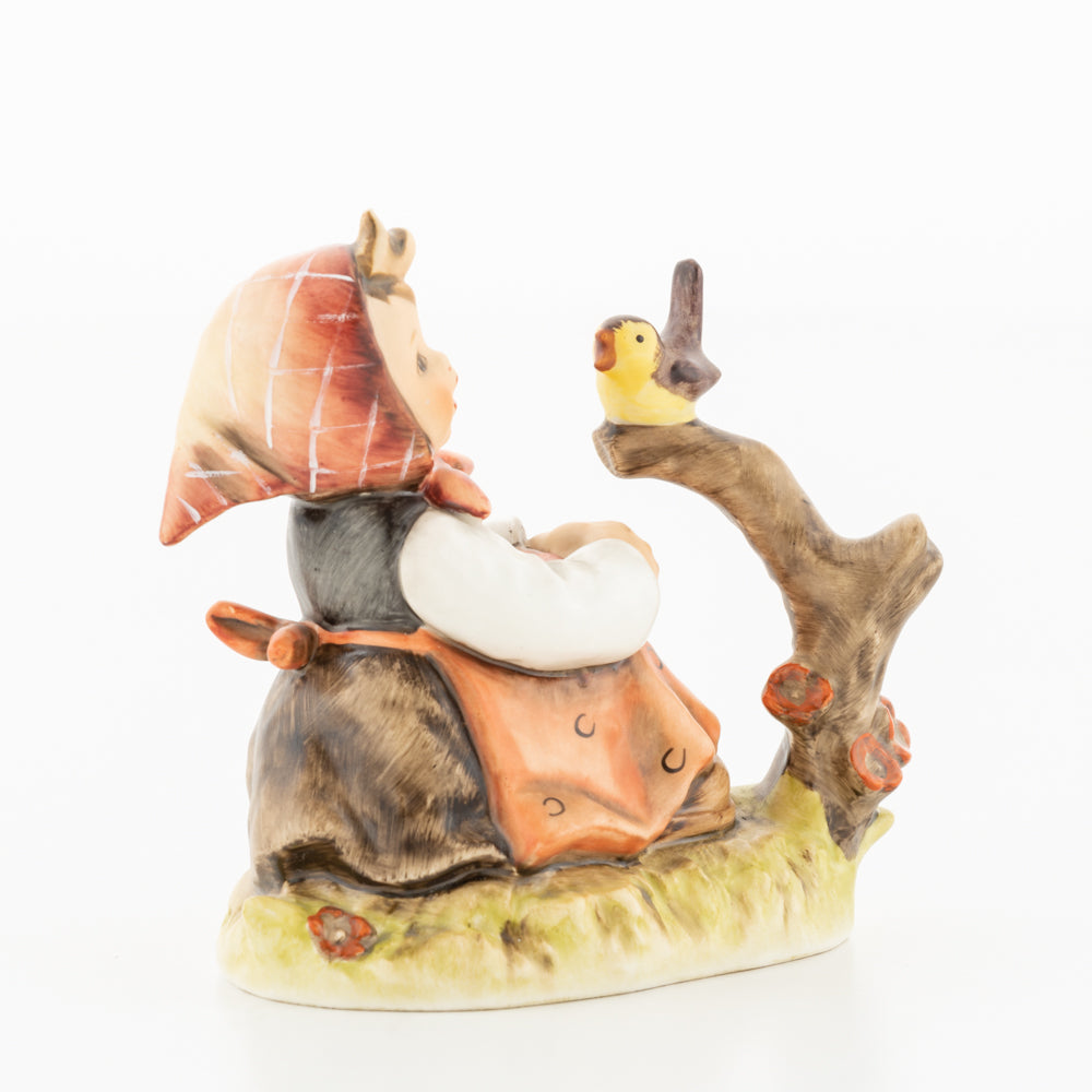 Wer wohl zuerst sein Liedchen angestimmt hat? Das reizende Duett "Mach´s nach" aus Hummel-Mädchen und dem kleinen Vögelchen wurde im Jahr 1981 erstmalig für den amerikanischen Markt produziert. Meistermodelleur Gerhard Skrobek hauchte der original M.I. Hummel-Figur Leben ein. Die beiden fröhlichen Gesellen aus der Hummel Manufaktur Rödental sind auch auf der Hummel-Glocke HUM 703 und dem Springtime Teller HUM 297 als Motiv zu finden.