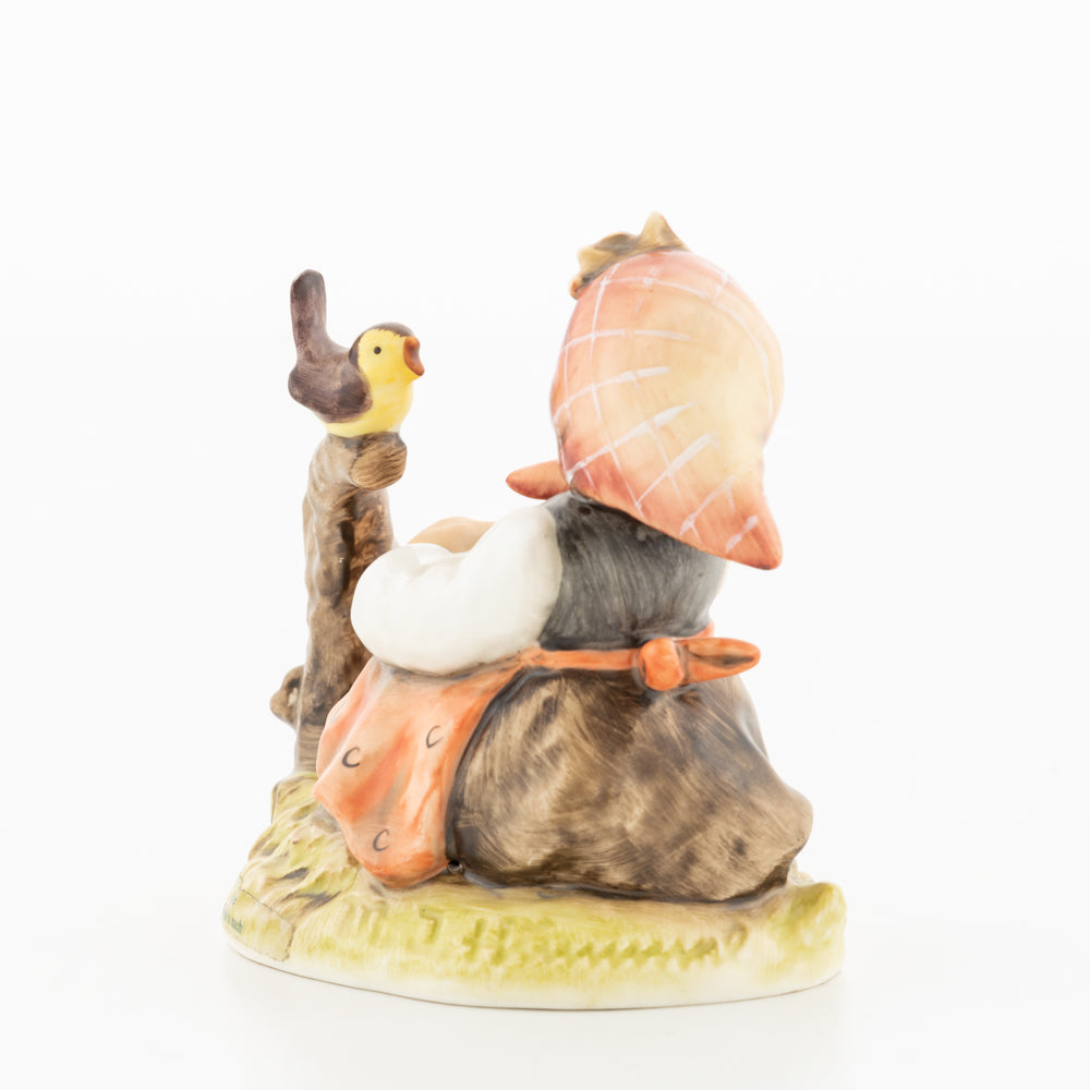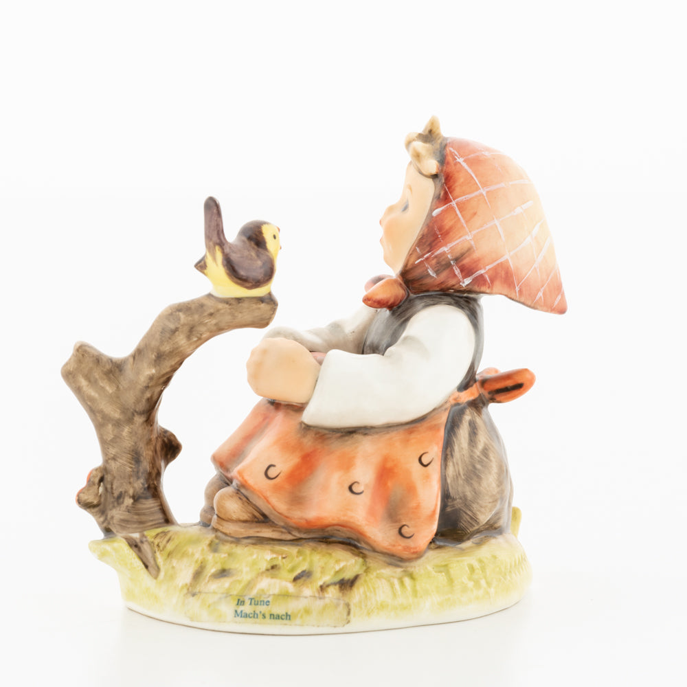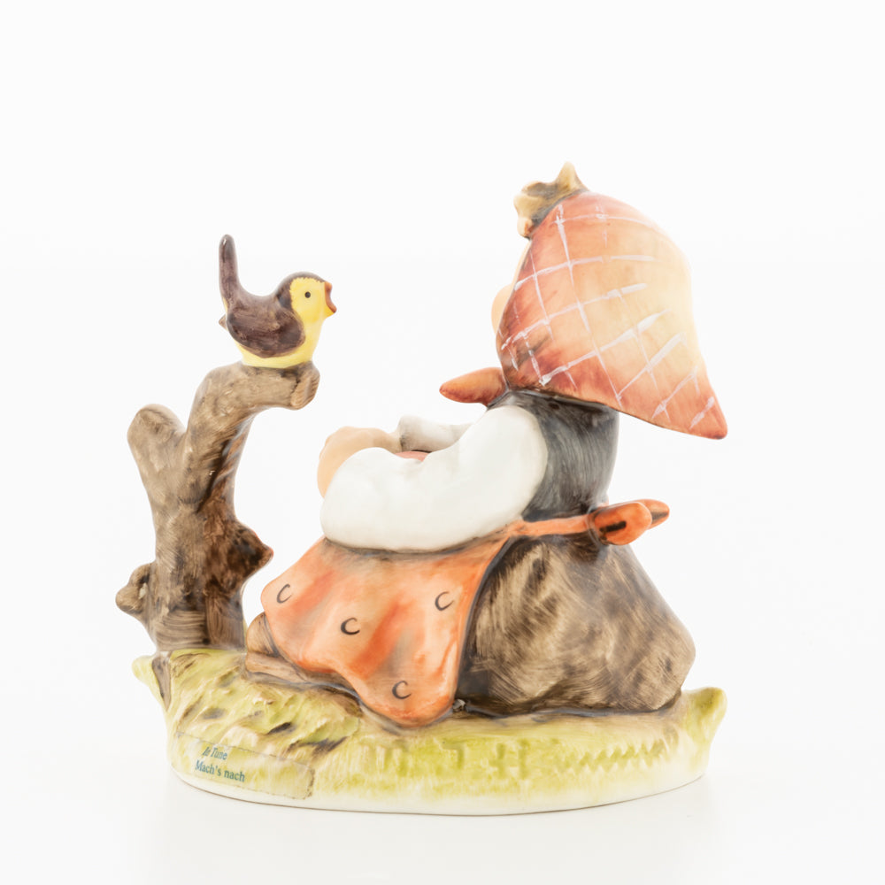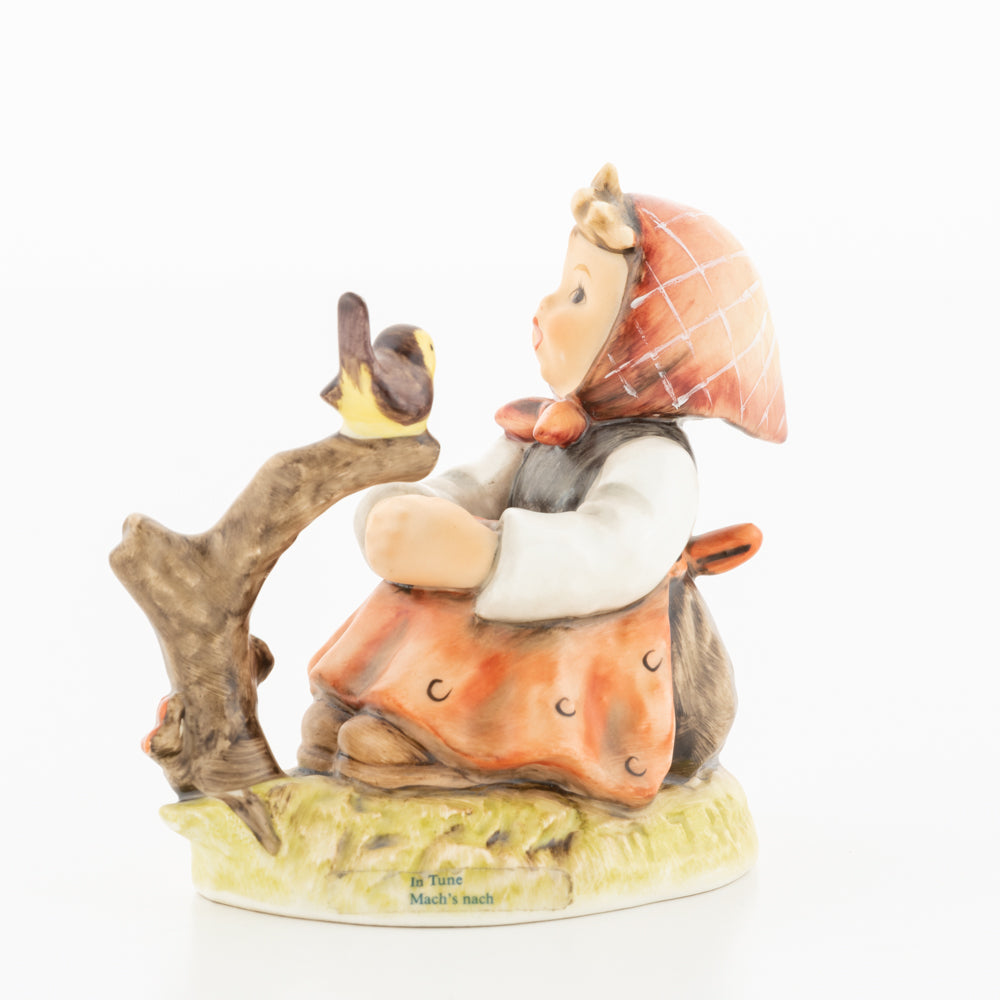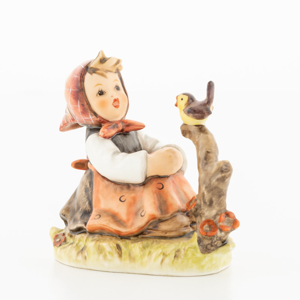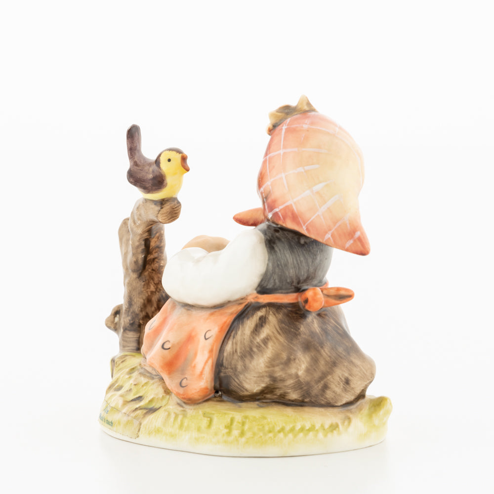 Wer wohl zuerst sein Liedchen angestimmt hat? Das reizende Duett "Mach´s nach" aus Hummel-Mädchen und dem kleinen Vögelchen wurde im Jahr 1981 erstmalig für den amerikanischen Markt produziert. Meistermodelleur Gerhard Skrobek hauchte der original M.I. Hummel-Figur Leben ein. Die beiden fröhlichen Gesellen aus der Hummel Manufaktur Rödental sind auch auf der Hummel-Glocke HUM 703 und dem Springtime Teller HUM 297 als Motiv zu finden.