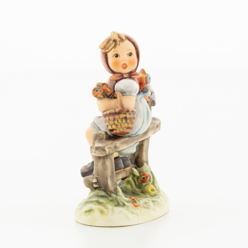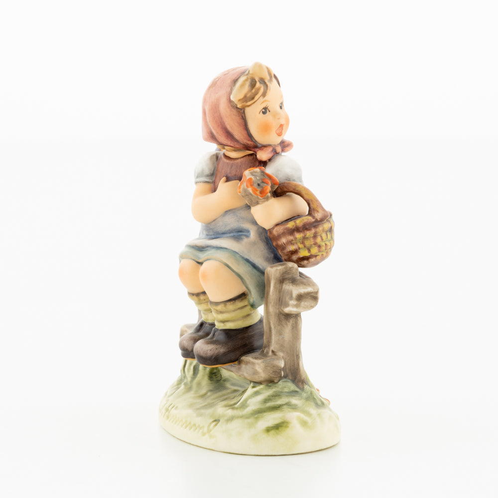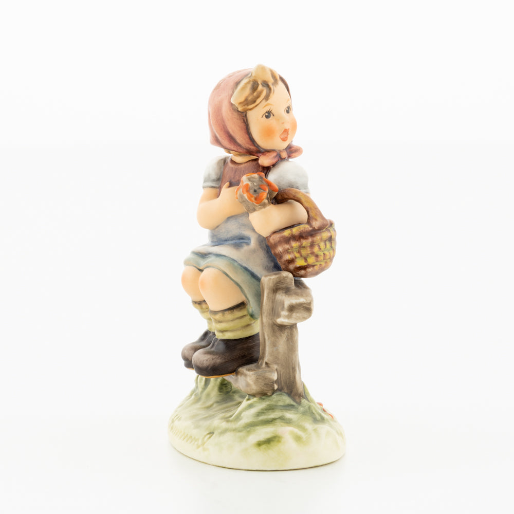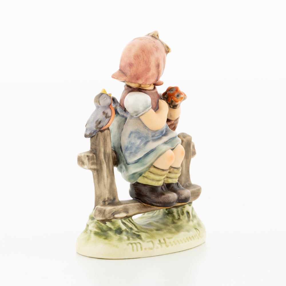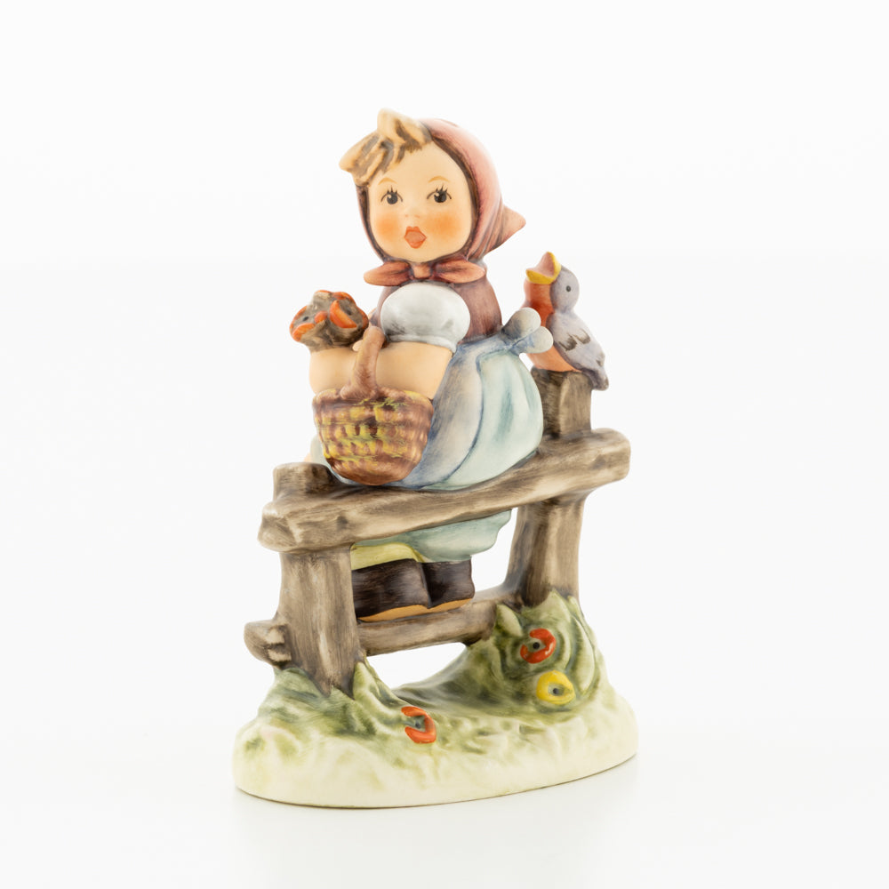 Eine kleine Rast am Wegrand wird doch wohl noch erlaubt sein? Das kleine Hummel-Mädchen hat unterwegs Blumen gepflückt. Ob für den Vater, die Mutter oder die Großeltern. Wer weiß? Ein Vögelchen setzt sich zu dem Mädchen aus dem Hause Hummel und bringt ihm ein Ständchen. Die original M.I. Hummel-Figur wurde 1980 von Meistermodelleur Gerhard Skrobek geschaffen und bezaubert ihren Betrachter durch kindlichen Charme. 1997 wurde ein weiteres Modell dieser original Hummel-Figur von Modelleur Helmut Fischer gestaltet.