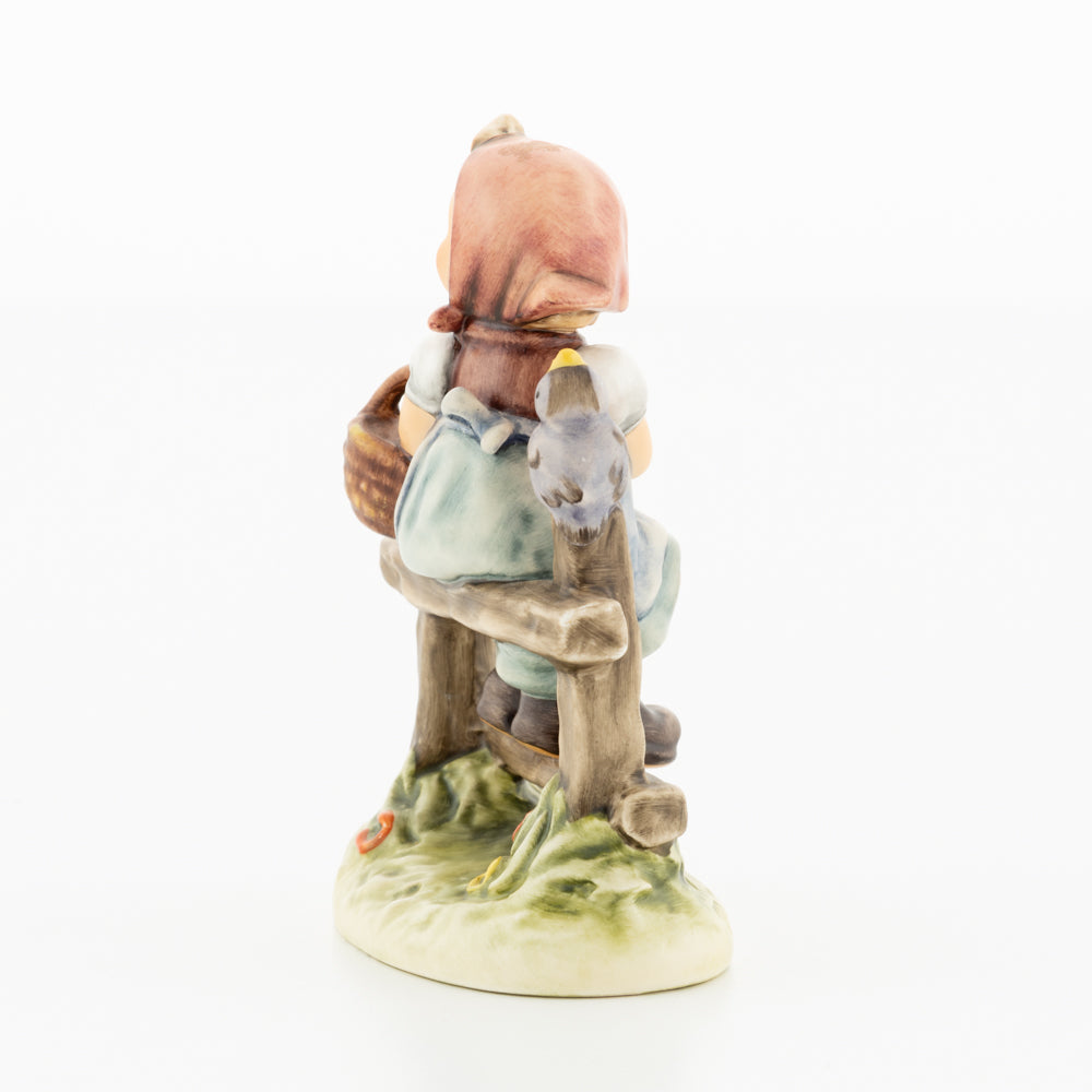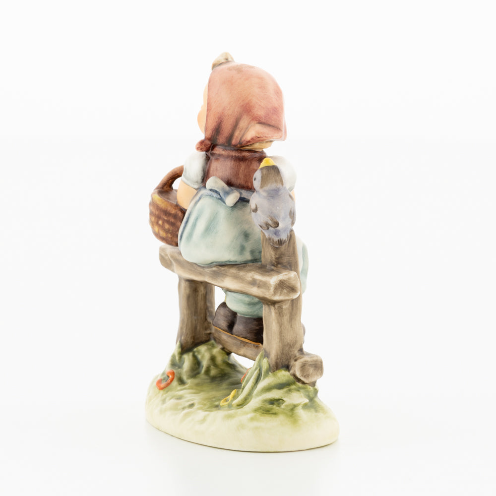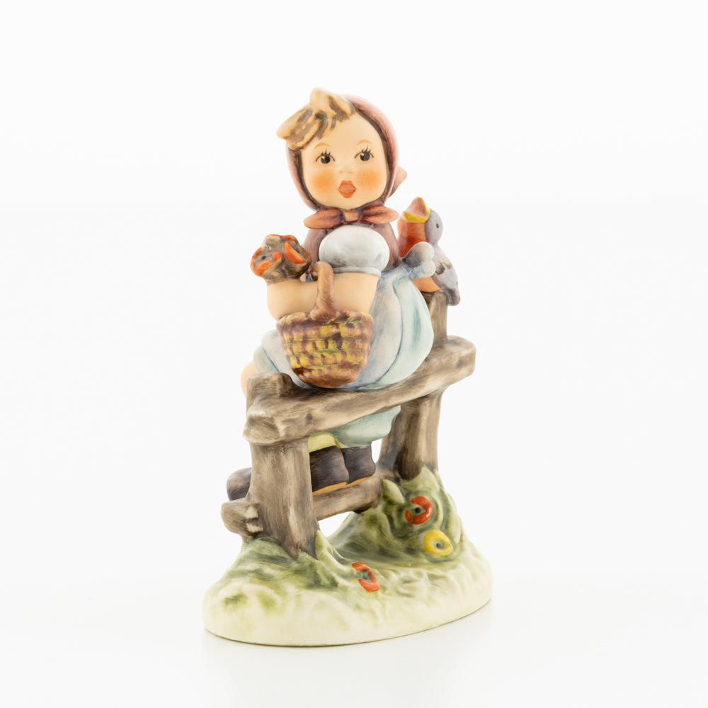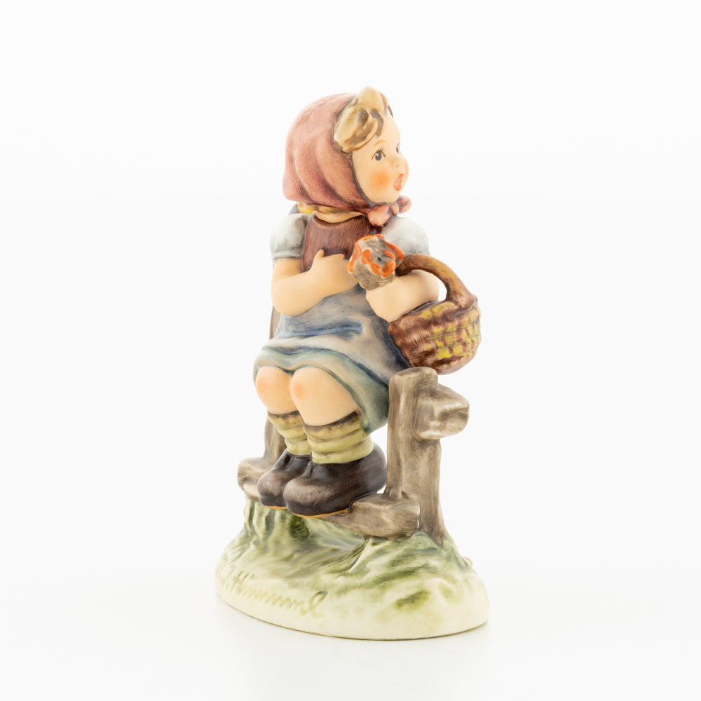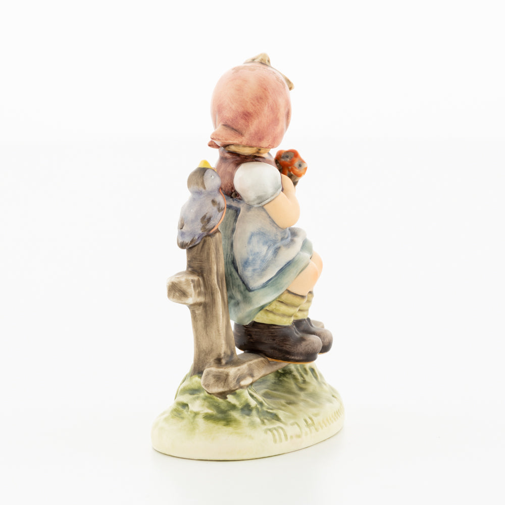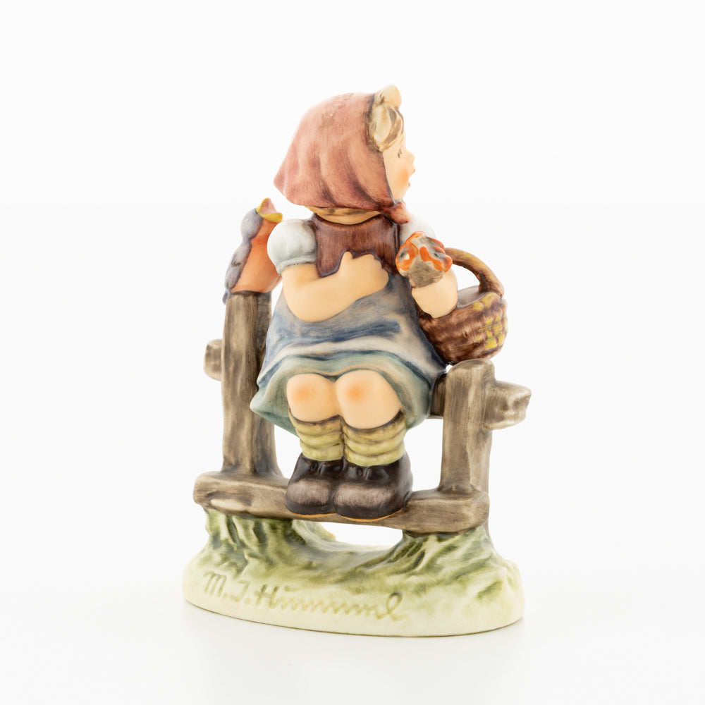 Eine kleine Rast am Wegrand wird doch wohl noch erlaubt sein? Das kleine Hummel-Mädchen hat unterwegs Blumen gepflückt. Ob für den Vater, die Mutter oder die Großeltern. Wer weiß? Ein Vögelchen setzt sich zu dem Mädchen aus dem Hause Hummel und bringt ihm ein Ständchen. Die original M.I. Hummel-Figur wurde 1980 von Meistermodelleur Gerhard Skrobek geschaffen und bezaubert ihren Betrachter durch kindlichen Charme. 1997 wurde ein weiteres Modell dieser original Hummel-Figur von Modelleur Helmut Fischer gestaltet.