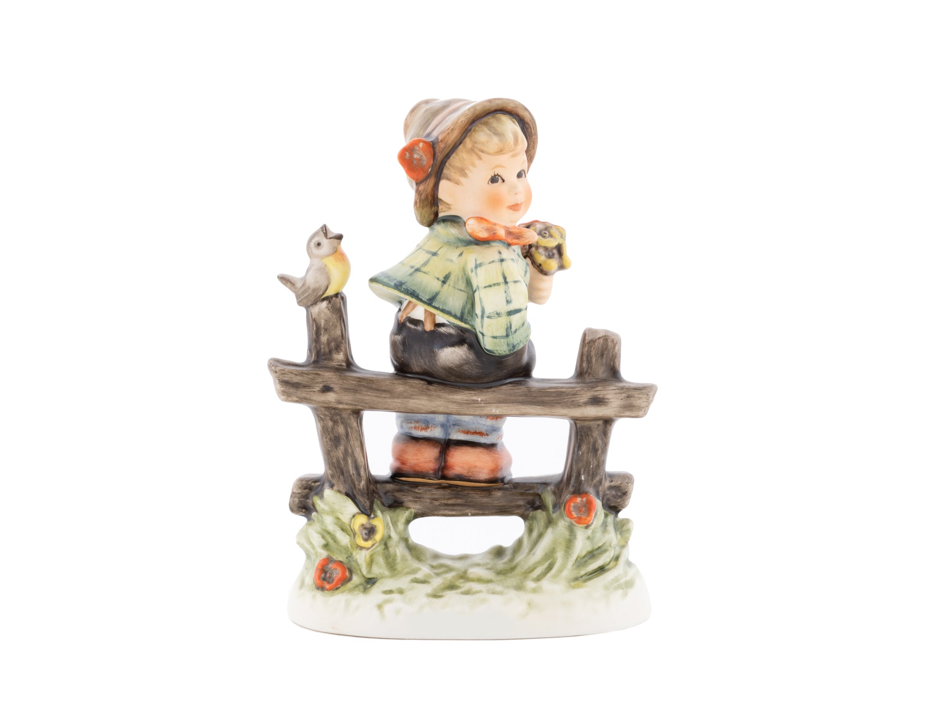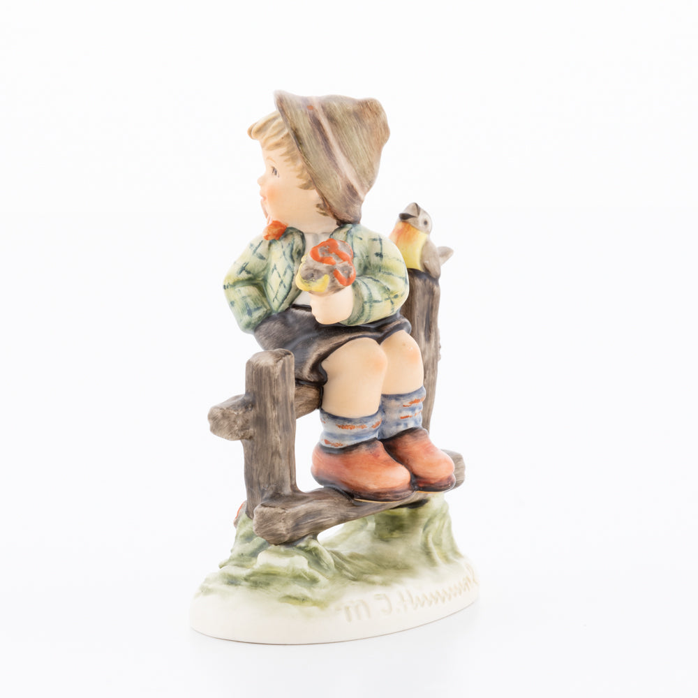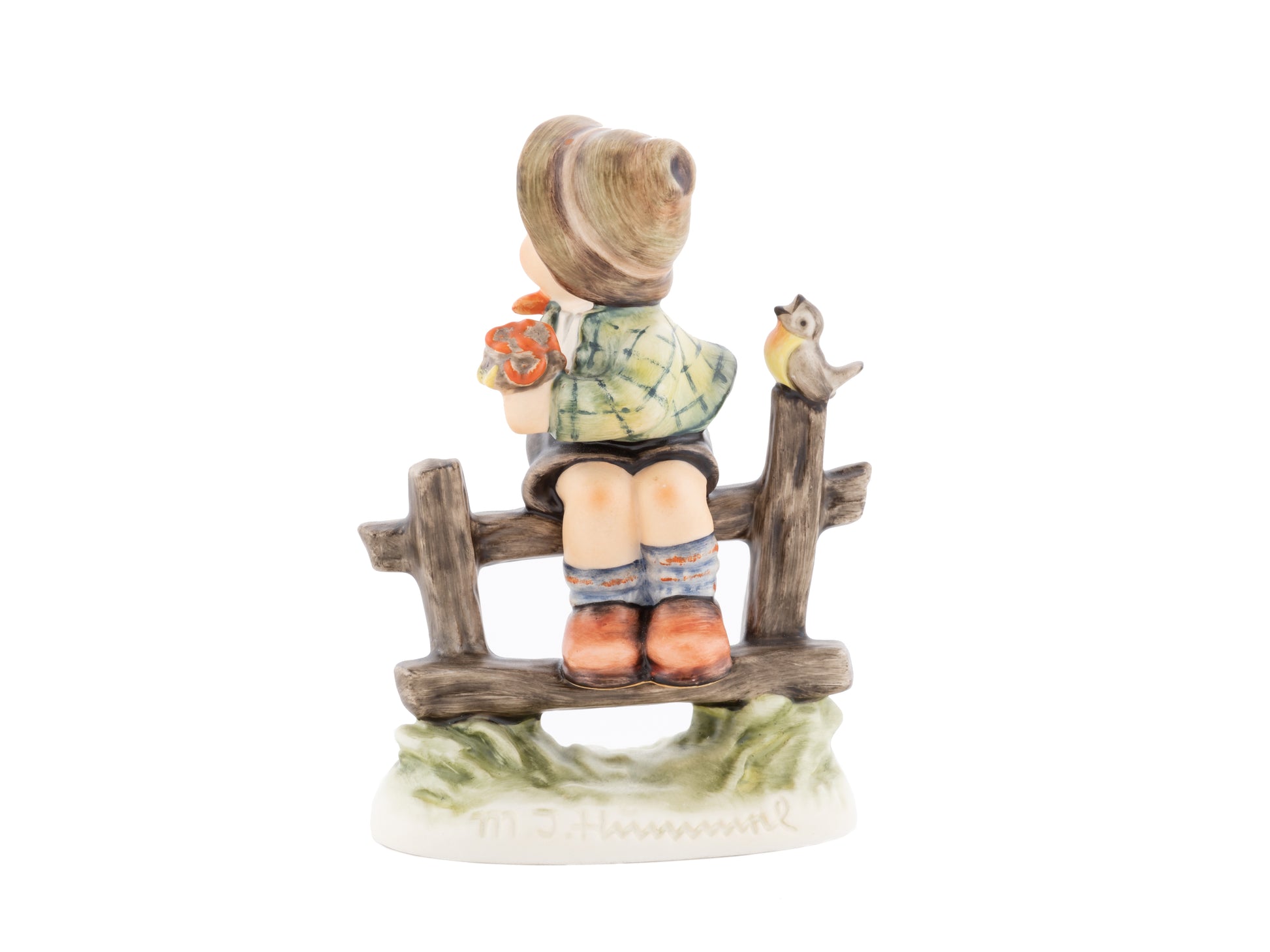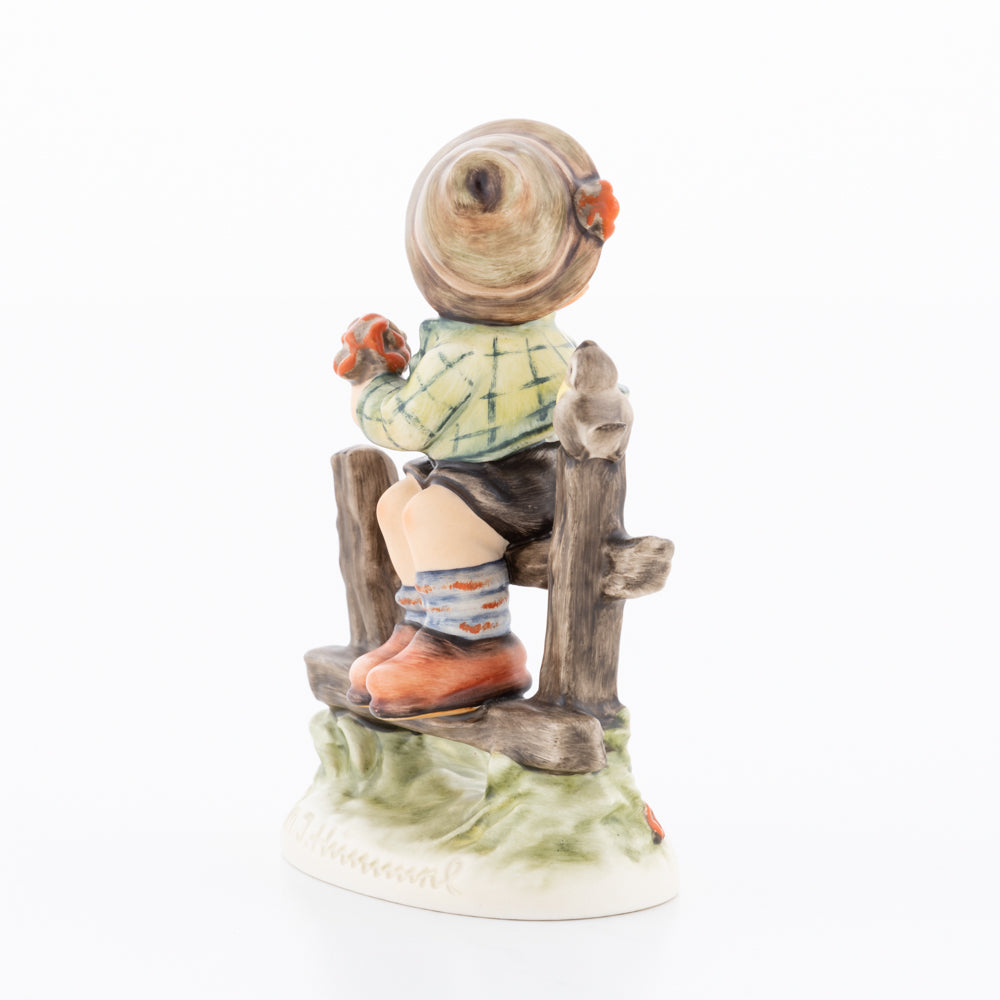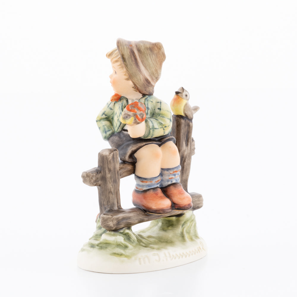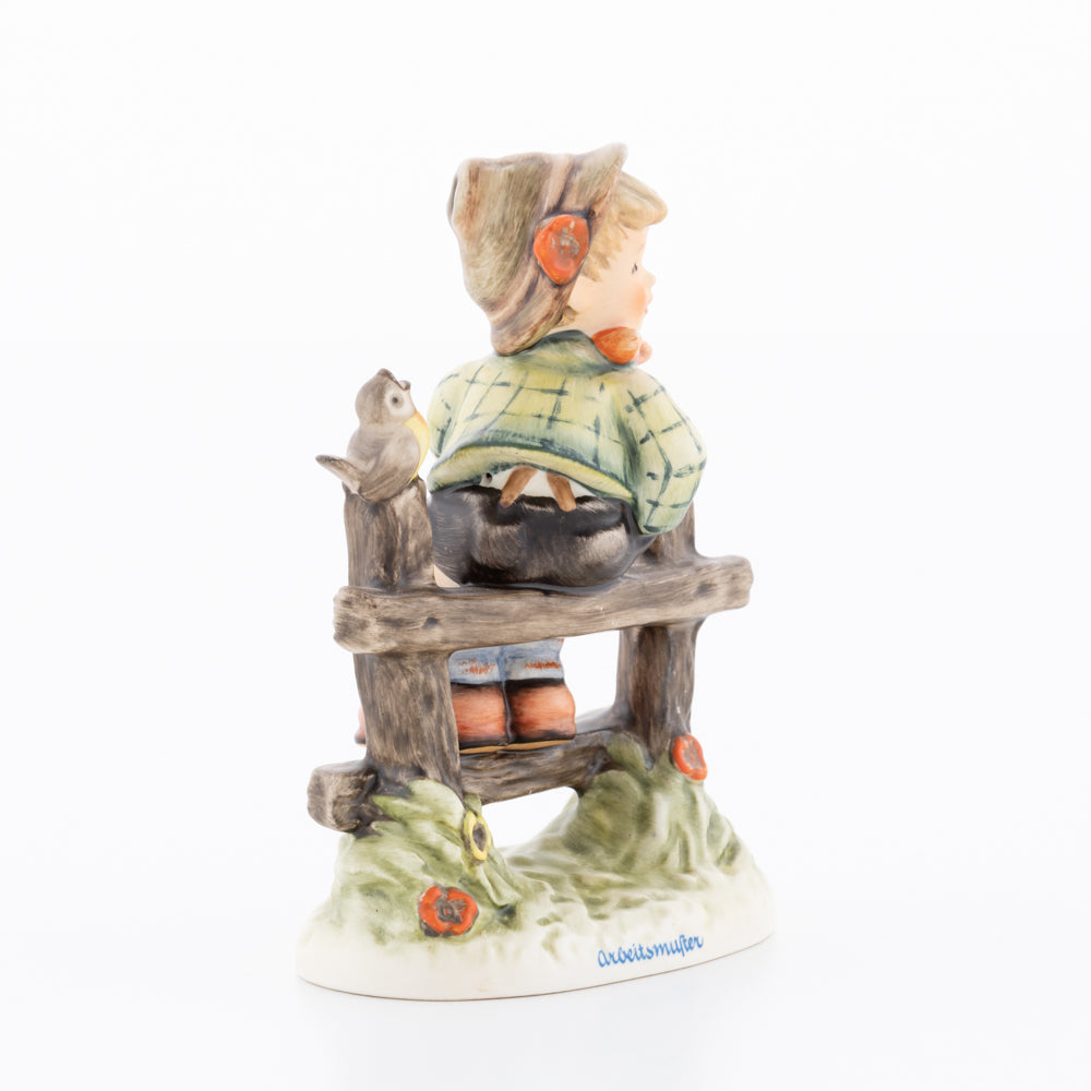 Suchend blickt sich der auf einem Zaun sitzende Junge nach einem Vögelchen um. Modelliert wurde die eine frühlingshafte Stimmung verbreitende Hummel-Figur von Gerhard Skrobek im Jahre 1980. Der kecke Bub mit Hütchen und Halstuch versetzt den Betrachter zurück in die Kindheit. Ob als Erinnerung an Kindheitstage oder als Geschenk zur Geburt, diese original Hummel-Figur ist ein wahres Meisterstück.
