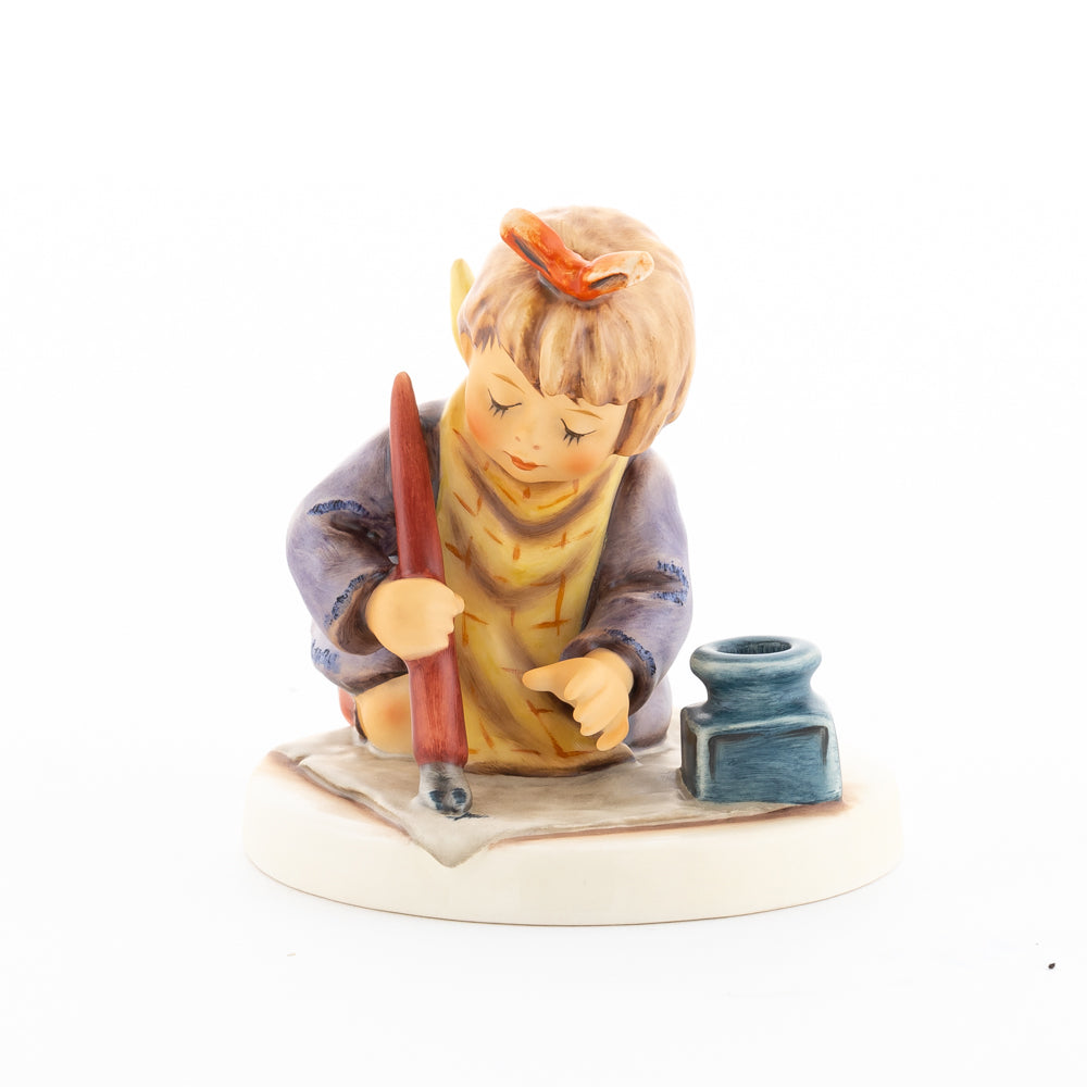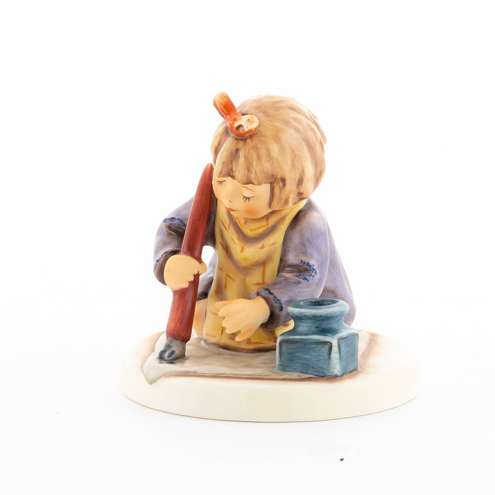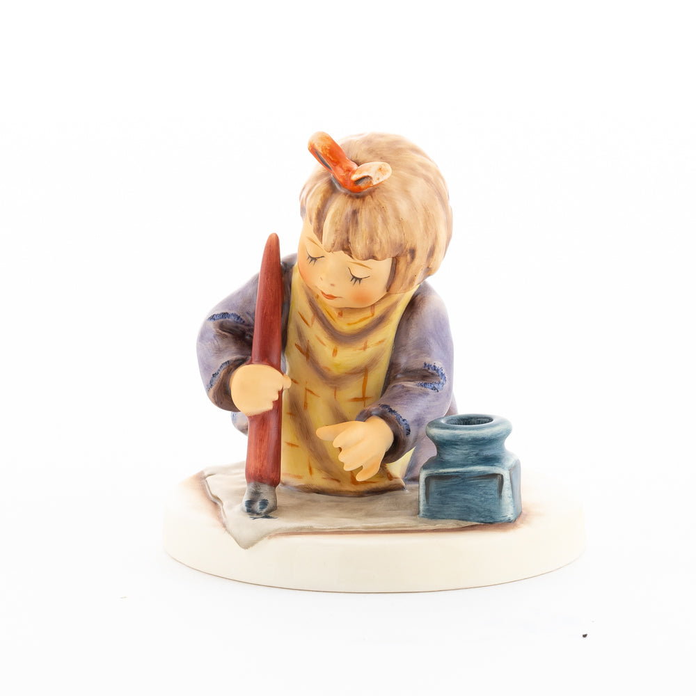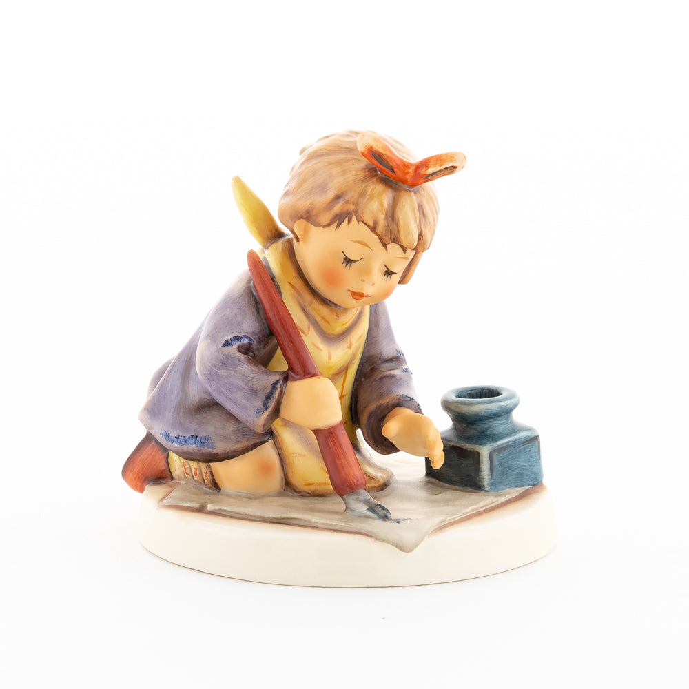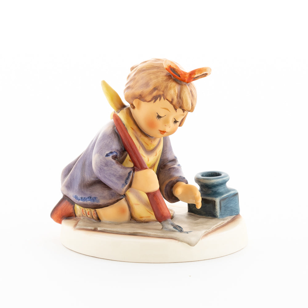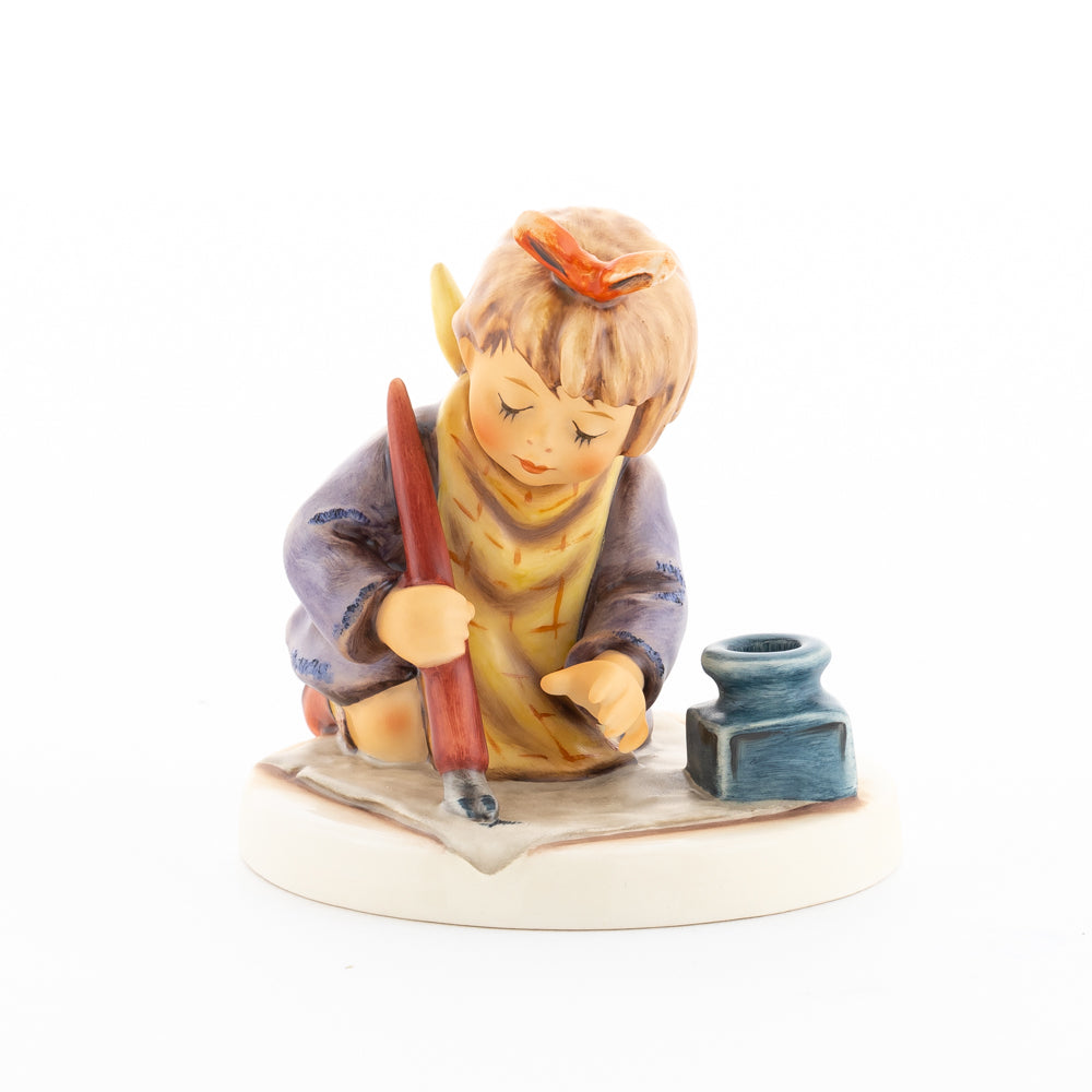 Mit dem blauen Tintenfass und der traditionellen Feder ist die Hummel-Figur „Ein lieber Gruß“ (HUM 446) ein wahrer Hingucker auf jedem Schreibtisch und ein lieblicher Begleiter für alle, die gern handgeschriebene Briefe verschicken oder bekommen.