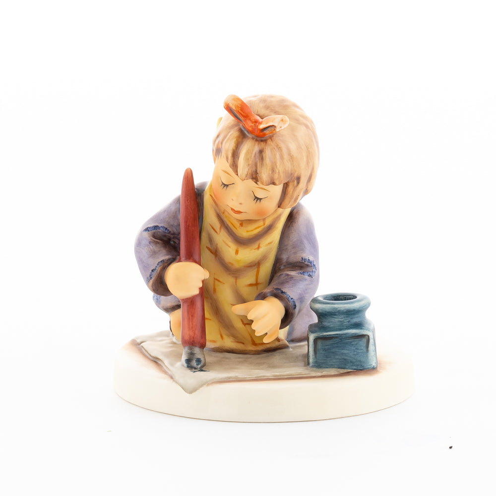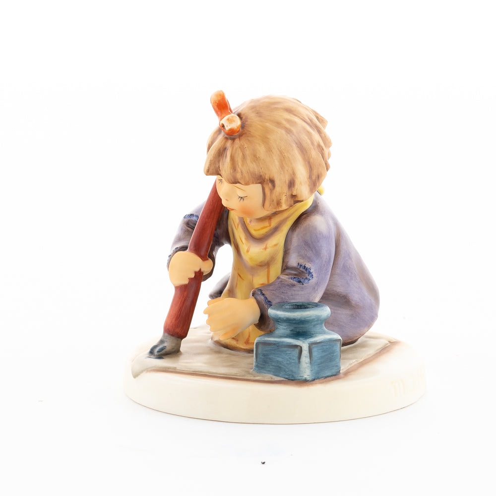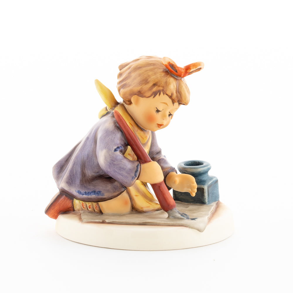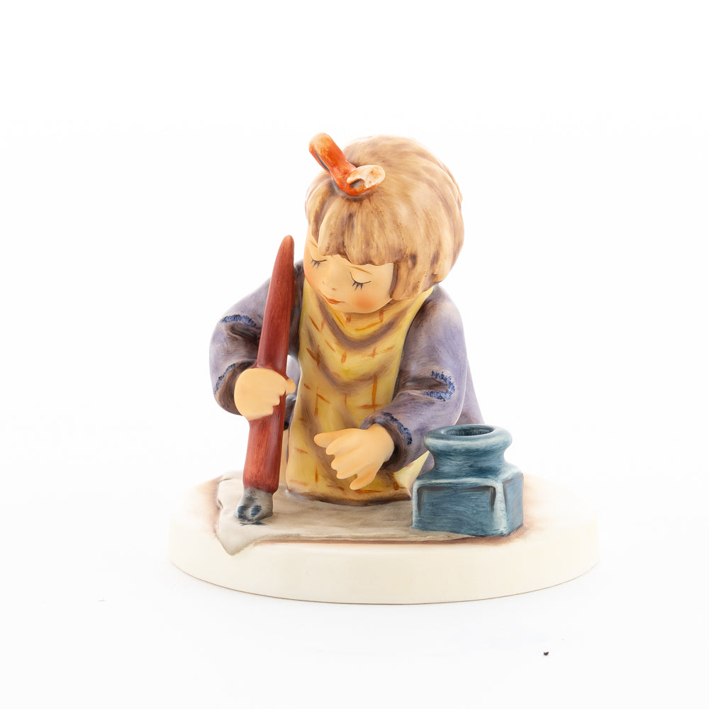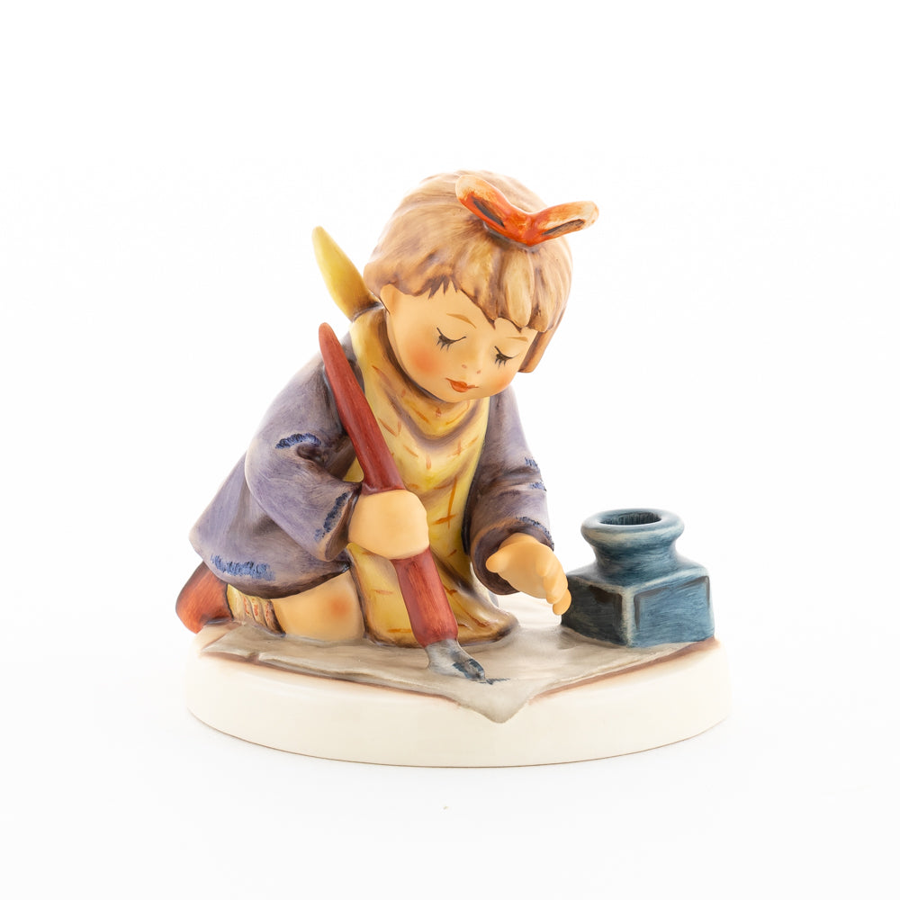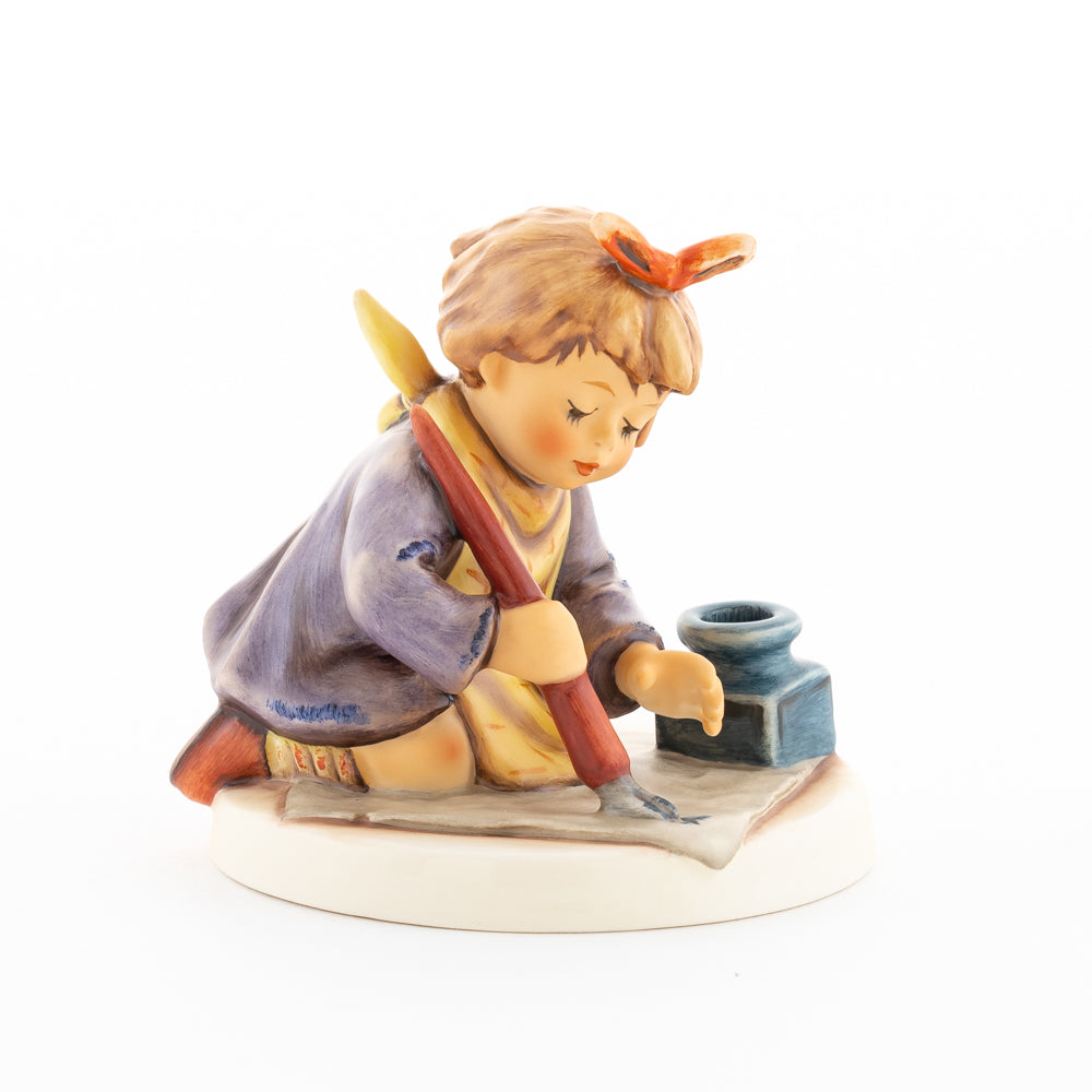 Mit dem blauen Tintenfass und der traditionellen Feder ist die Hummel-Figur „Ein lieber Gruß“ (HUM 446) ein wahrer Hingucker auf jedem Schreibtisch und ein lieblicher Begleiter für alle, die gern handgeschriebene Briefe verschicken oder bekommen.