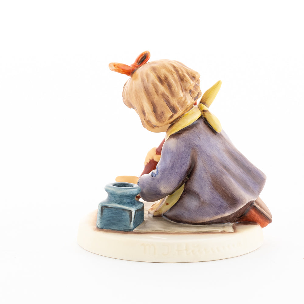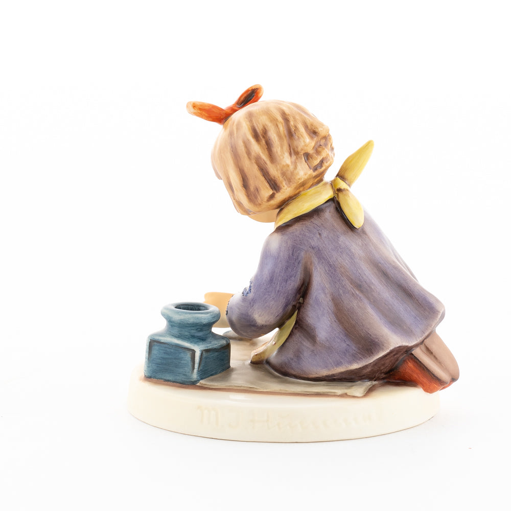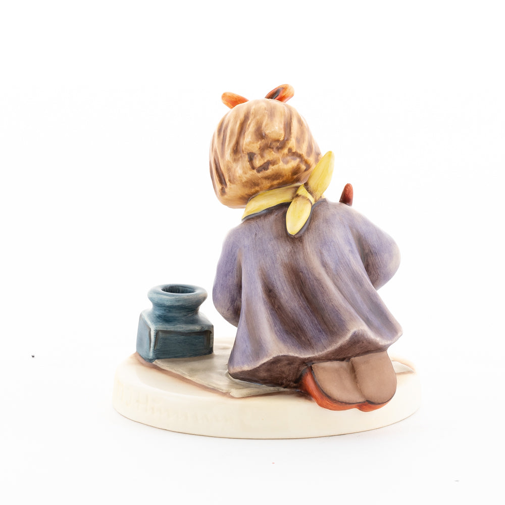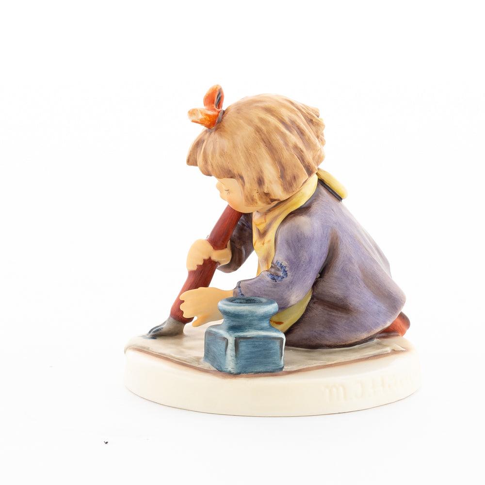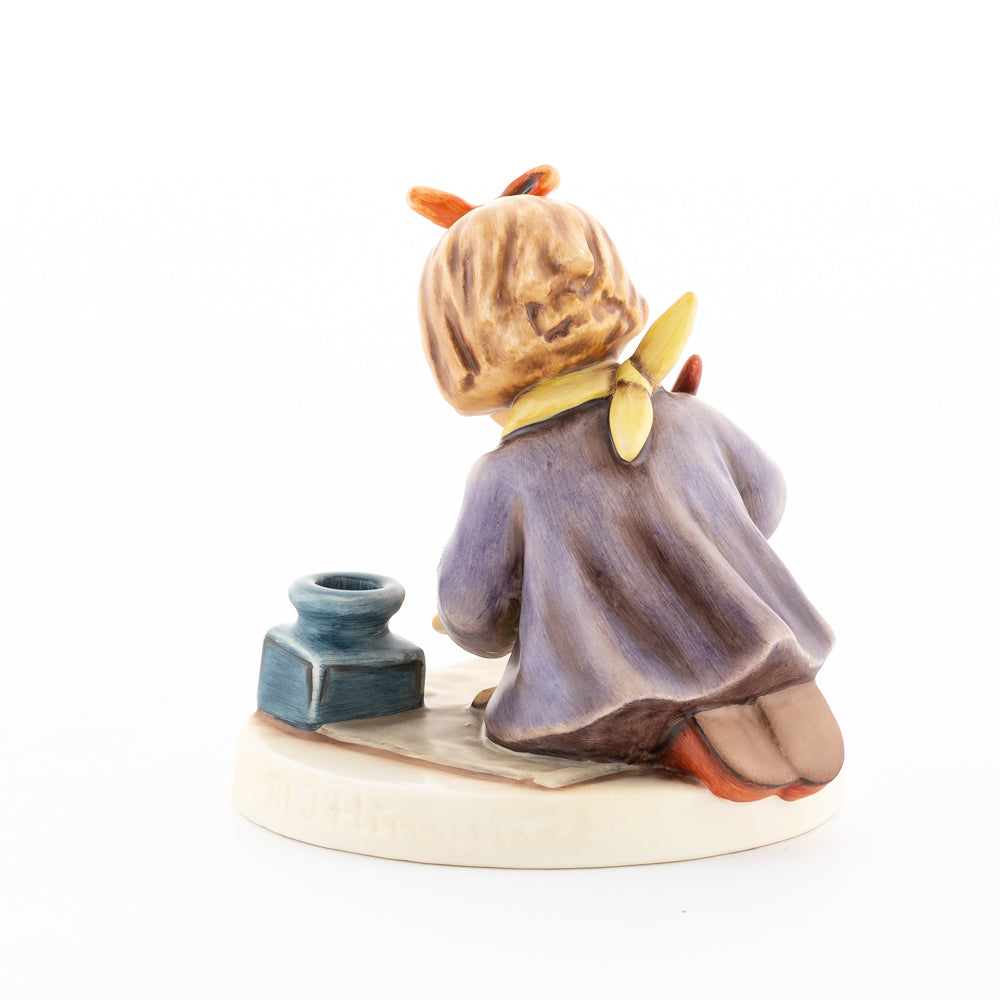 Mit dem blauen Tintenfass und der traditionellen Feder ist die Hummel-Figur „Ein lieber Gruß“ (HUM 446) ein wahrer Hingucker auf jedem Schreibtisch und ein lieblicher Begleiter für alle, die gern handgeschriebene Briefe verschicken oder bekommen.